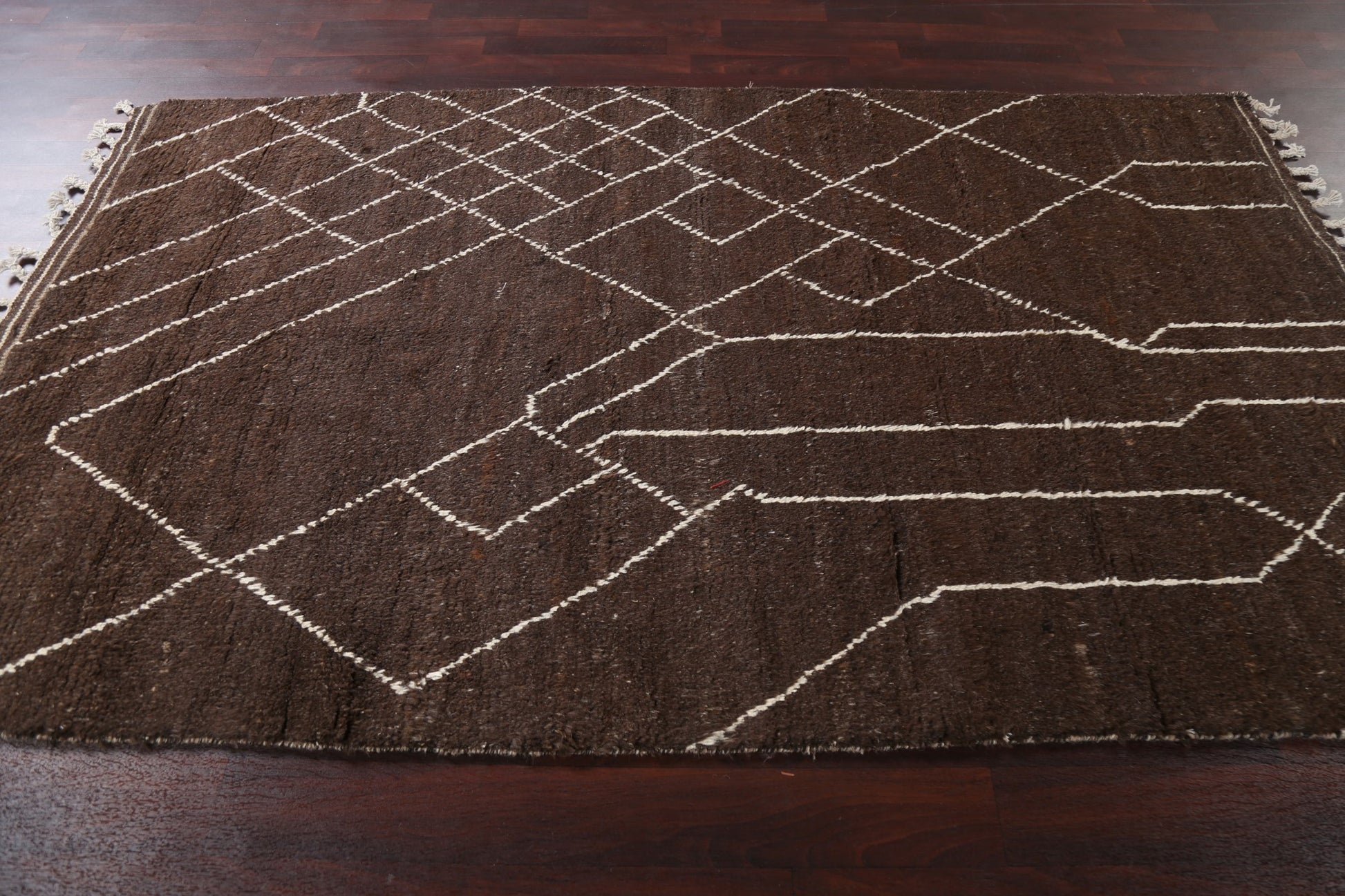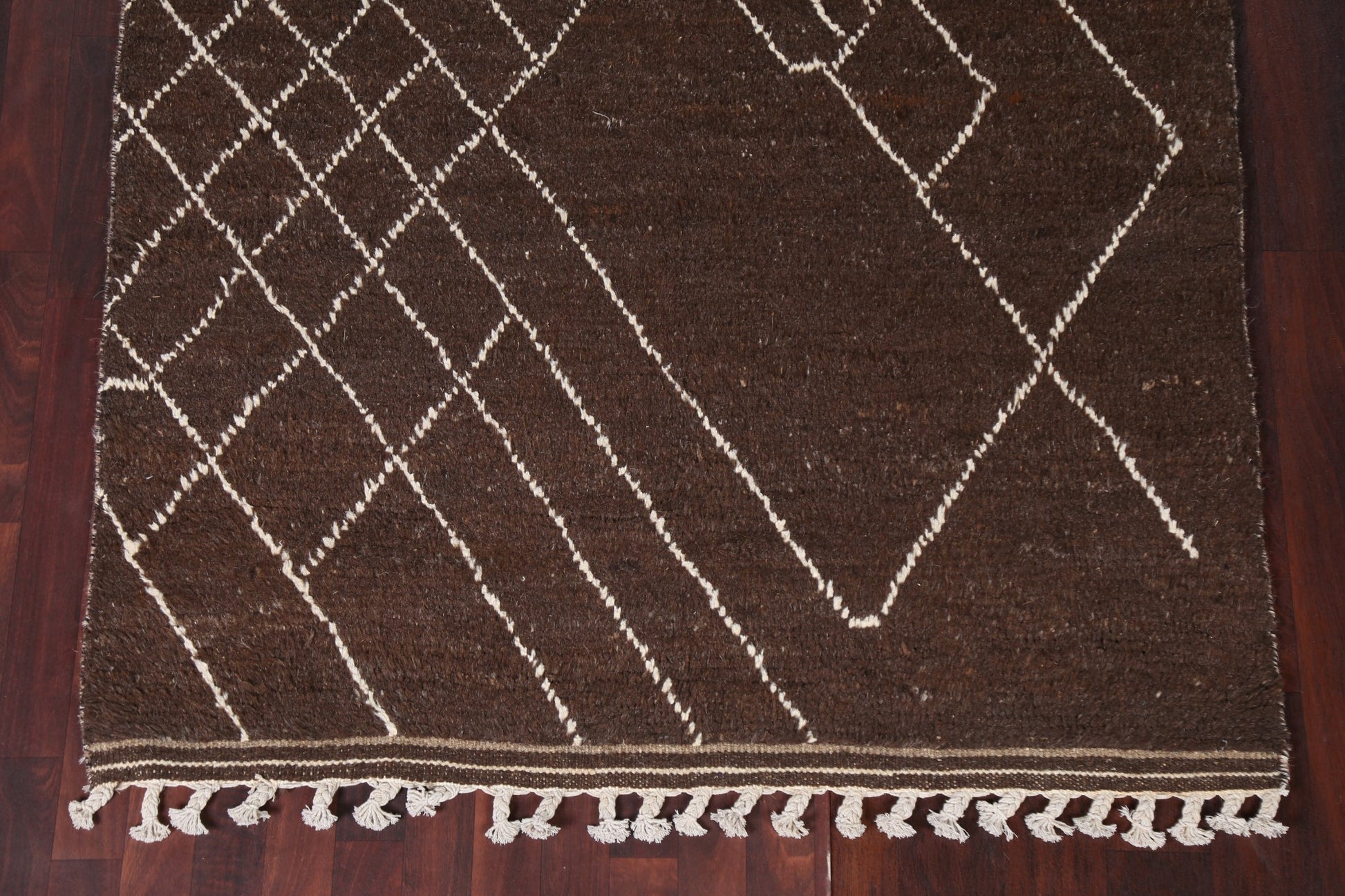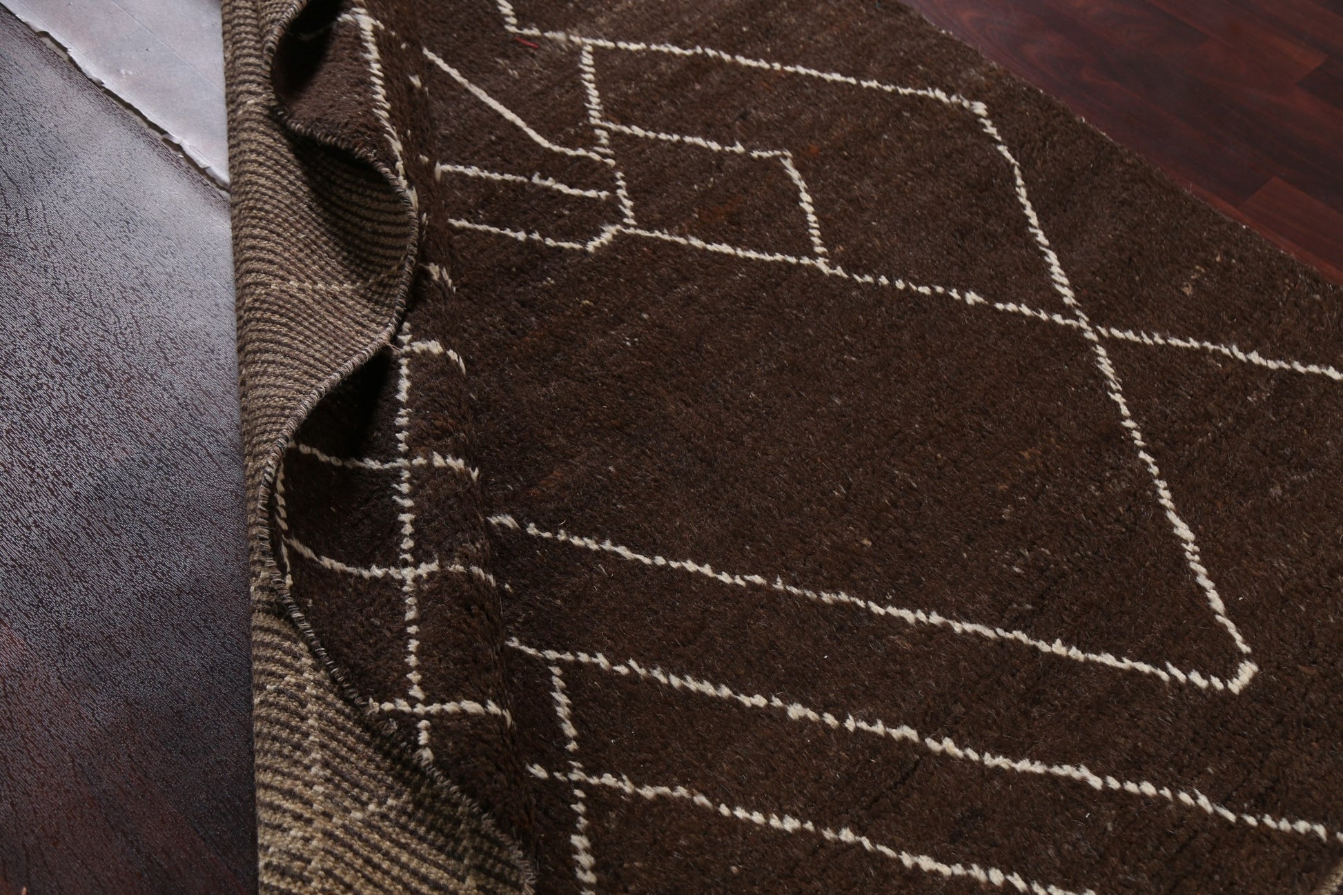 A Beautiful Genuine Pakistan Moroccan rug is Hand Knotted by skillful weavers in Pakistan with 100% Wool Material. This rug is in New, First Quality condition. dimensions are 10' 5'' X 4' 11'' in foot and 318 X 150 in centimeter. the primary color is Brown.