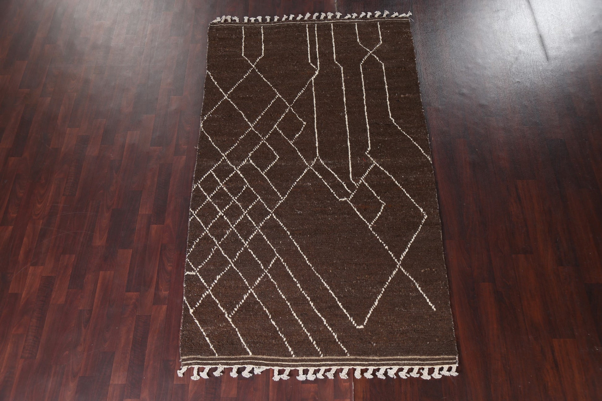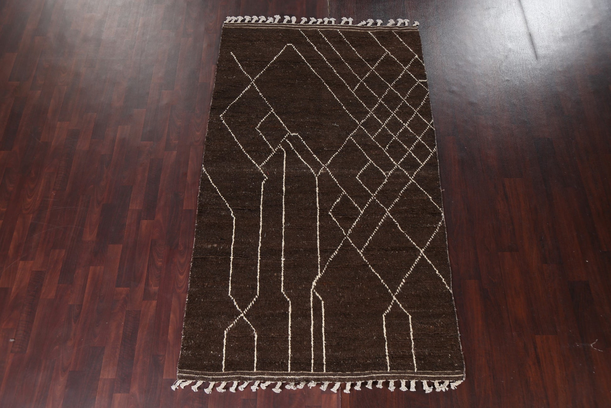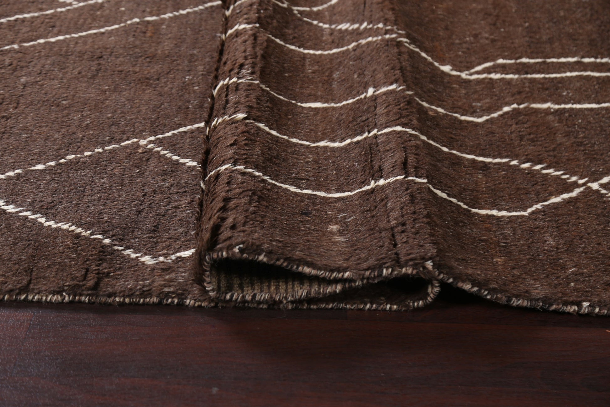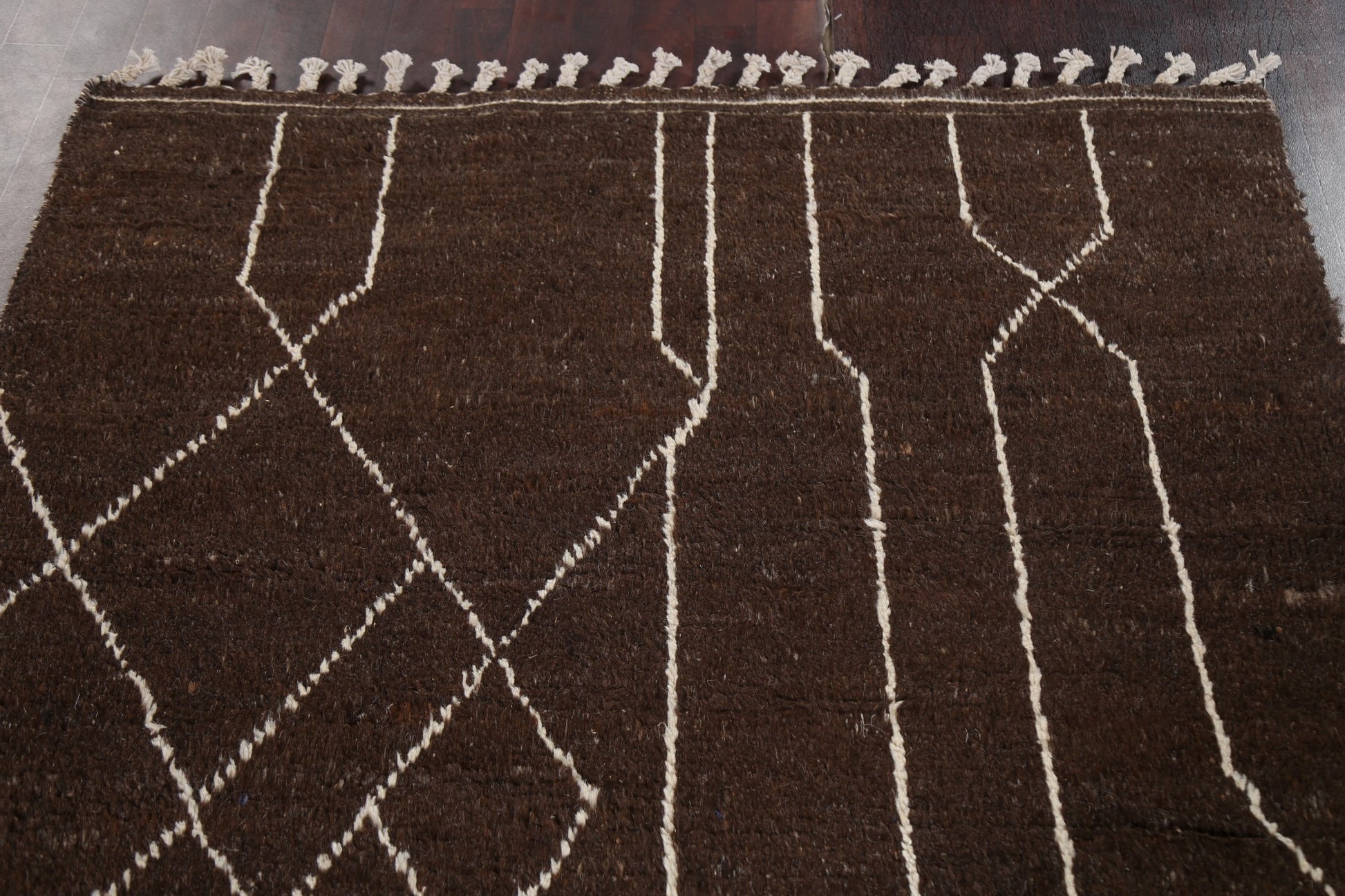 A Beautiful Genuine Pakistan Moroccan rug is Hand Knotted by skillful weavers in Pakistan with 100% Wool Material. This rug is in New, First Quality condition. dimensions are 10' 5'' X 4' 11'' in foot and 318 X 150 in centimeter. the primary color is Brown.