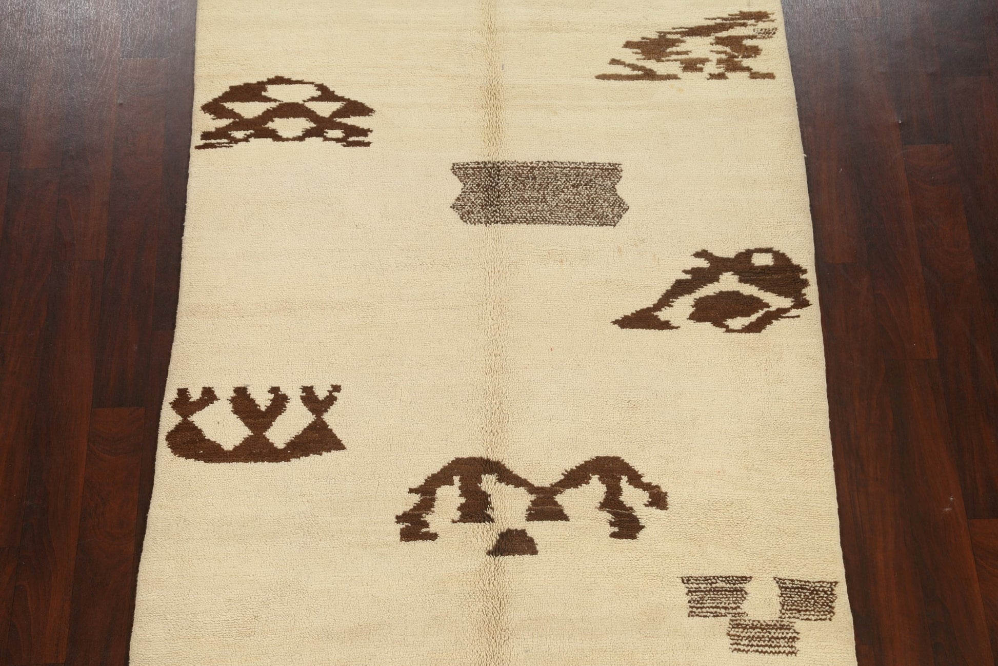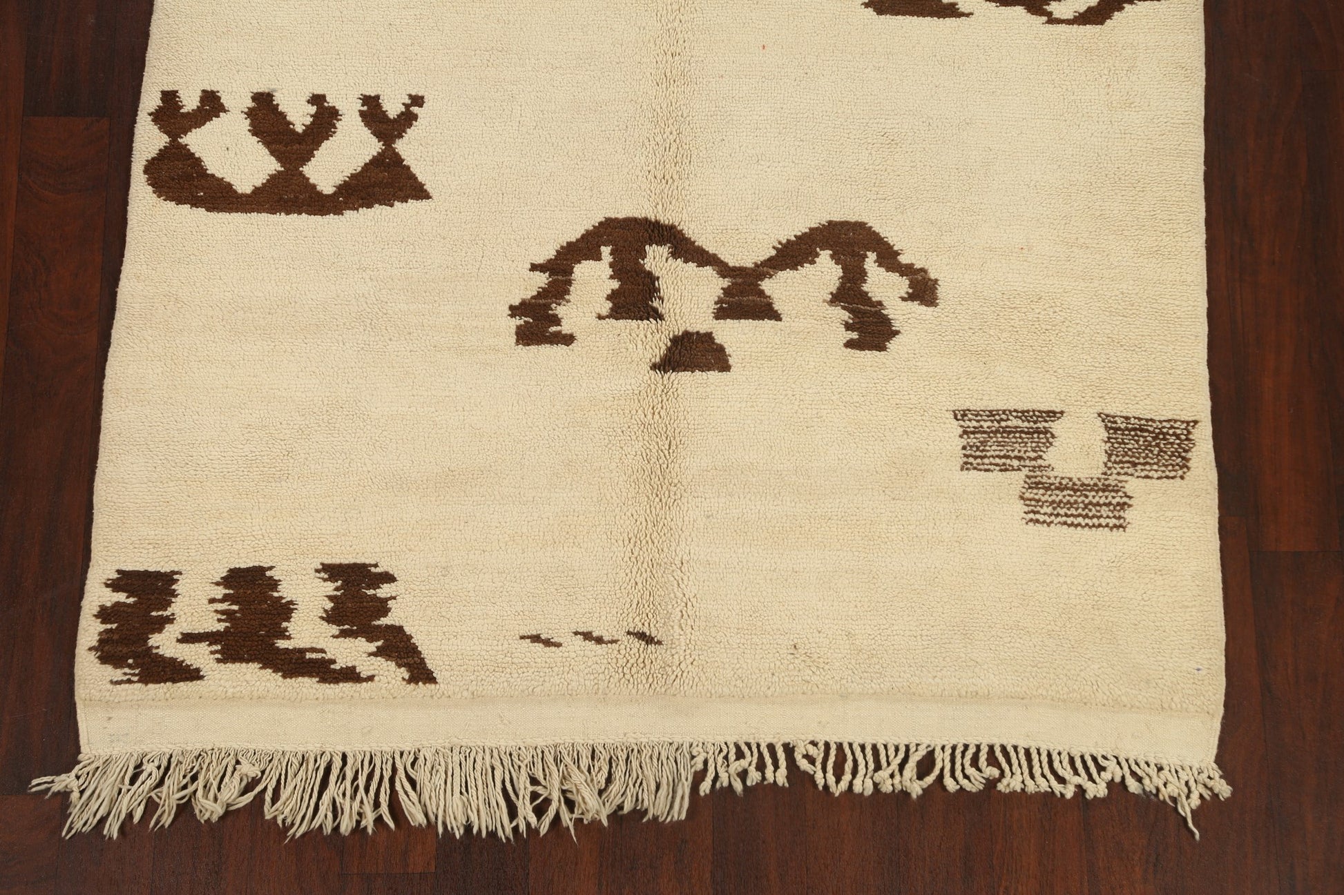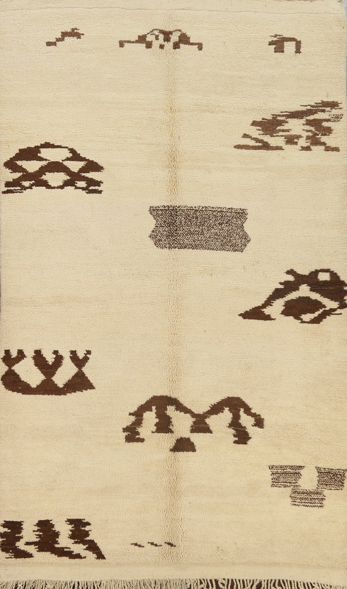A Beautiful Genuine Morocco Moroccan rug is Hand Knotted by skillful weavers in Morocco with 100% Wool Material. This rug is in New, First Quality condition. dimensions are 8' 2'' X 5' 1'' in foot and 249 X 155 in centimeter. the primary color is Beige & Ivories.