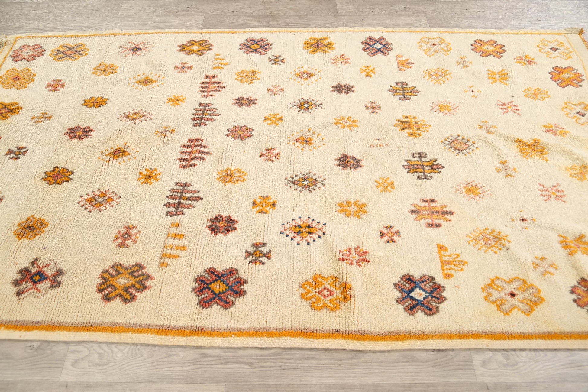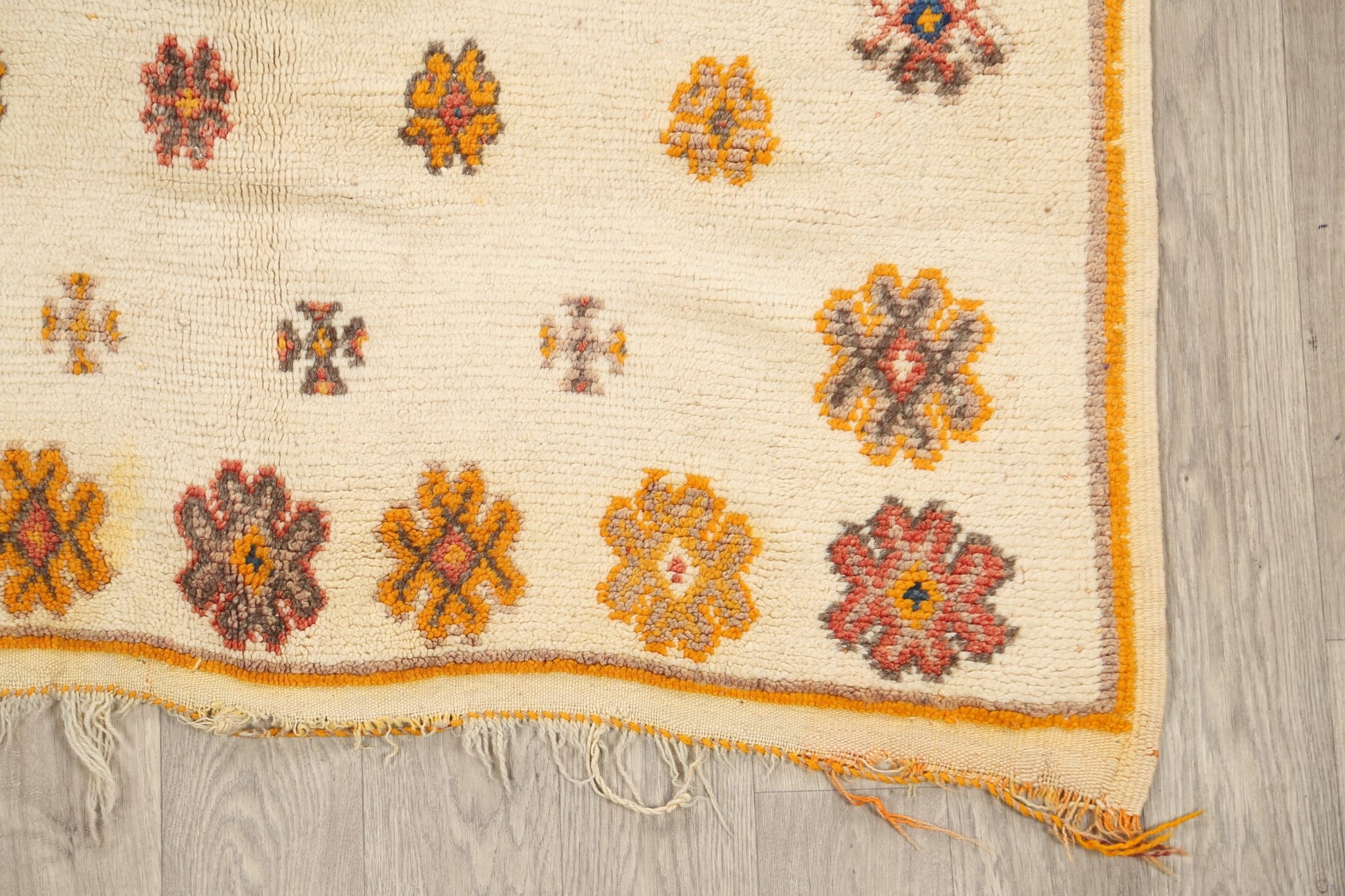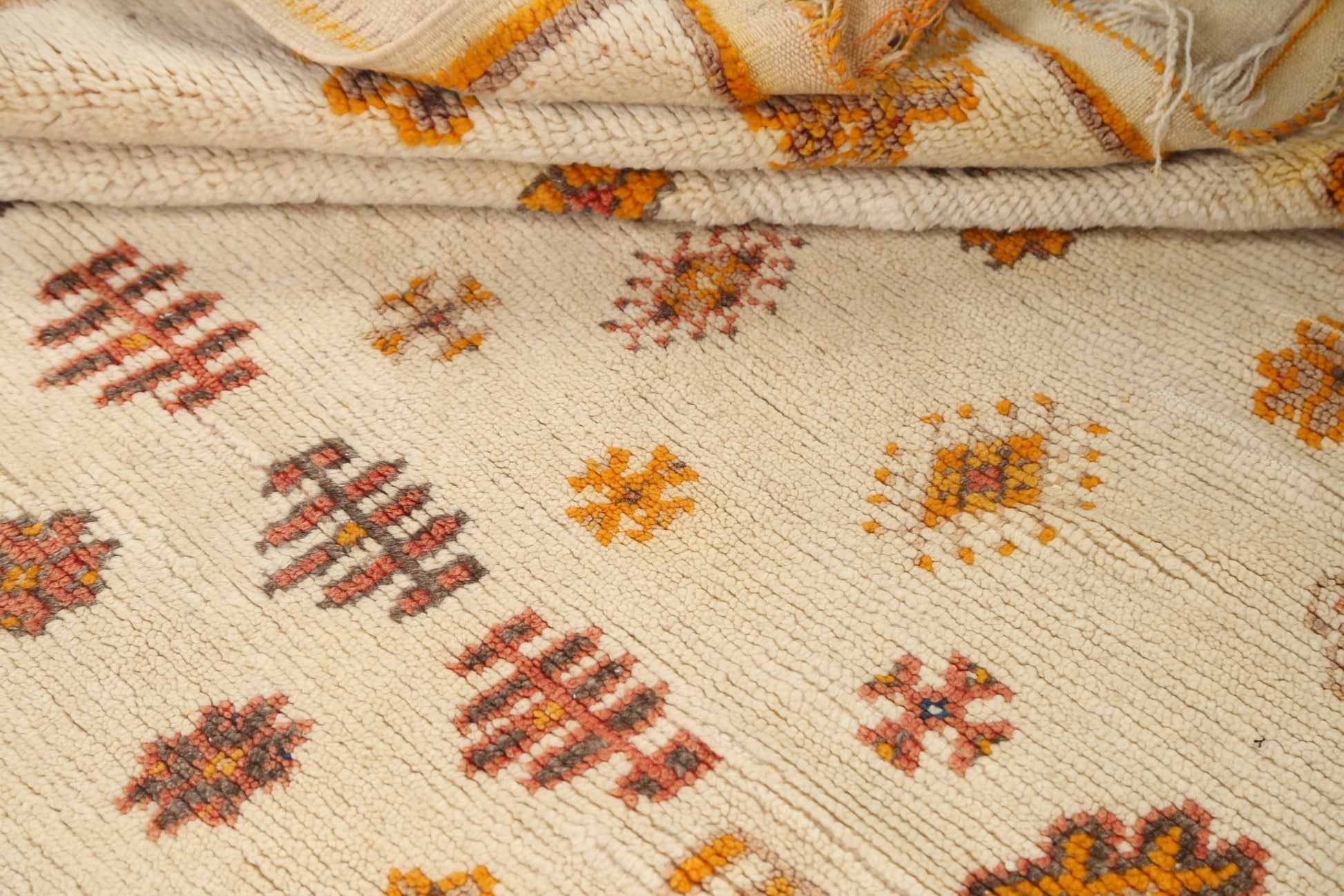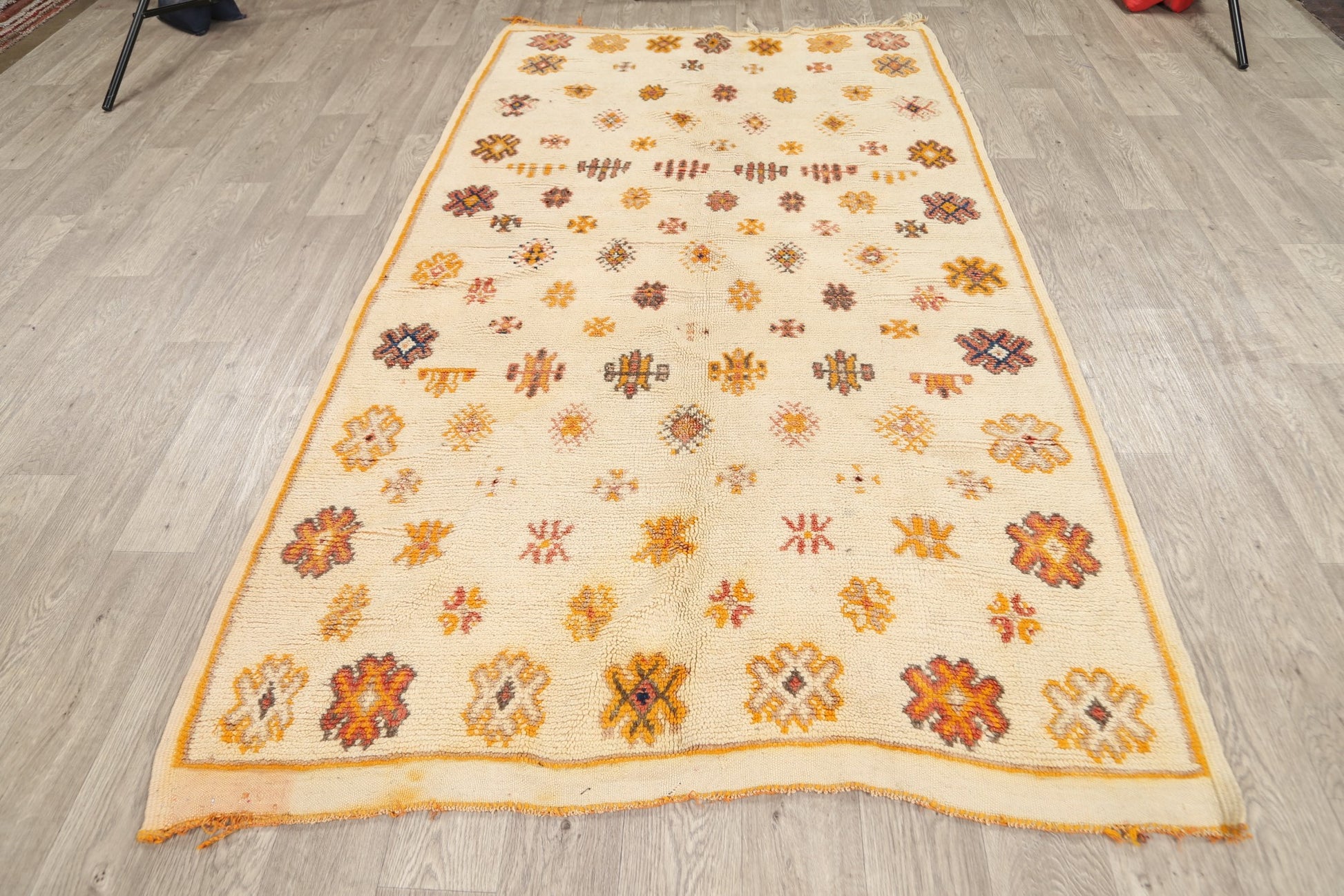 A Beautiful Genuine Morocco Moroccan rug is Hand Knotted by skillful weavers in Morocco with 100% Wool Material. This rug is in Very Good condition. dimensions are 7' 10'' X 4' 7'' in foot and 239 X 140 in centimeter. the primary color is Beige & Ivories.