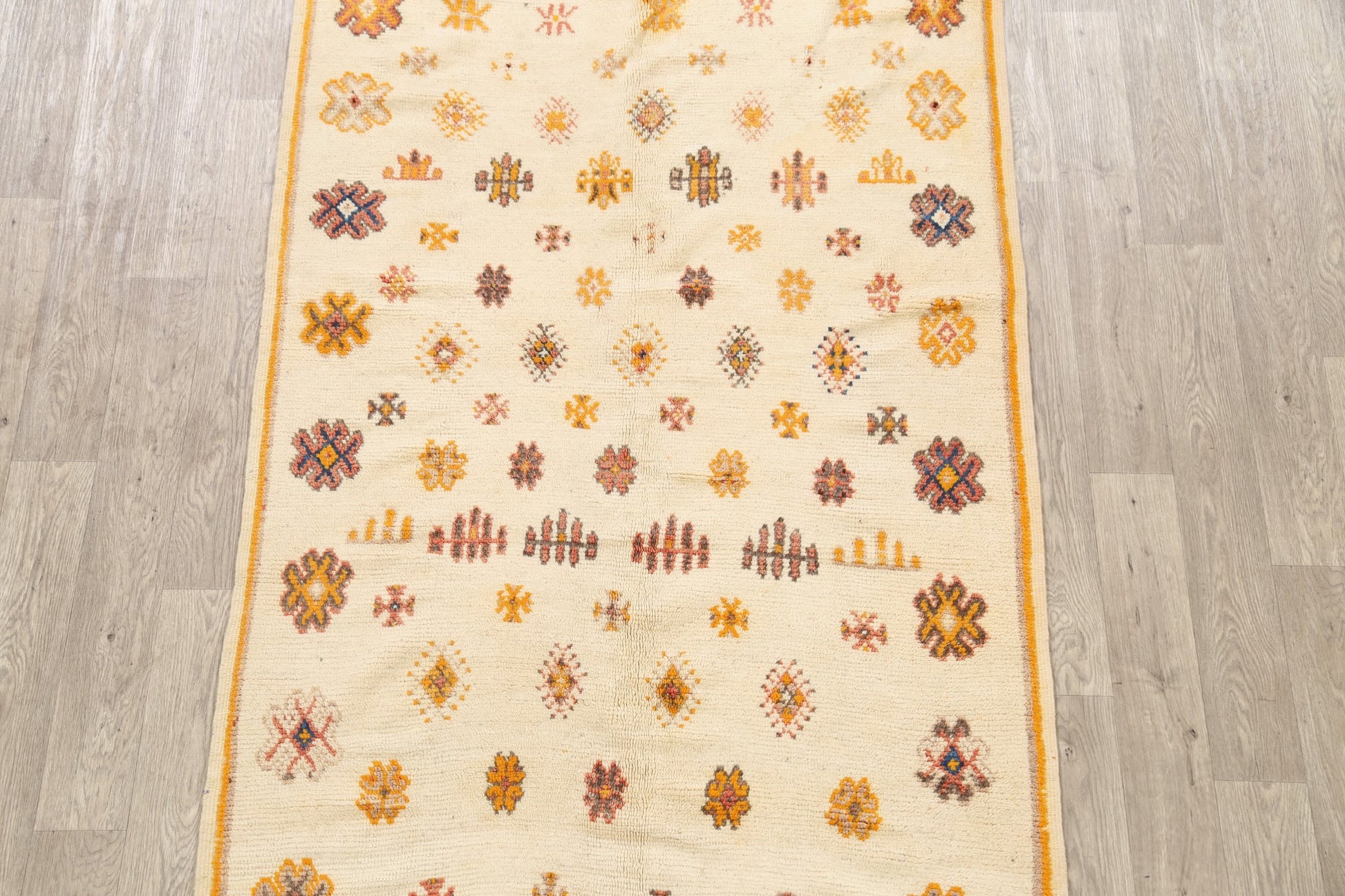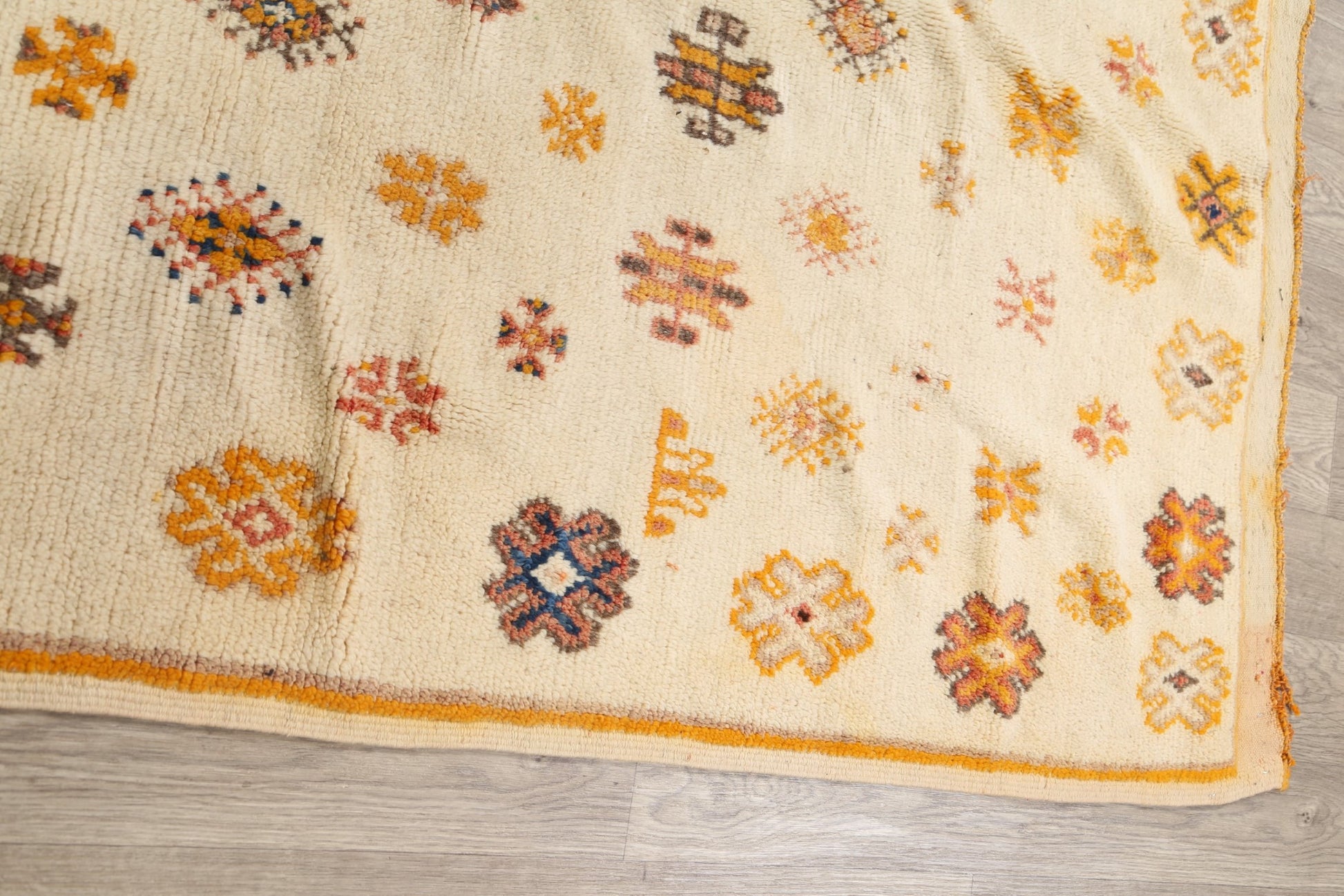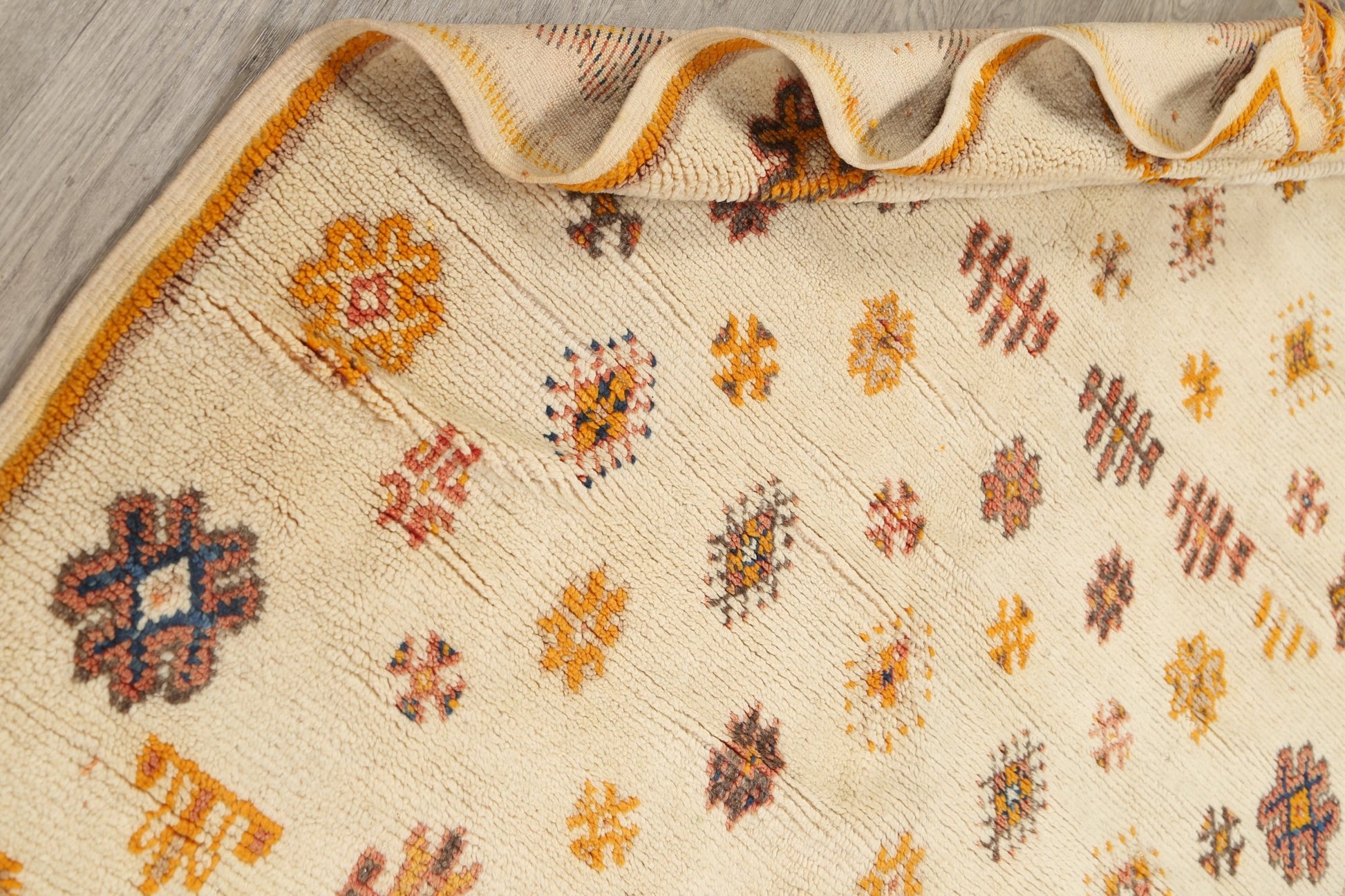 A Beautiful Genuine Morocco Moroccan rug is Hand Knotted by skillful weavers in Morocco with 100% Wool Material. This rug is in Very Good condition. dimensions are 7' 10'' X 4' 7'' in foot and 239 X 140 in centimeter. the primary color is Beige & Ivories.