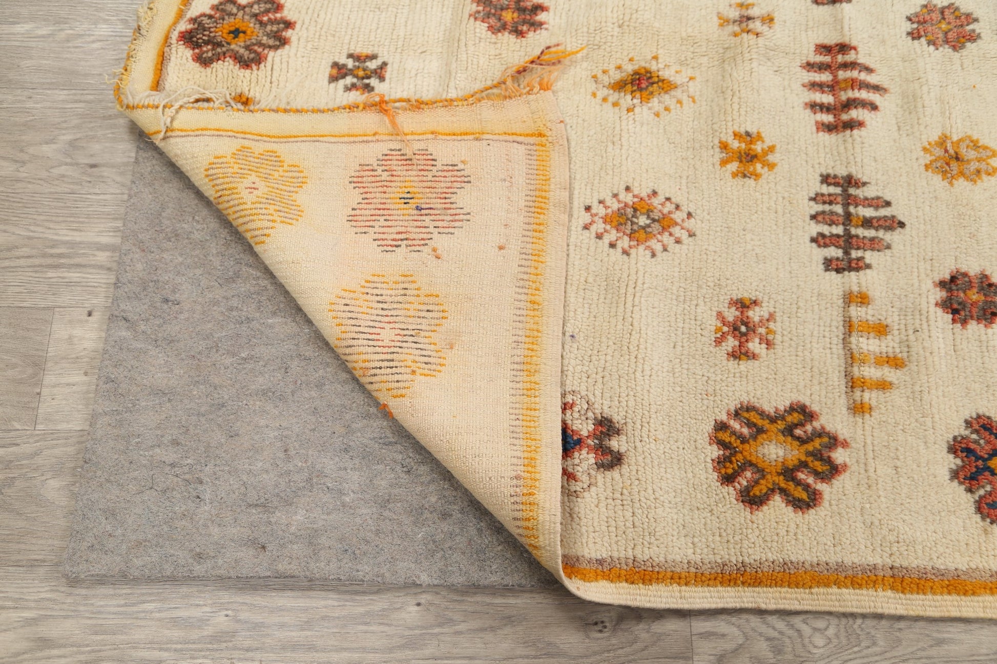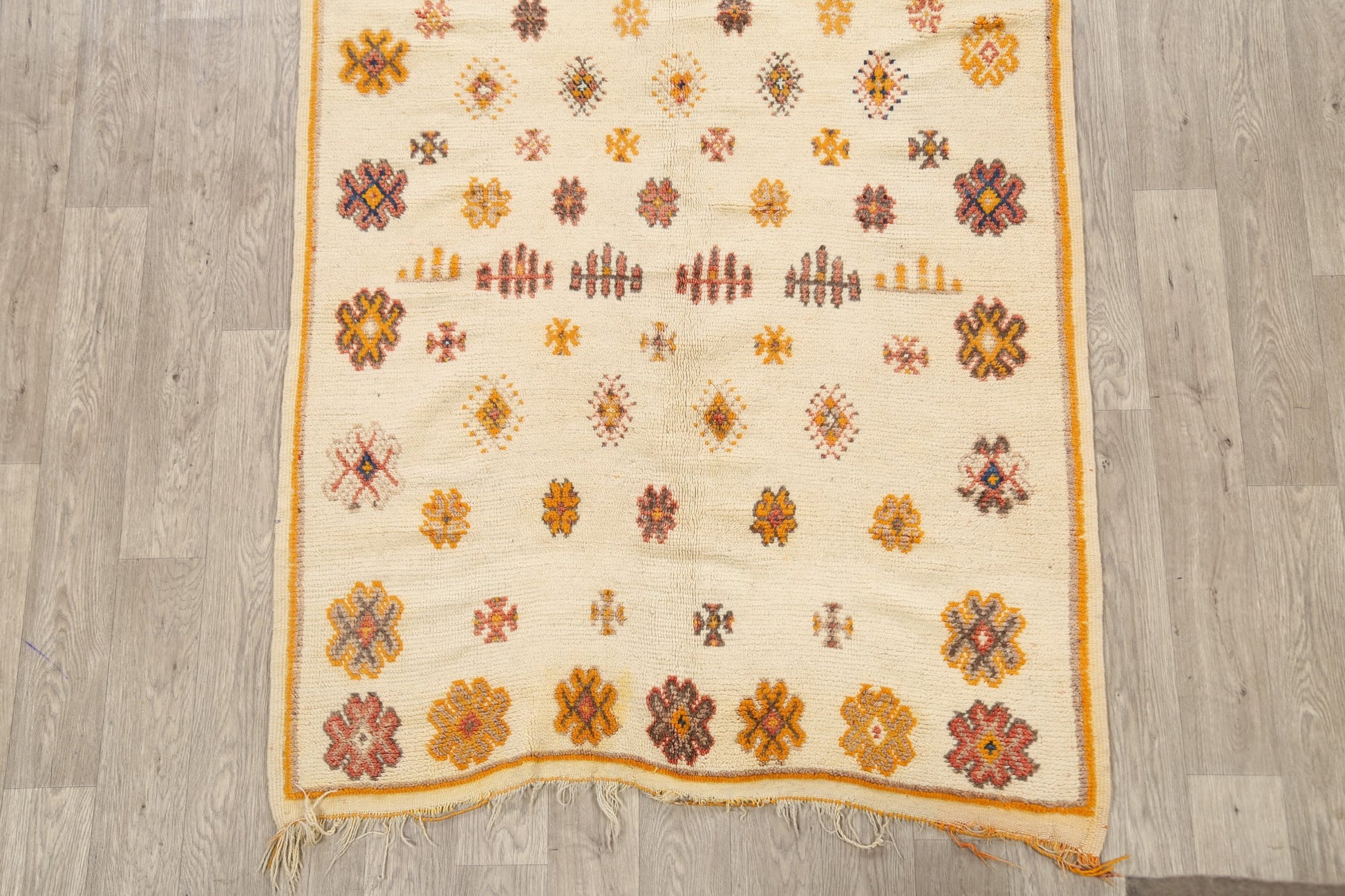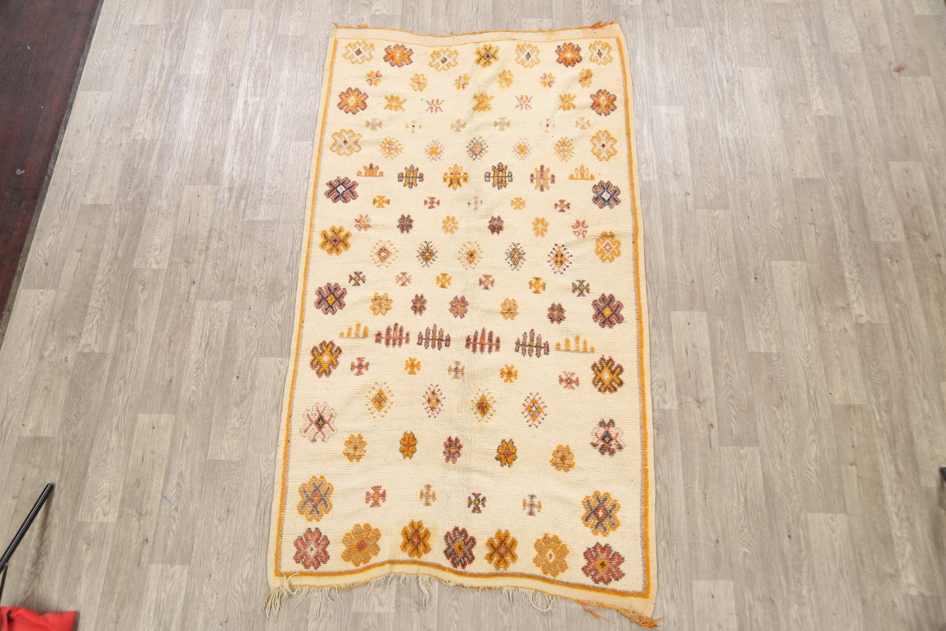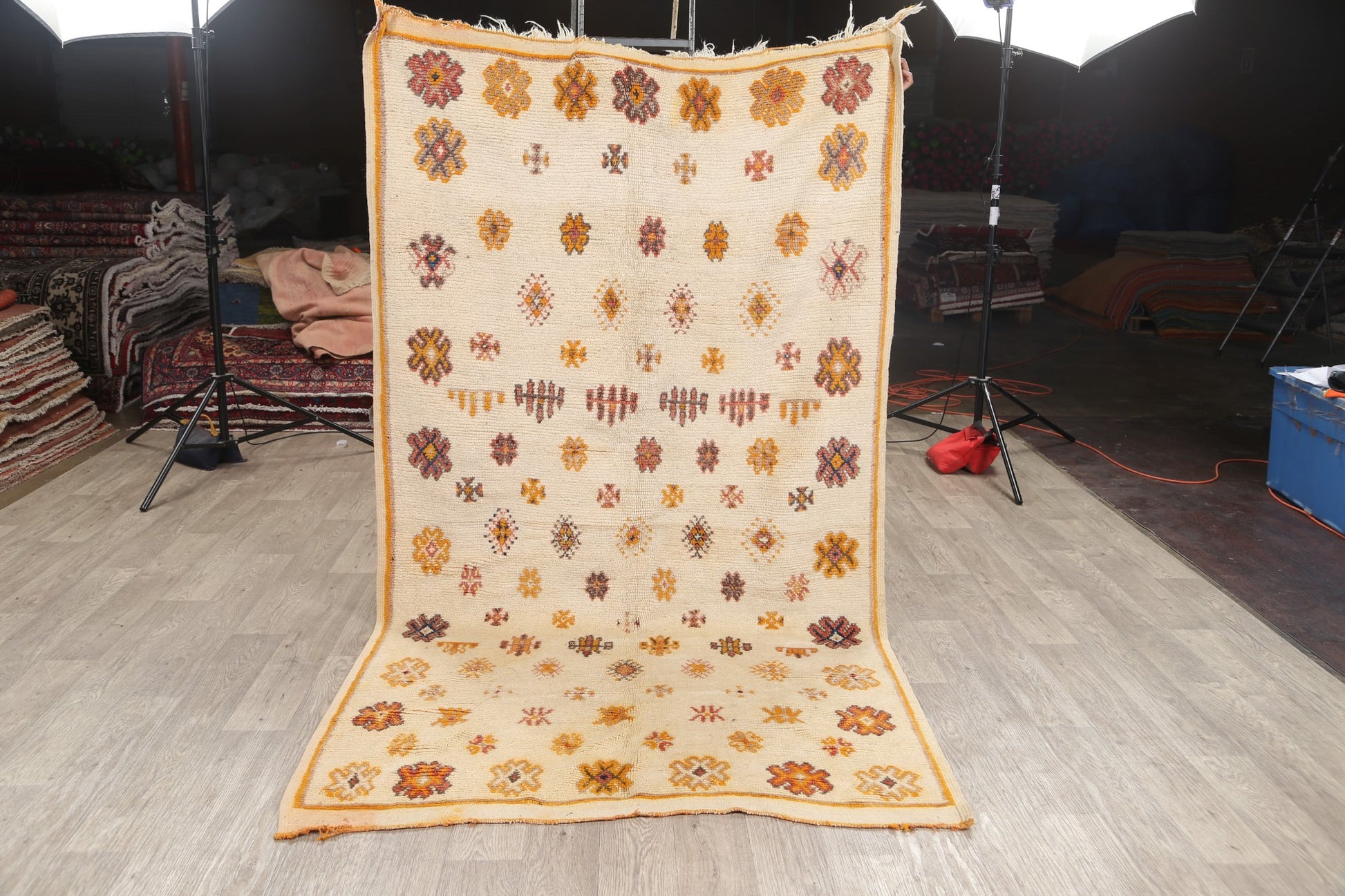 A Beautiful Genuine Morocco Moroccan rug is Hand Knotted by skillful weavers in Morocco with 100% Wool Material. This rug is in Very Good condition. dimensions are 7' 10'' X 4' 7'' in foot and 239 X 140 in centimeter. the primary color is Beige & Ivories.