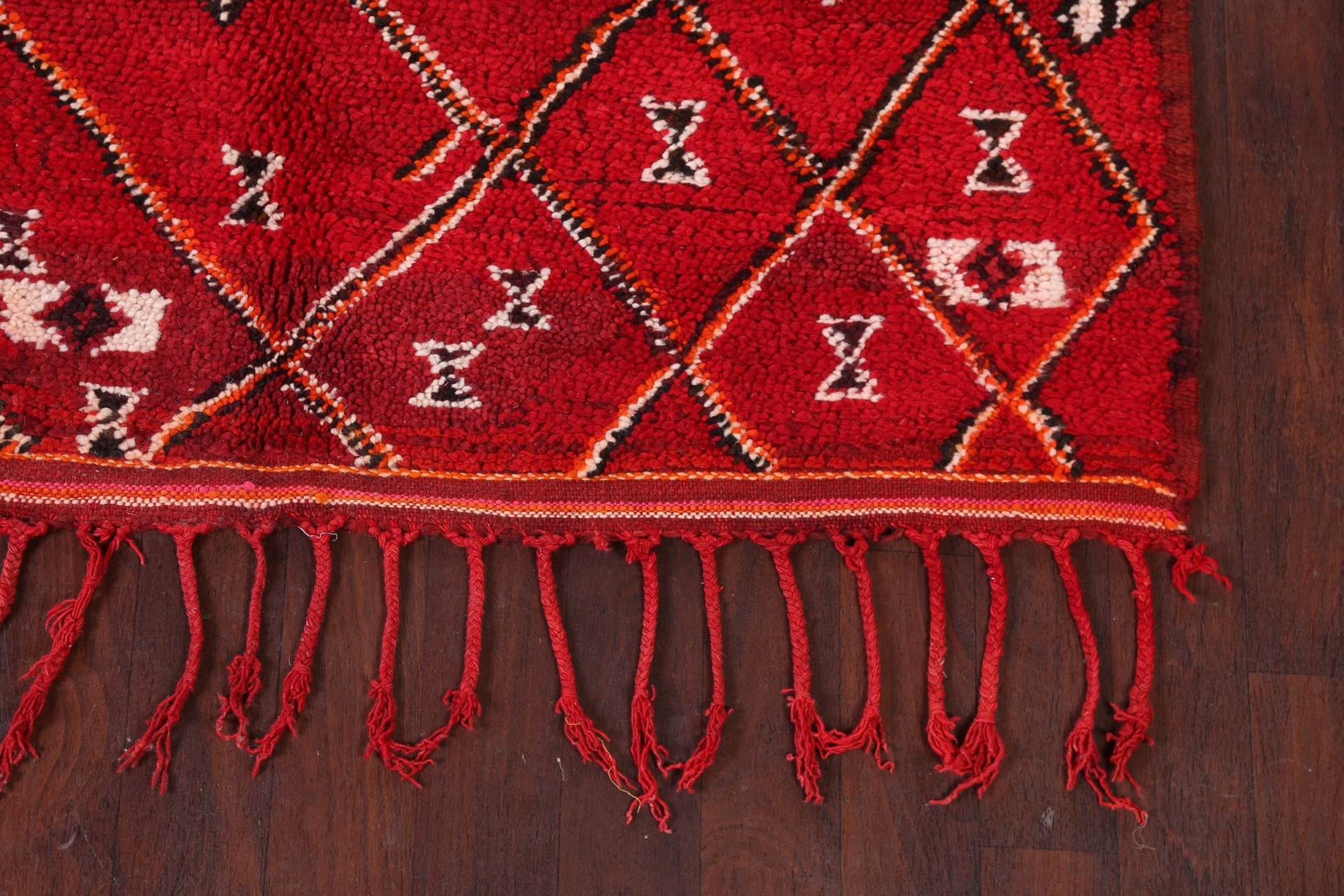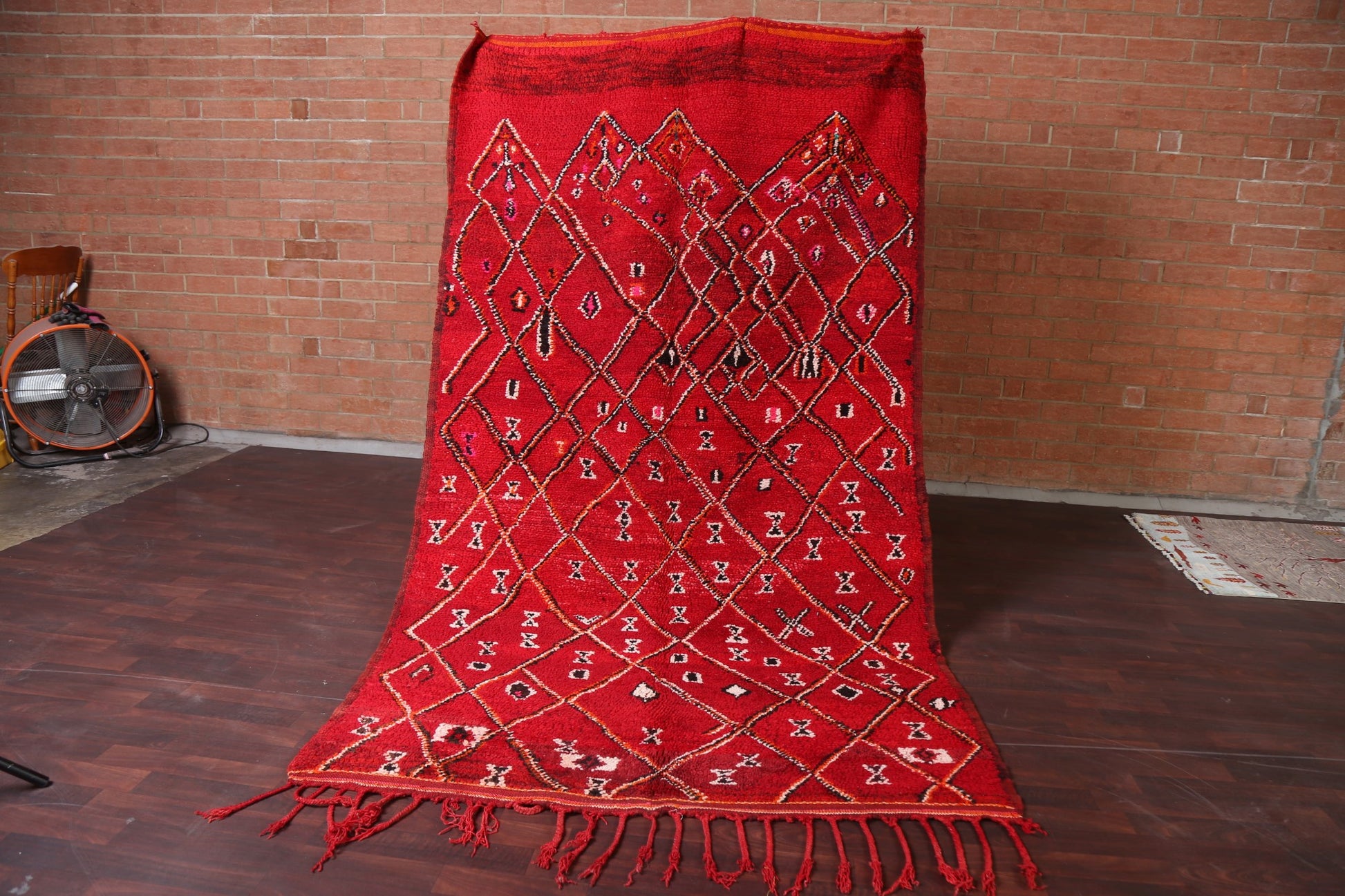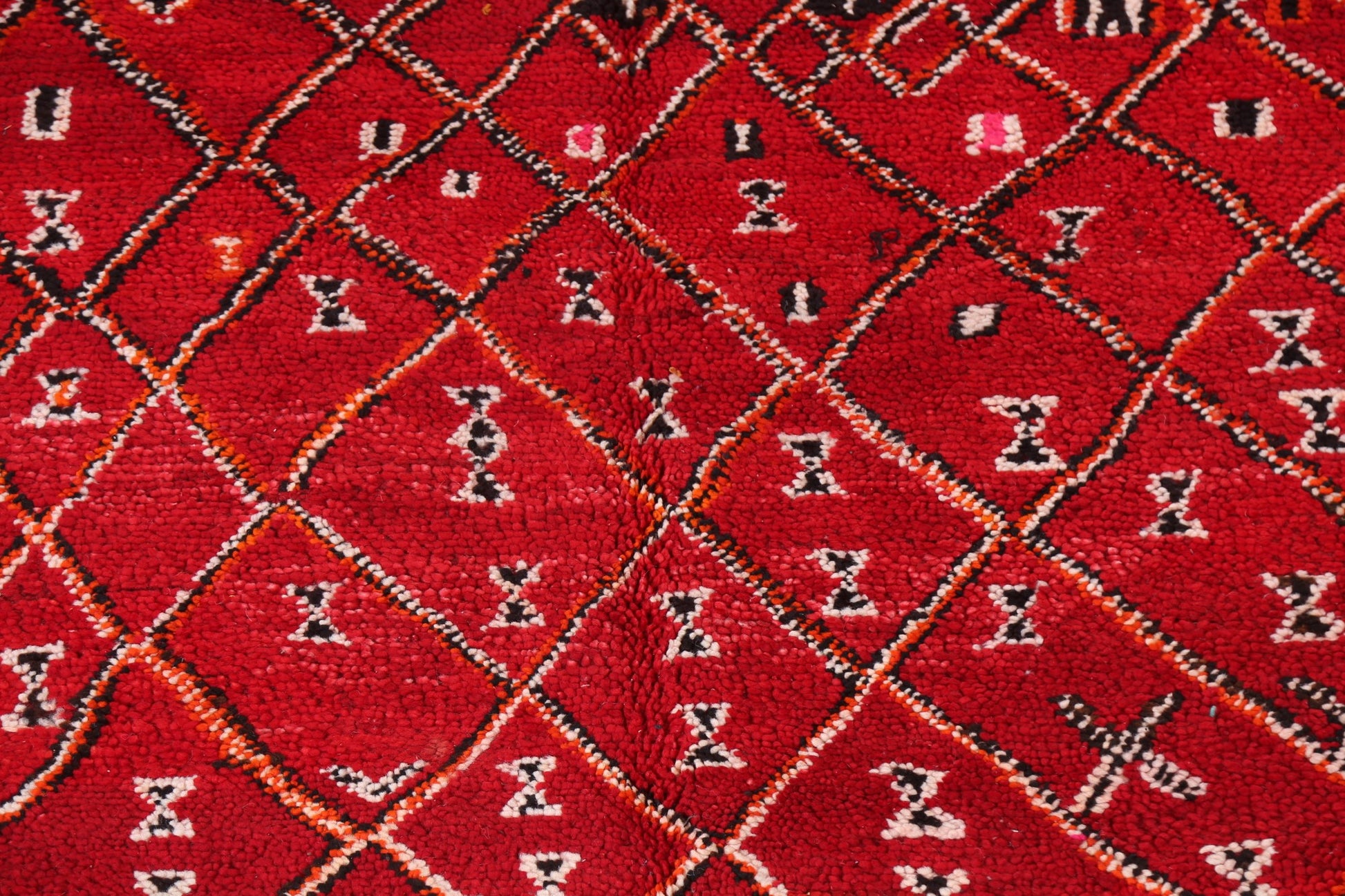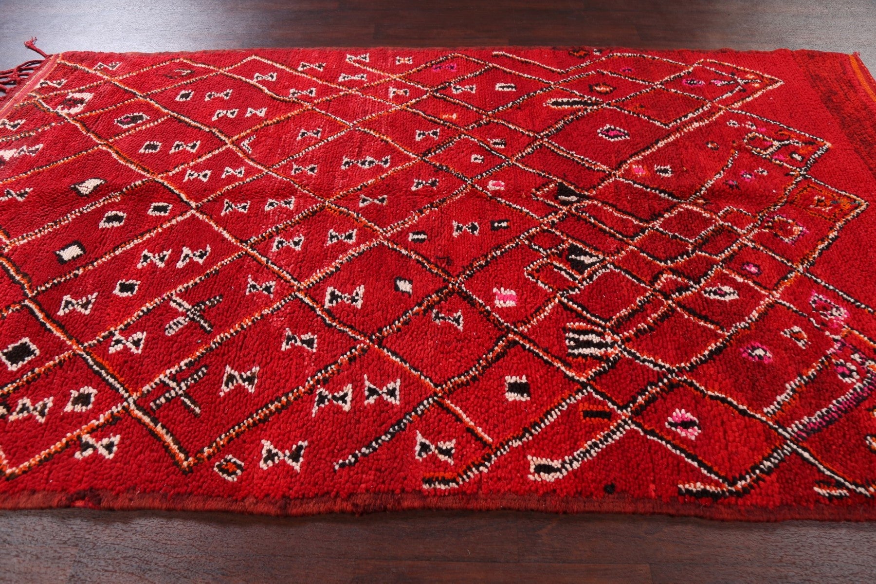 A Beautiful Genuine Morocco Moroccan rug is Hand Knotted by skillful weavers in Morocco with 100% Wool Material. This rug is in Very Good condition. dimensions are 9' 8'' X 5' 8'' in foot and 295 X 173 in centimeter. the primary color is Red.