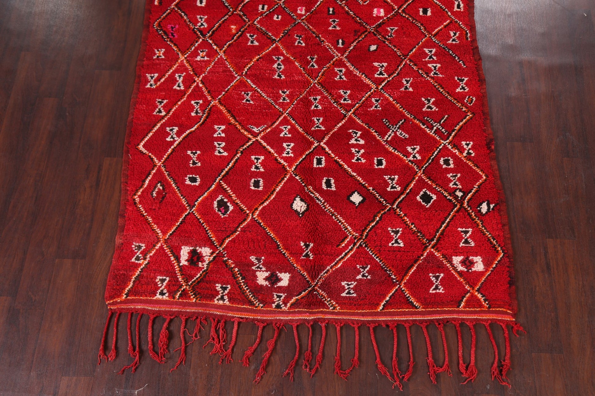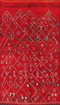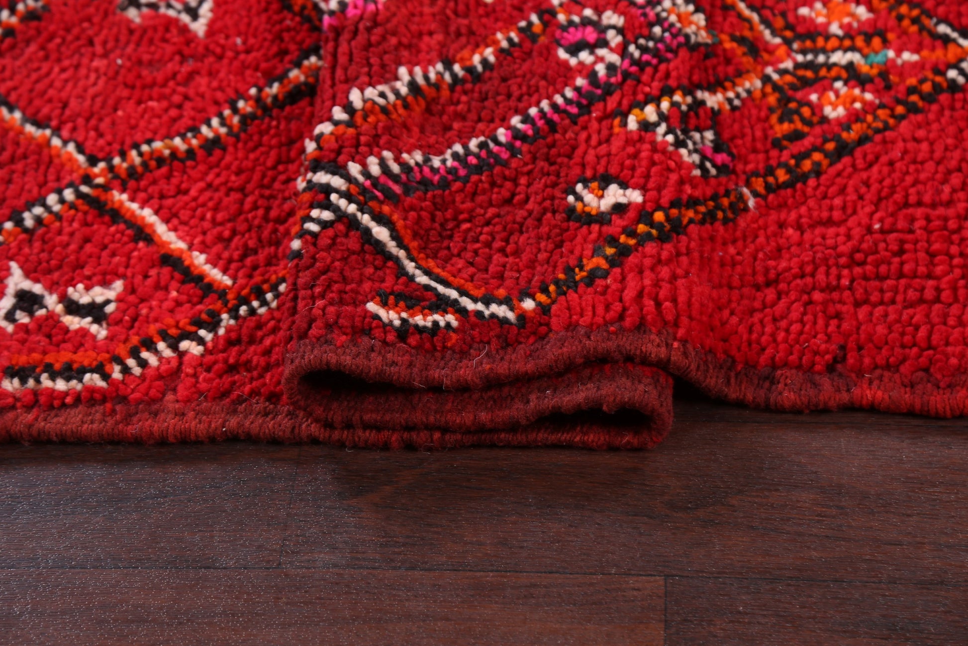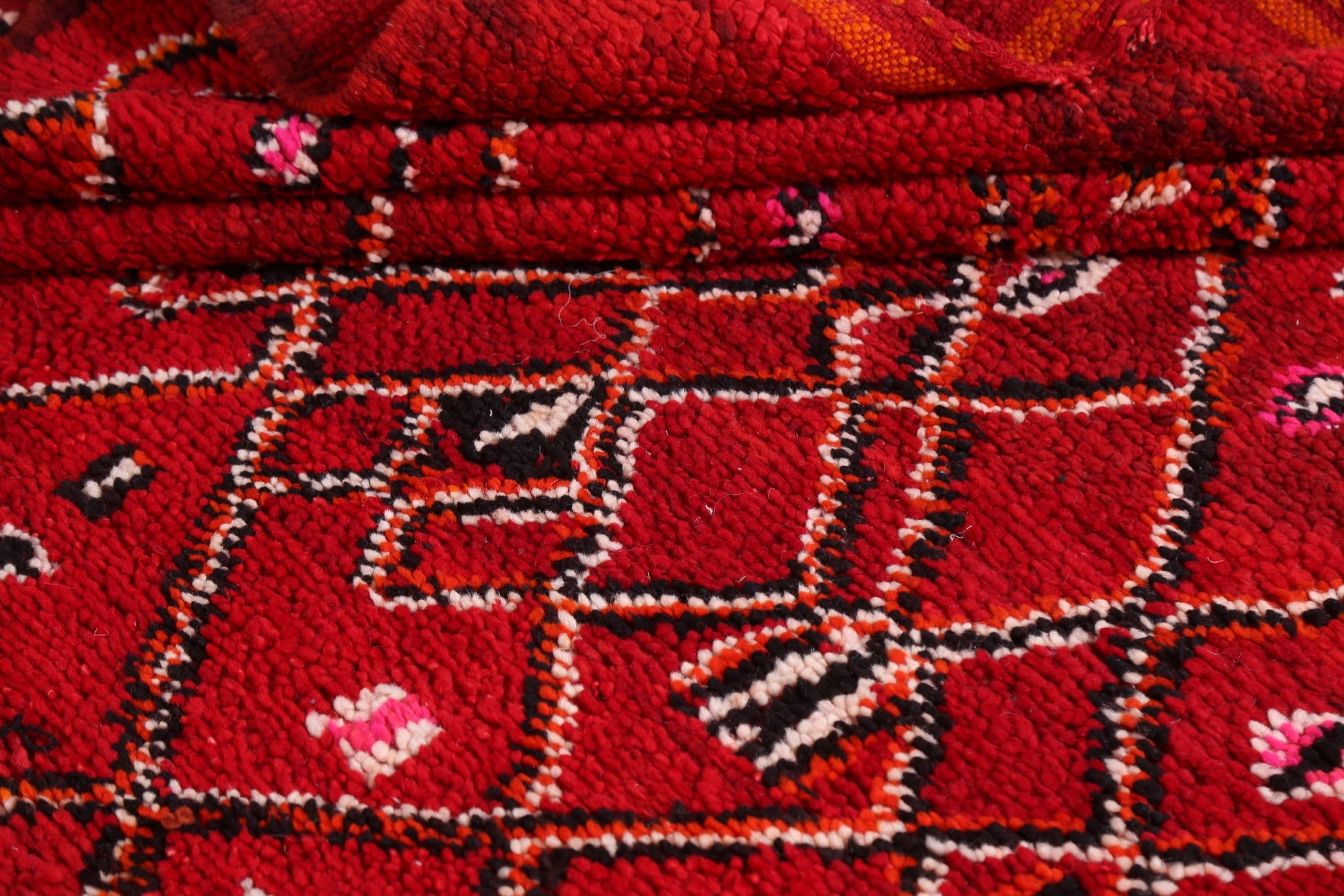 A Beautiful Genuine Morocco Moroccan rug is Hand Knotted by skillful weavers in Morocco with 100% Wool Material. This rug is in Very Good condition. dimensions are 9' 8'' X 5' 8'' in foot and 295 X 173 in centimeter. the primary color is Red.
