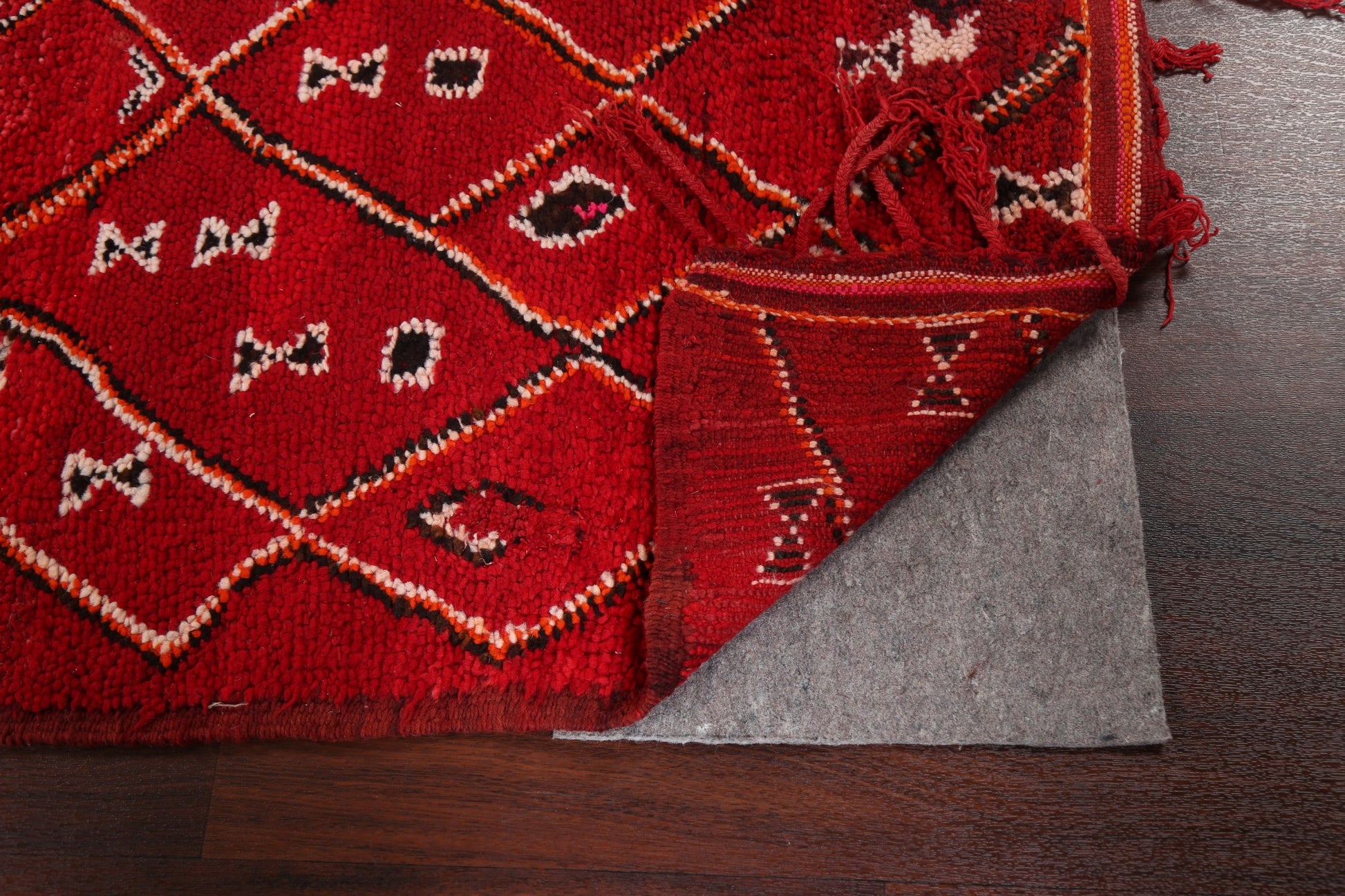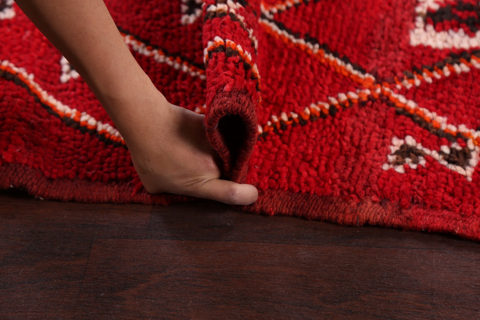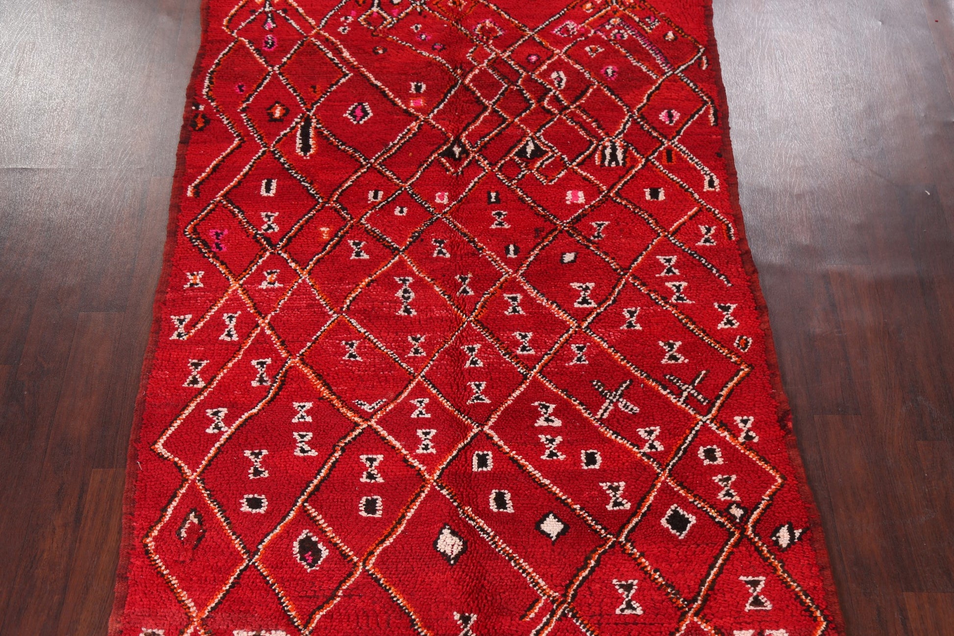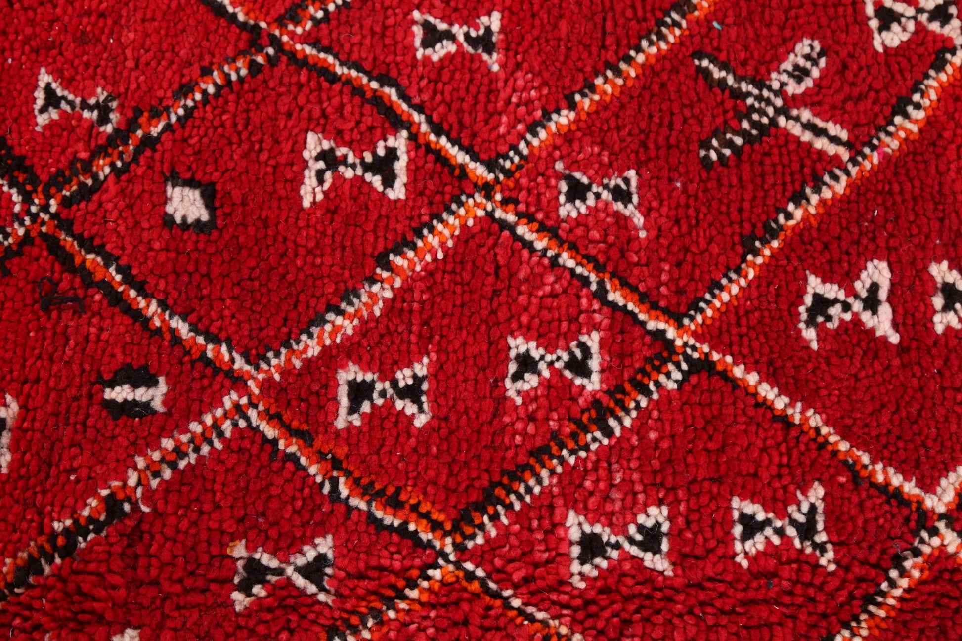 A Beautiful Genuine Morocco Moroccan rug is Hand Knotted by skillful weavers in Morocco with 100% Wool Material. This rug is in Very Good condition. dimensions are 9' 8'' X 5' 8'' in foot and 295 X 173 in centimeter. the primary color is Red.