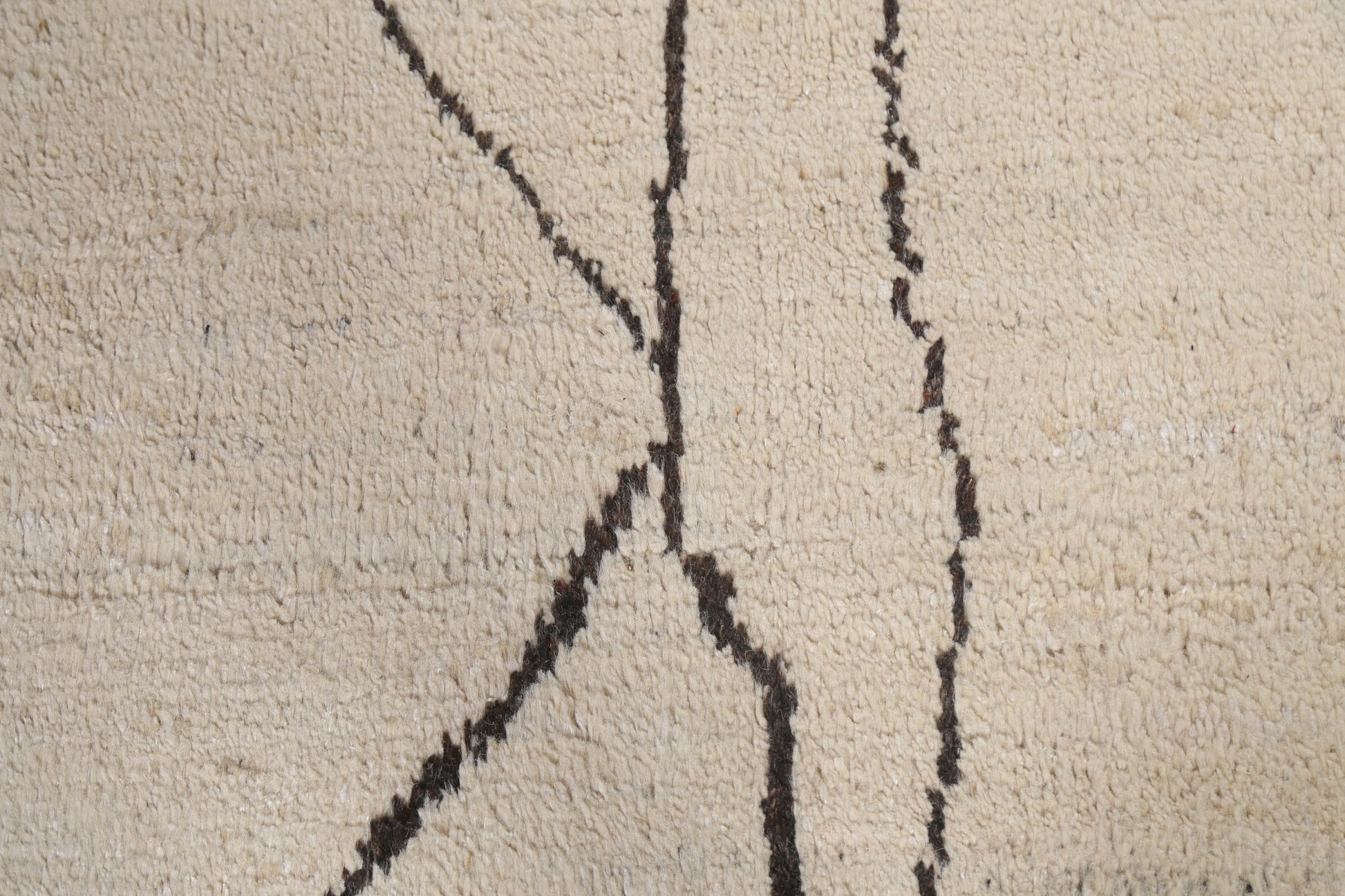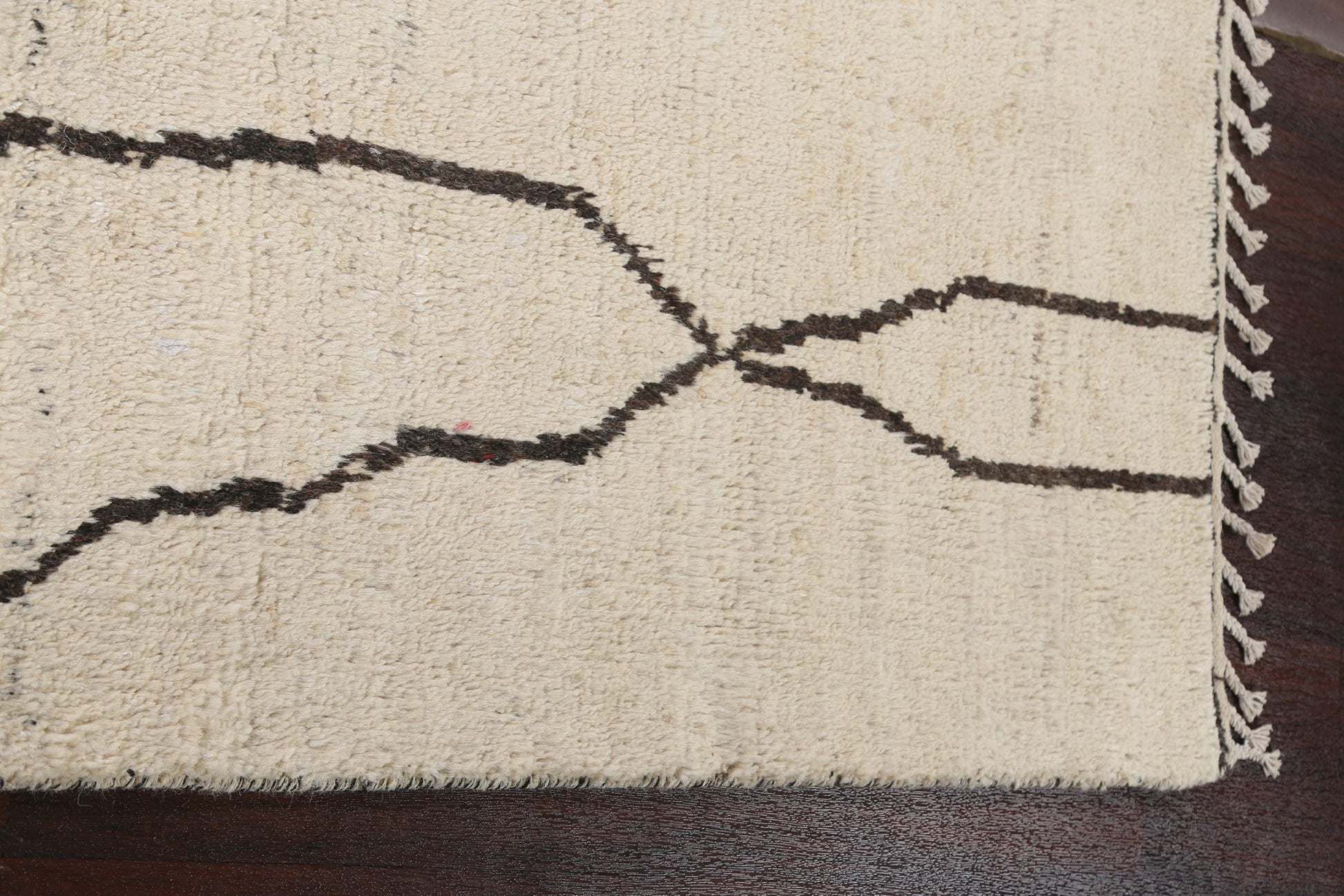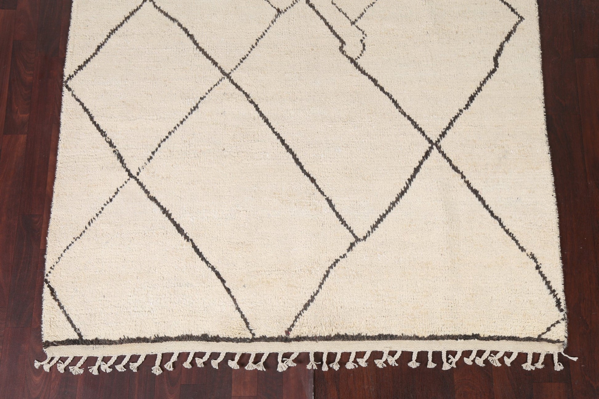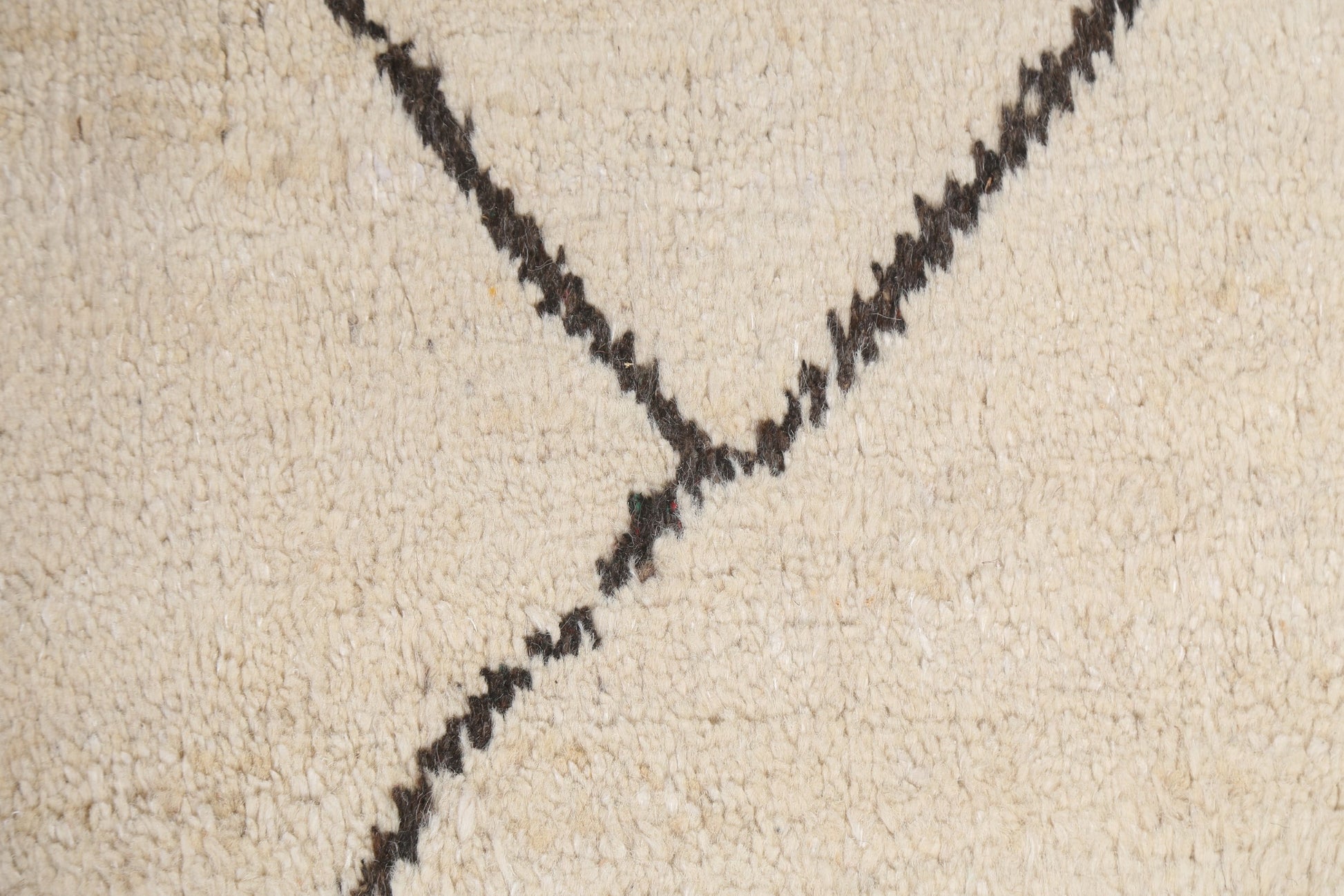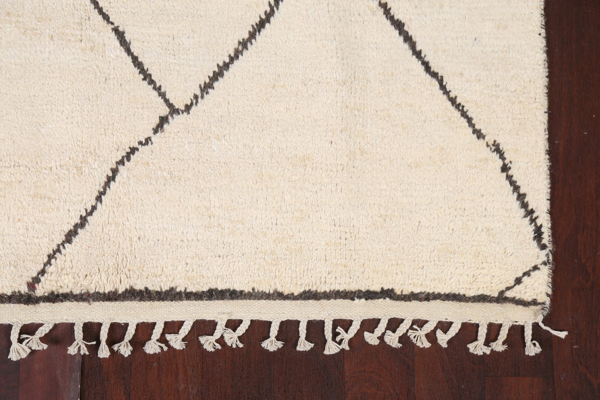 A Beautiful Genuine Pakistan Moroccan rug is Hand Knotted by skillful weavers in Pakistan with 100% Wool Material. This rug is in New, First Quality condition. dimensions are 9' 8'' X 5' 9'' in foot and 295 X 175 in centimeter. the primary color is Beige & Ivories.