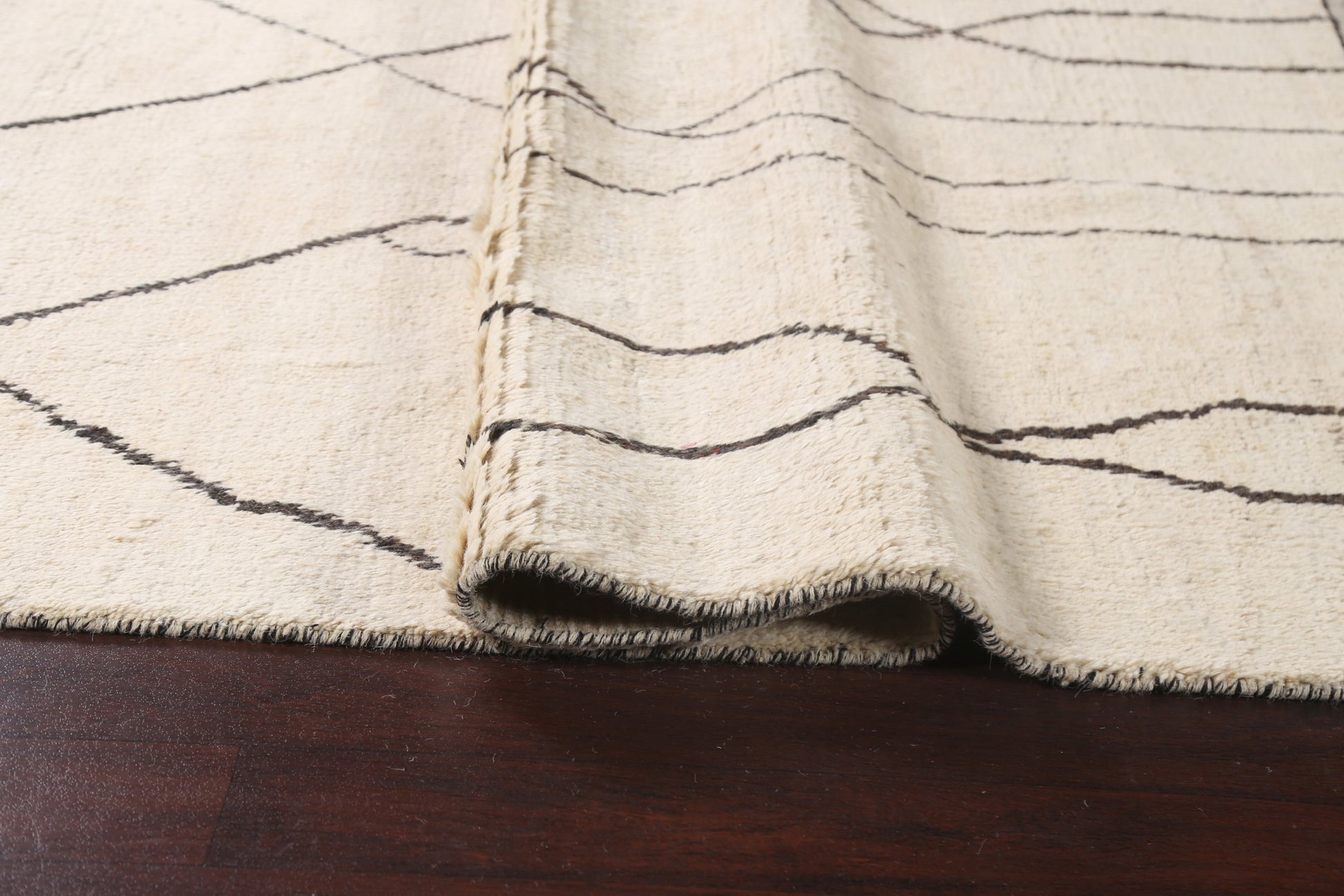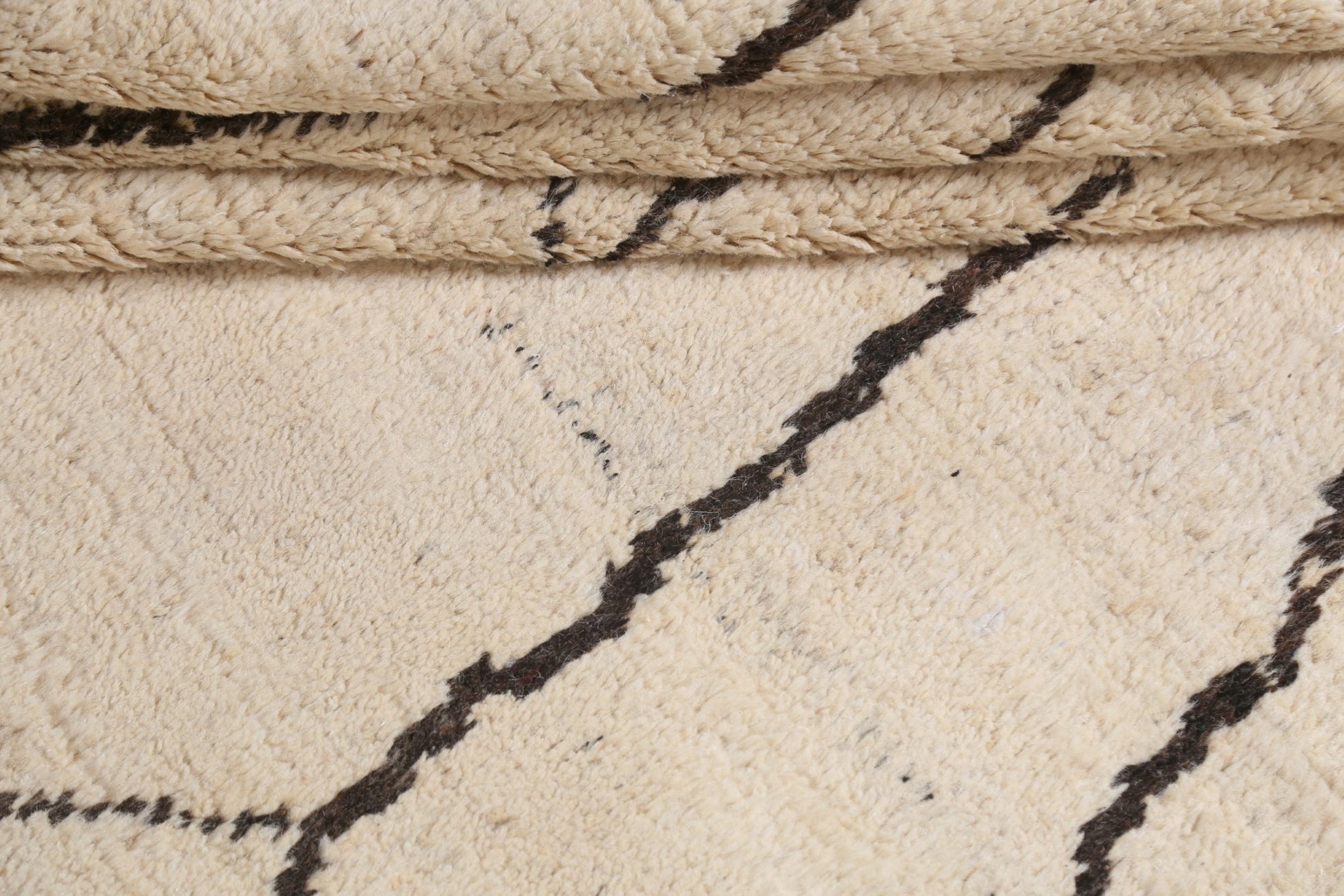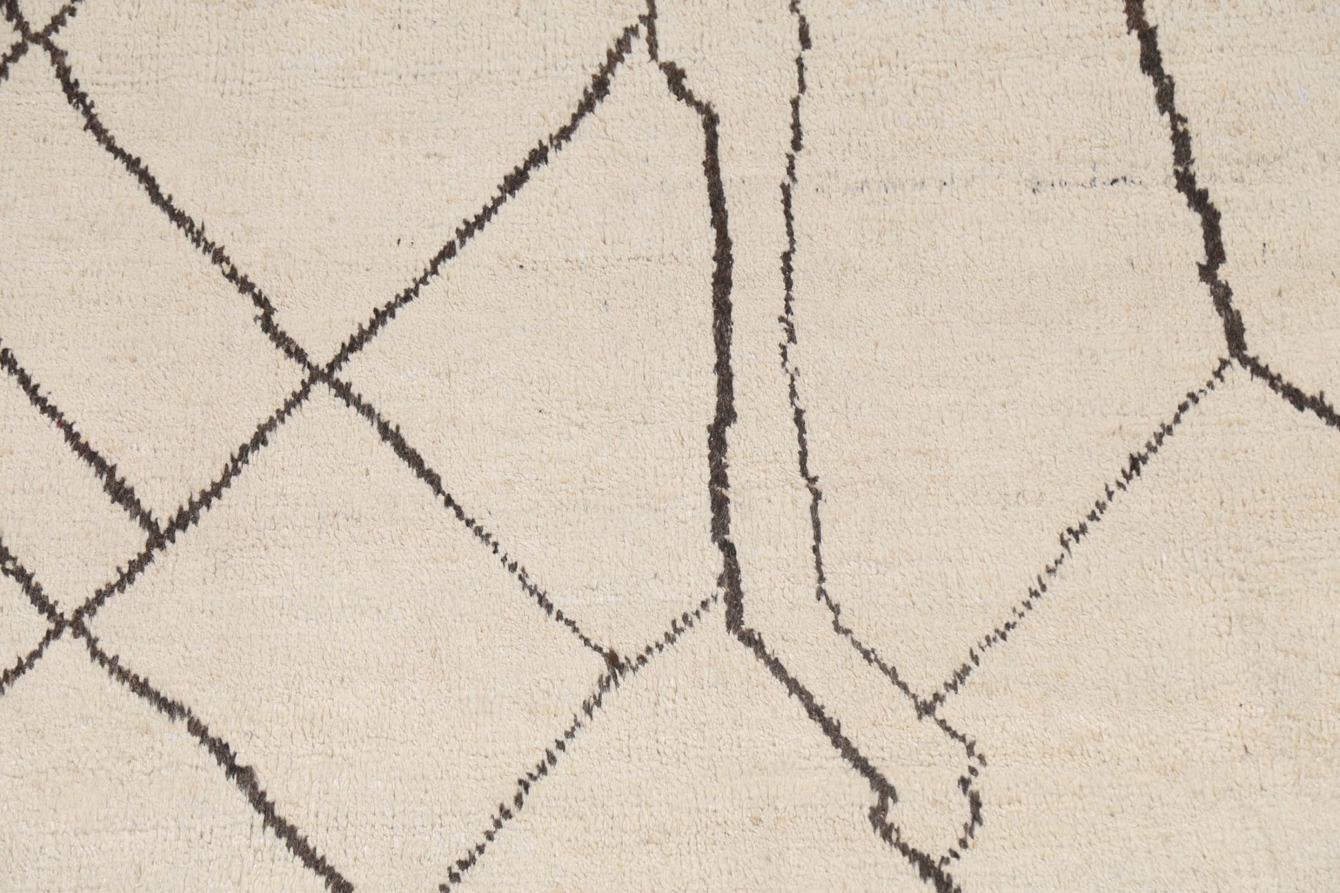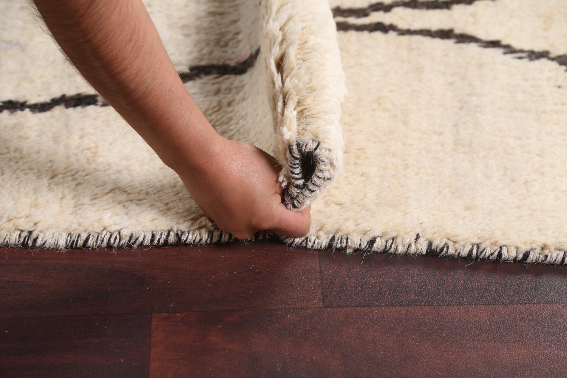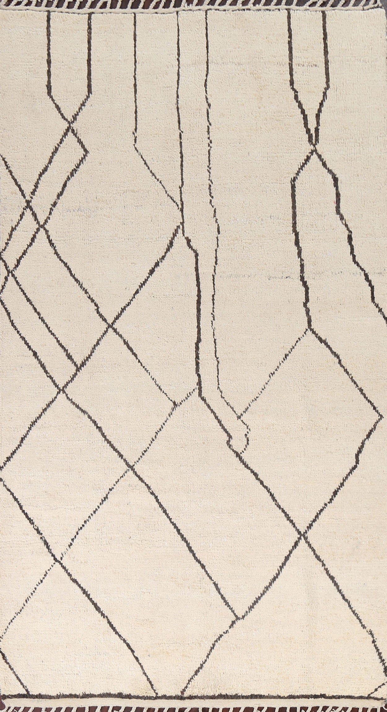A Beautiful Genuine Pakistan Moroccan rug is Hand Knotted by skillful weavers in Pakistan with 100% Wool Material. This rug is in New, First Quality condition. dimensions are 9' 8'' X 5' 9'' in foot and 295 X 175 in centimeter. the primary color is Beige & Ivories.