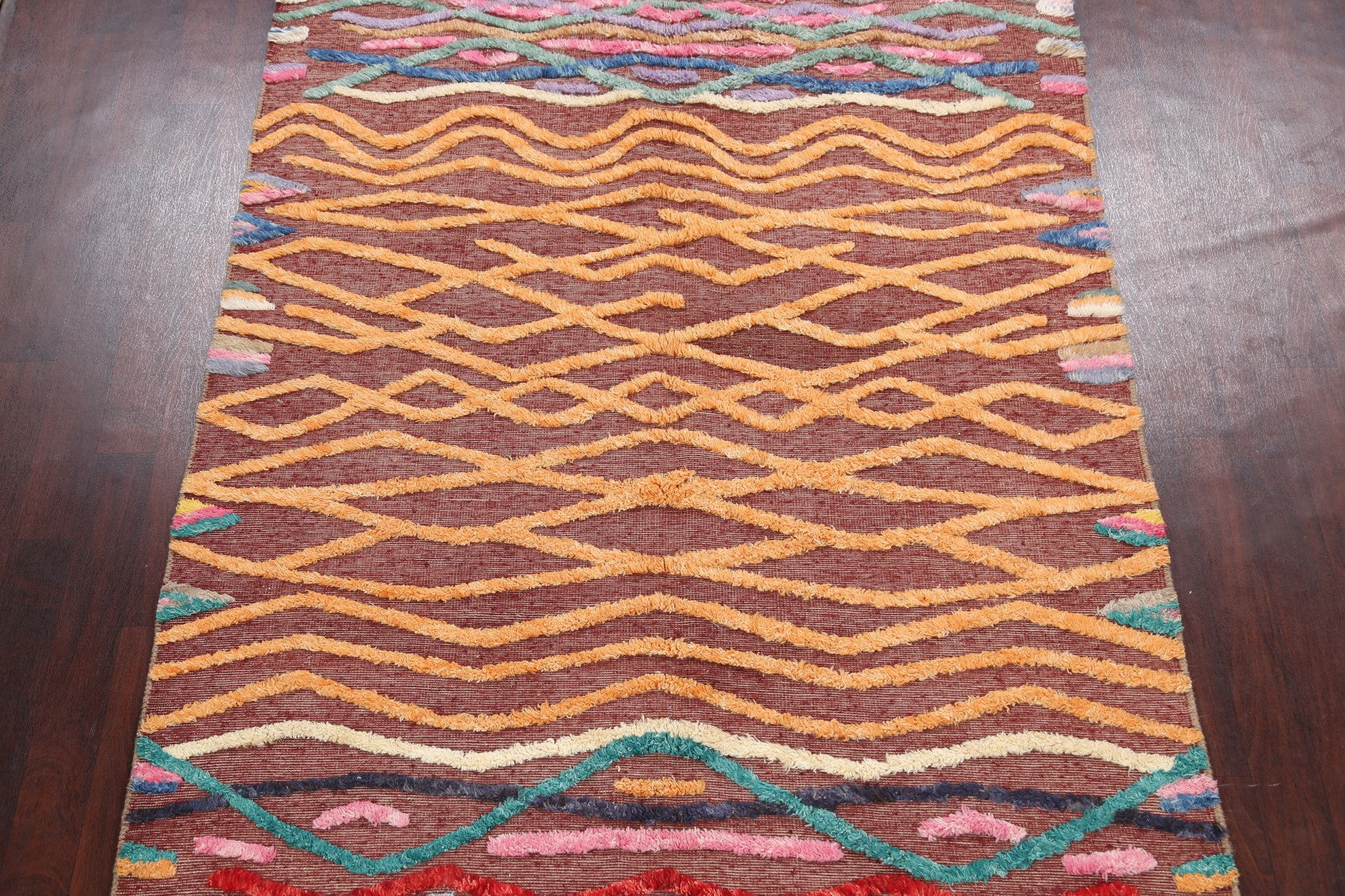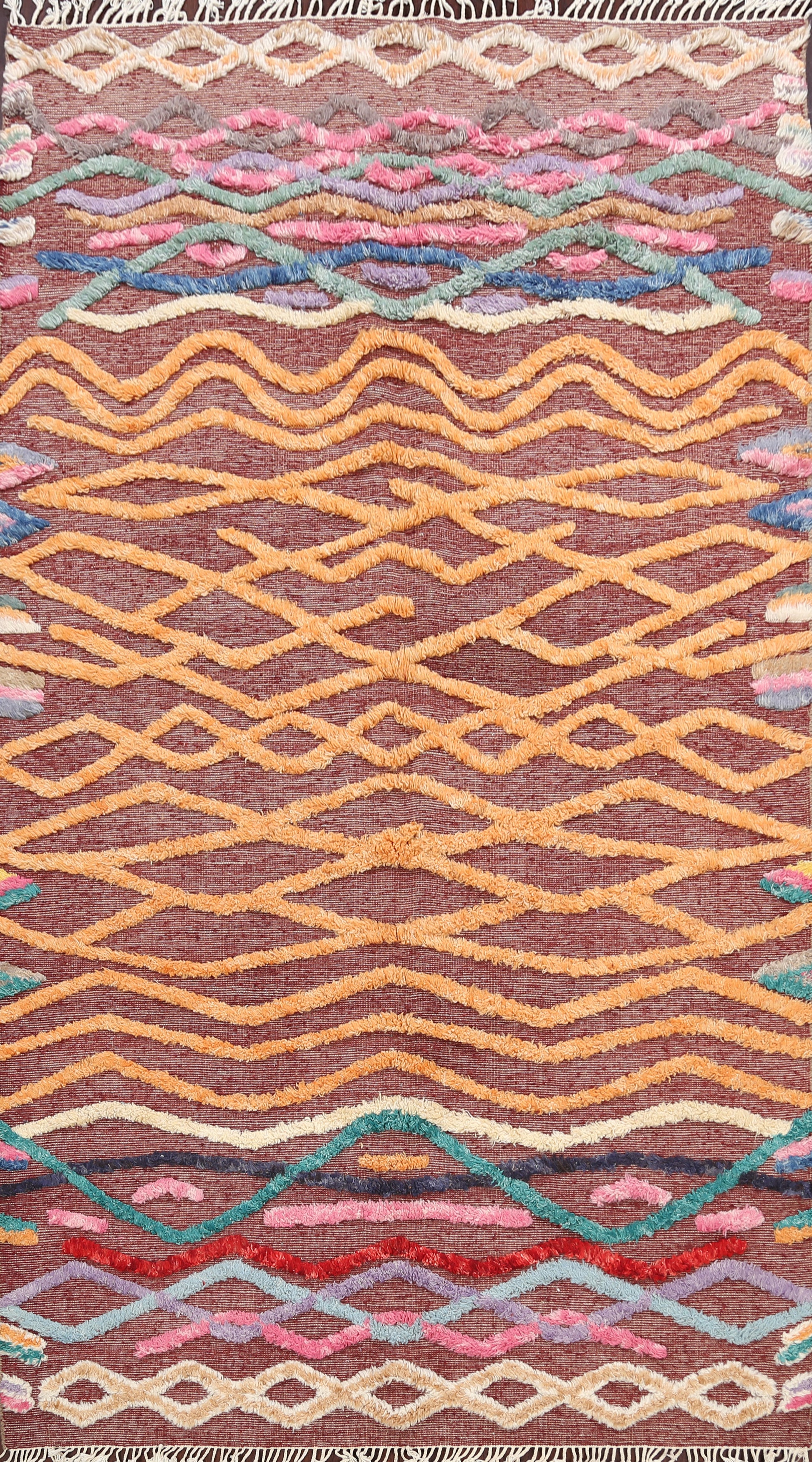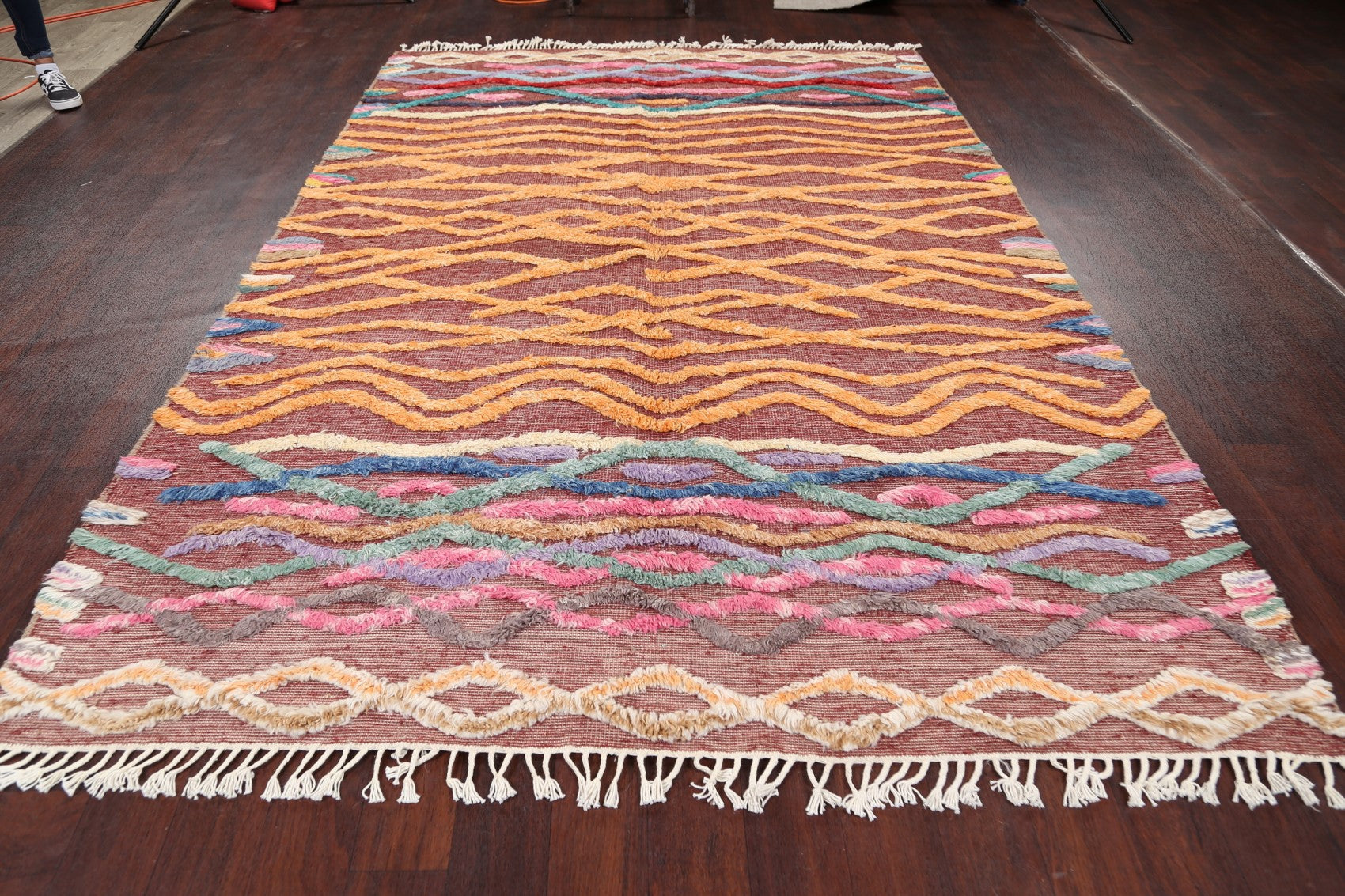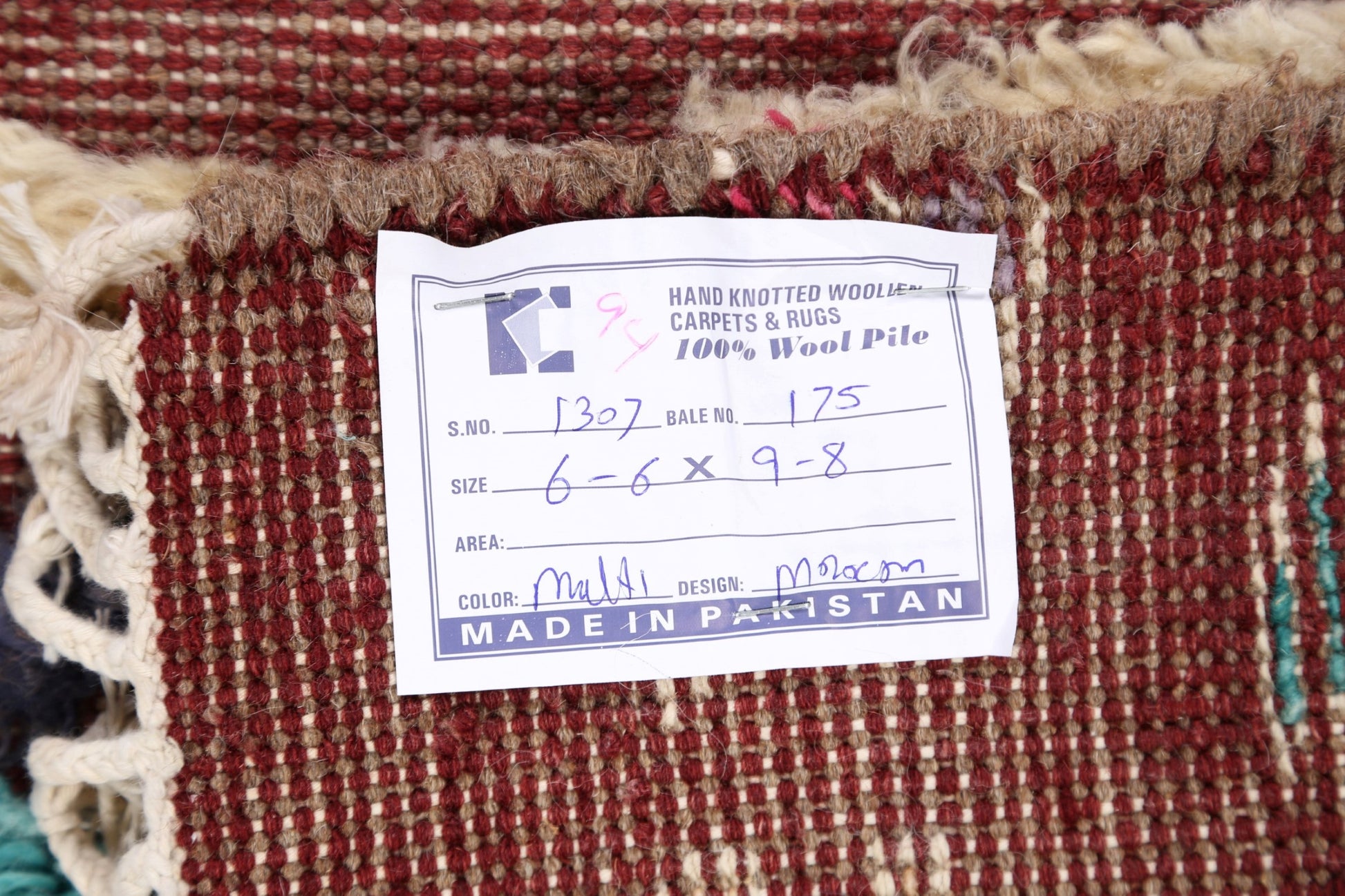 A Beautiful Genuine Pakistan Moroccan rug is Hand Knotted by skillful weavers in Pakistan with 100% Wool Material. This rug is in New, First Quality condition. dimensions are 9' 7'' X 6' 5'' in foot and 292 X 196 in centimeter. the primary color is Multi-Colored.