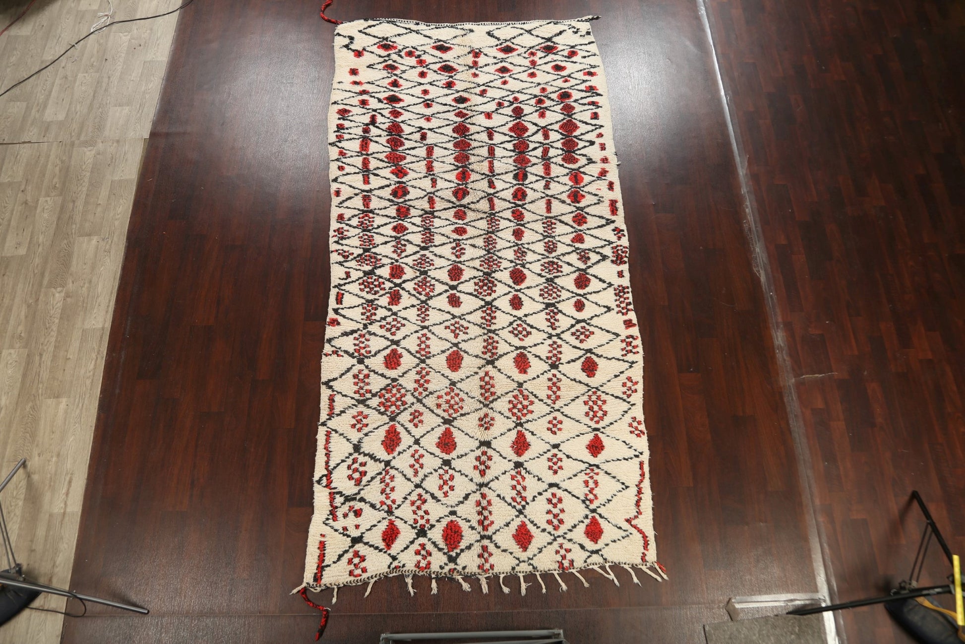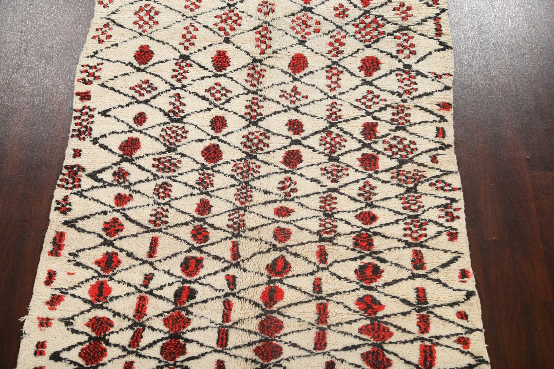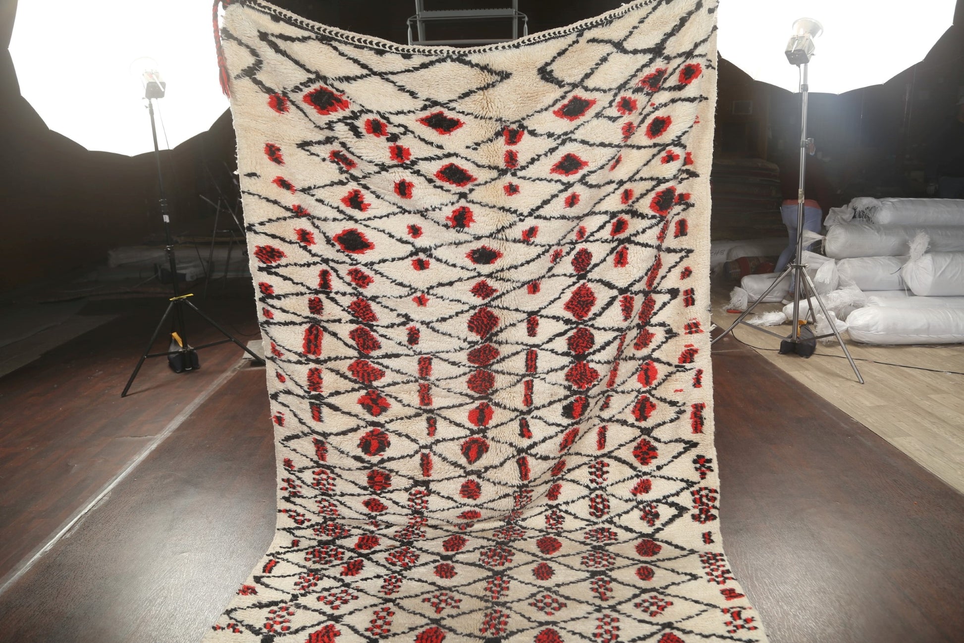 A Beautiful Genuine Morocco Moroccan rug is Hand Knotted by skillful weavers in Morocco with 100% Wool Material. This rug is in New, First Quality condition. dimensions are 11' 7'' X 5' 6'' in foot and 353 X 168 in centimeter. the primary color is Beige & Ivories.