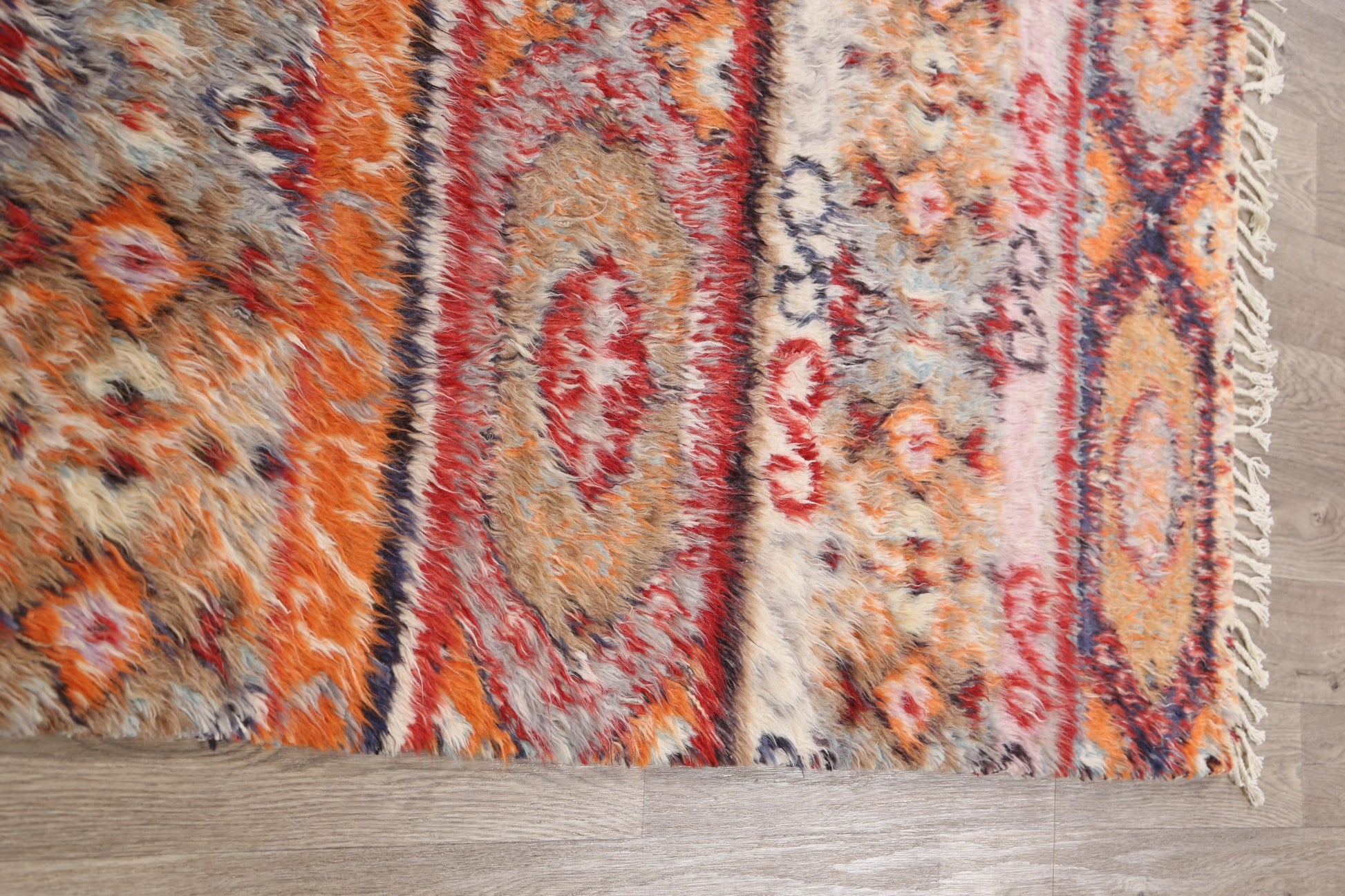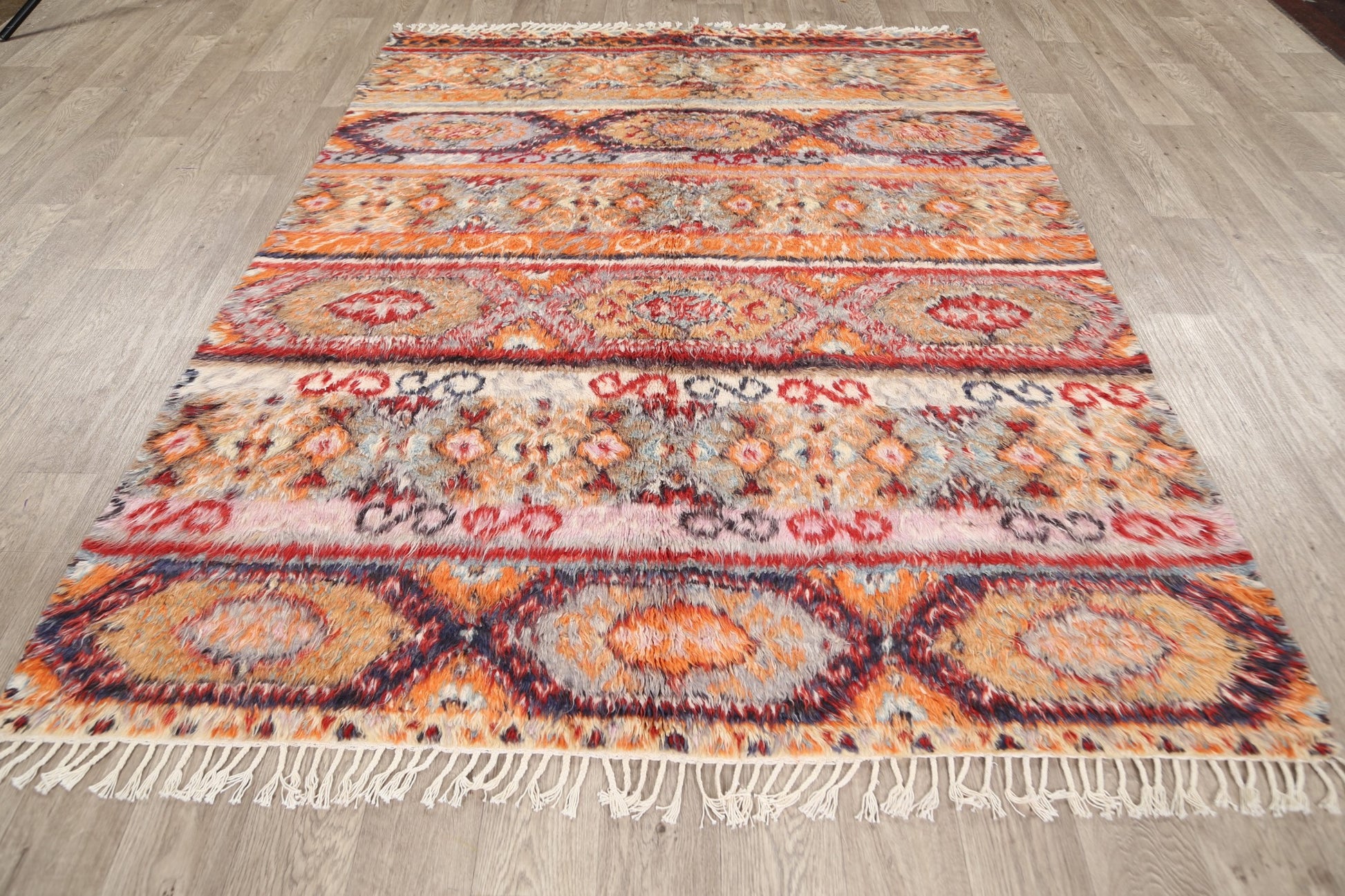 A Beautiful Genuine Pakistan Moroccan rug is Hand Knotted by skillful weavers in Pakistan with 100% Wool Material. This rug is in New, First Quality condition. dimensions are 7' 7'' X 5' 7'' in foot and 231 X 170 in centimeter. the primary color is Multi-Colored.