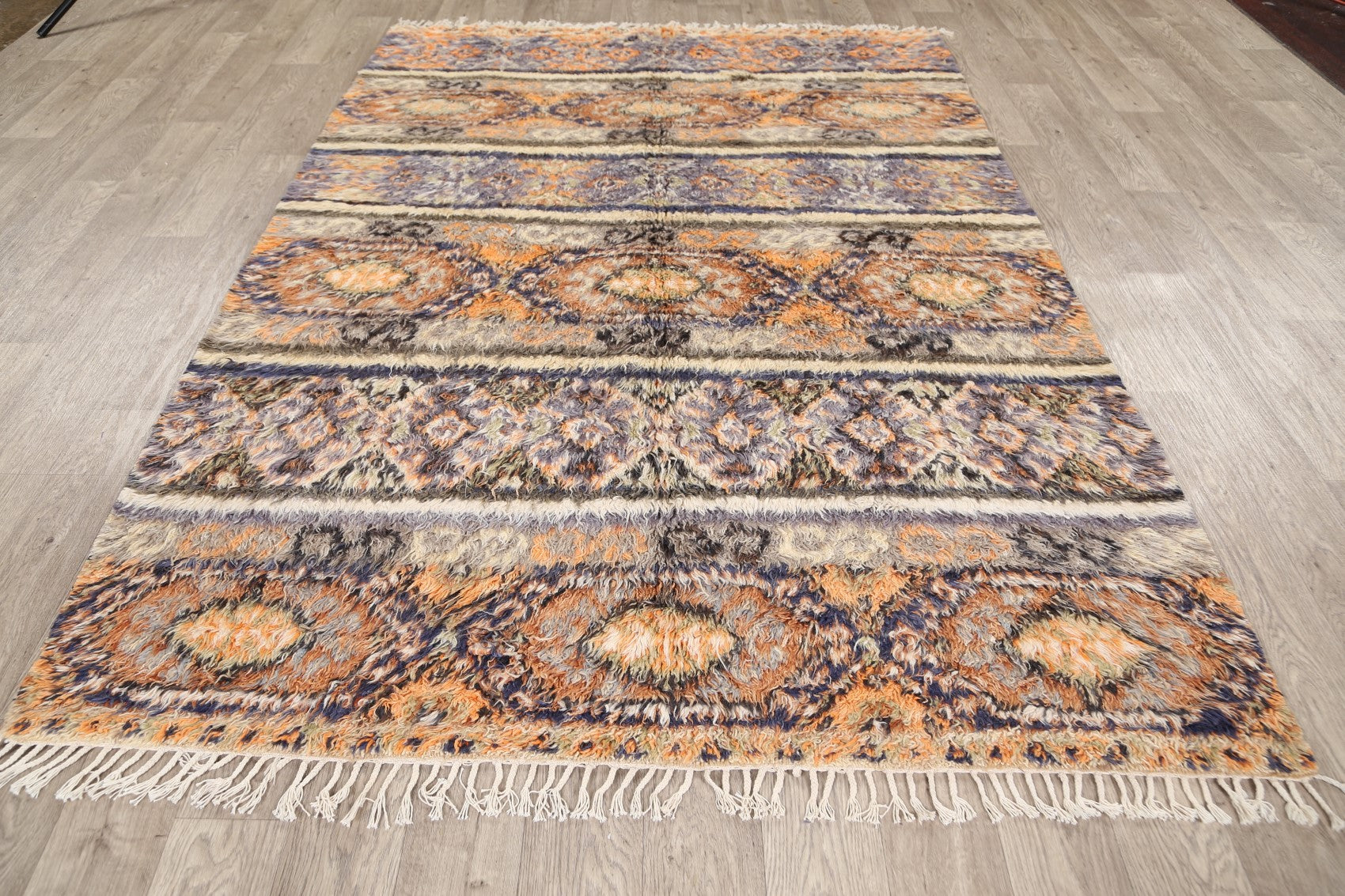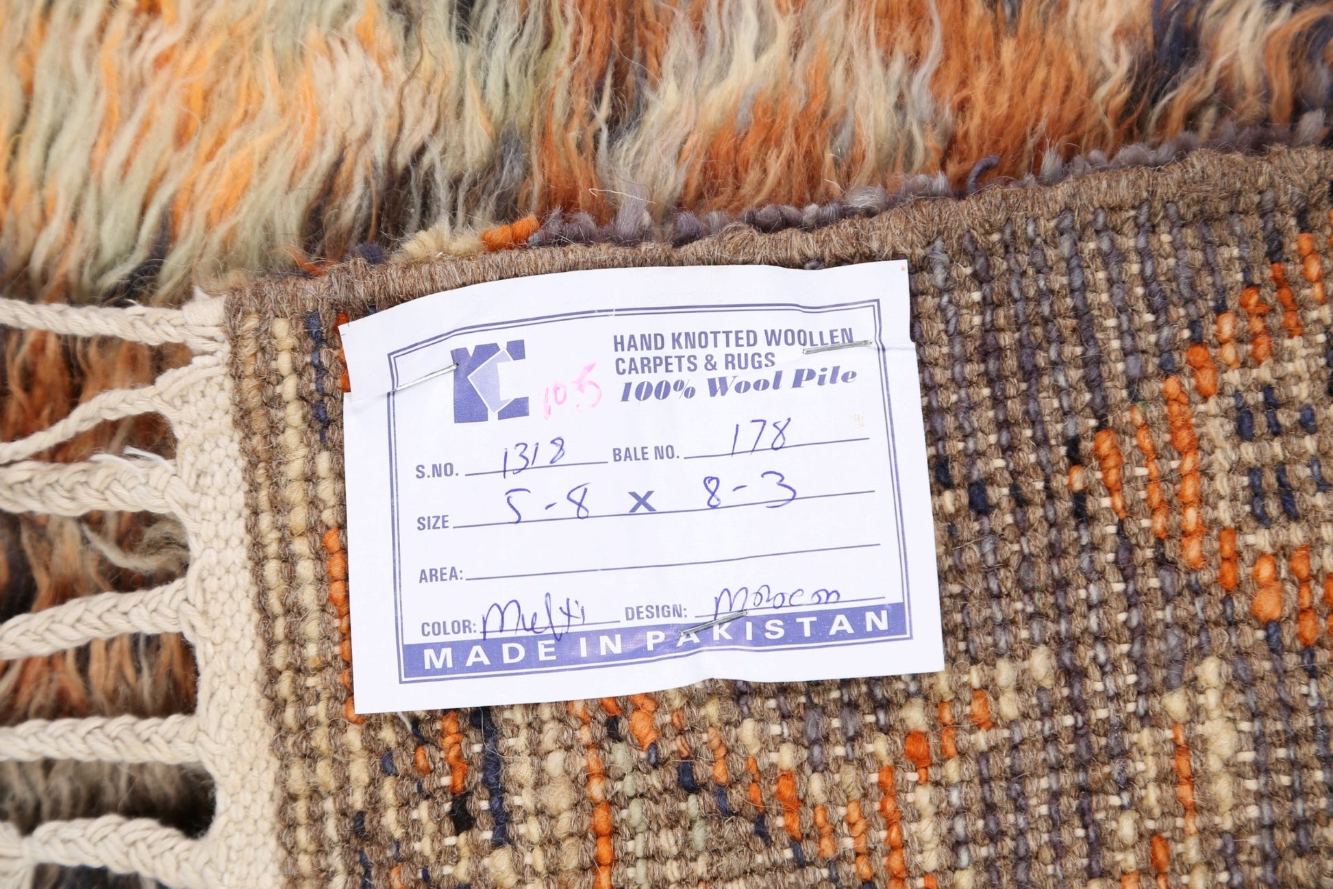 A Beautiful Genuine Pakistan Moroccan rug is Hand Knotted by skillful weavers in Pakistan with 100% Wool Material. This rug is in New, First Quality condition. dimensions are 8' 2'' X 5' 7'' in foot and 249 X 170 in centimeter. the primary color is Multi-Colored.