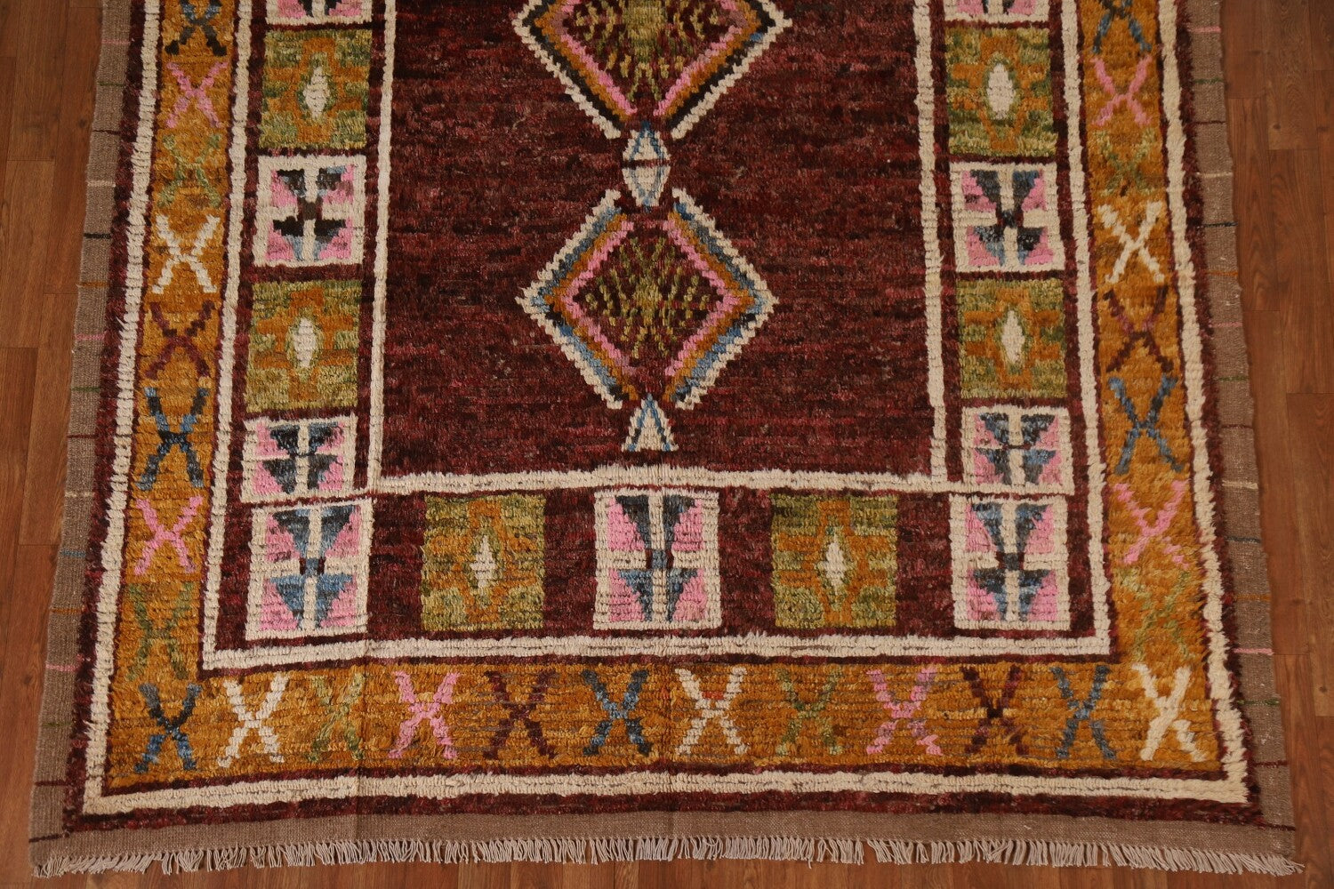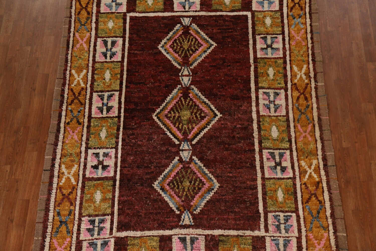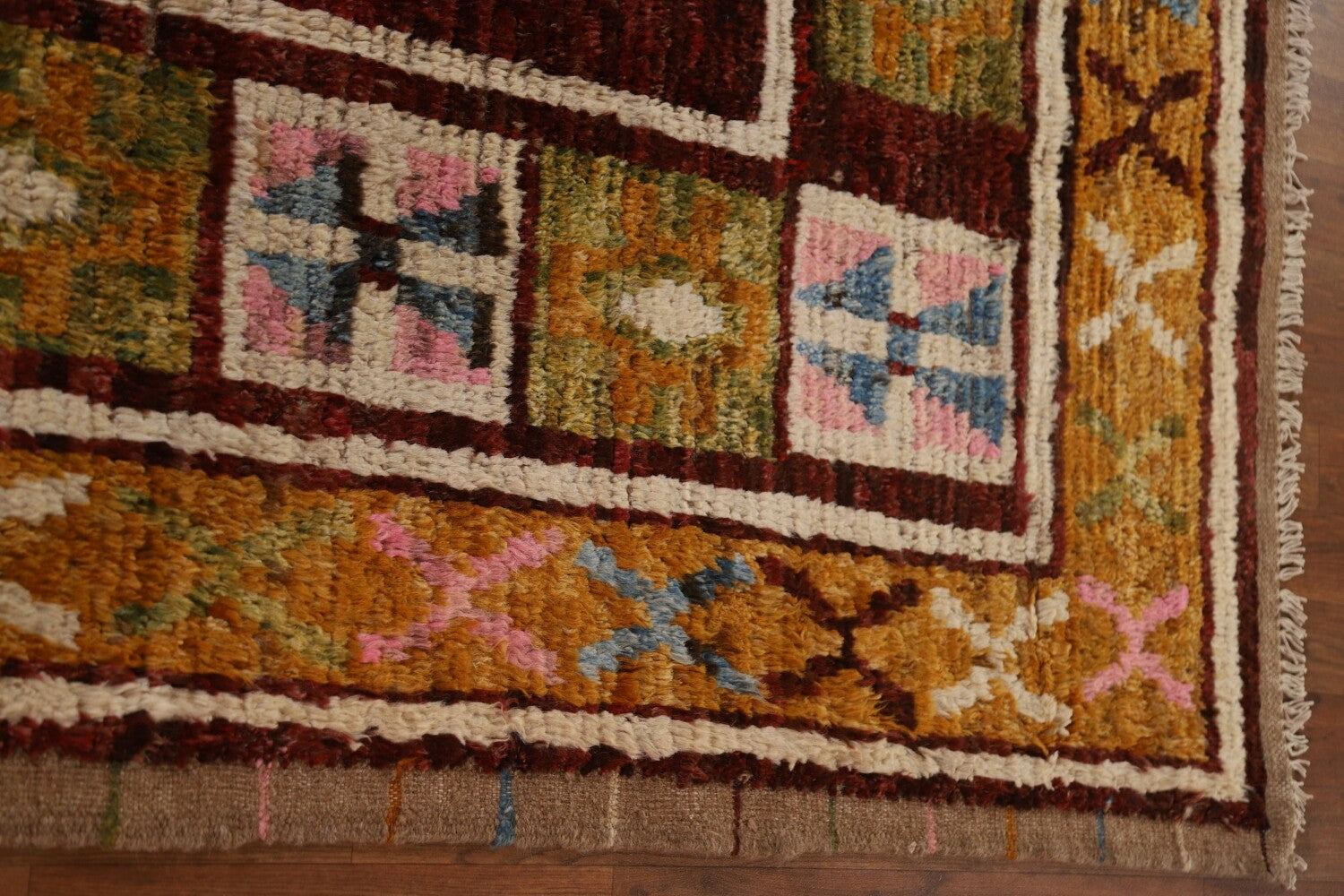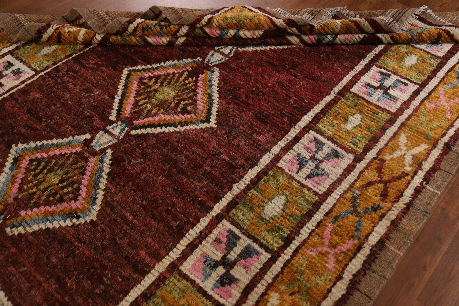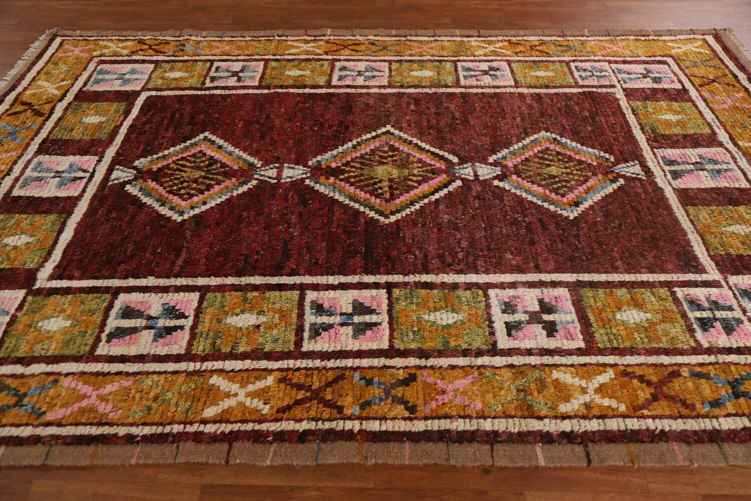 A Beautiful Genuine Pakistan Moroccan rug is Hand Knotted by skillful weavers in Pakistan with 100% Wool Material. This rug is in condition. dimensions are 9' 8'' X 6' 6'' in foot and 295 X 198 in centimeter. the primary color is Red.