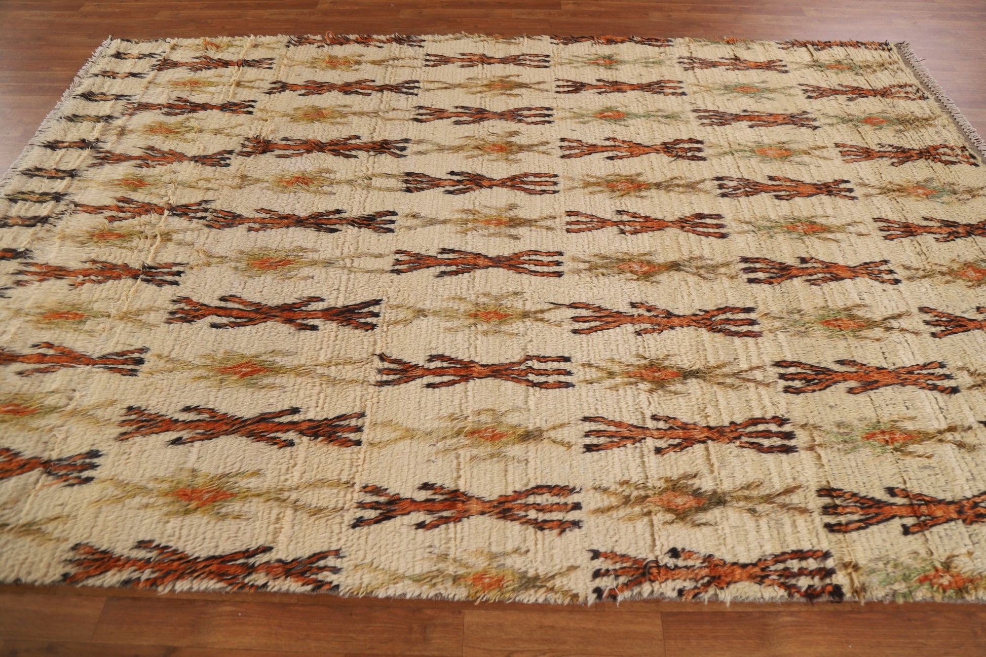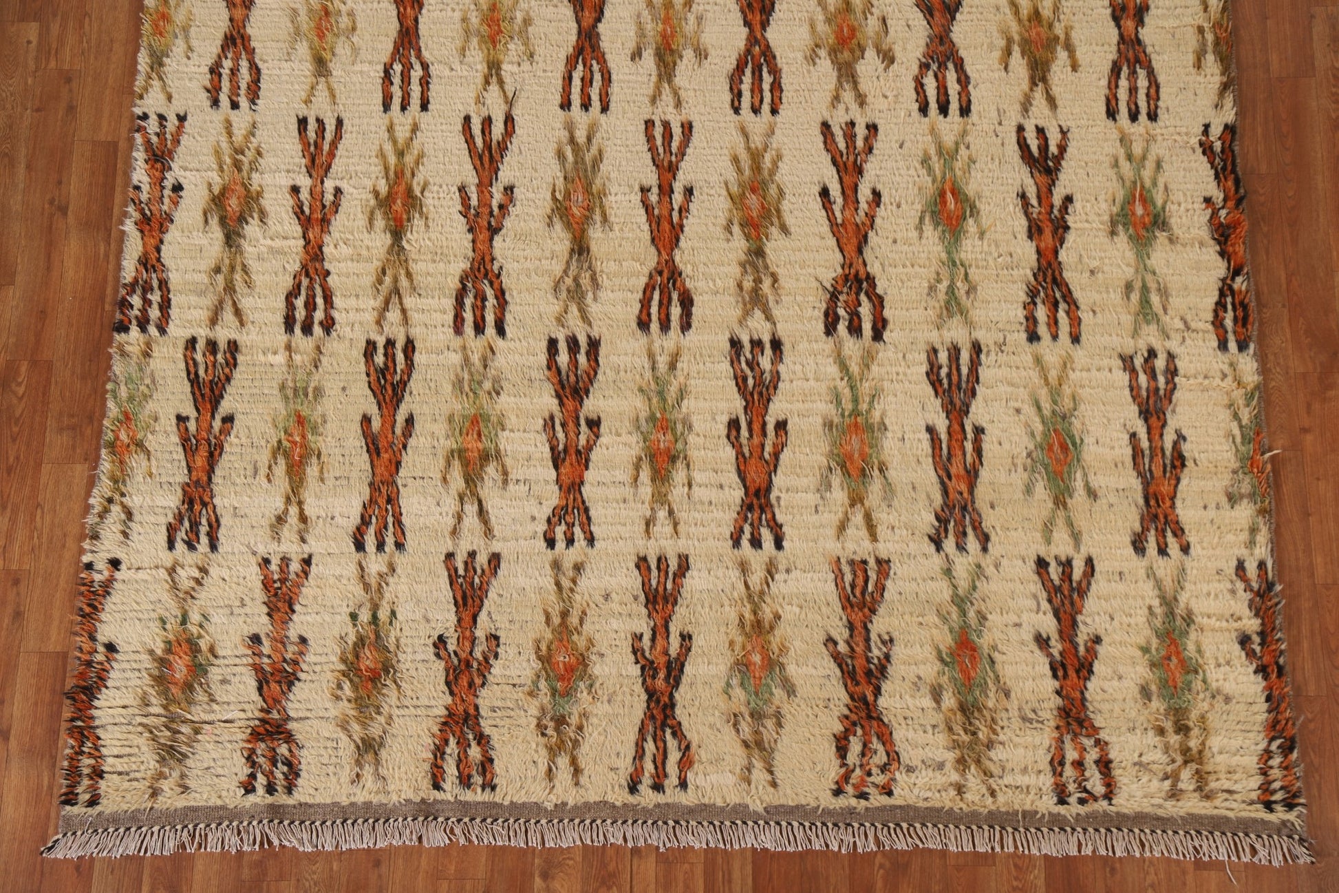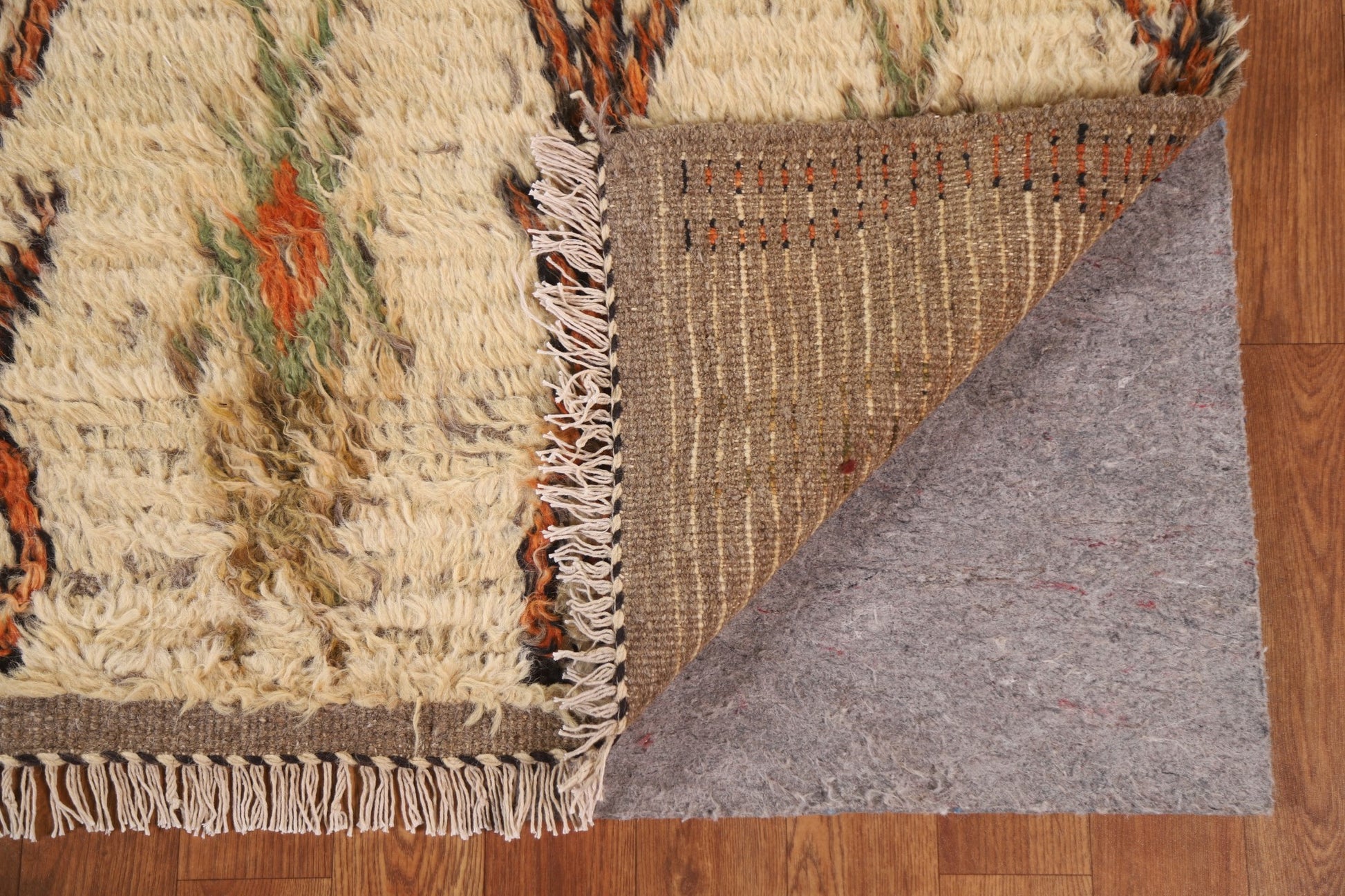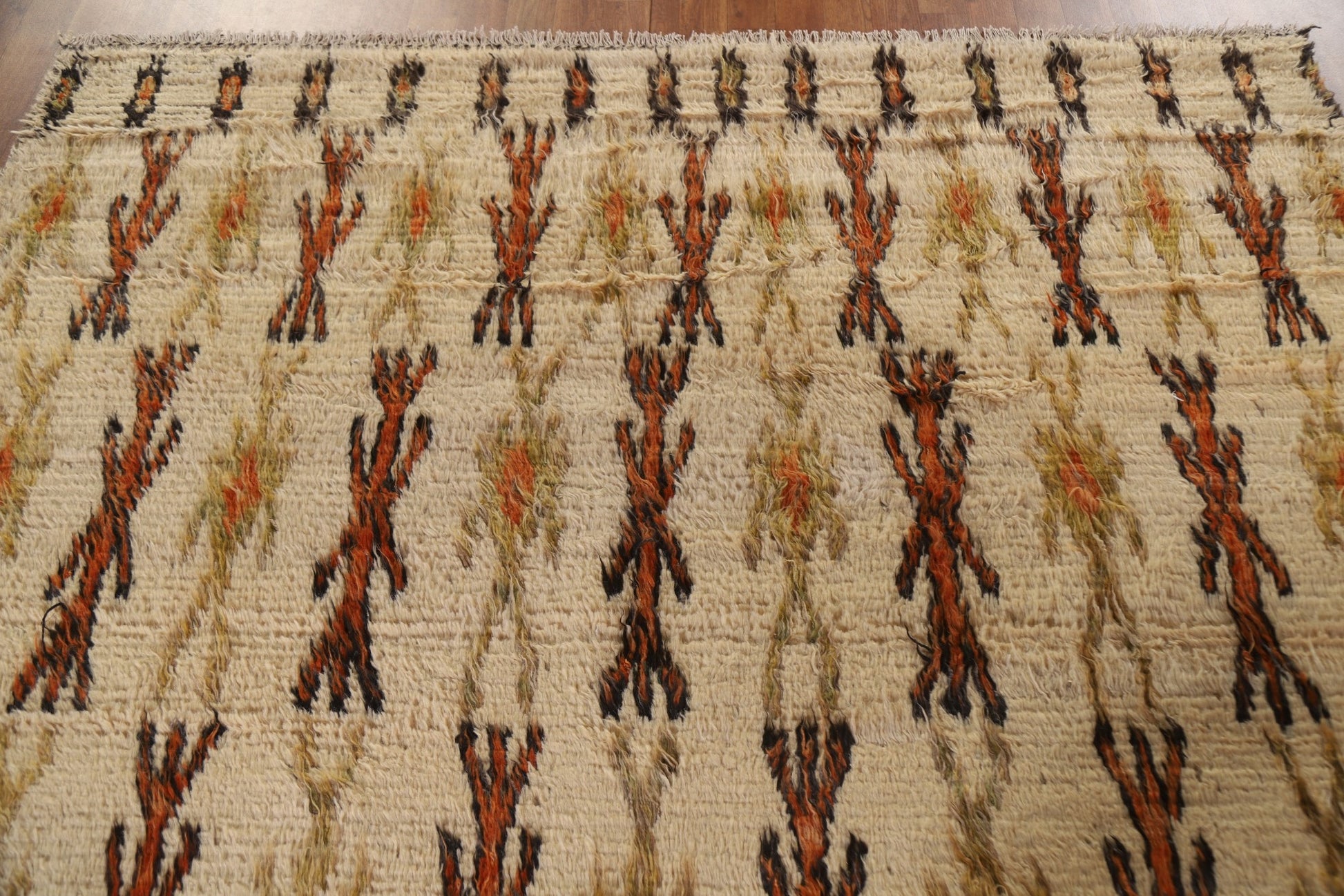 A Beautiful Genuine Pakistan Moroccan rug is Hand Knotted by skillful weavers in Pakistan with 100% Wool Material. This rug is in condition. dimensions are 9' 10'' X 6' 11'' in foot and 300 X 211 in centimeter. the primary color is Beige & Ivories.