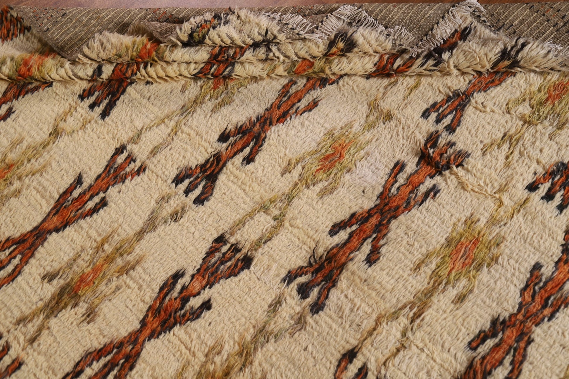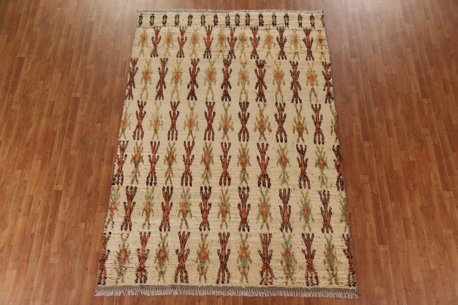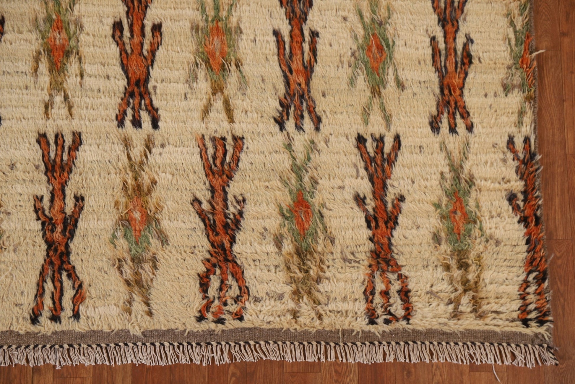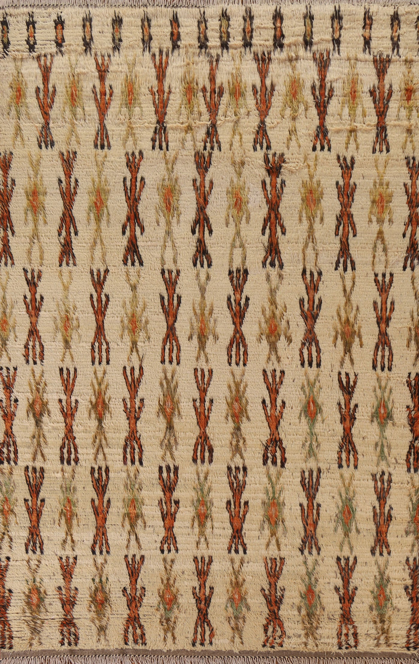 A Beautiful Genuine Pakistan Moroccan rug is Hand Knotted by skillful weavers in Pakistan with 100% Wool Material. This rug is in condition. dimensions are 9' 10'' X 6' 11'' in foot and 300 X 211 in centimeter. the primary color is Beige & Ivories.
