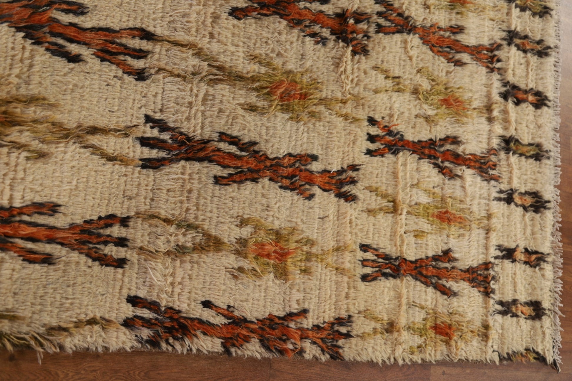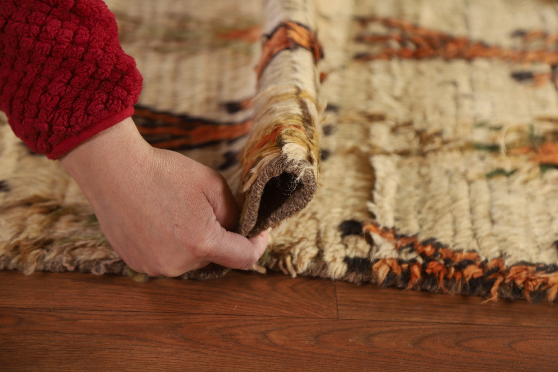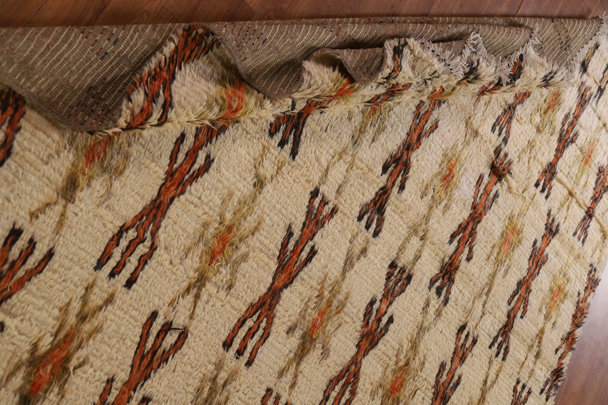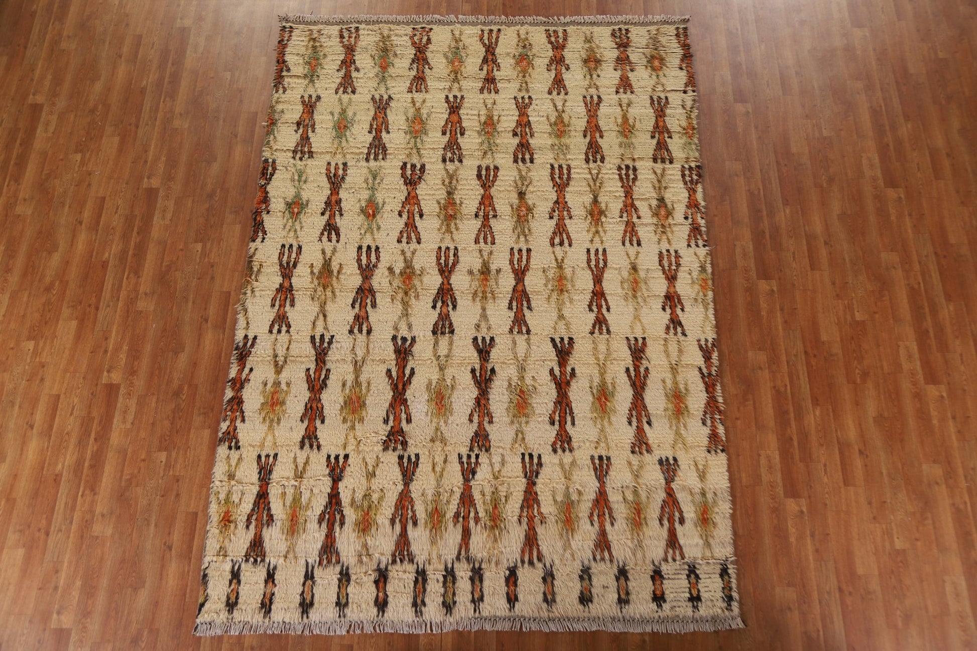 A Beautiful Genuine Pakistan Moroccan rug is Hand Knotted by skillful weavers in Pakistan with 100% Wool Material. This rug is in condition. dimensions are 9' 10'' X 6' 11'' in foot and 300 X 211 in centimeter. the primary color is Beige & Ivories.