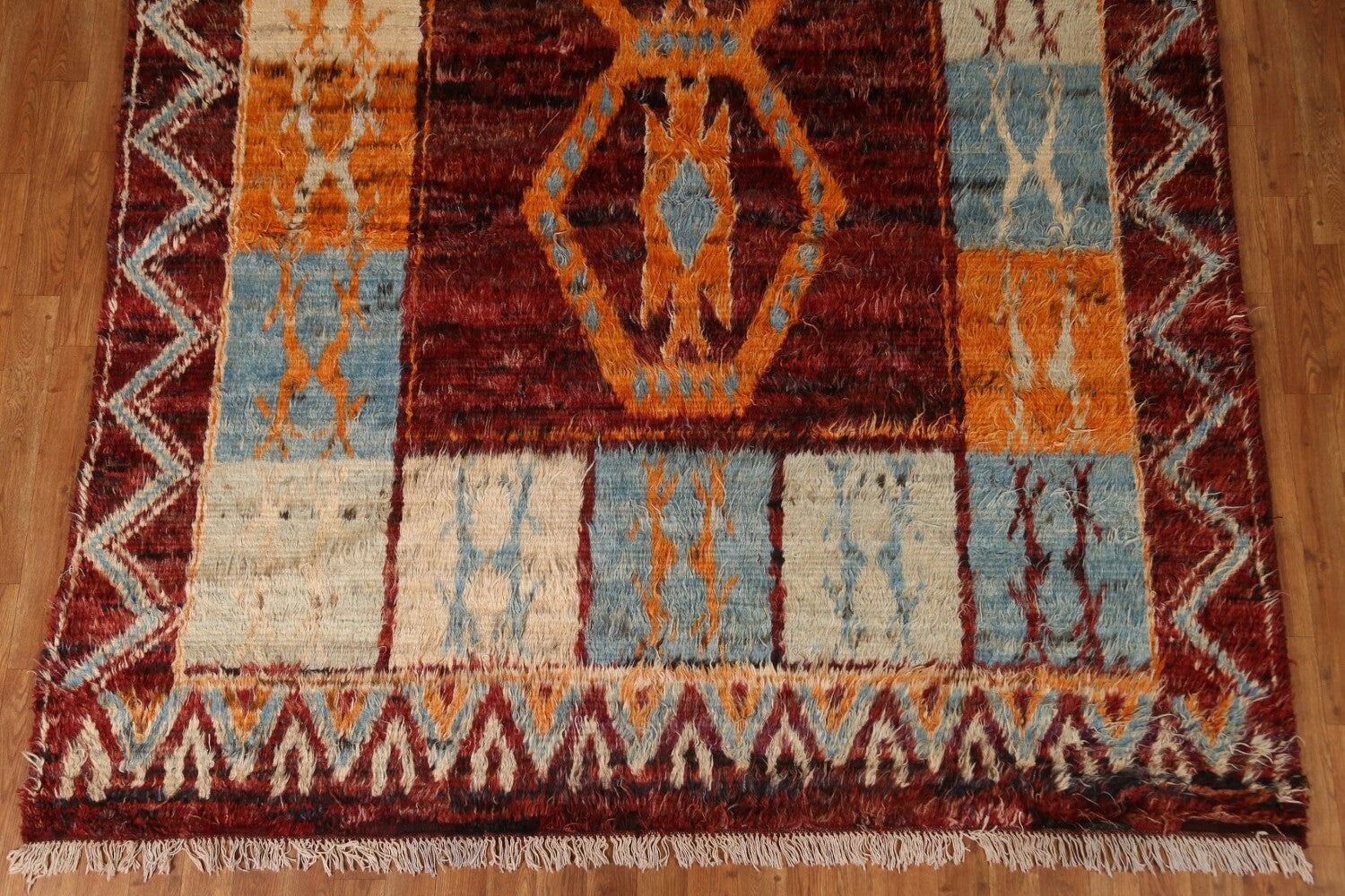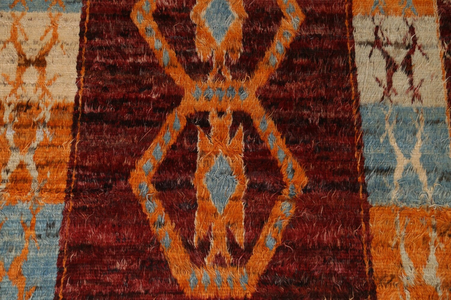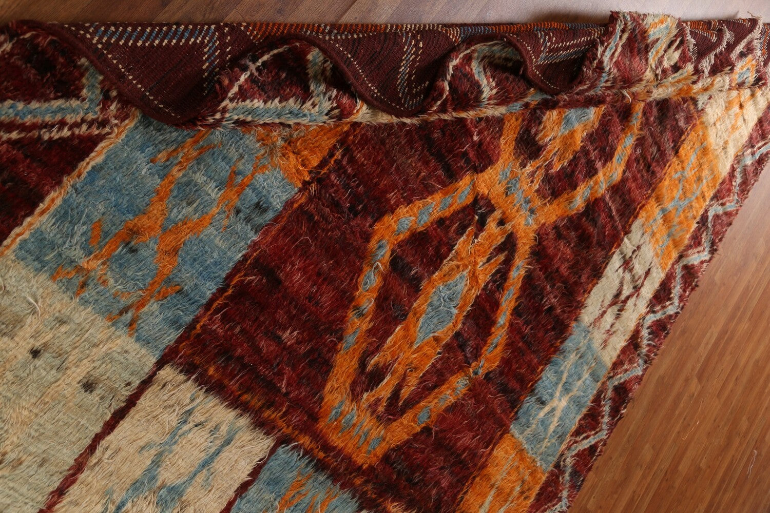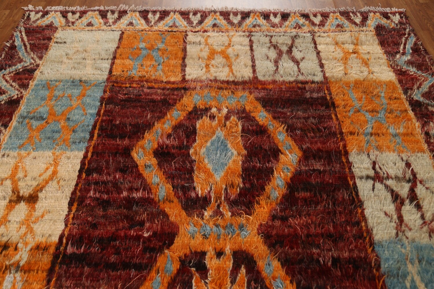 A Beautiful Genuine Pakistan Moroccan rug is Hand Knotted by skillful weavers in Pakistan with 100% Wool Material. This rug is in condition. dimensions are 9' 9'' X 7' 0'' in foot and 297 X 213 in centimeter. the primary color is Red.