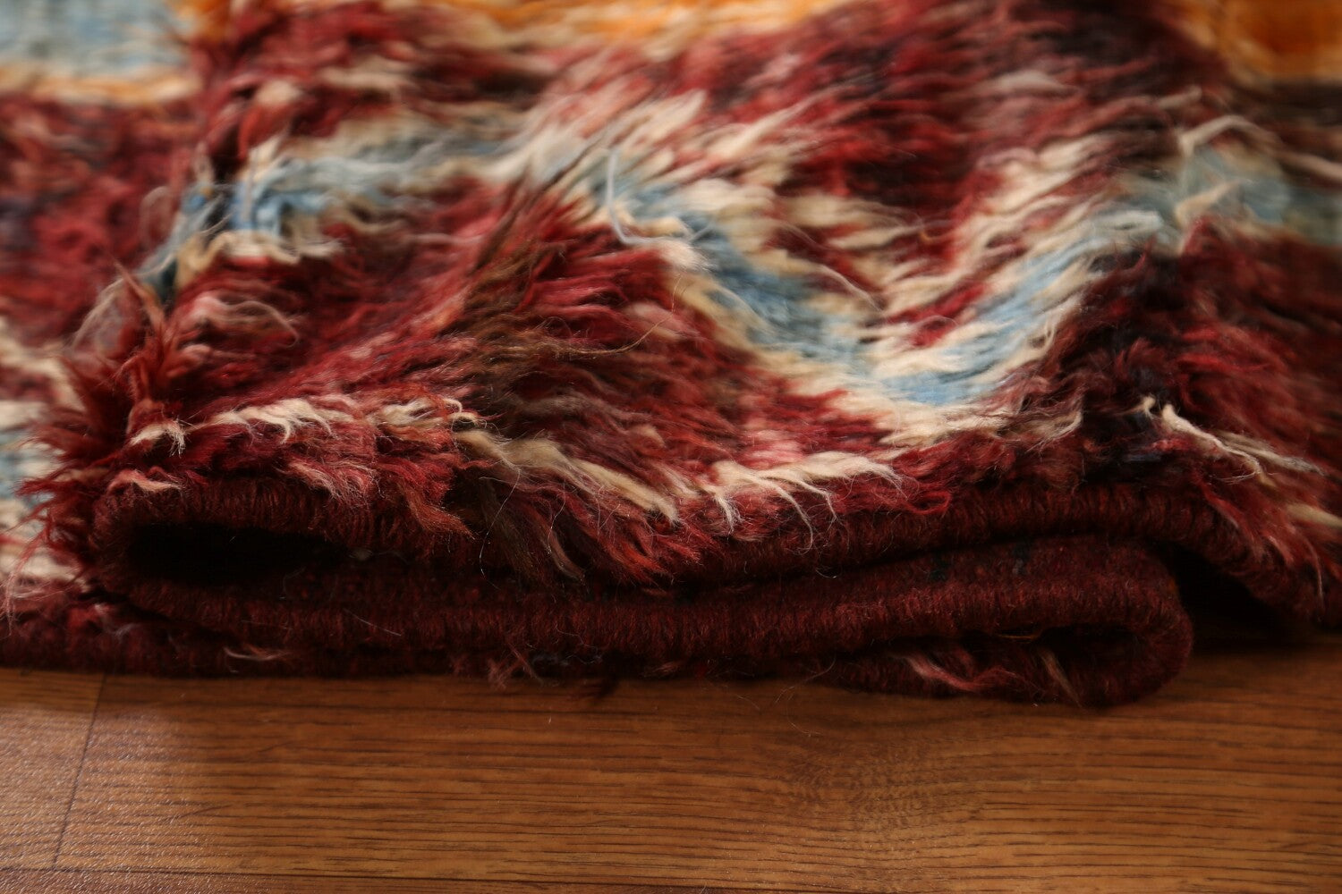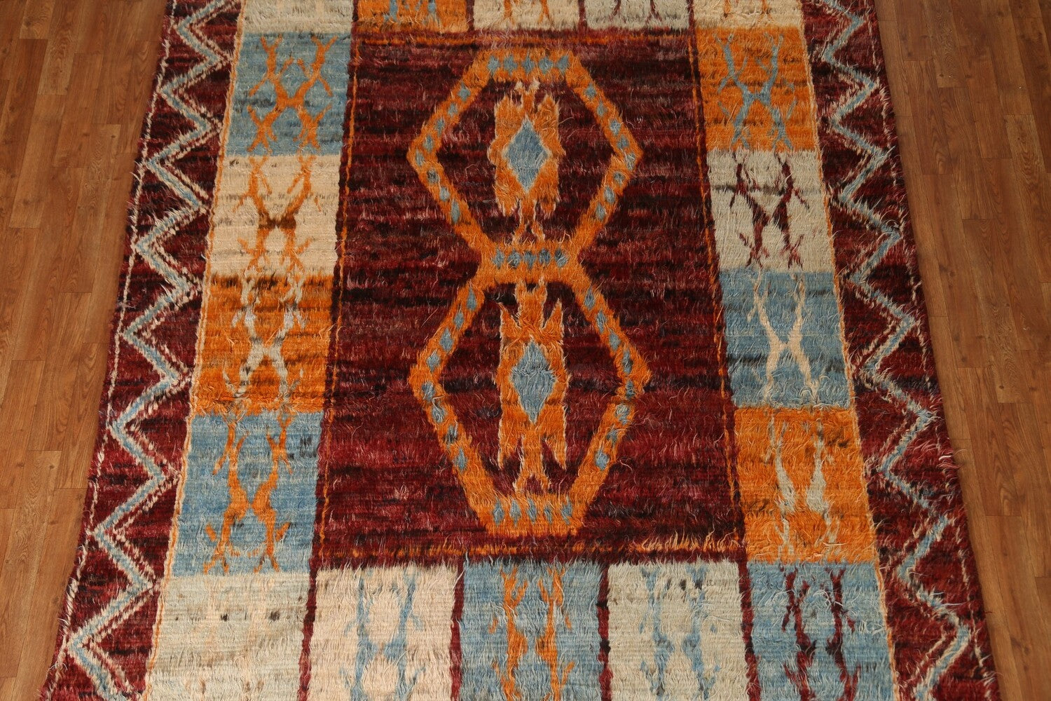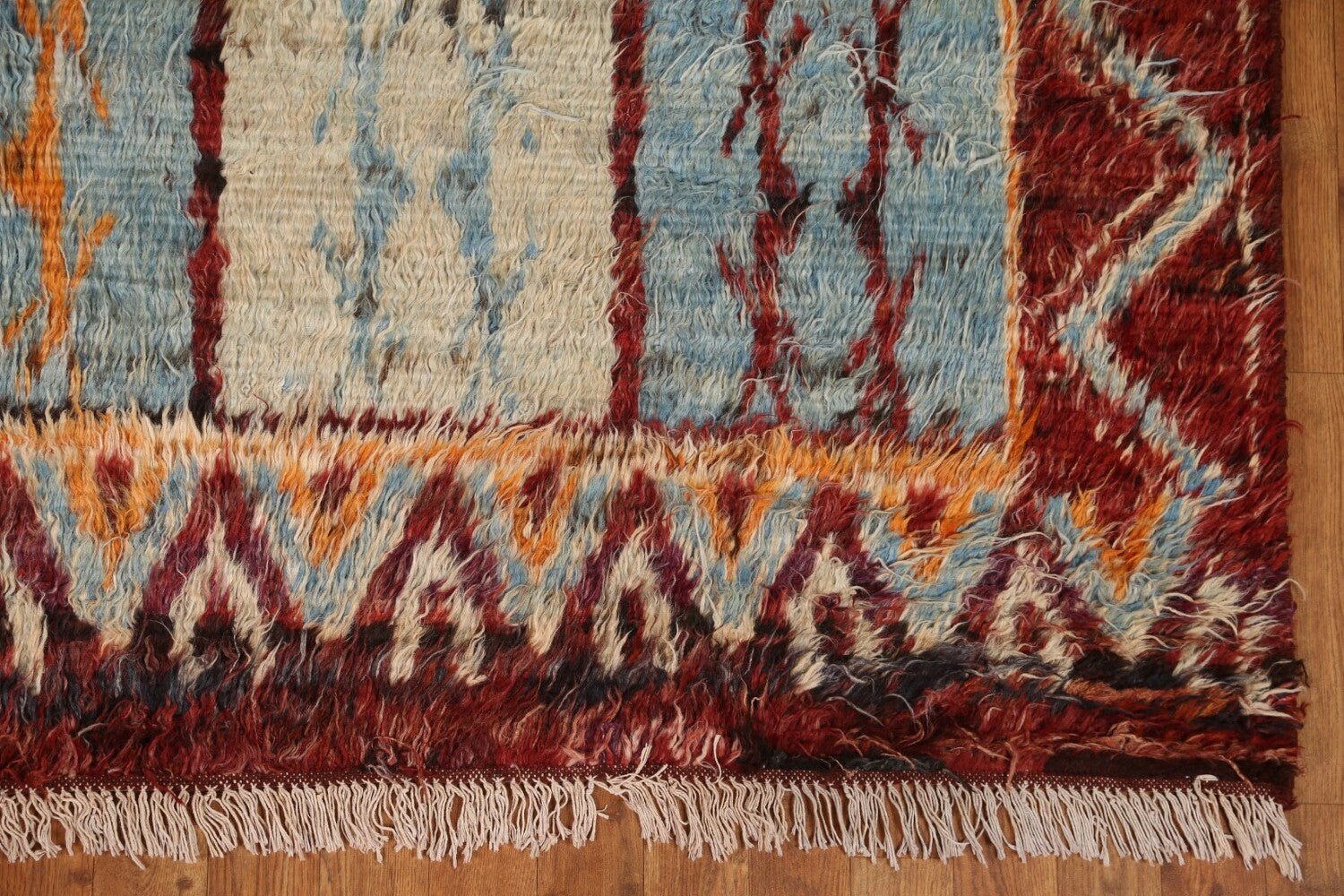 A Beautiful Genuine Pakistan Moroccan rug is Hand Knotted by skillful weavers in Pakistan with 100% Wool Material. This rug is in condition. dimensions are 9' 9'' X 7' 0'' in foot and 297 X 213 in centimeter. the primary color is Red.