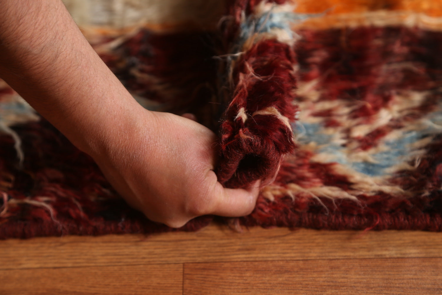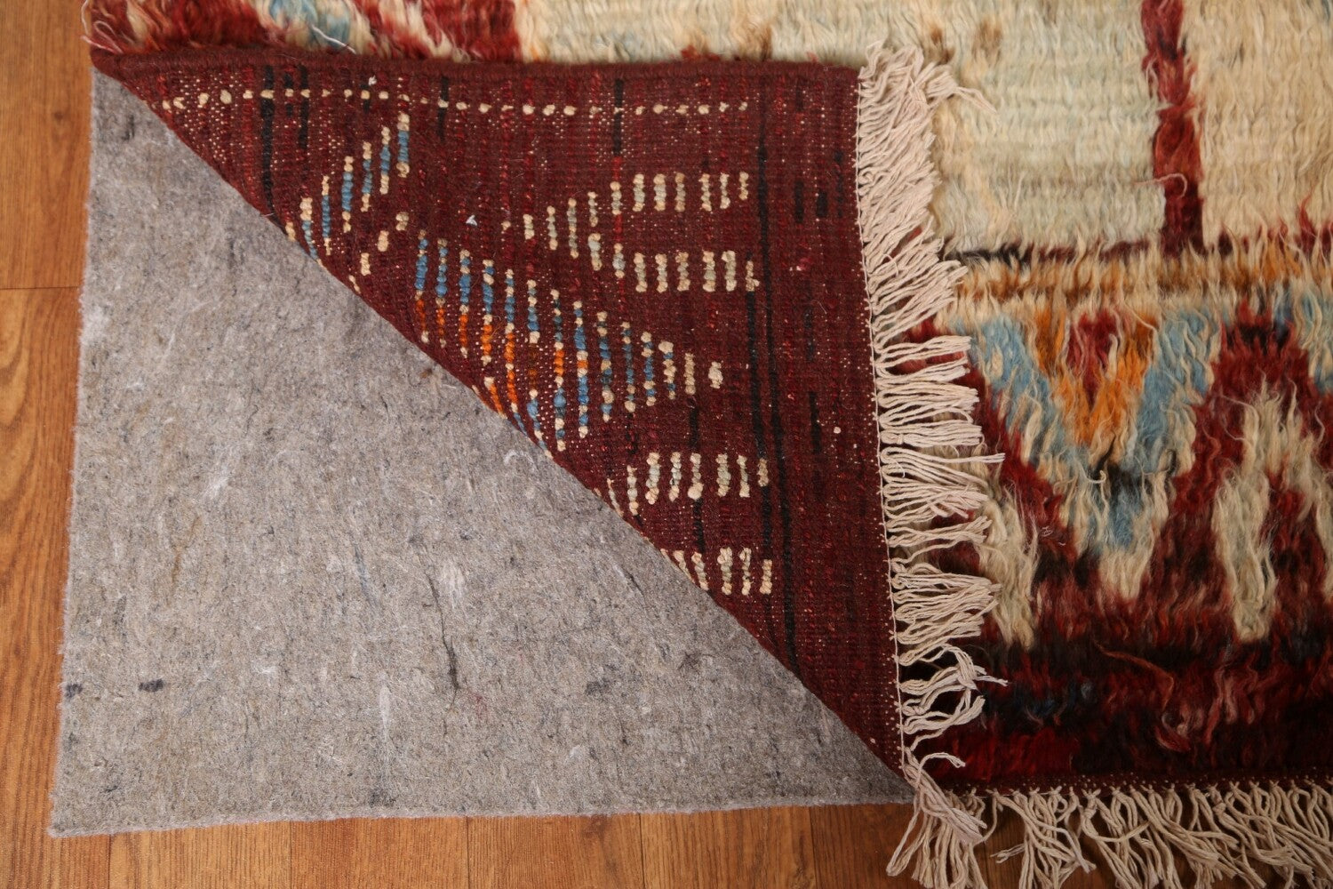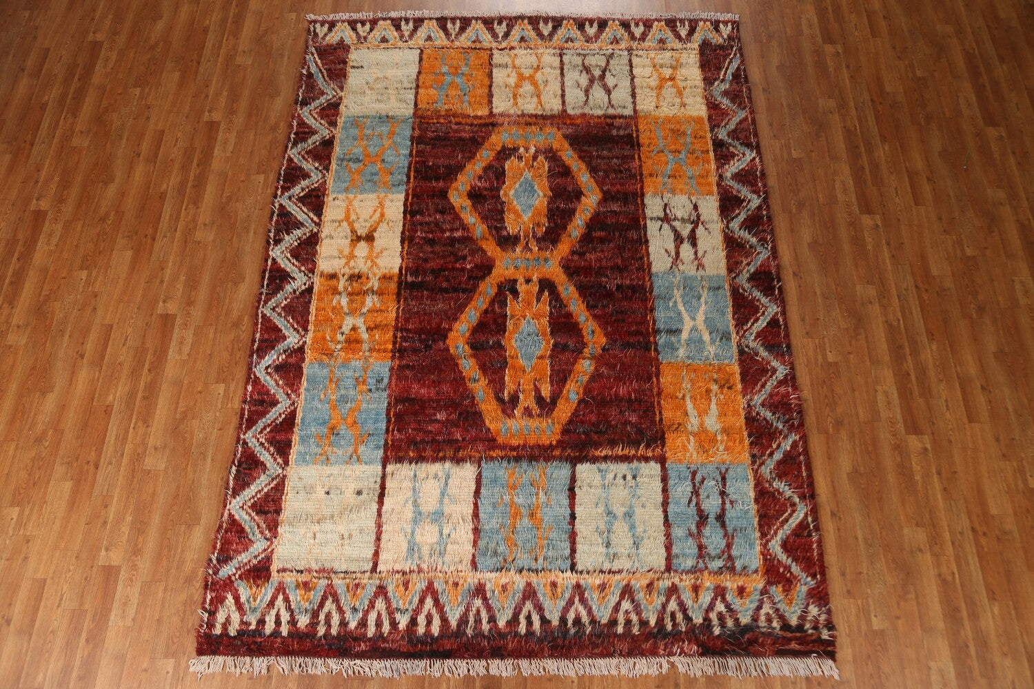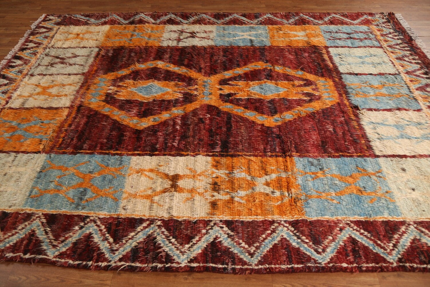 A Beautiful Genuine Pakistan Moroccan rug is Hand Knotted by skillful weavers in Pakistan with 100% Wool Material. This rug is in condition. dimensions are 9' 9'' X 7' 0'' in foot and 297 X 213 in centimeter. the primary color is Red.