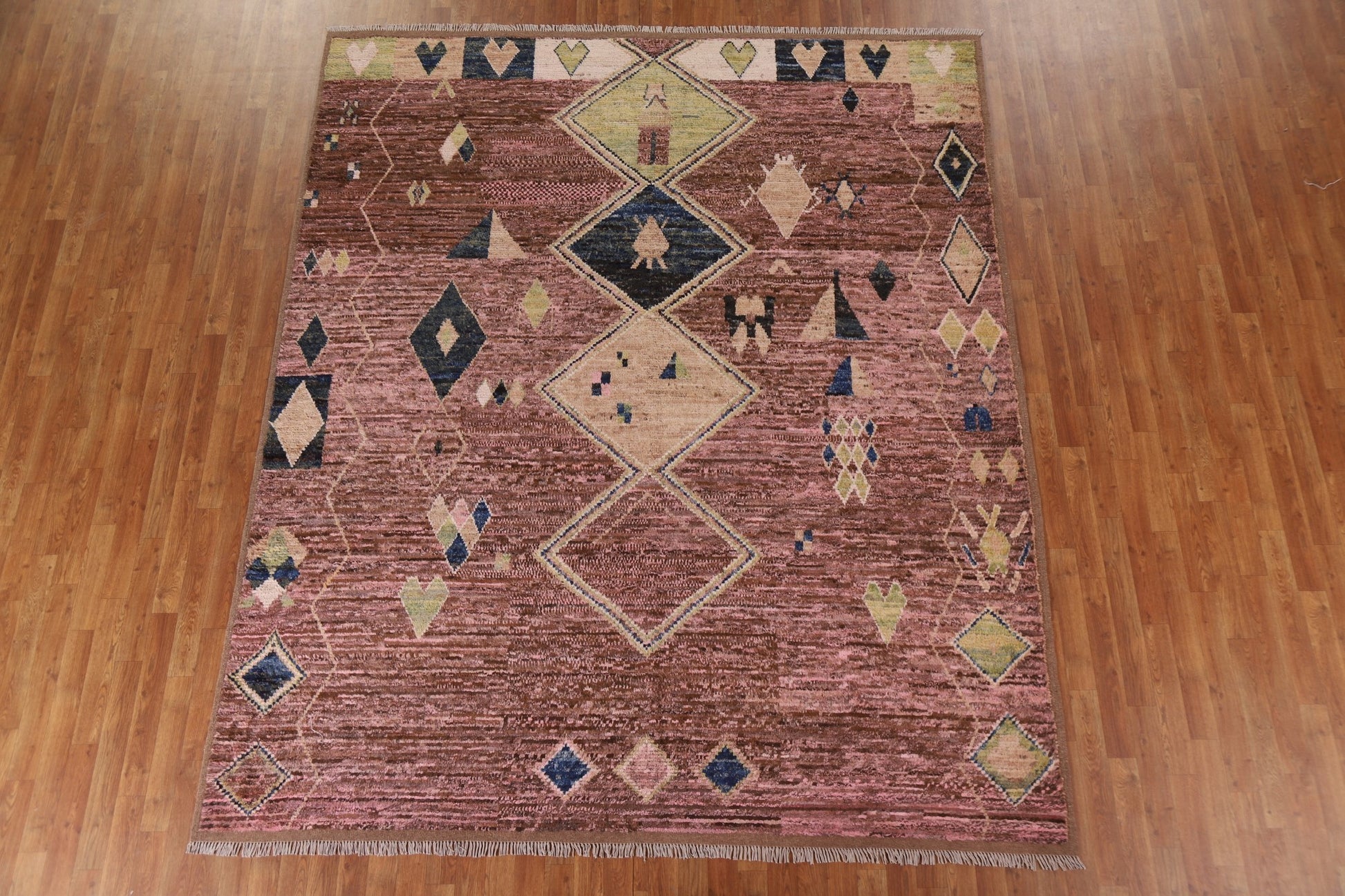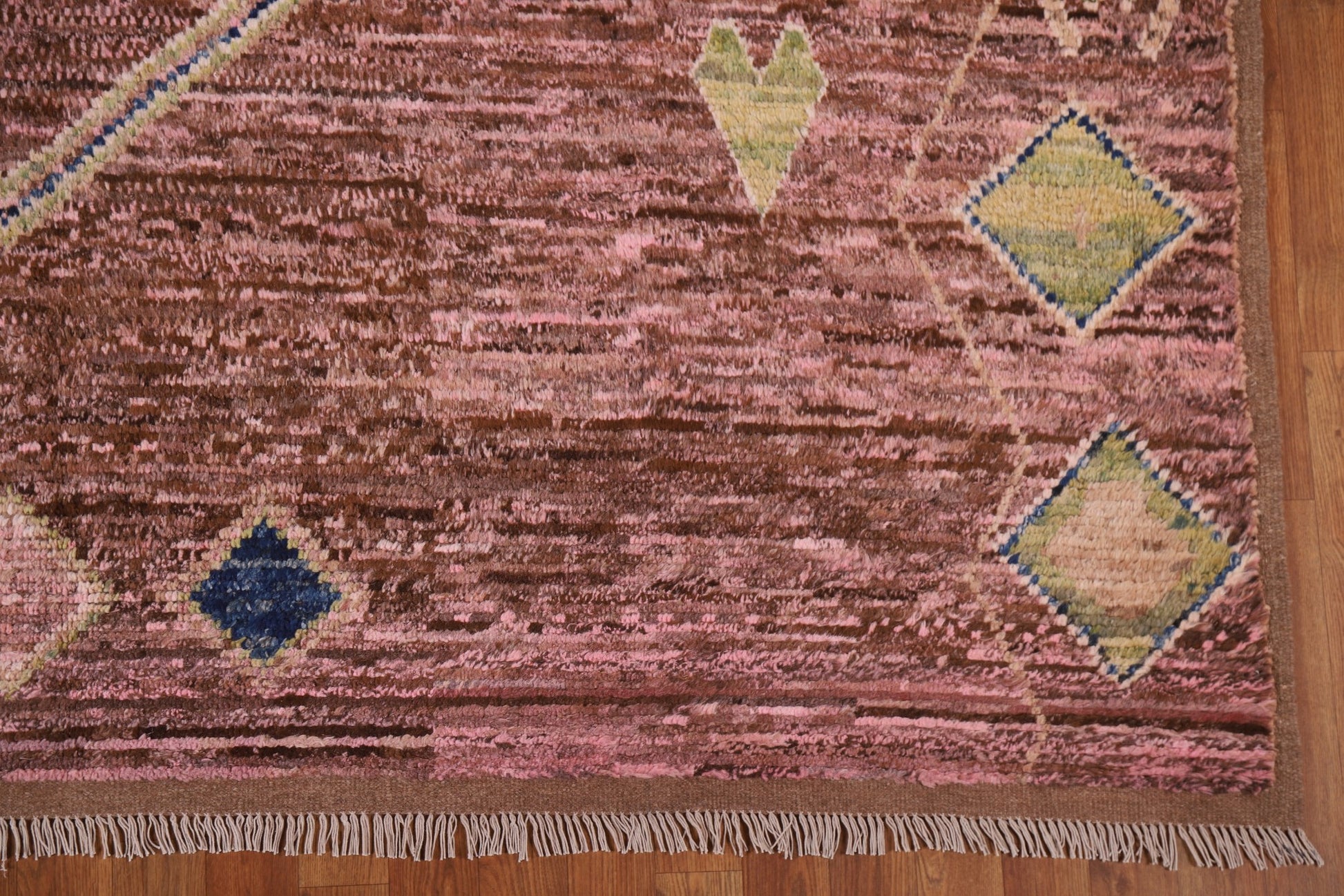 A Beautiful Genuine Pakistan Moroccan rug is Hand Knotted by skillful weavers in Pakistan with 100% Wool Material. This rug is in condition. dimensions are 10' 0'' X 8' 4'' in foot and 305 X 254 in centimeter. the primary color is Pink.