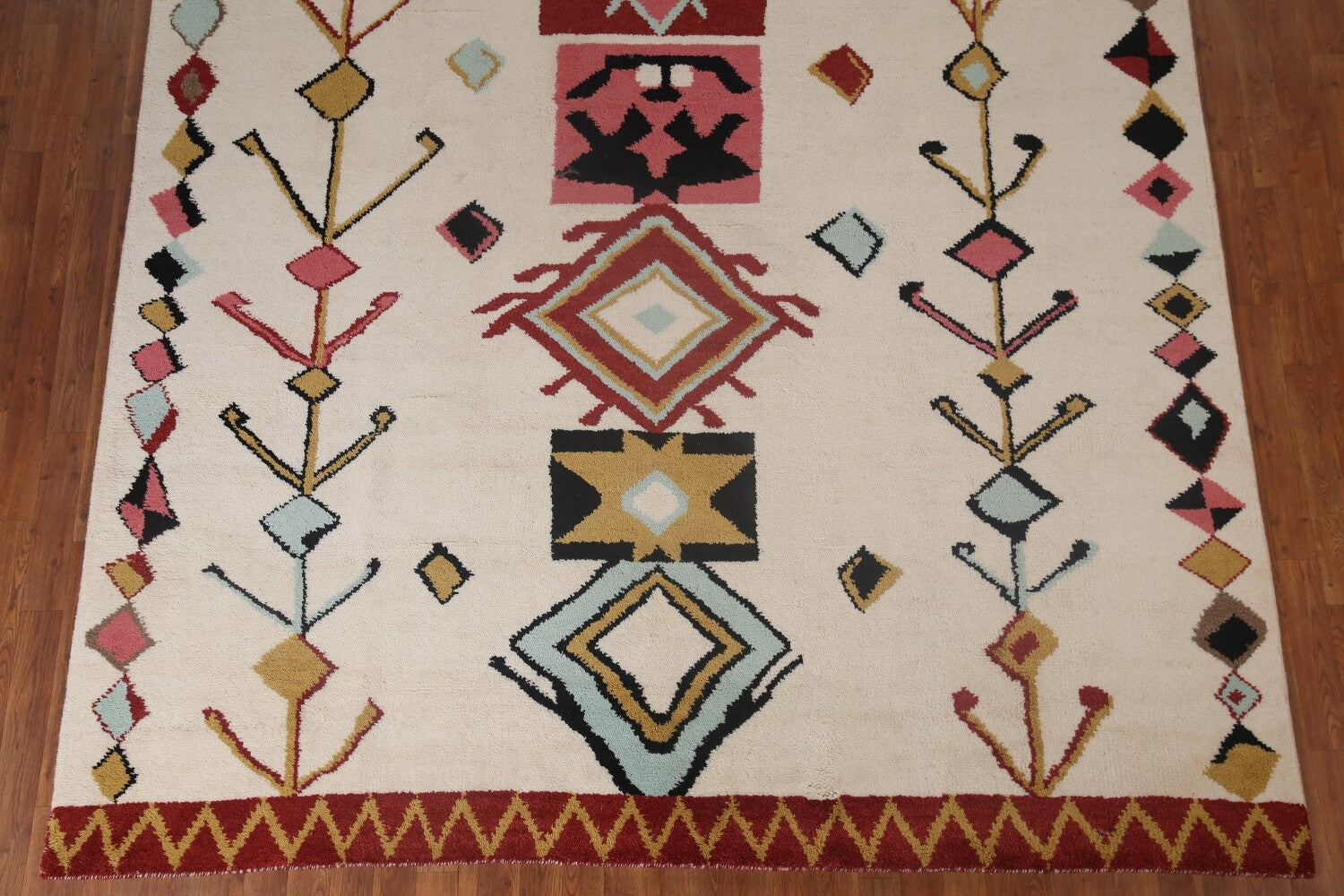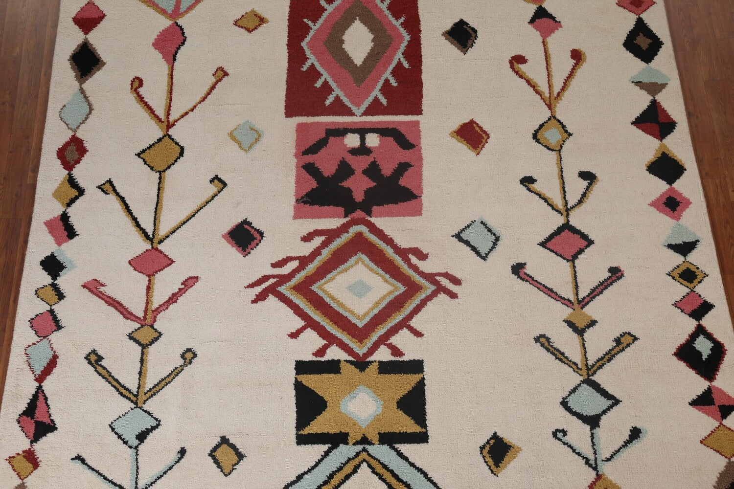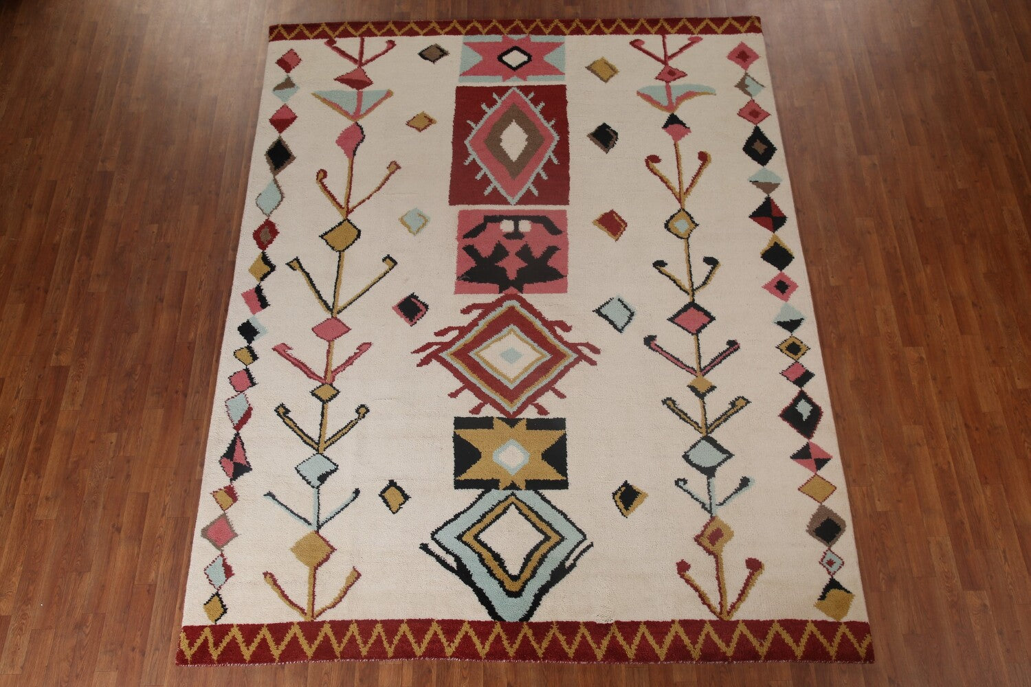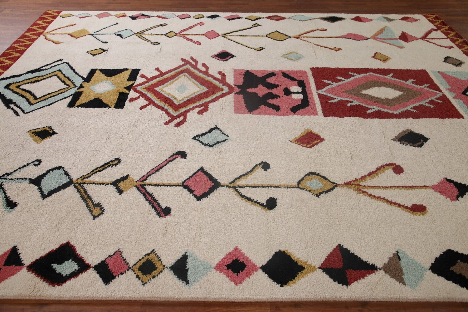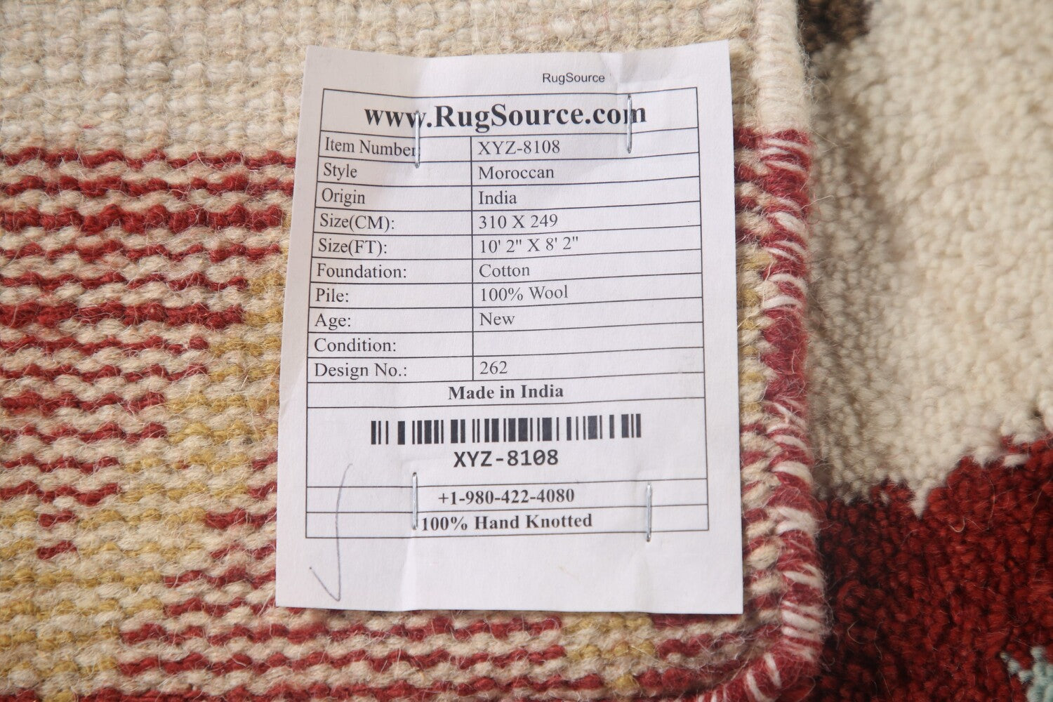A Beautiful Genuine India Moroccan rug is Hand Knotted by skillful weavers in India with 100% Wool Material. This rug is in condition. dimensions are 10' 2'' X 8' 2'' in foot and 310 X 249 in centimeter. the primary color is Beige & Ivories.