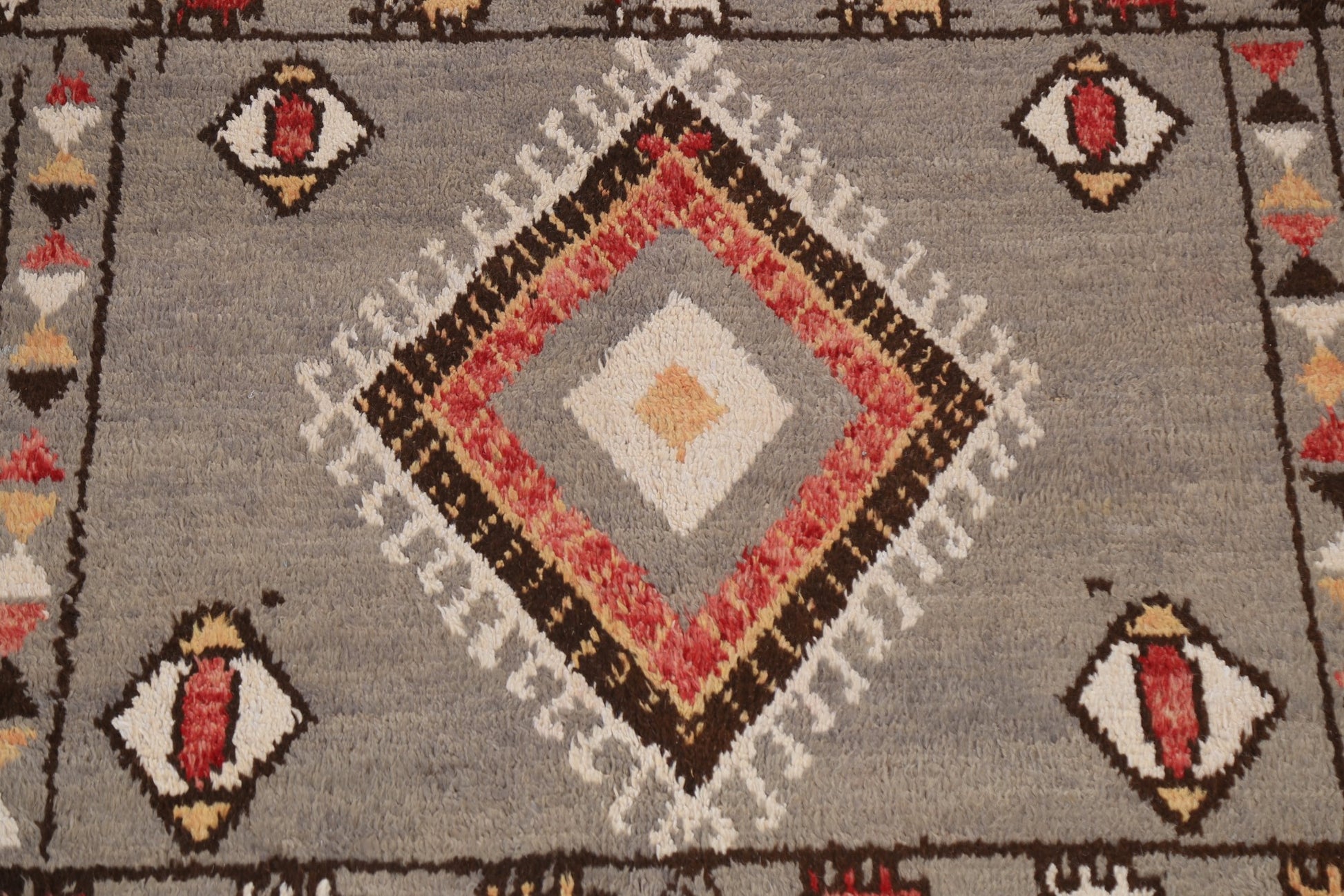 A Beautiful Genuine Morocco Moroccan rug is Hand Knotted by skillful weavers in Morocco with 100% Wool Material. This rug is in New, First Quality condition. dimensions are 11' 4'' X 8' 1'' in foot and 345 X 246 in centimeter. the primary color is Greys & Charcoal.