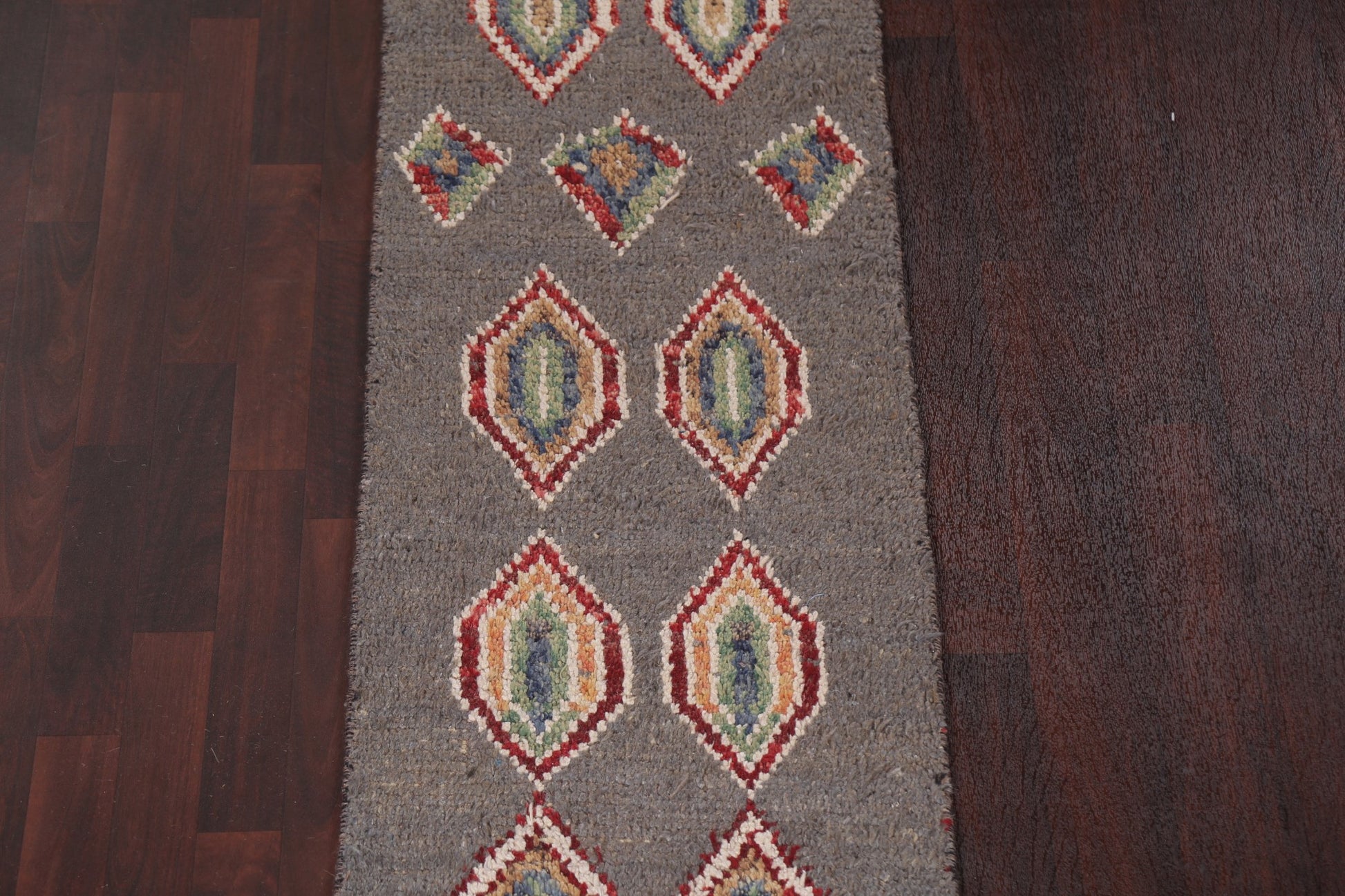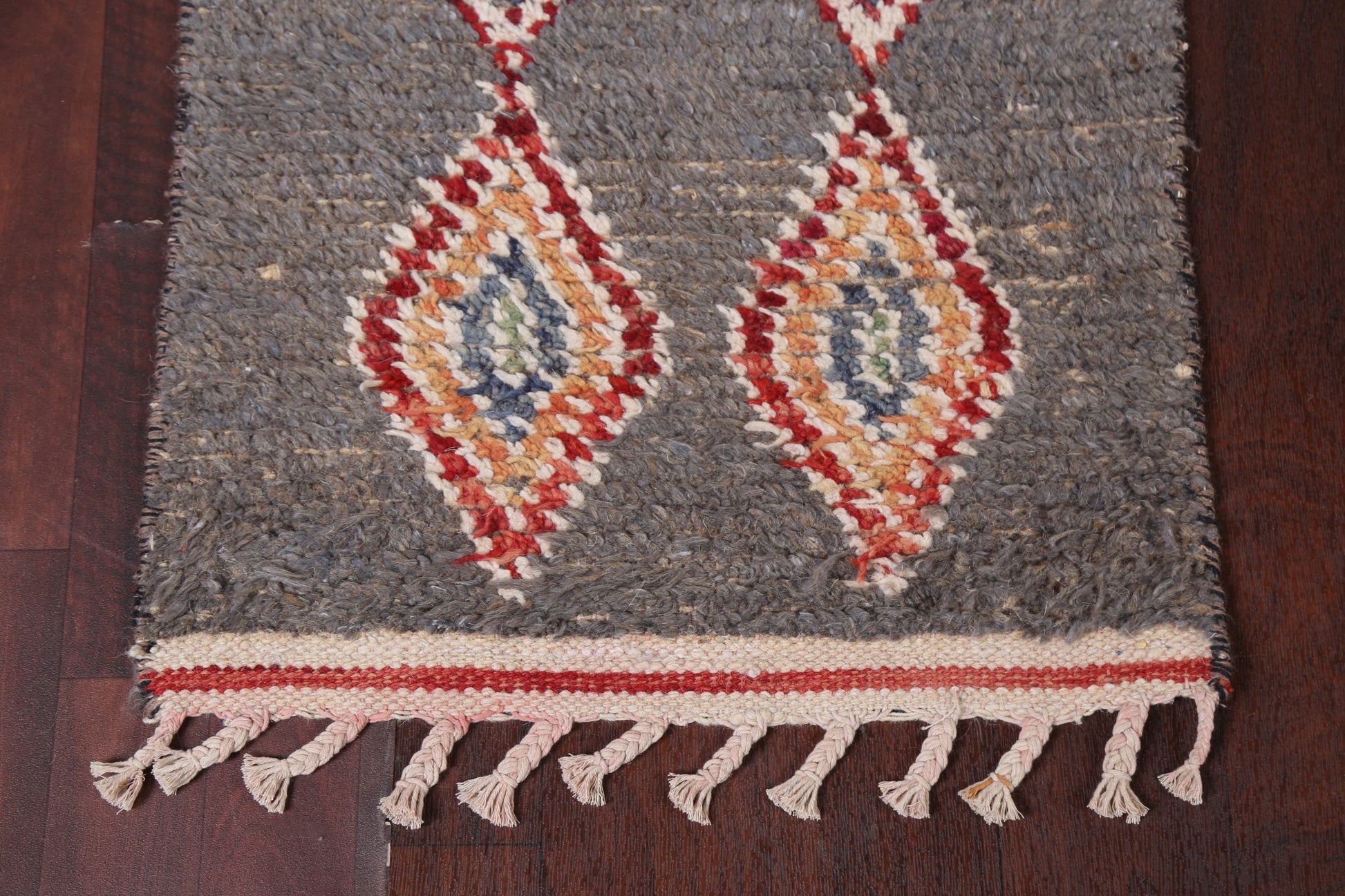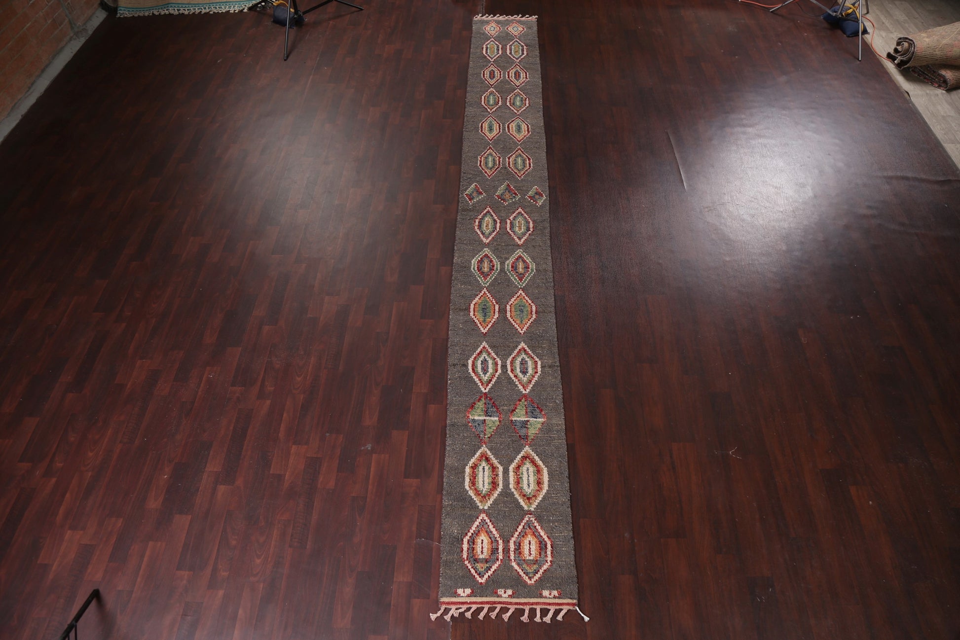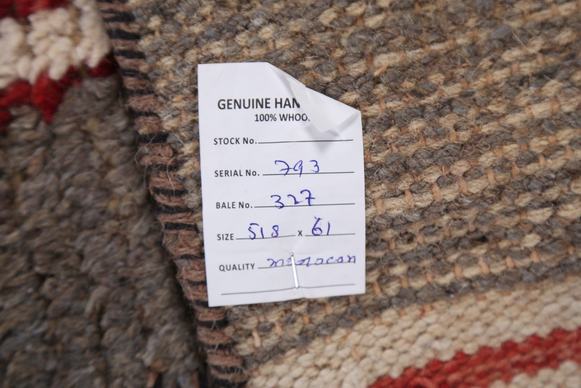 A Beautiful Genuine Morocco Moroccan rug is Hand Knotted by skillful weavers in Morocco with 100% Wool Material. This rug is in New, First Quality condition. dimensions are 17' 3'' X 2' 0'' in foot and 526 X 61 in centimeter. the primary color is Greys & Charcoal.