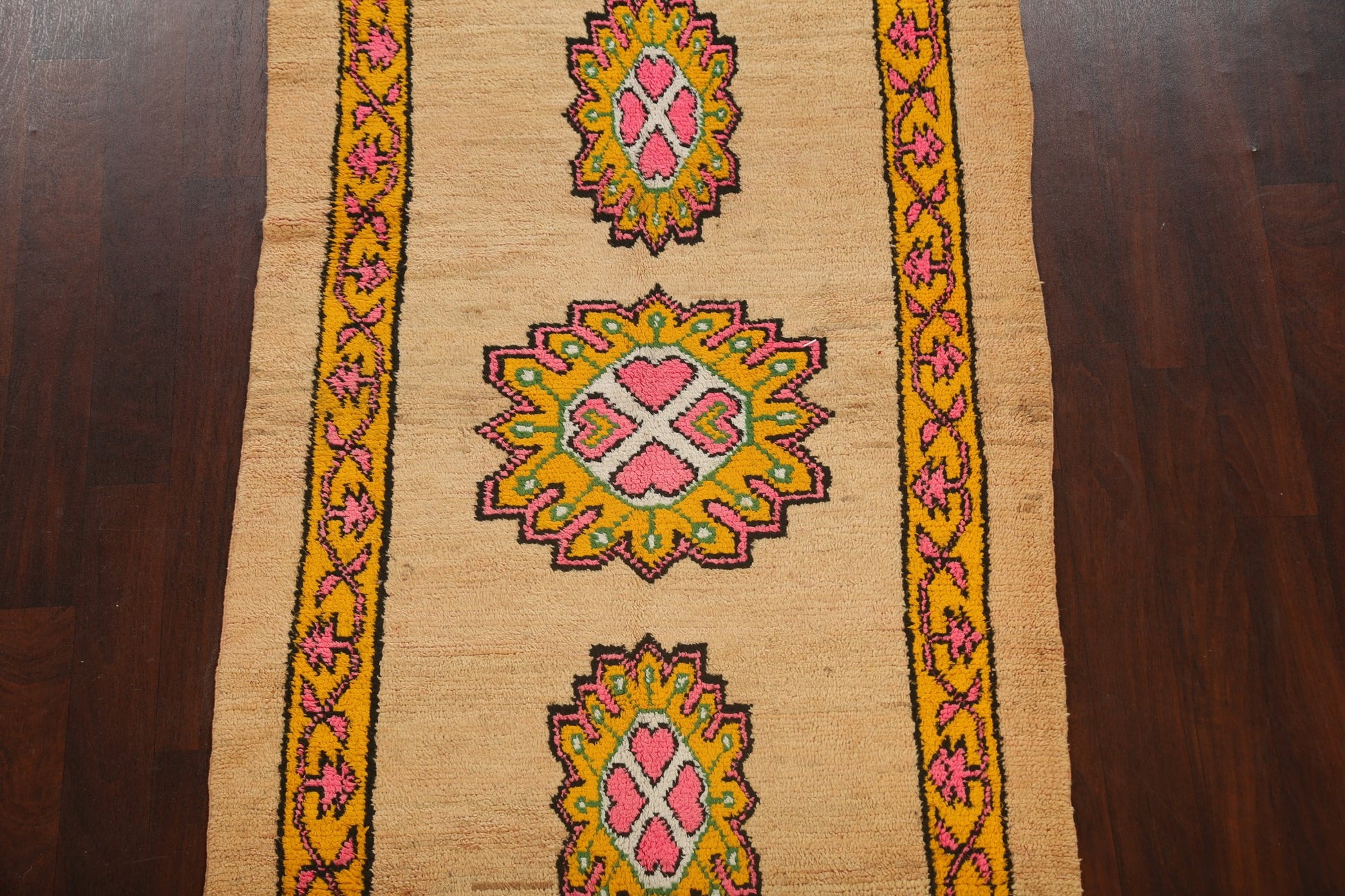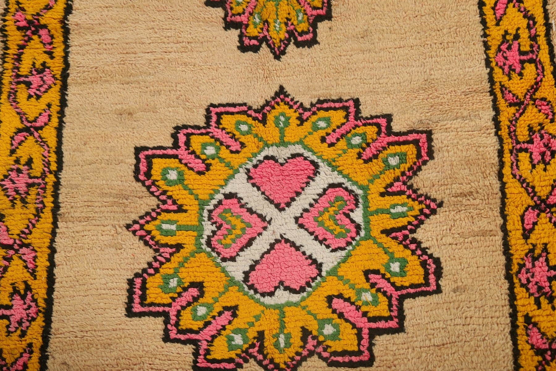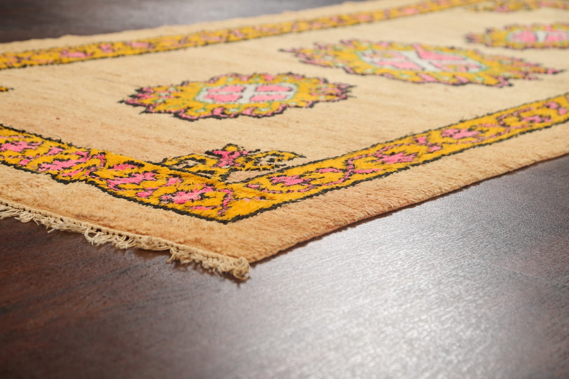 A Beautiful Genuine Morocco Moroccan rug is Hand Knotted by skillful weavers in Morocco with 100% Wool Material. This rug is in New, First Quality condition. dimensions are 9' 2'' X 4' 2'' in foot and 279 X 127 in centimeter. the primary color is Beige & Ivories.