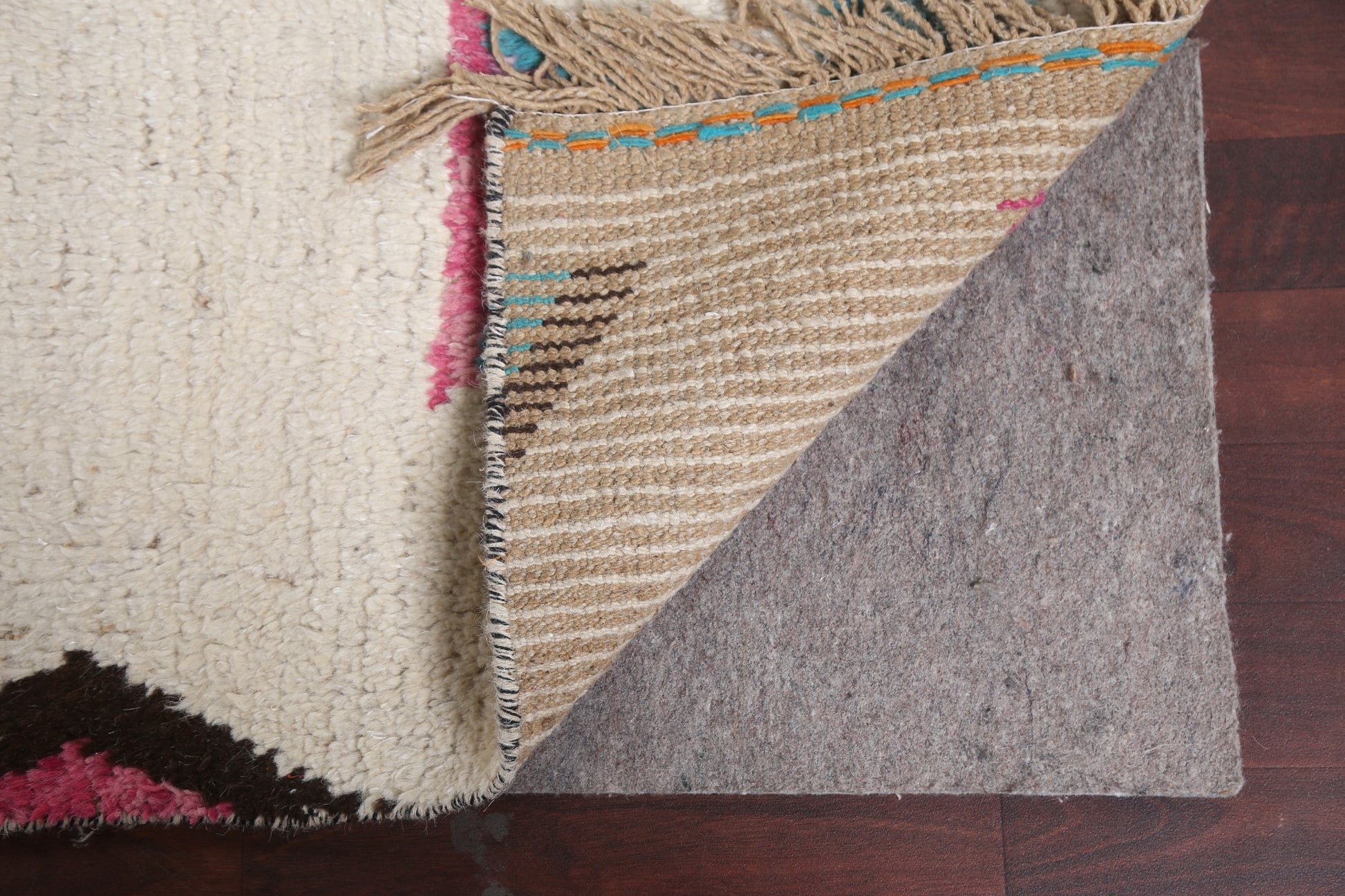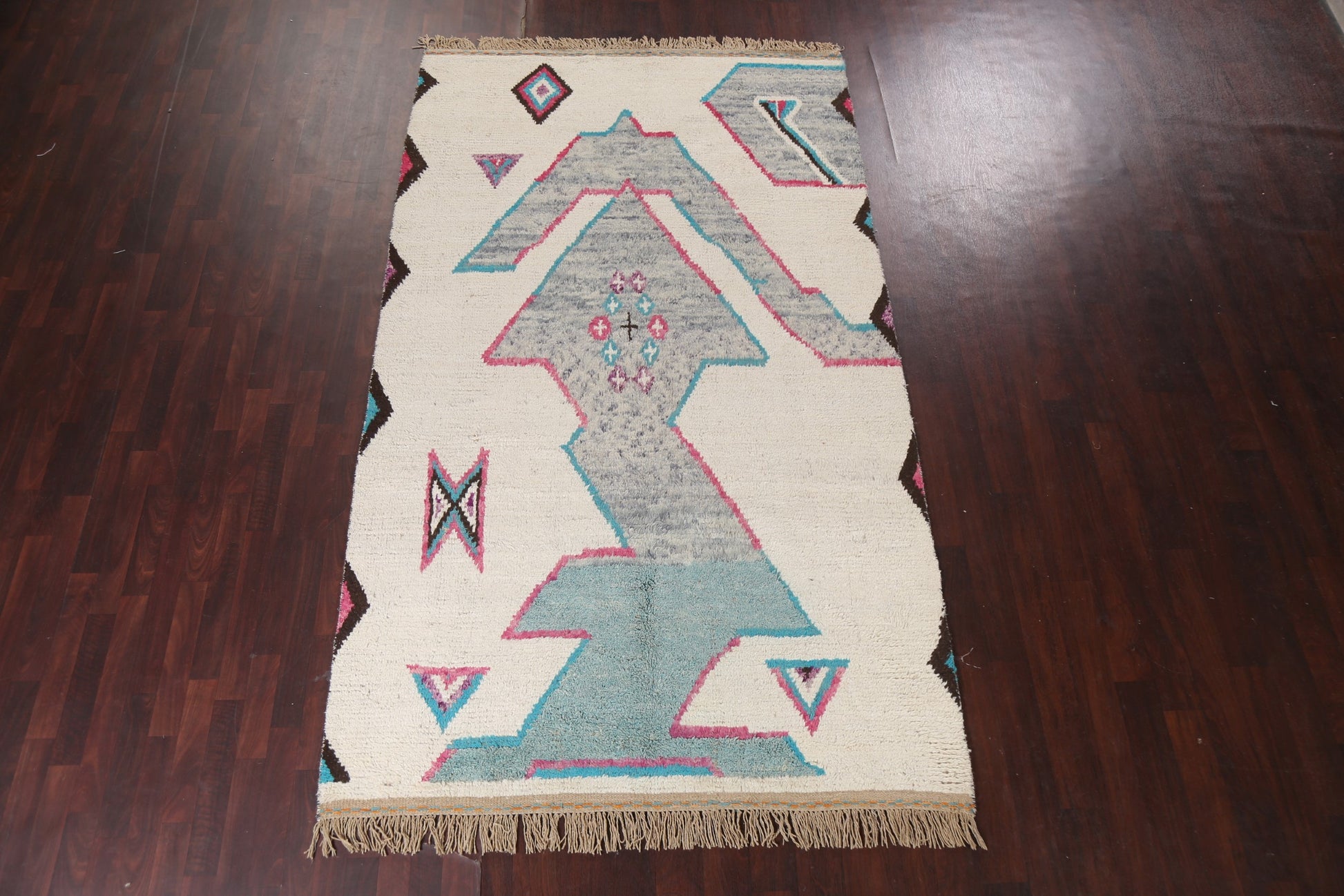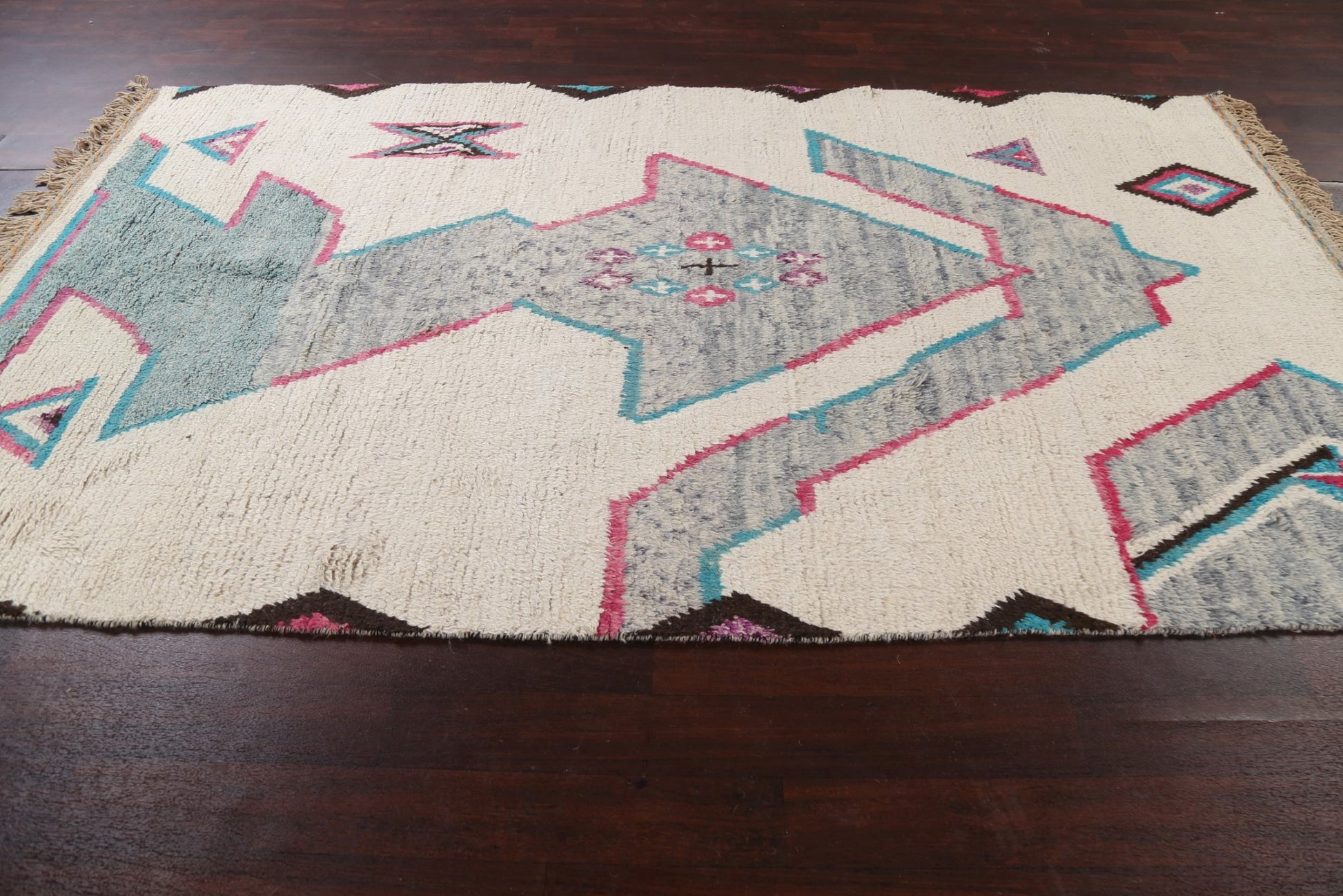 A Beautiful Genuine Morocco Moroccan rug is Hand Knotted by skillful weavers in Morocco with 100% Wool Material. This rug is in New, First Quality condition. dimensions are 10' 3'' X 5' 11'' in foot and 312 X 180 in centimeter. the primary color is Beige & Ivories.