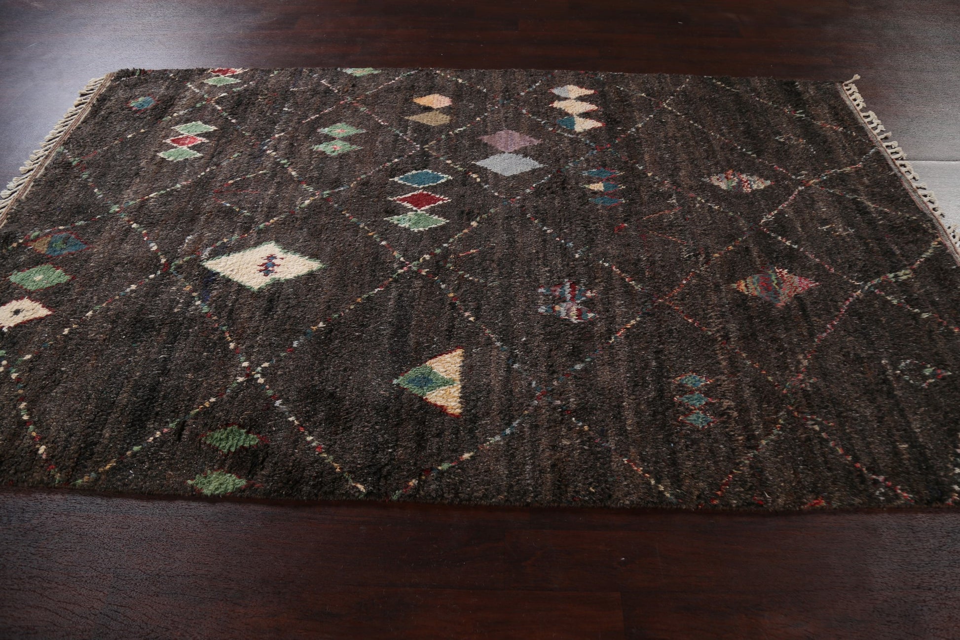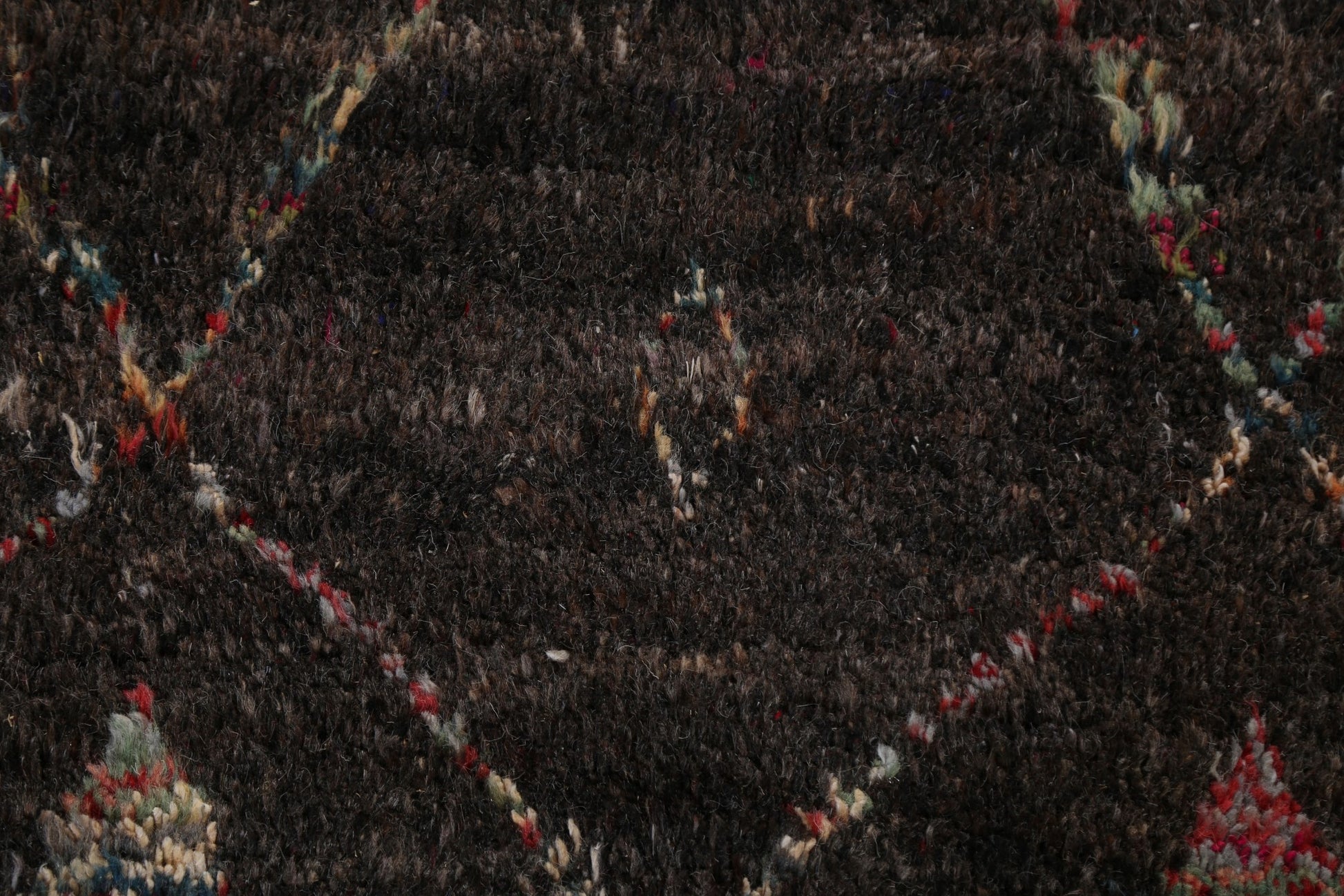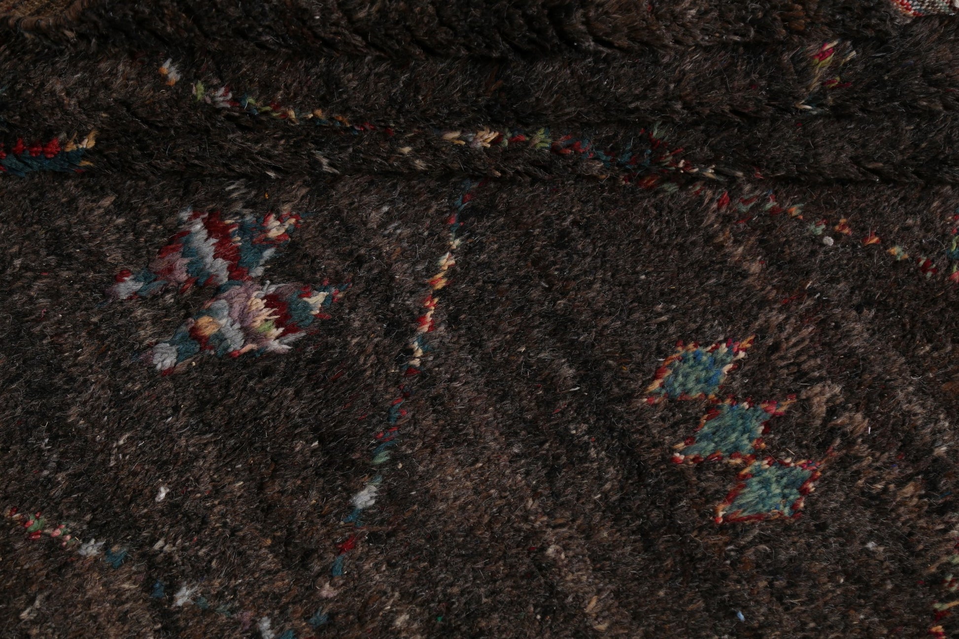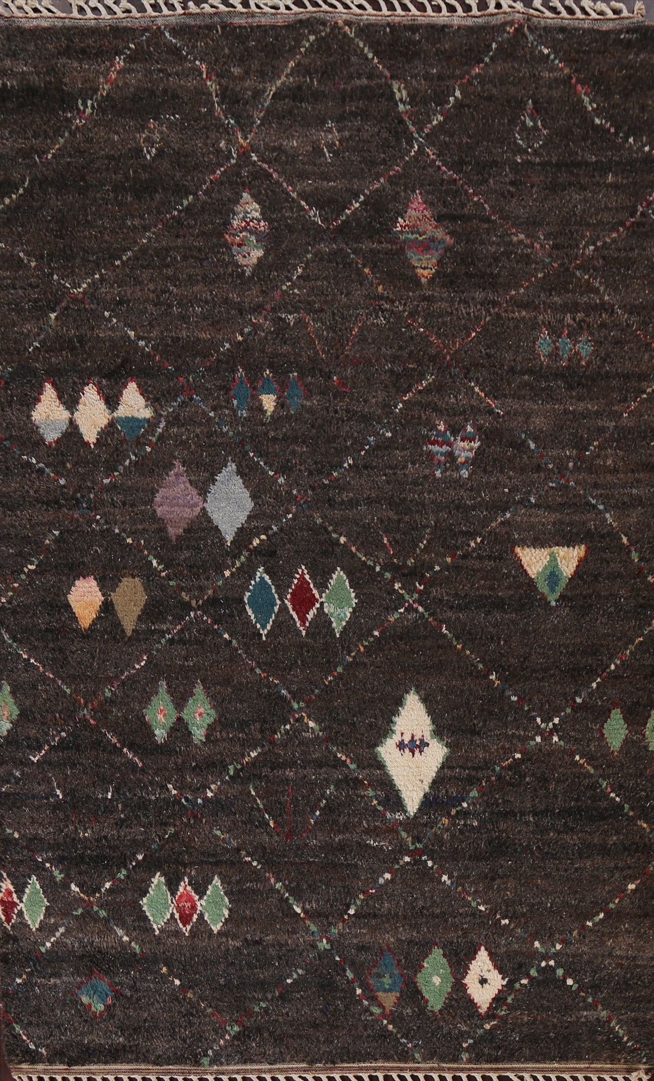A Beautiful Genuine Morocco Moroccan rug is Hand Knotted by skillful weavers in Morocco with 100% Wool Material. This rug is in New, First Quality condition. dimensions are 9' 9'' X 6' 0'' in foot and 297 X 183 in centimeter. the primary color is Black.