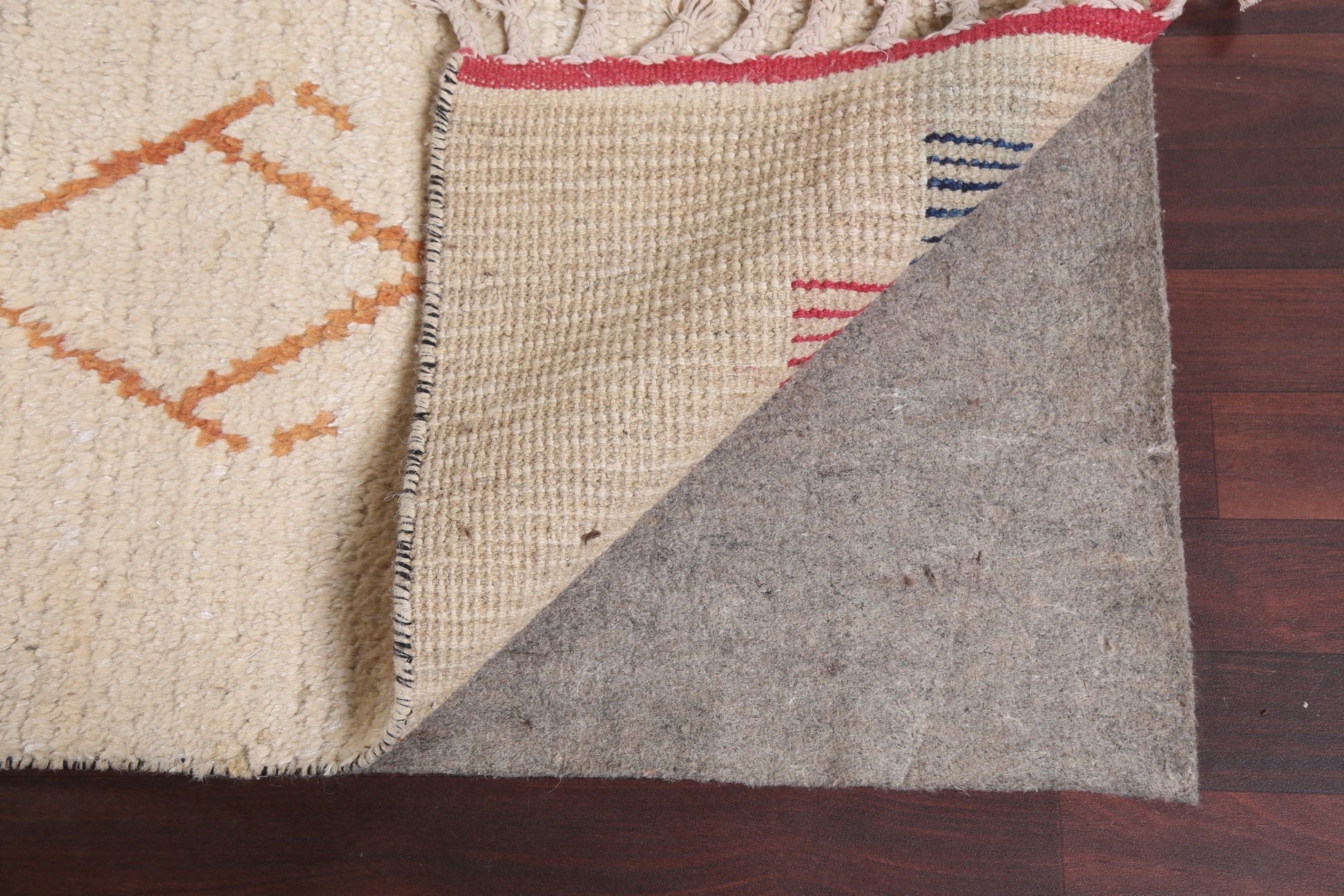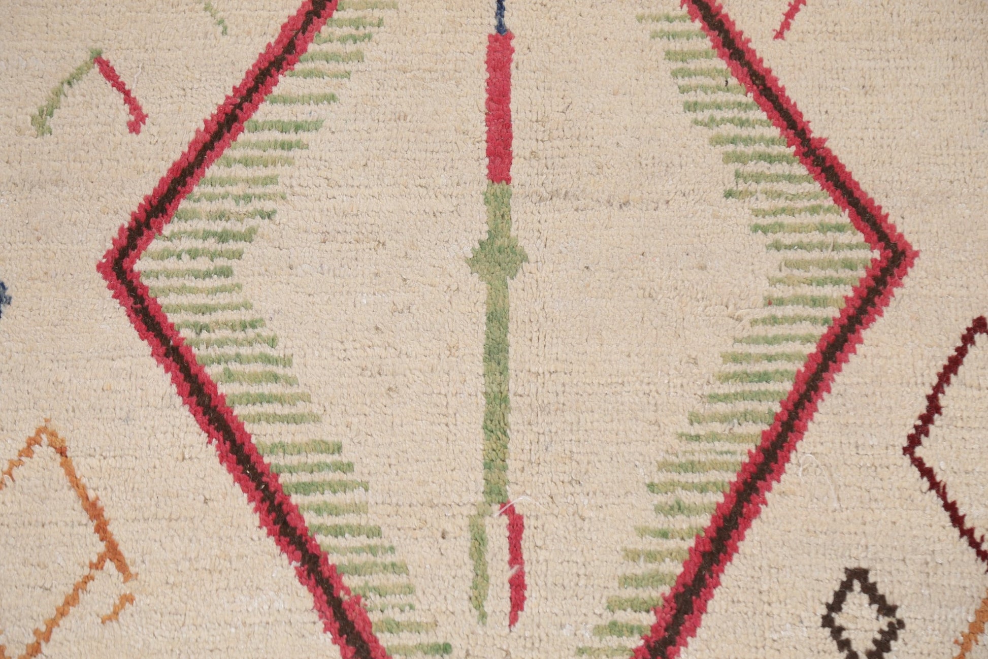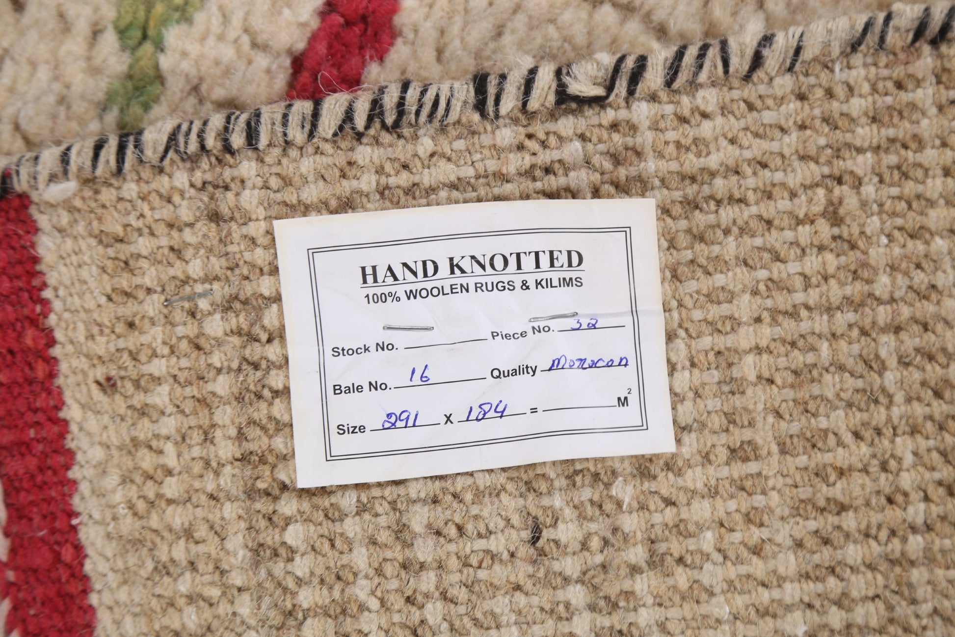 A Beautiful Genuine Morocco Moroccan rug is Hand Knotted by skillful weavers in Morocco with 100% Wool Material. This rug is in New, First Quality condition. dimensions are 9' 9'' X 6' 1'' in foot and 297 X 185 in centimeter. the primary color is Beige & Ivories.