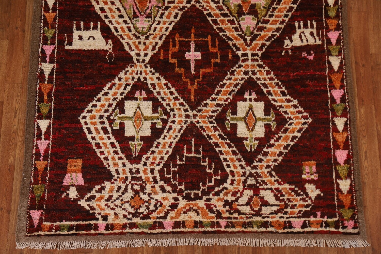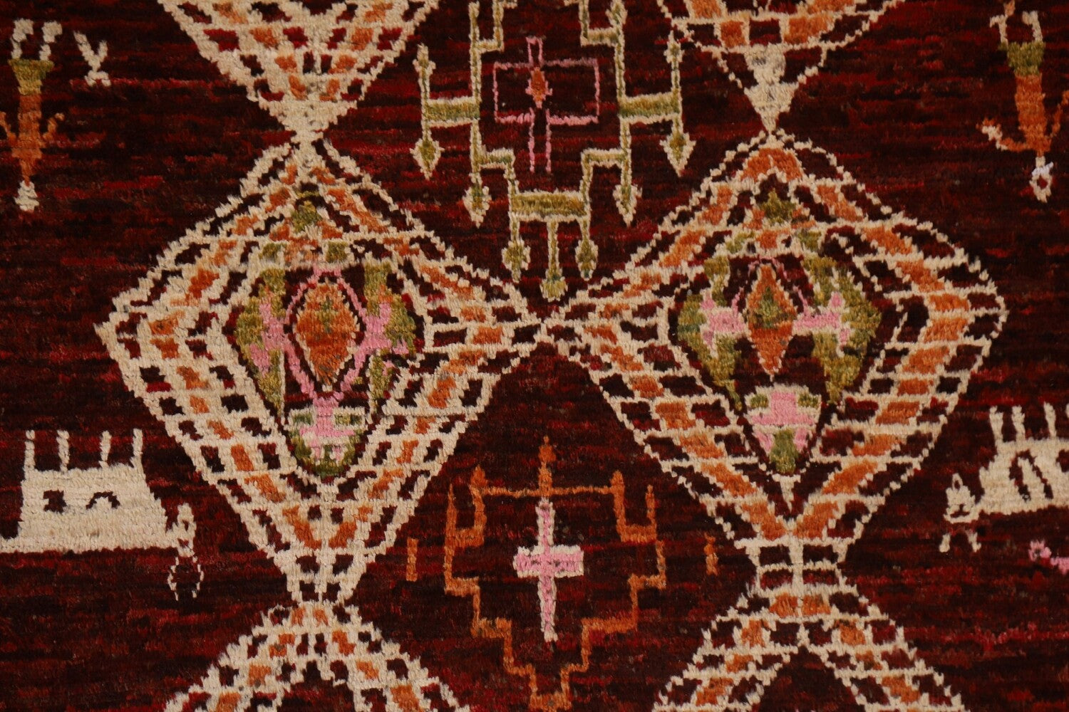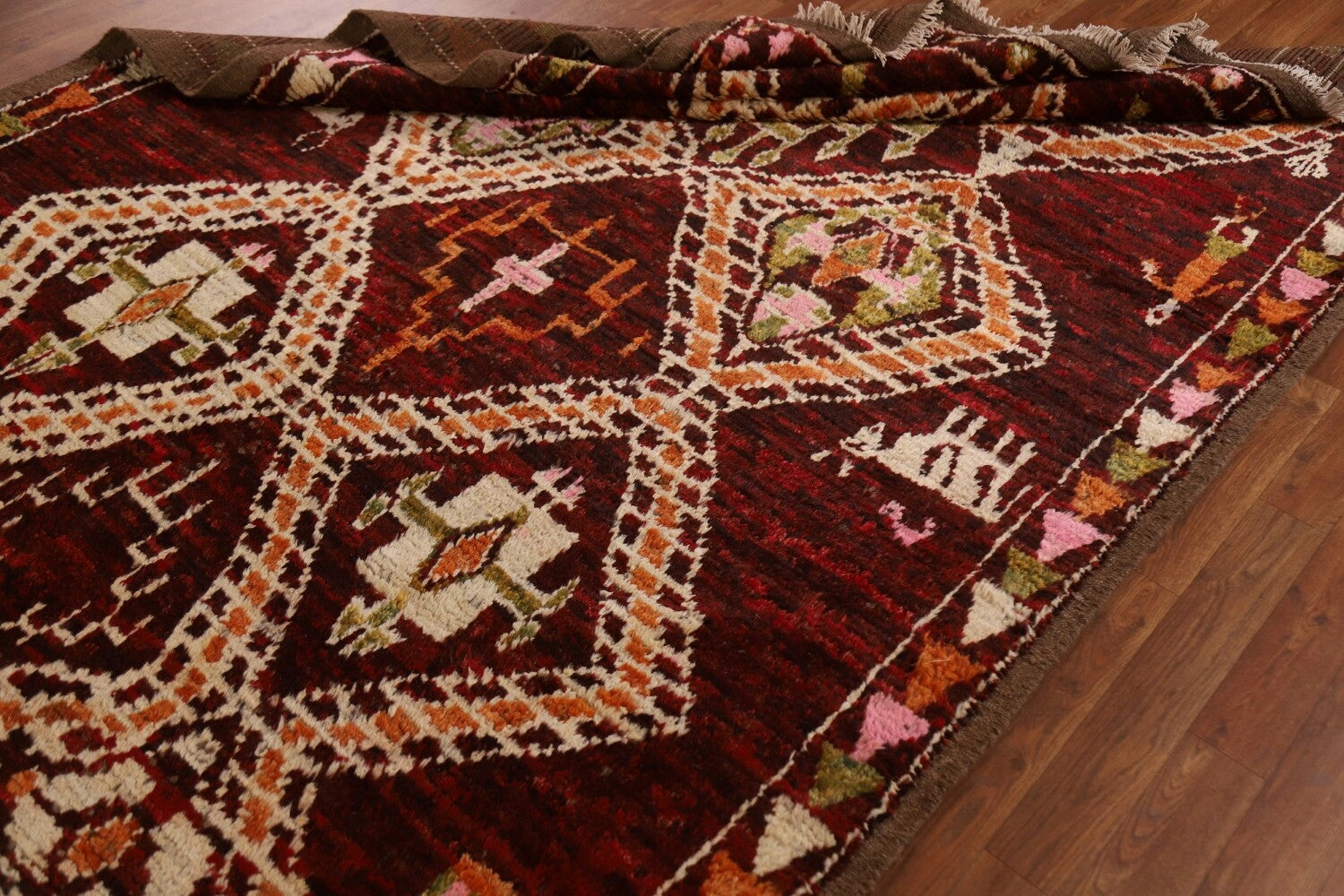 A Beautiful Genuine Pakistan Moroccan rug is Hand Knotted by skillful weavers in Pakistan with 100% Wool Material. This rug is in condition. dimensions are 8' 0'' X 5' 8'' in foot and 244 X 173 in centimeter. the primary color is Red.