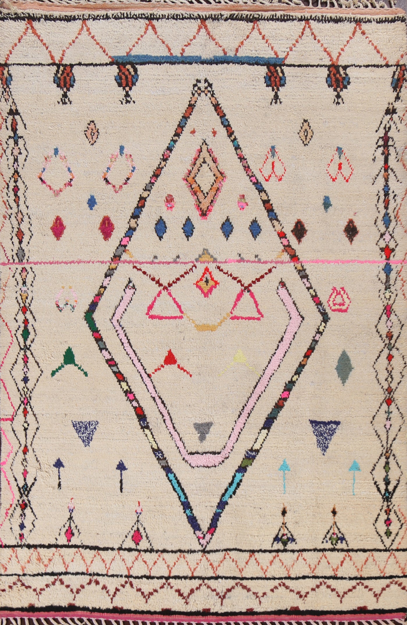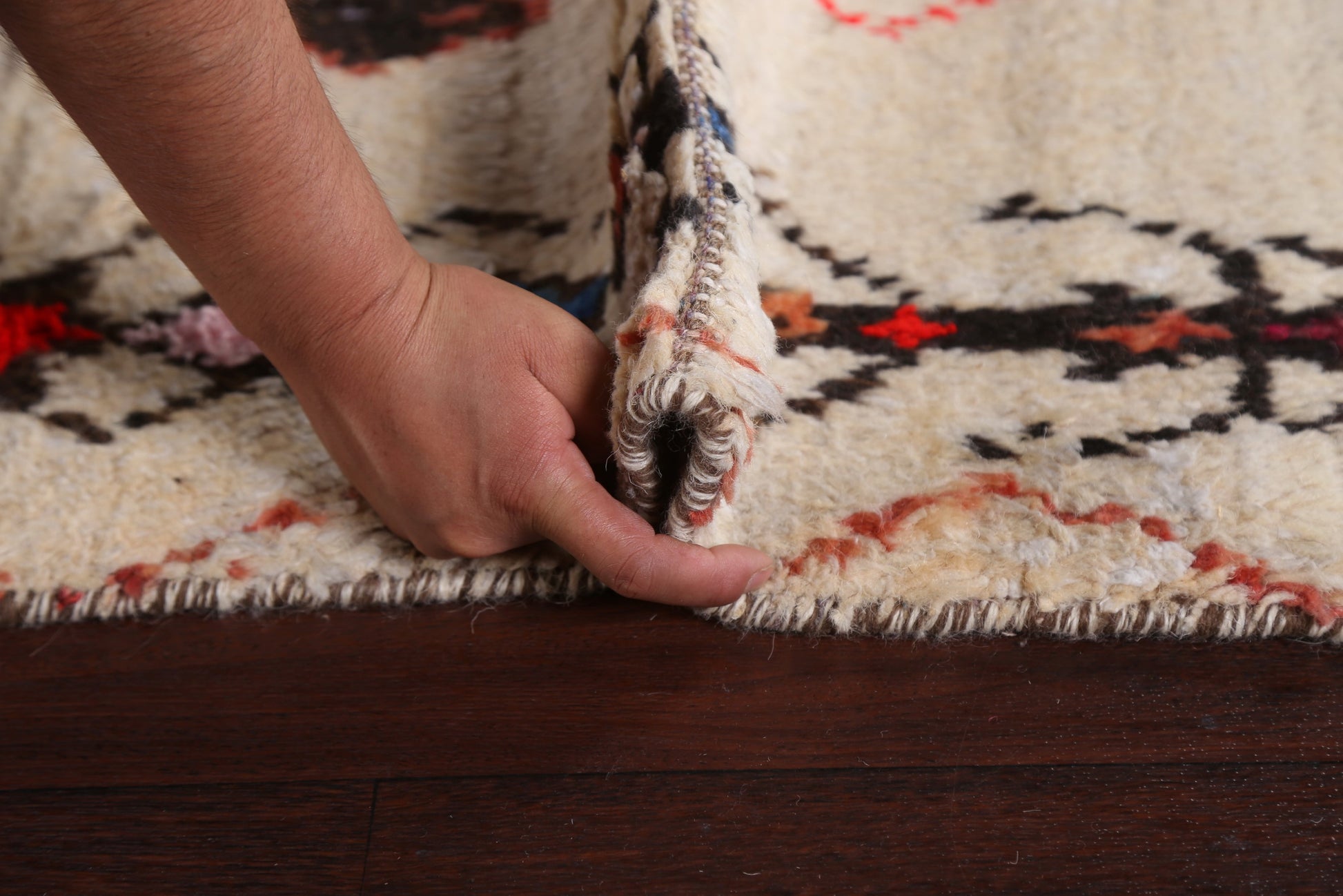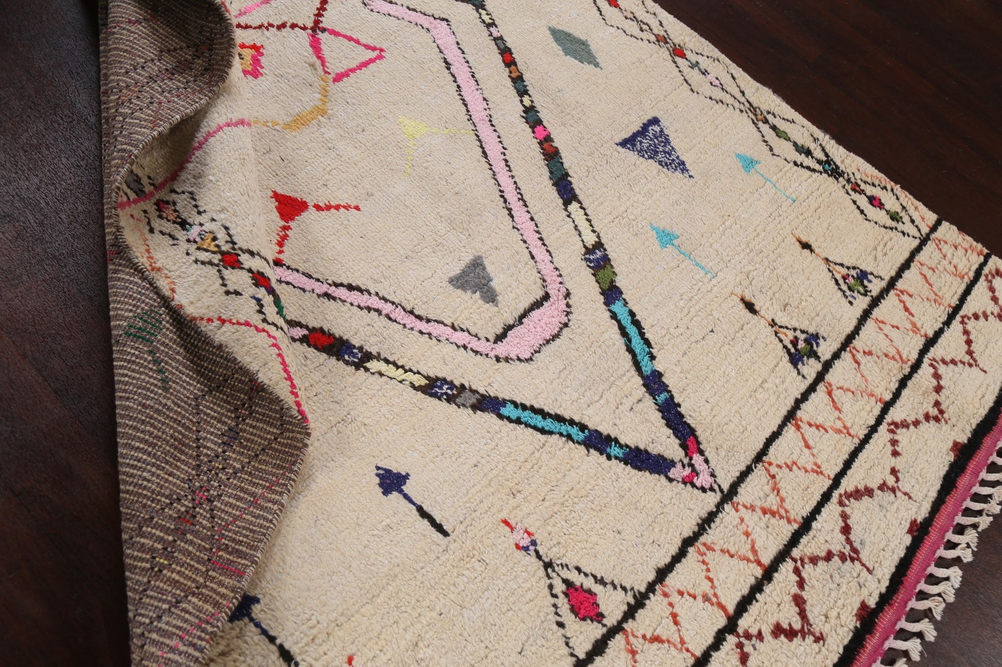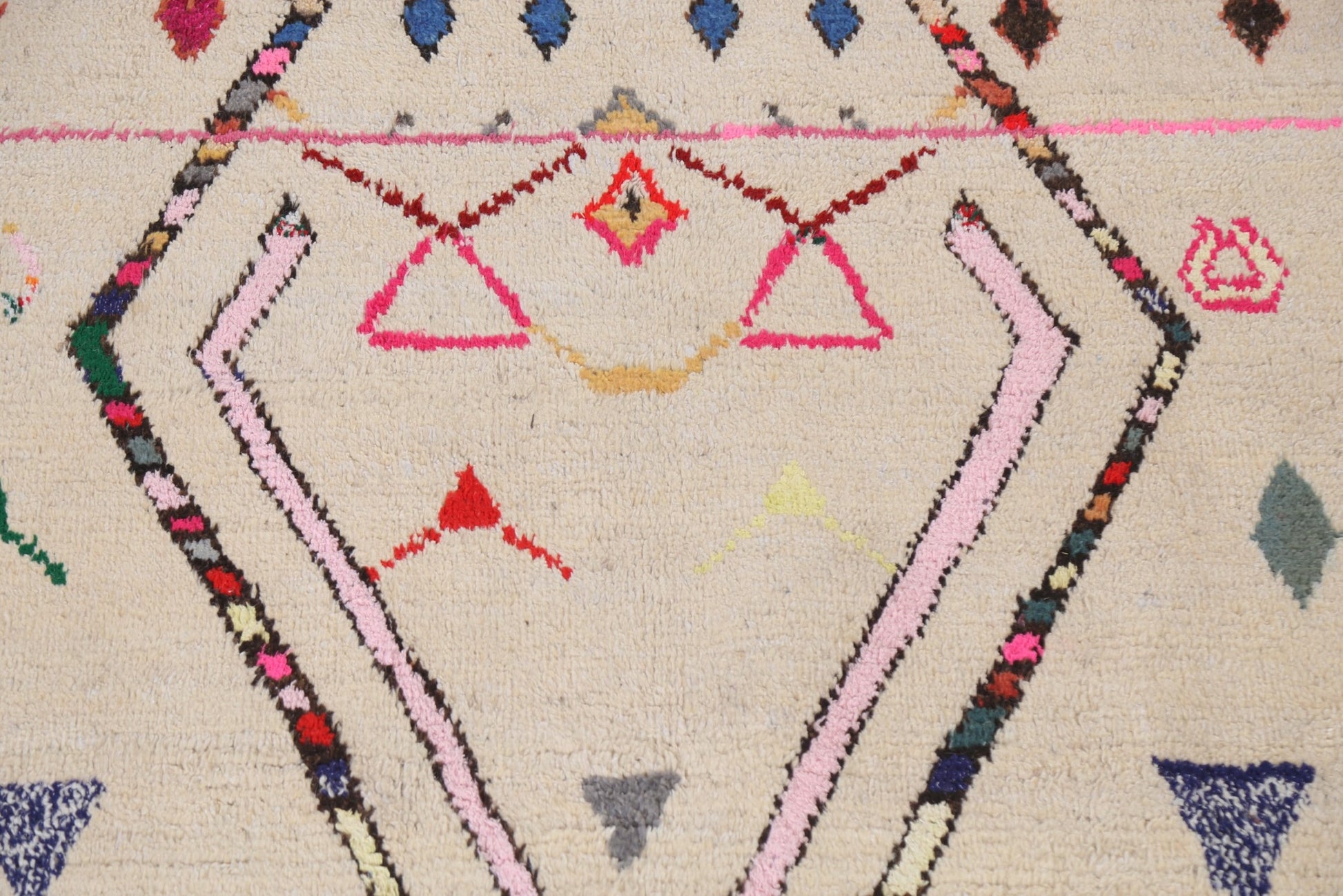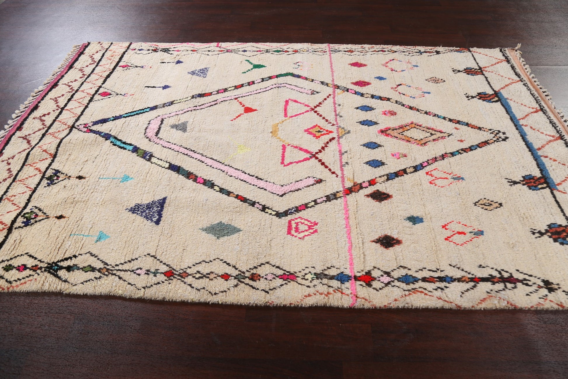 A Beautiful Genuine Morocco Moroccan rug is Hand Knotted by skillful weavers in Morocco with 100% Wool Material. This rug is in New, First Quality condition. dimensions are 9' 5'' X 6' 1'' in foot and 287 X 185 in centimeter. the primary color is Beige & Ivories.
