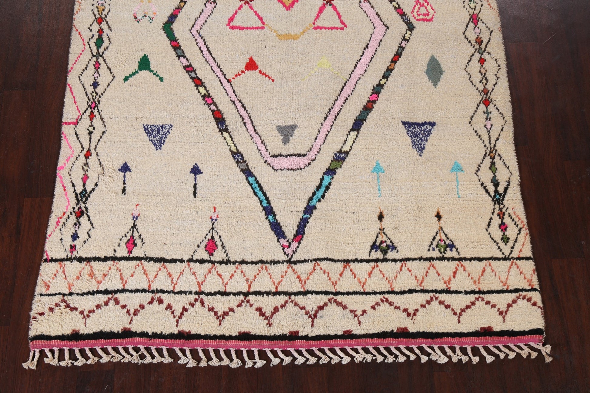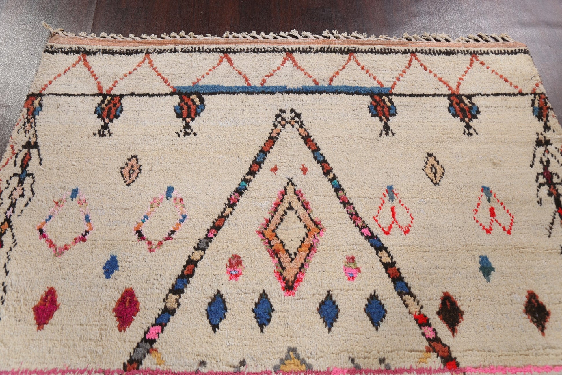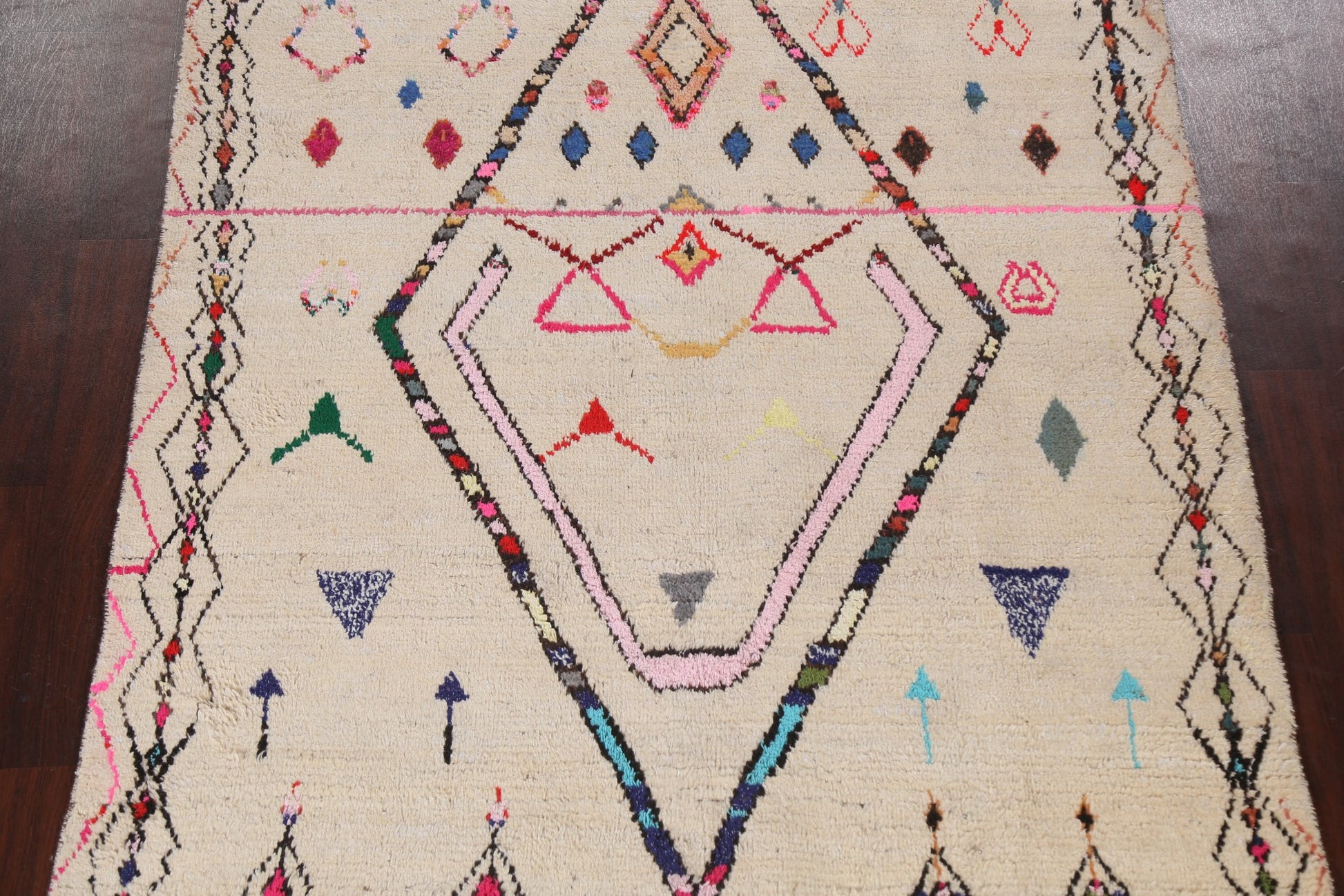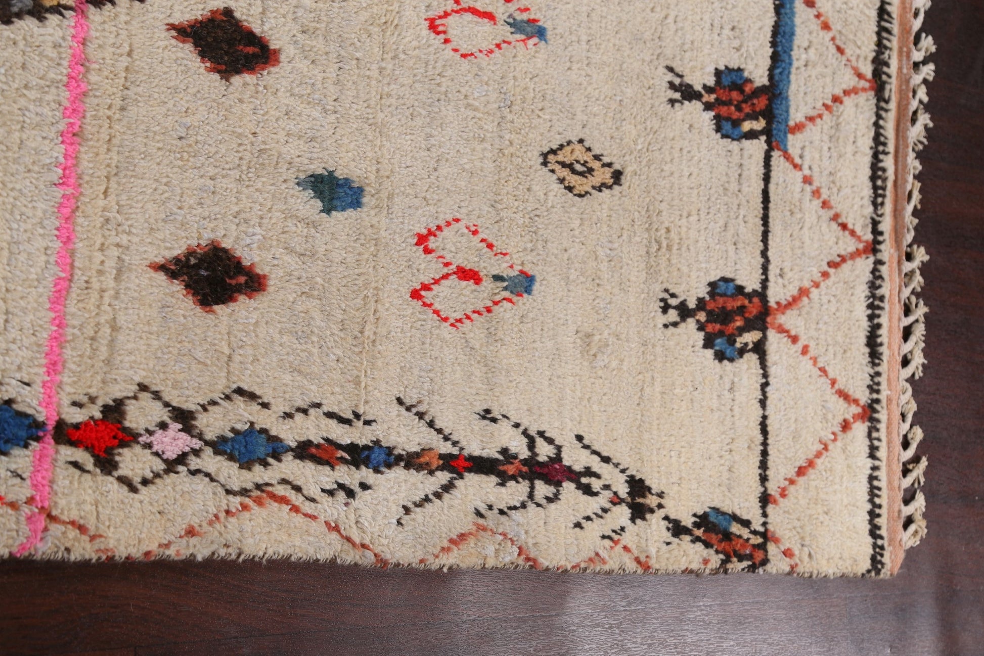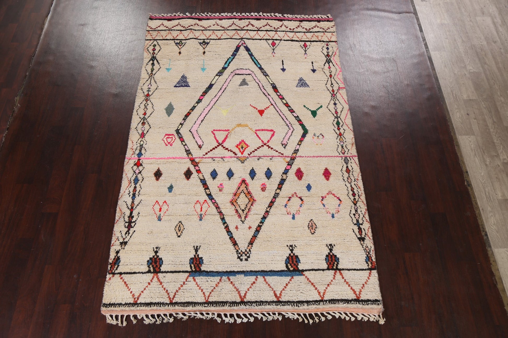 A Beautiful Genuine Morocco Moroccan rug is Hand Knotted by skillful weavers in Morocco with 100% Wool Material. This rug is in New, First Quality condition. dimensions are 9' 5'' X 6' 1'' in foot and 287 X 185 in centimeter. the primary color is Beige & Ivories.