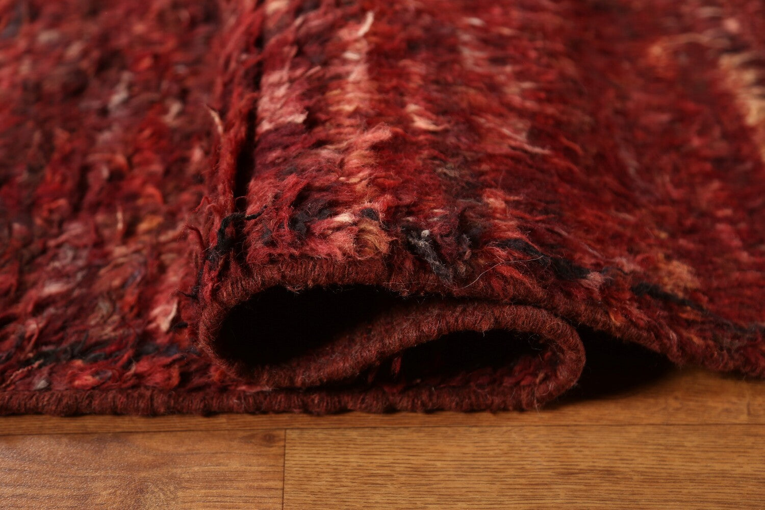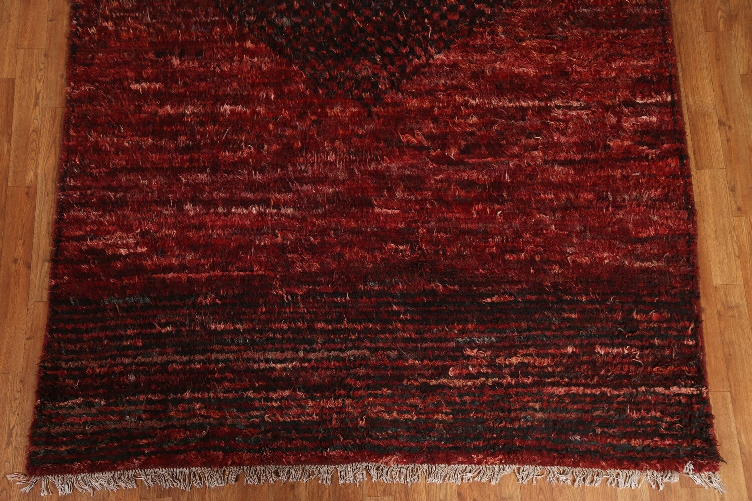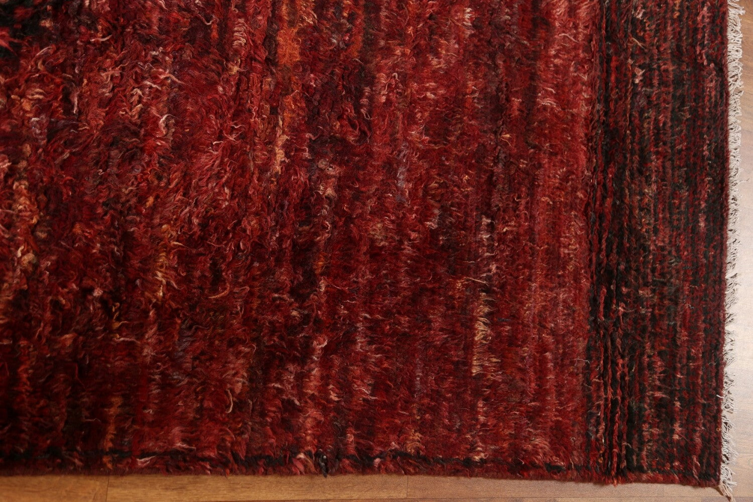 A Beautiful Genuine Pakistan Moroccan rug is Hand Knotted by skillful weavers in Pakistan with 100% Wool Material. This rug is in condition. dimensions are 9' 5'' X 6' 0'' in foot and 287 X 183 in centimeter. the primary color is Red.