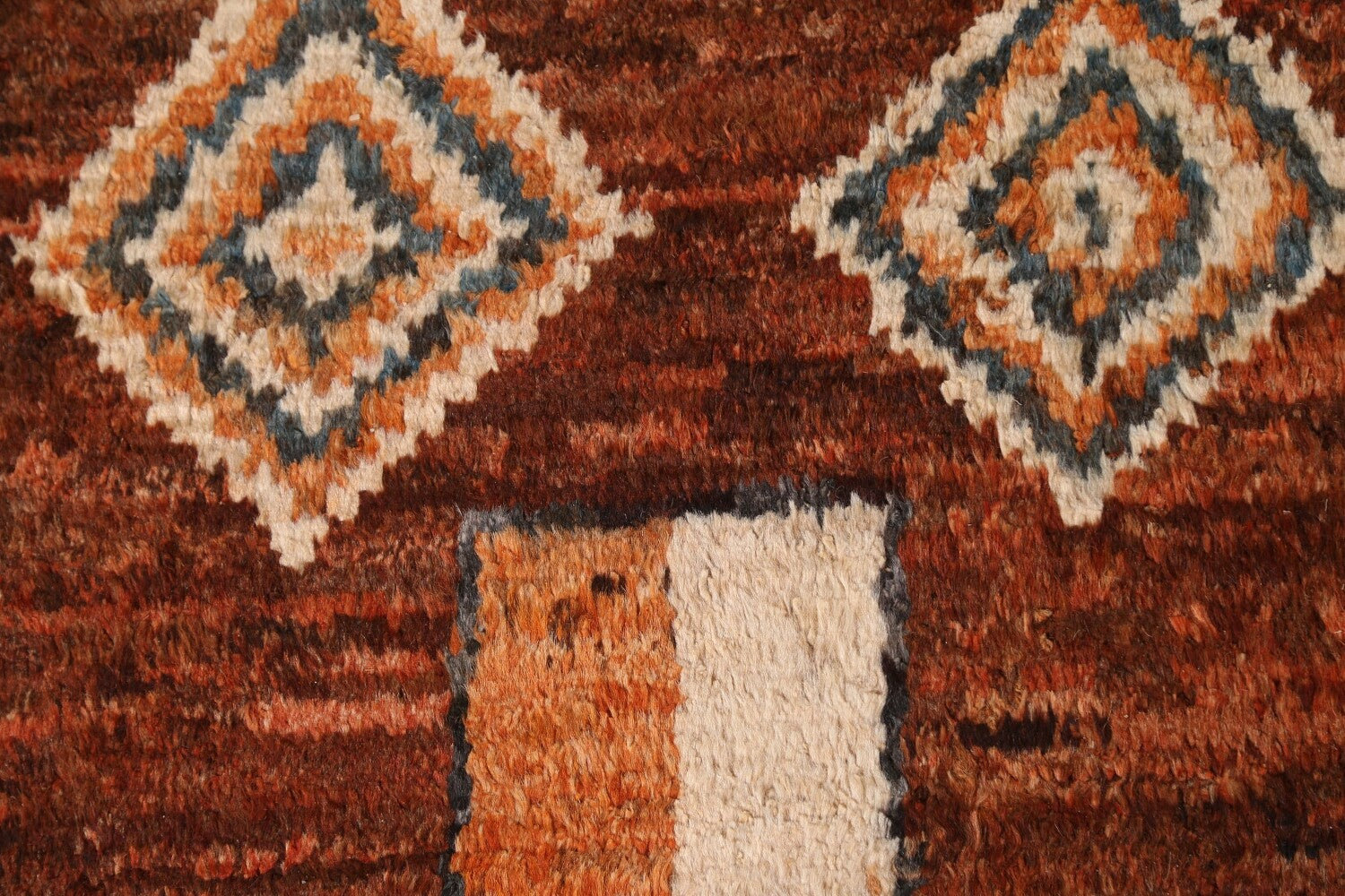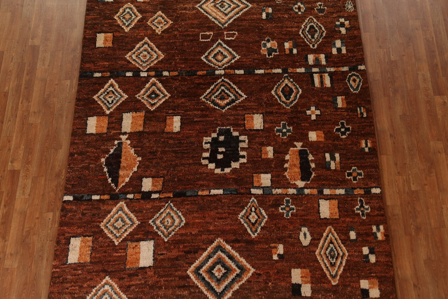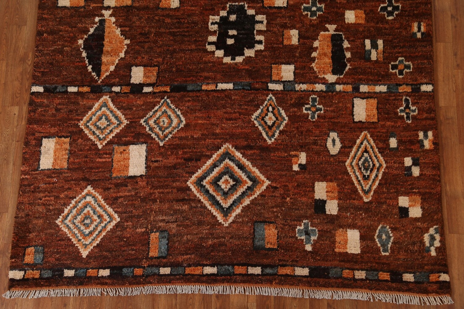 A Beautiful Genuine Pakistan Moroccan rug is Hand Knotted by skillful weavers in Pakistan with 100% Wool Material. This rug is in condition. dimensions are 9' 6'' X 6' 9'' in foot and 290 X 206 in centimeter. the primary color is Brown.