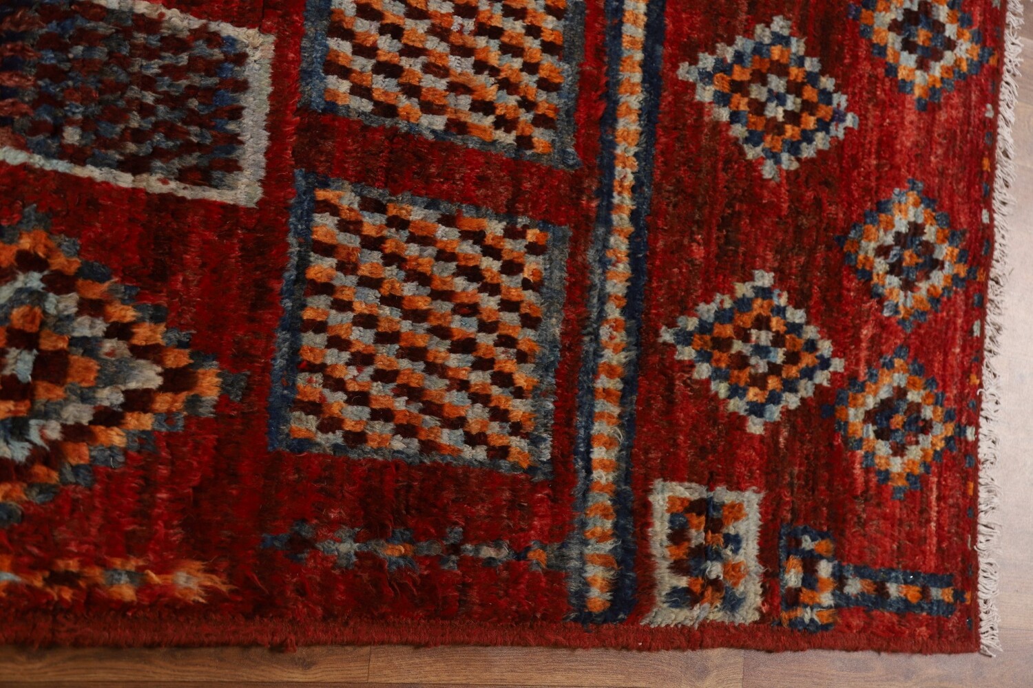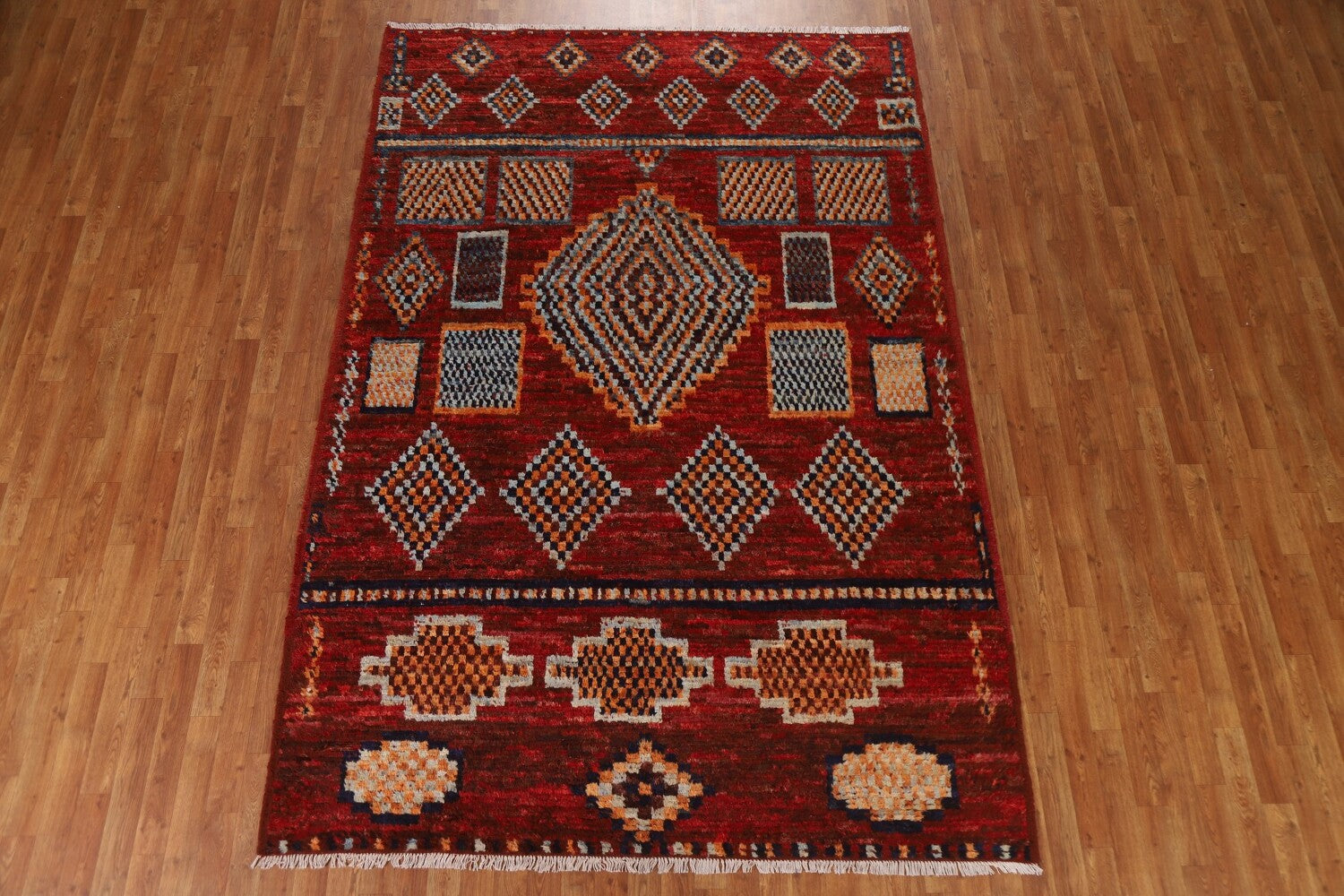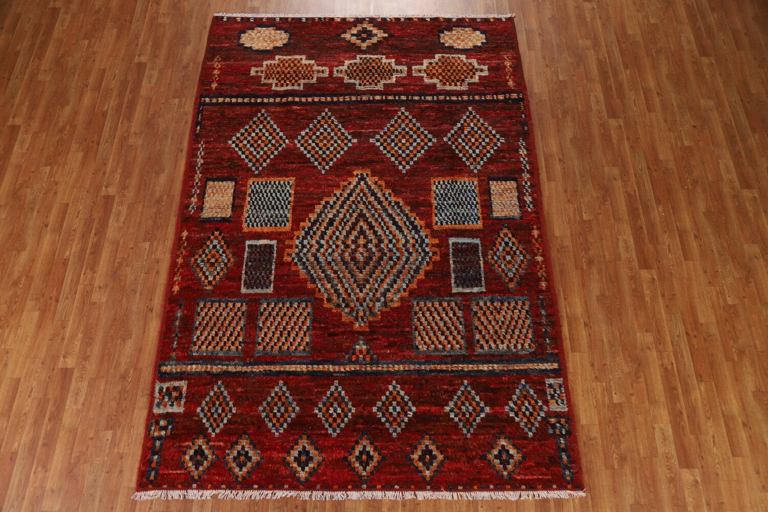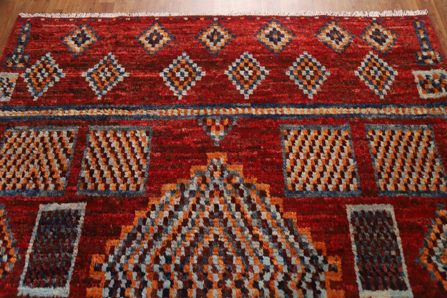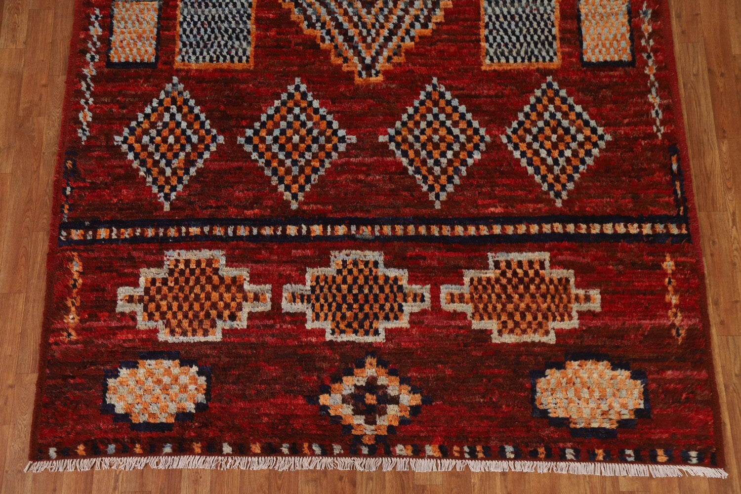 A Beautiful Genuine Pakistan Moroccan rug is Hand Knotted by skillful weavers in Pakistan with 100% Wool Material. This rug is in condition. dimensions are 9' 7'' X 6' 7'' in foot and 292 X 201 in centimeter. the primary color is Red.