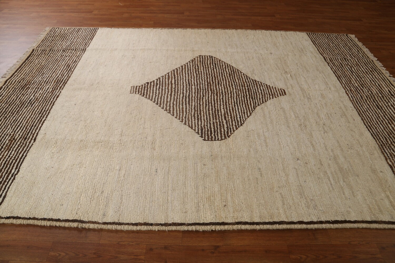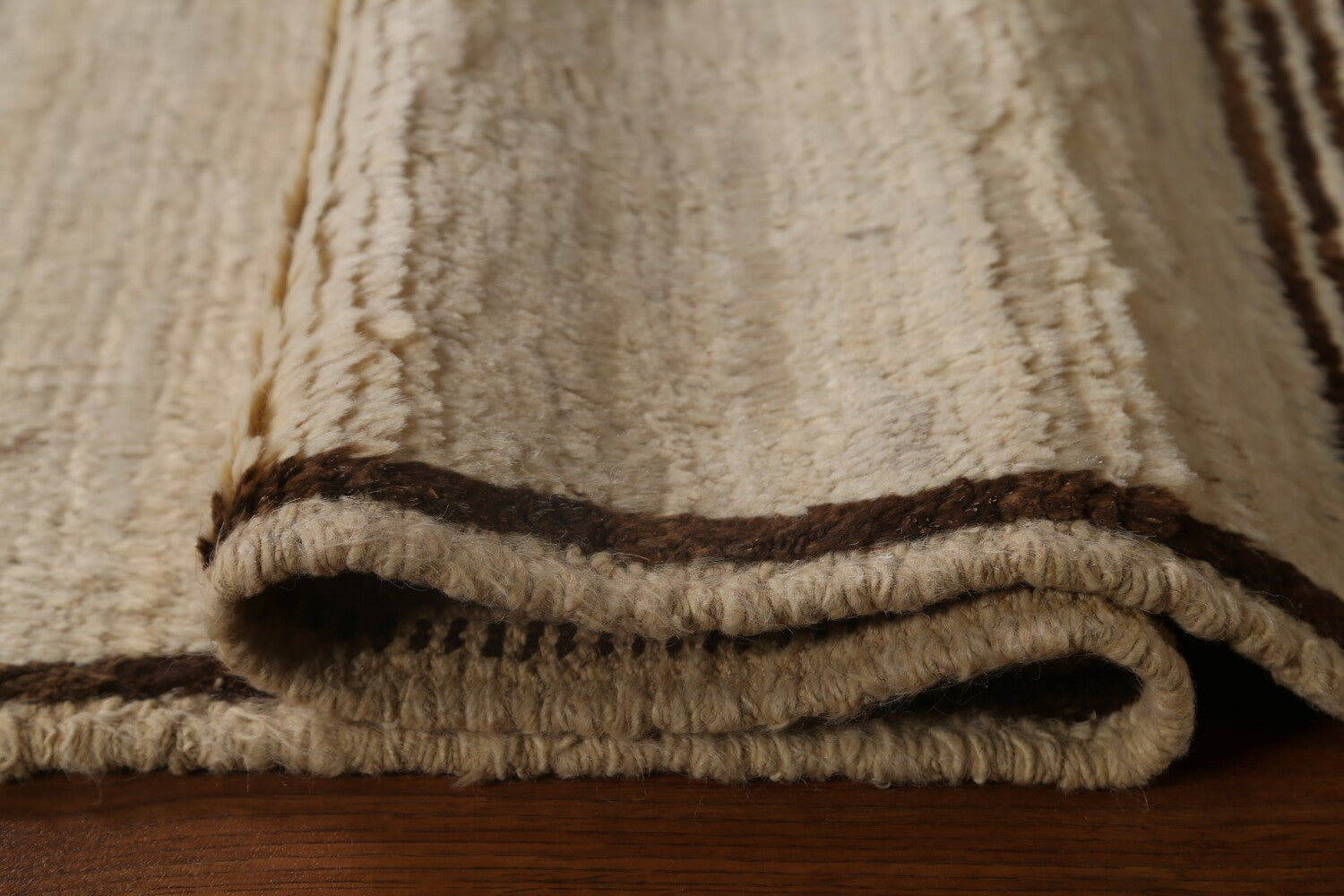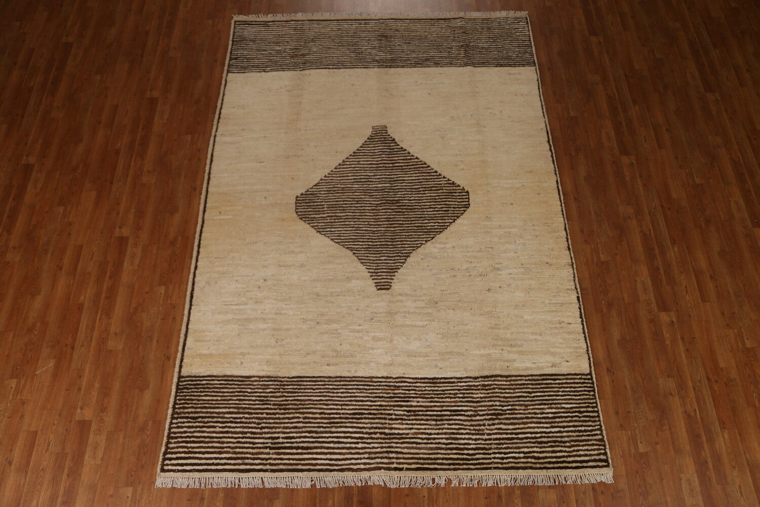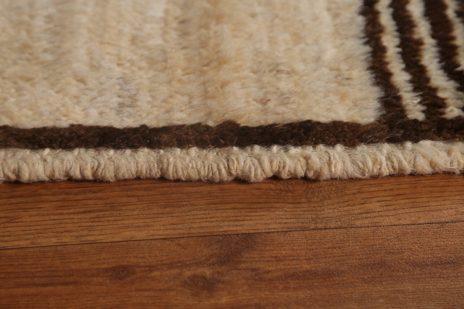 A Beautiful Genuine Pakistan Moroccan rug is Hand Knotted by skillful weavers in Pakistan with 100% Wool Material. This rug is in condition. dimensions are 9' 10'' X 6' 9'' in foot and 300 X 206 in centimeter. the primary color is Beige & Ivories.