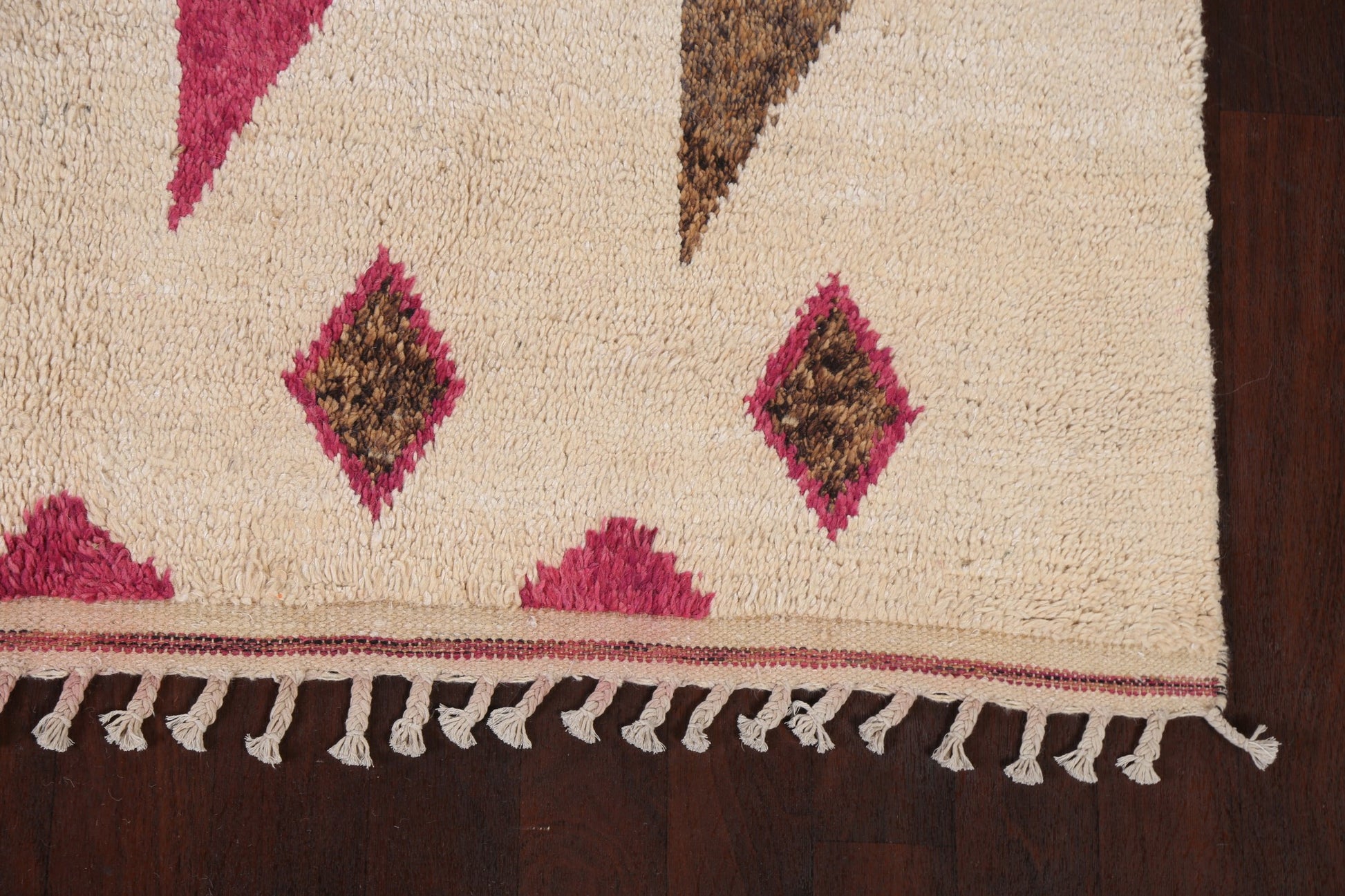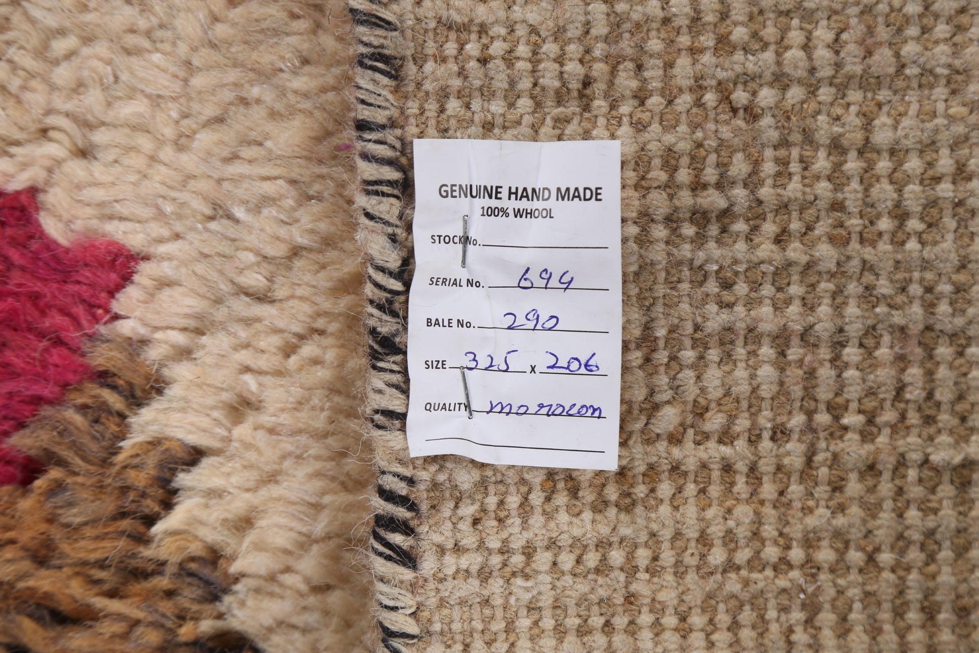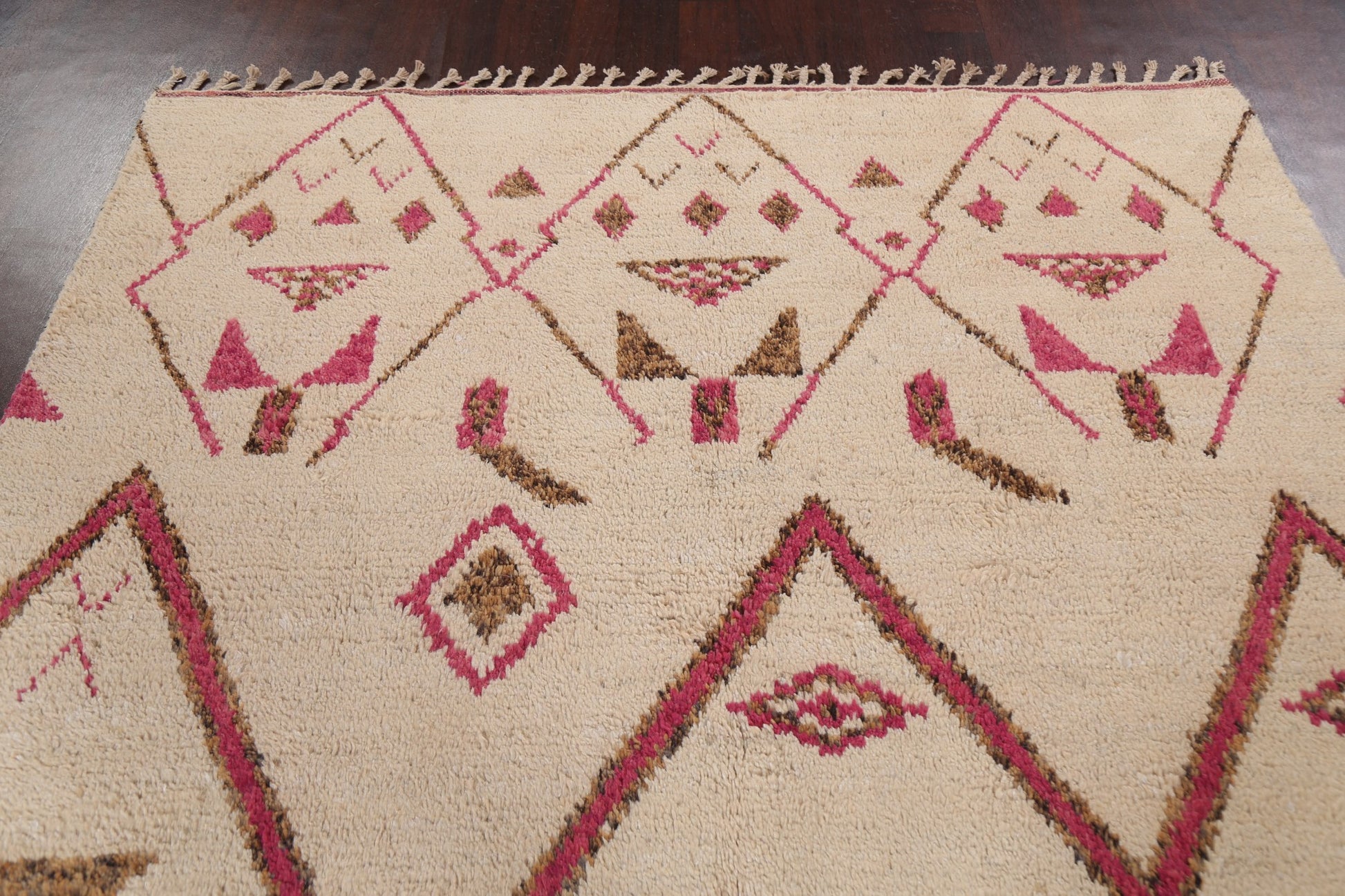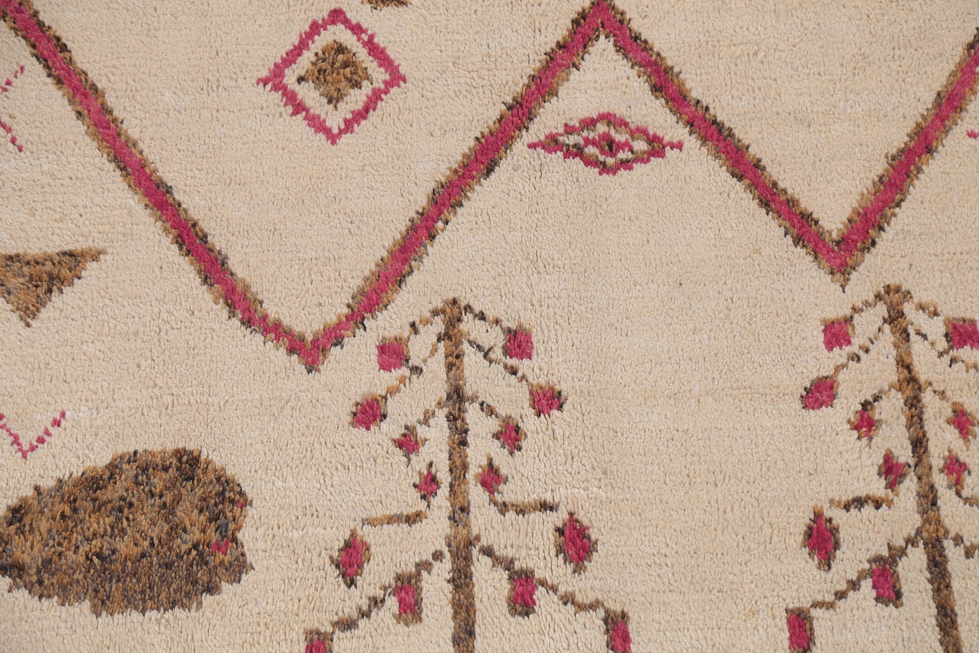 A Beautiful Genuine Morocco Moroccan rug is Hand Knotted by skillful weavers in Morocco with 100% Wool Material. This rug is in New, First Quality condition. dimensions are 11' 0'' X 6' 10'' in foot and 335 X 208 in centimeter. the primary color is Beige & Ivories.