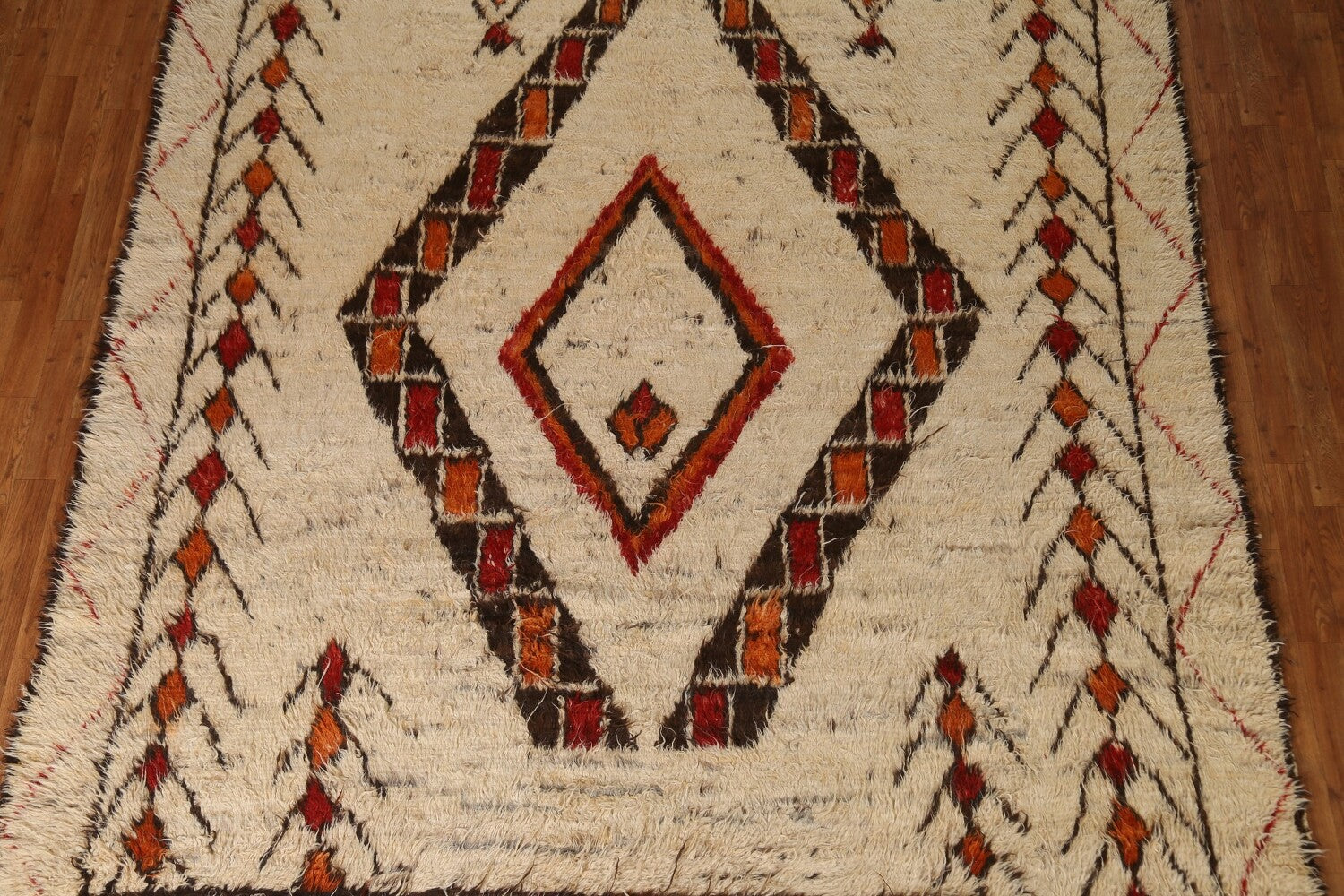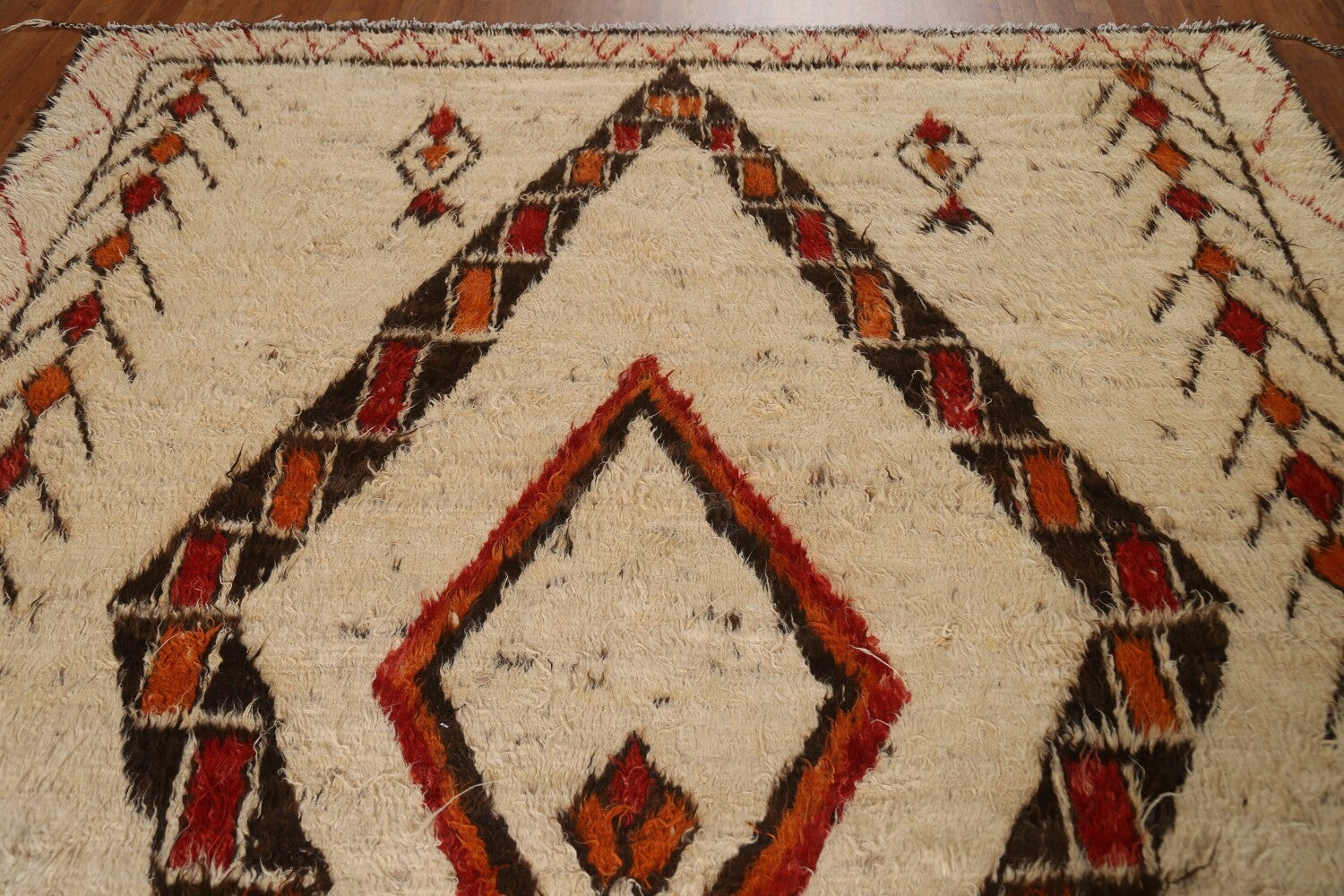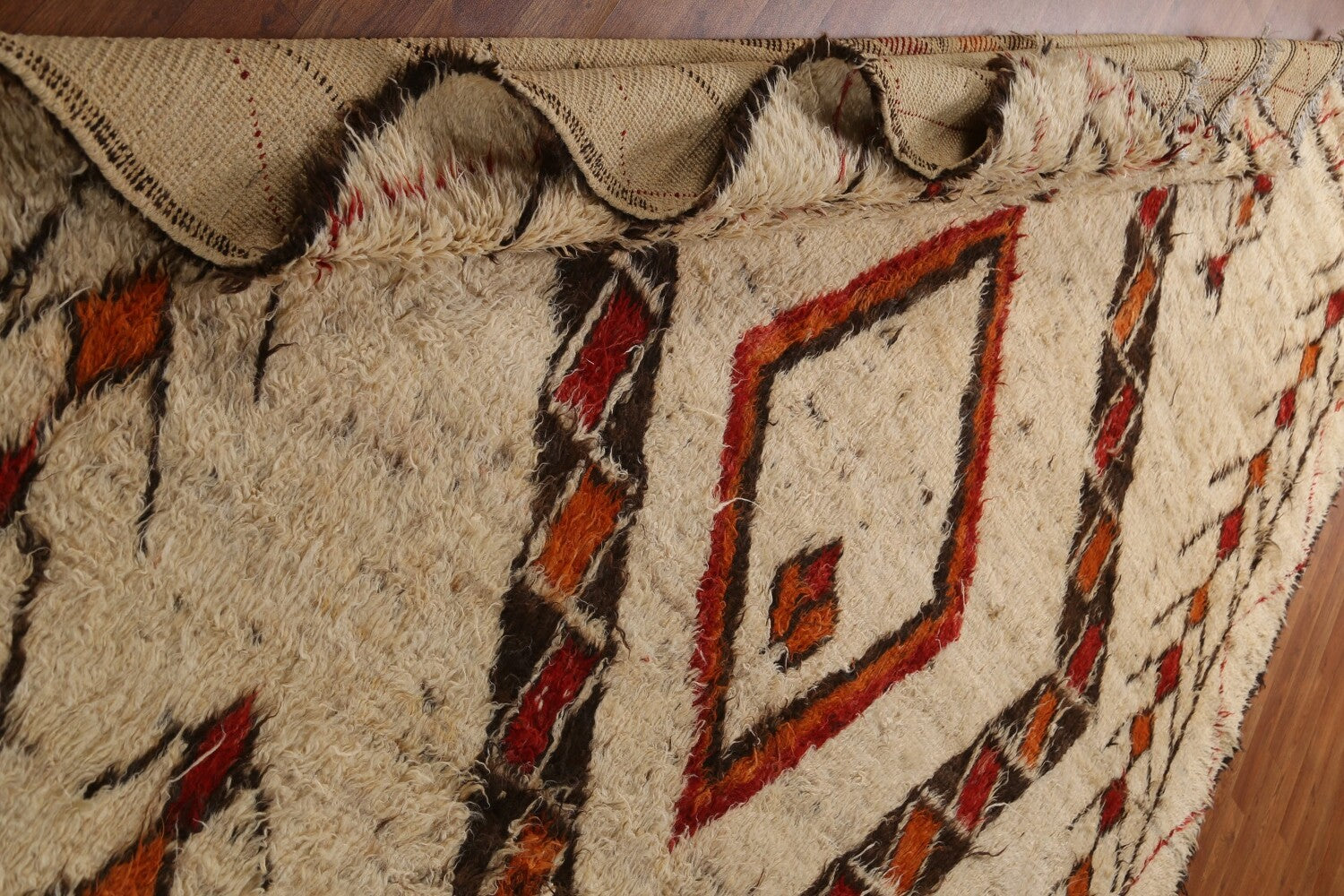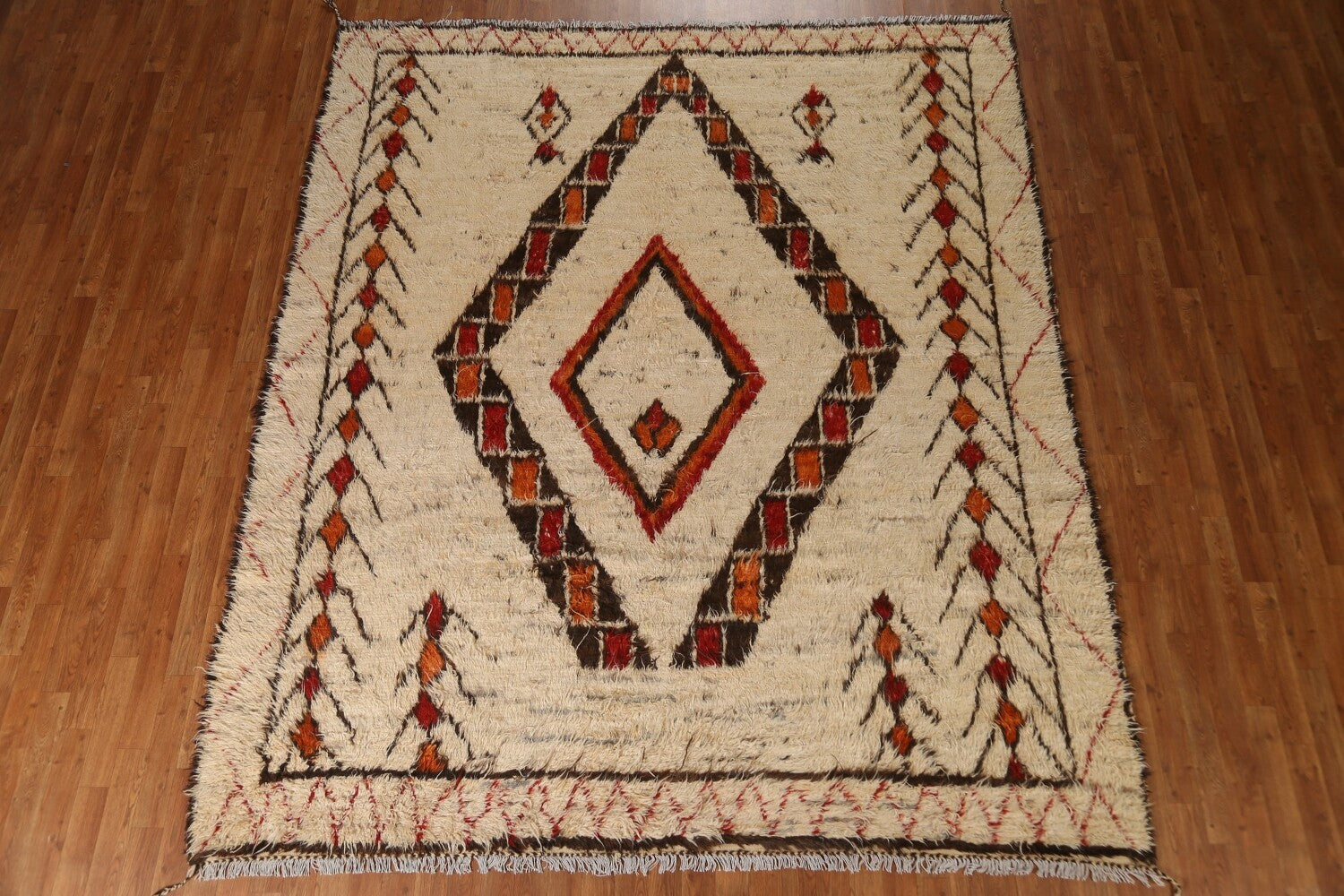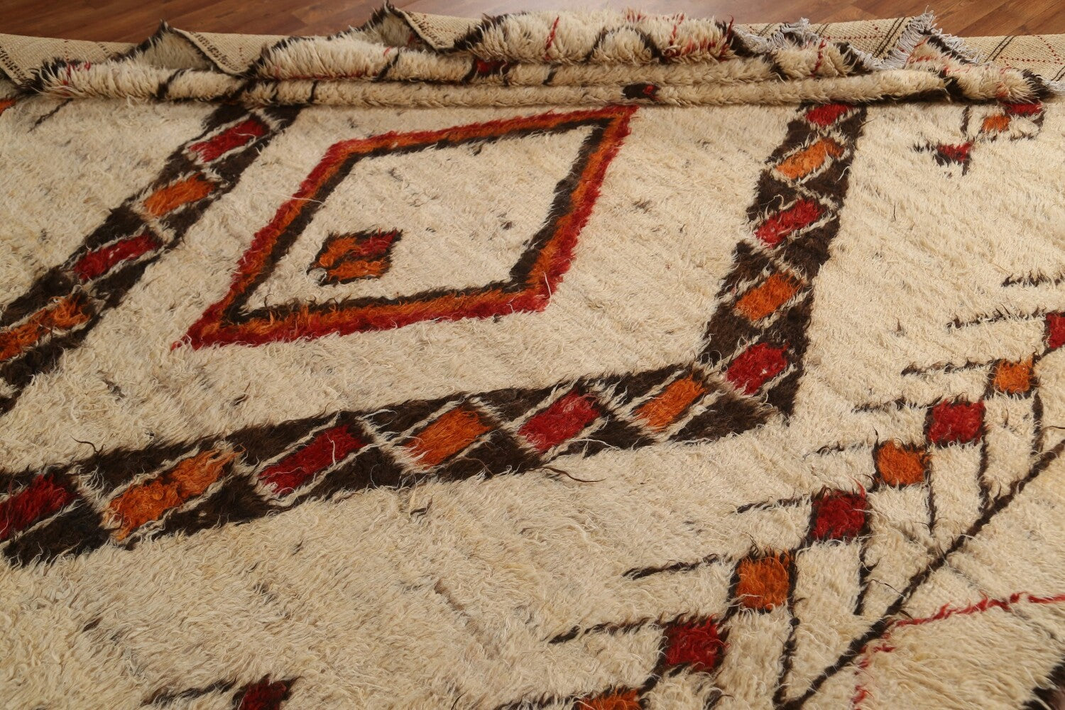 A Beautiful Genuine Pakistan Moroccan rug is Hand Knotted by skillful weavers in Pakistan with 100% Wool Material. This rug is in condition. dimensions are 9' 6'' X 8' 3'' in foot and 290 X 251 in centimeter. the primary color is Beige & Ivories.
