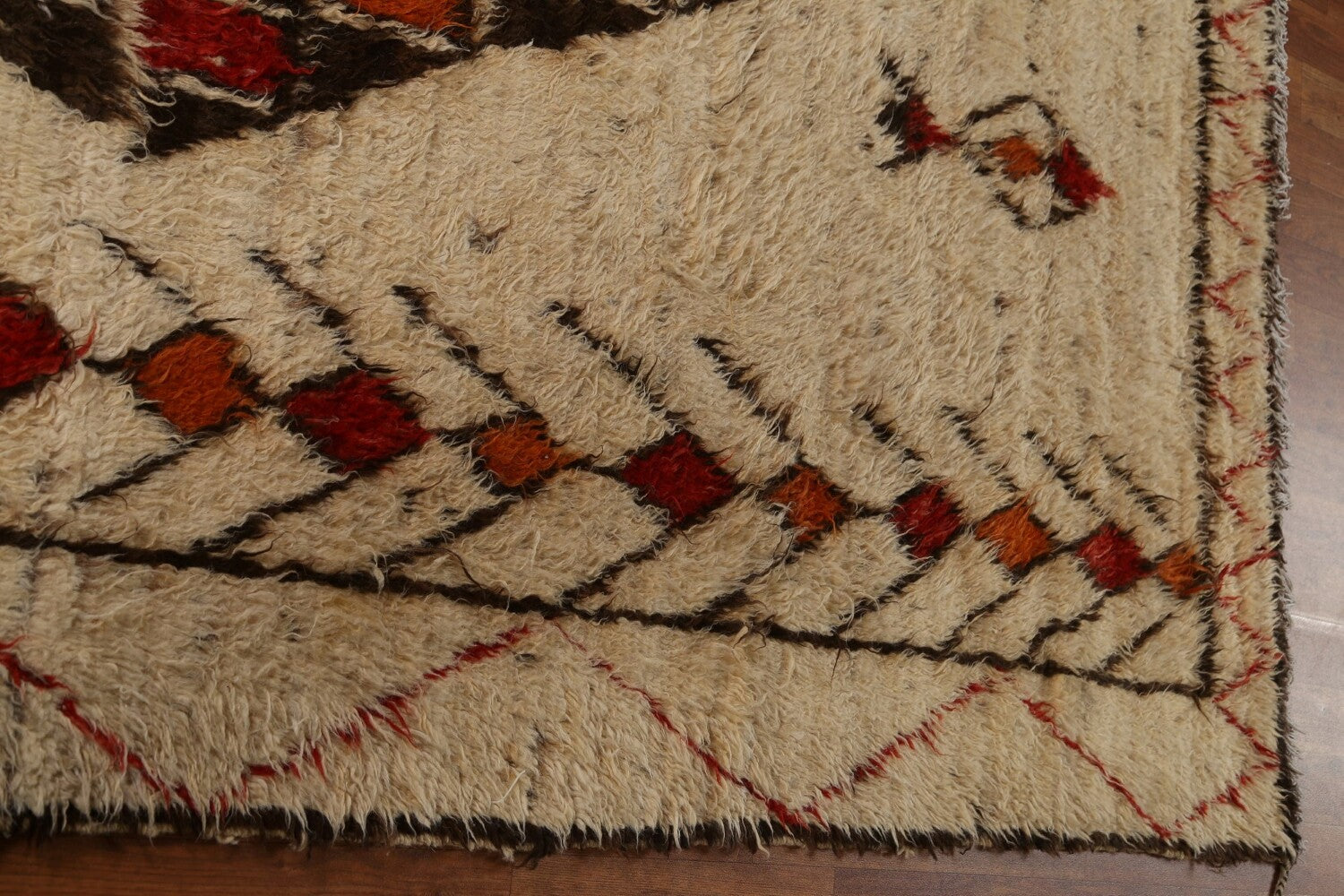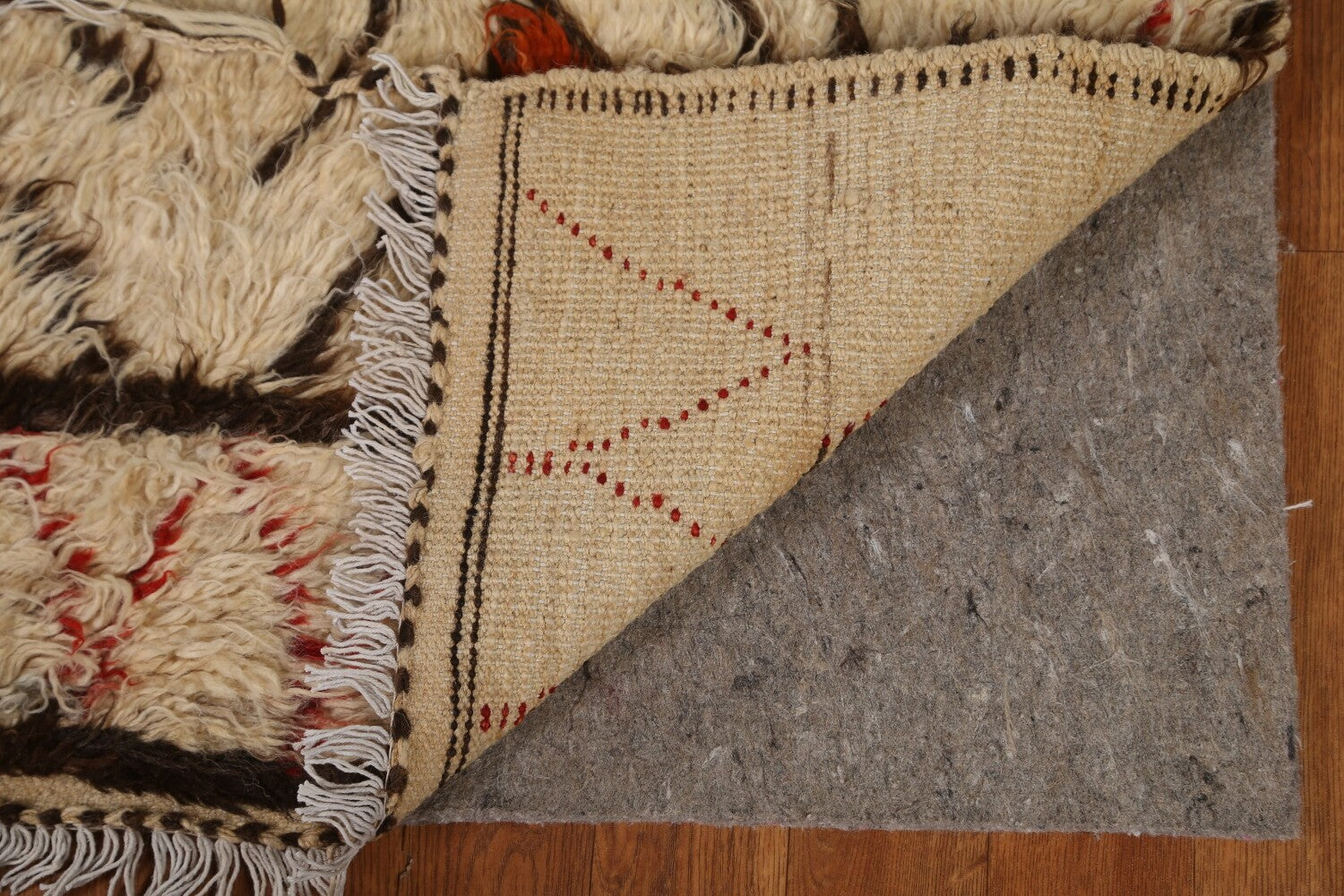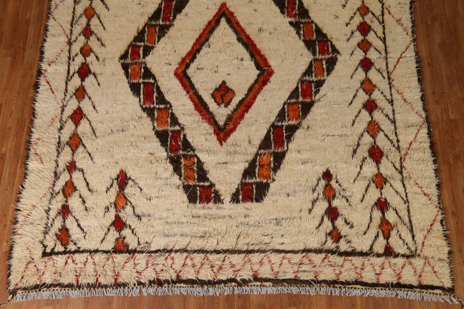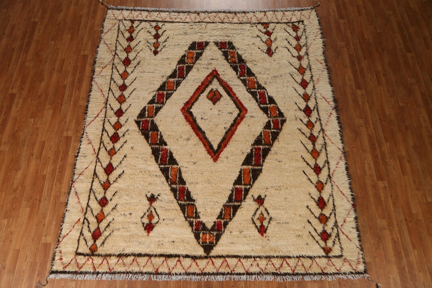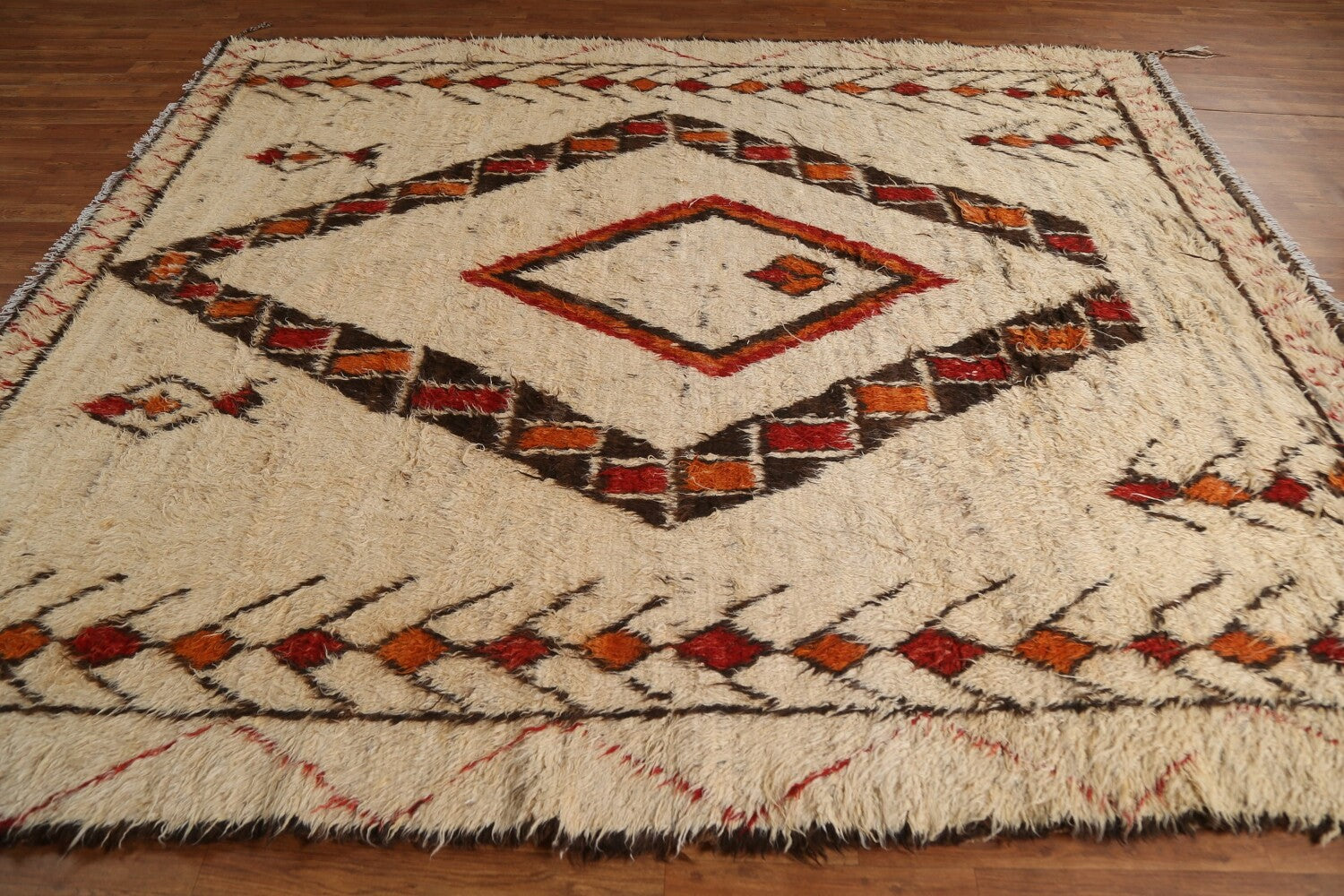 A Beautiful Genuine Pakistan Moroccan rug is Hand Knotted by skillful weavers in Pakistan with 100% Wool Material. This rug is in condition. dimensions are 9' 6'' X 8' 3'' in foot and 290 X 251 in centimeter. the primary color is Beige & Ivories.
