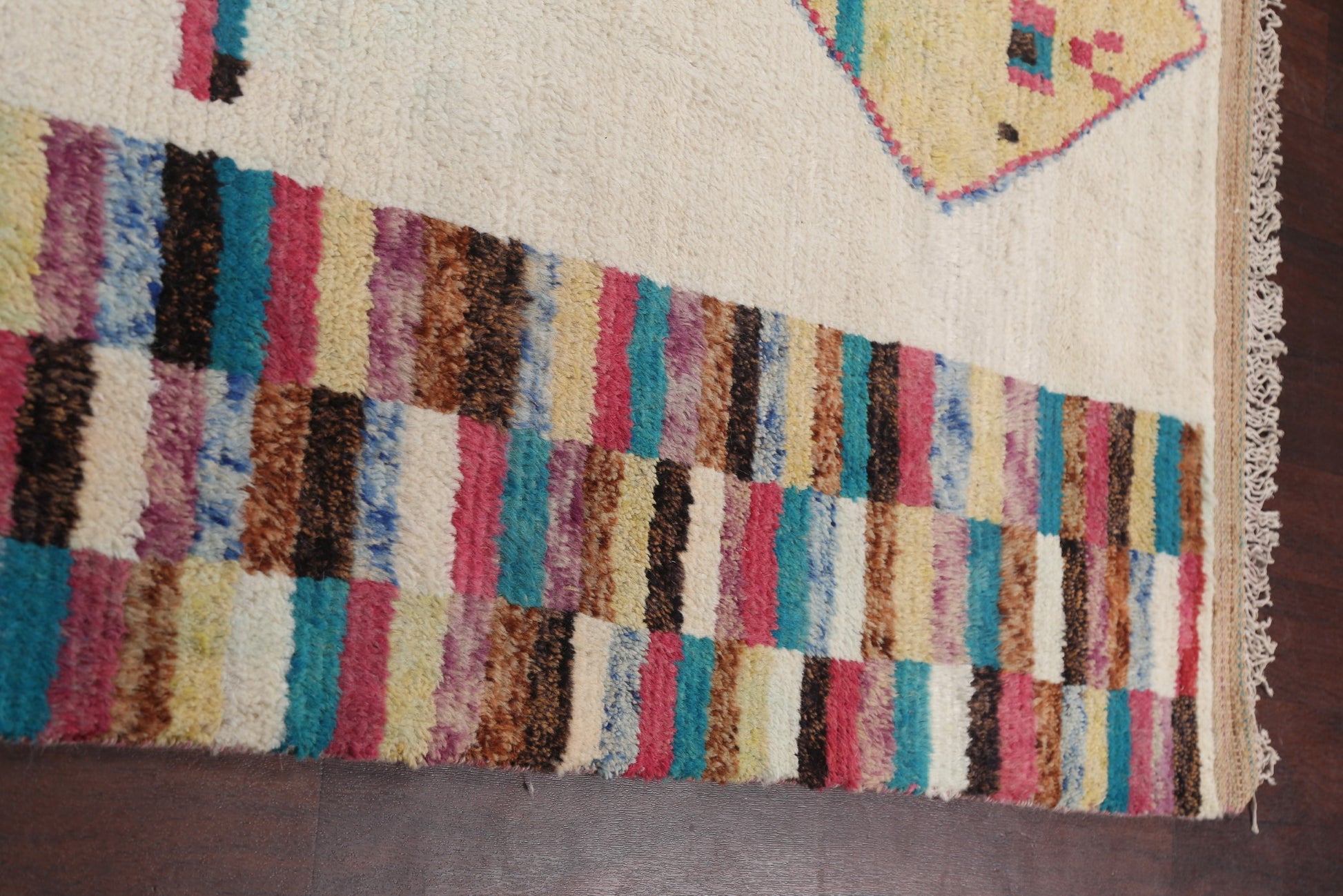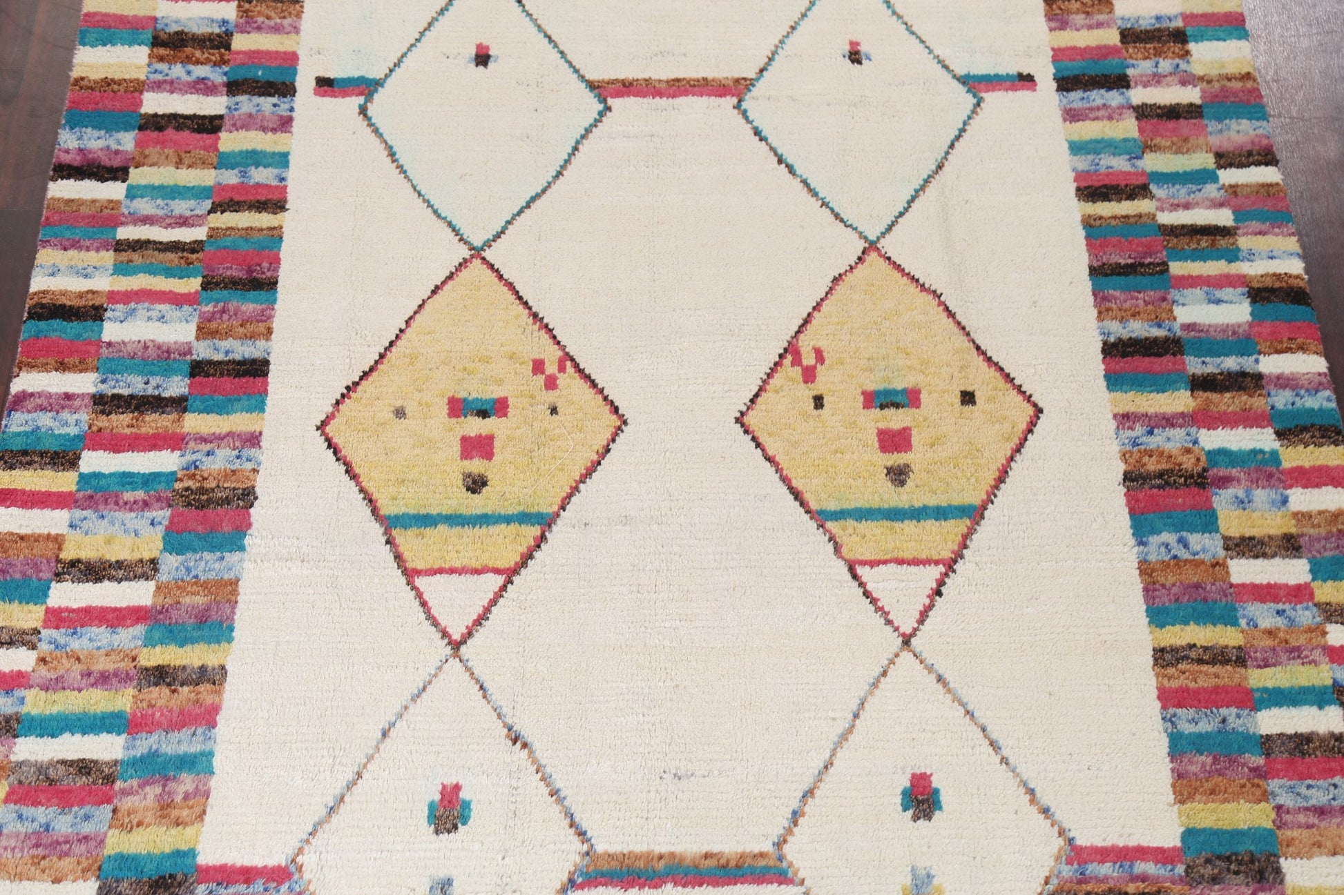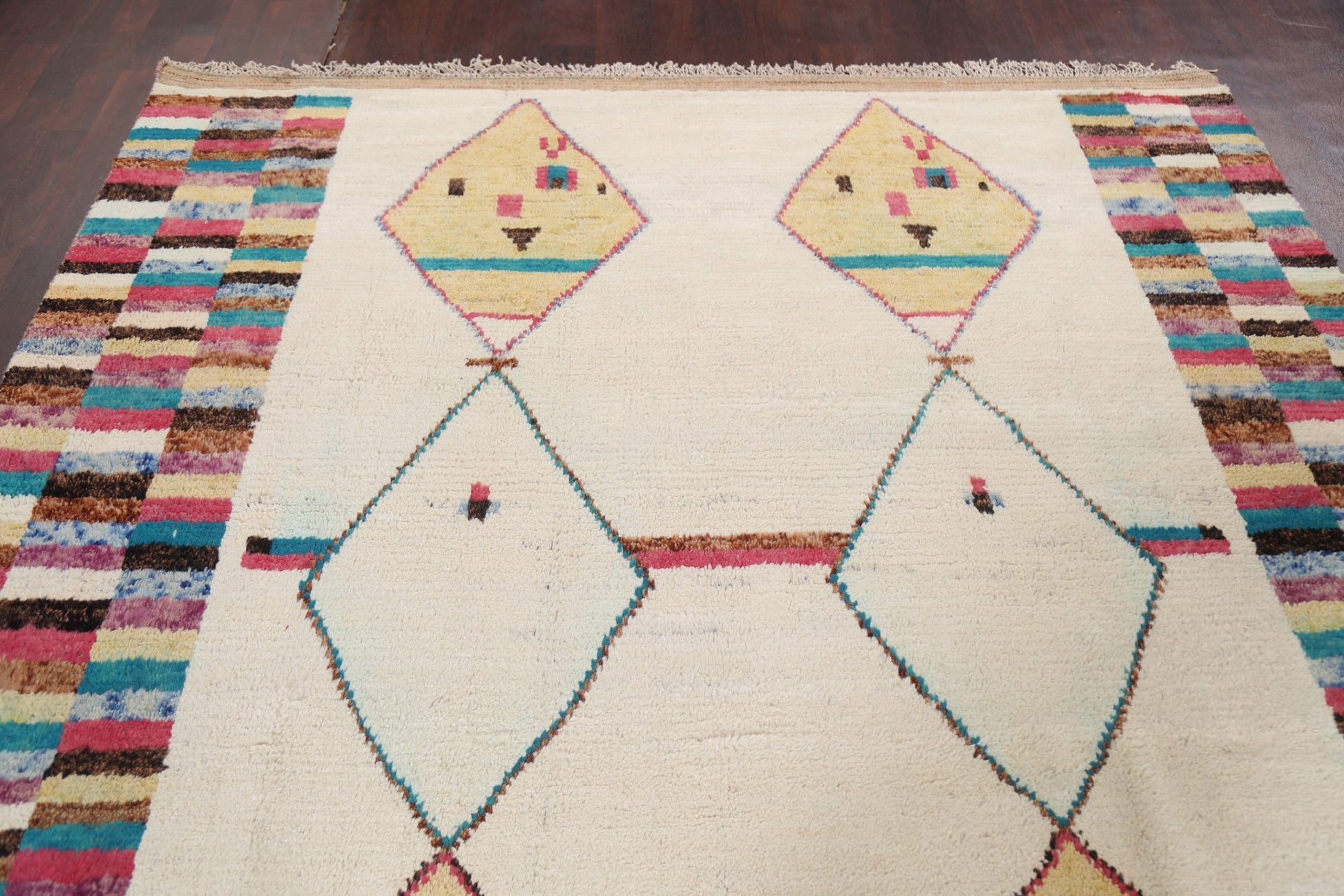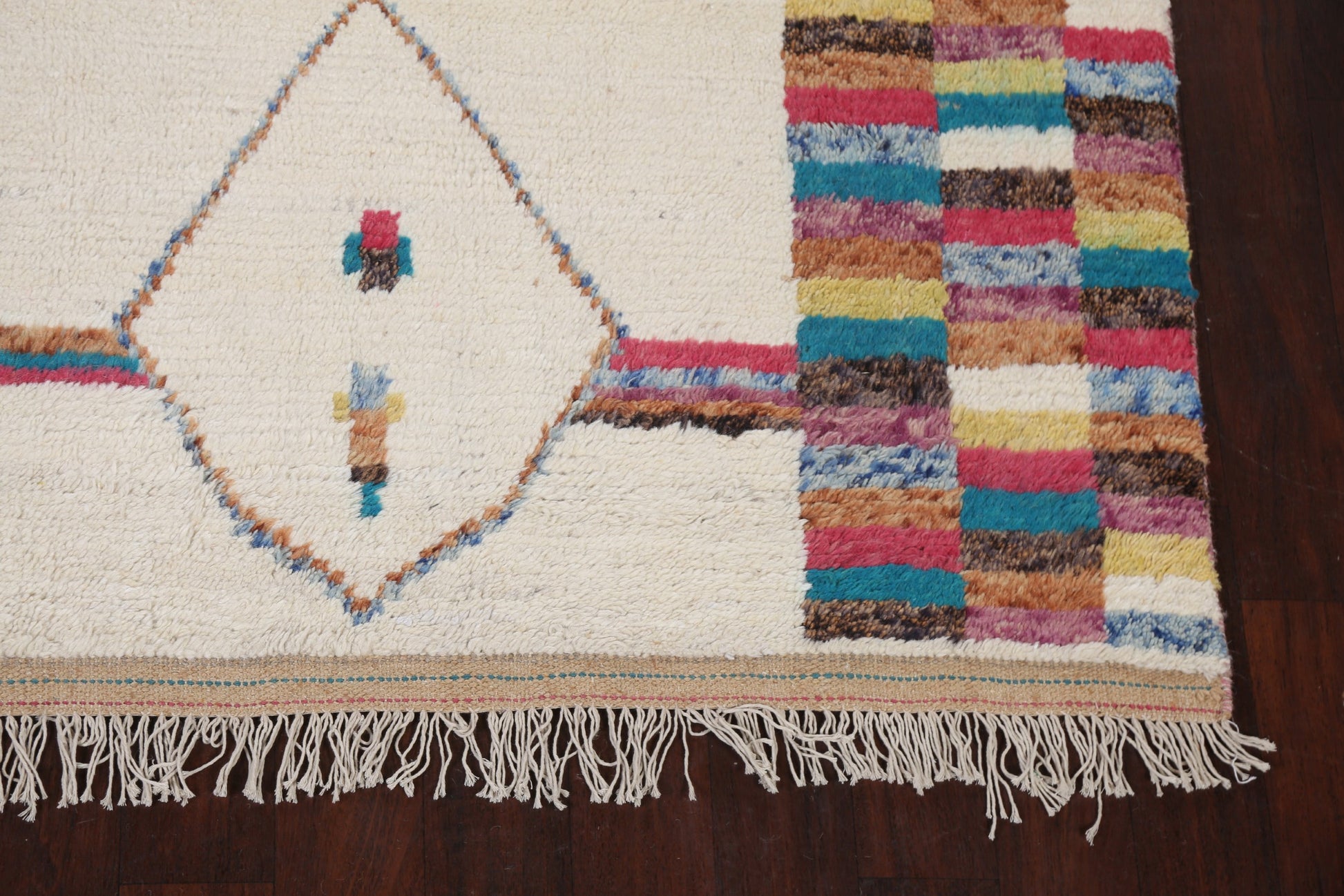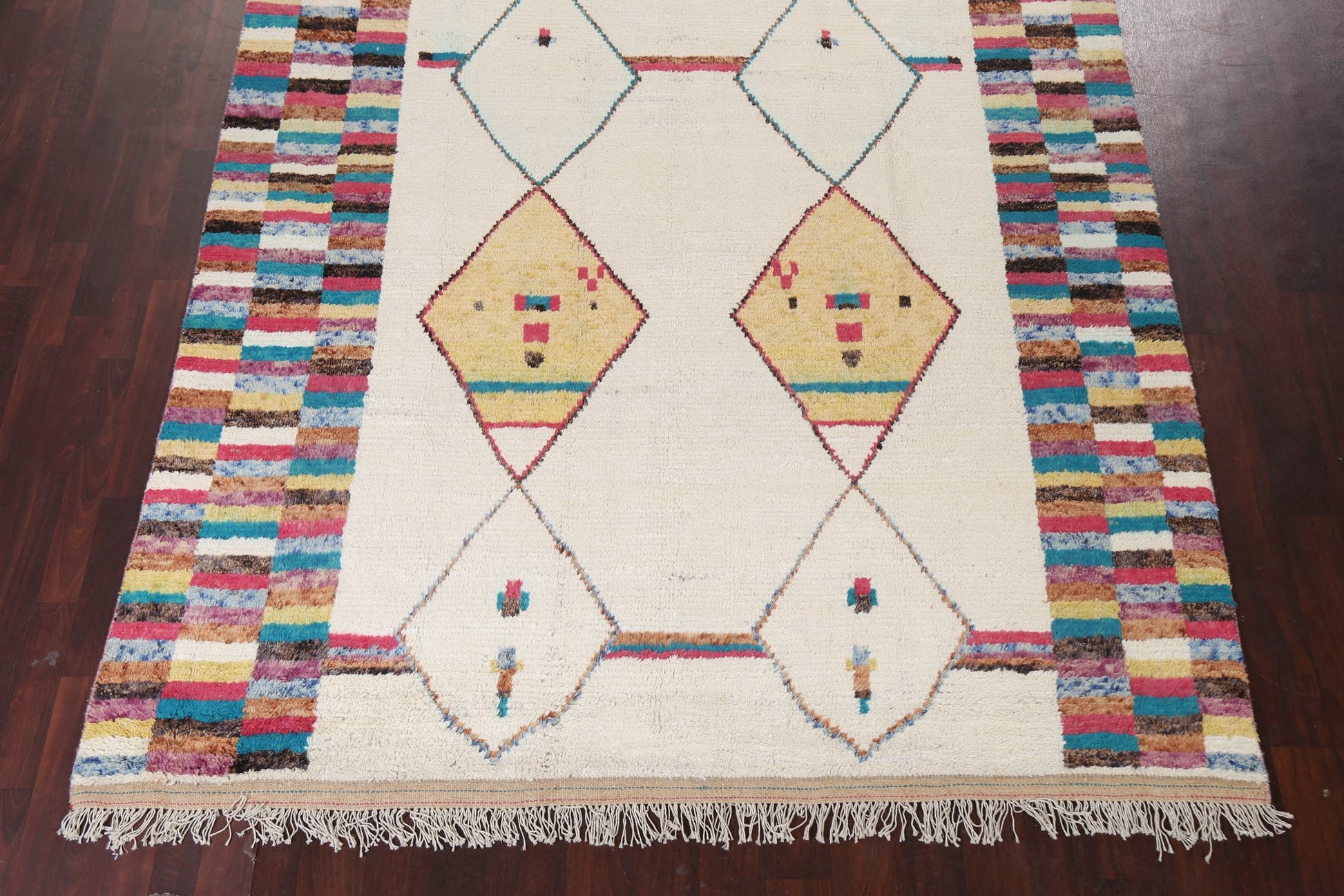 A Beautiful Genuine Morocco Moroccan rug is Hand Knotted by skillful weavers in Morocco with 100% Wool Material. This rug is in New, First Quality condition. dimensions are 10' 7'' X 7' 7'' in foot and 323 X 231 in centimeter. the primary color is Beige & Ivories.