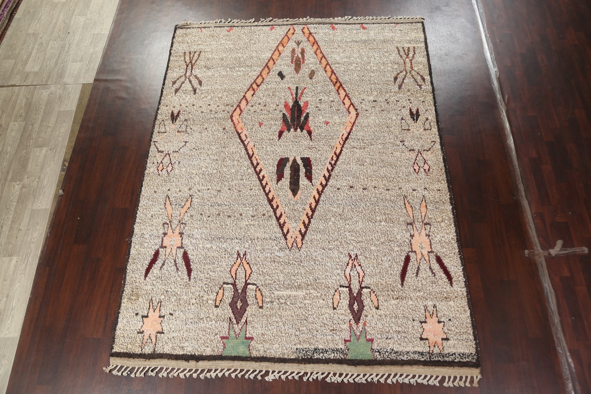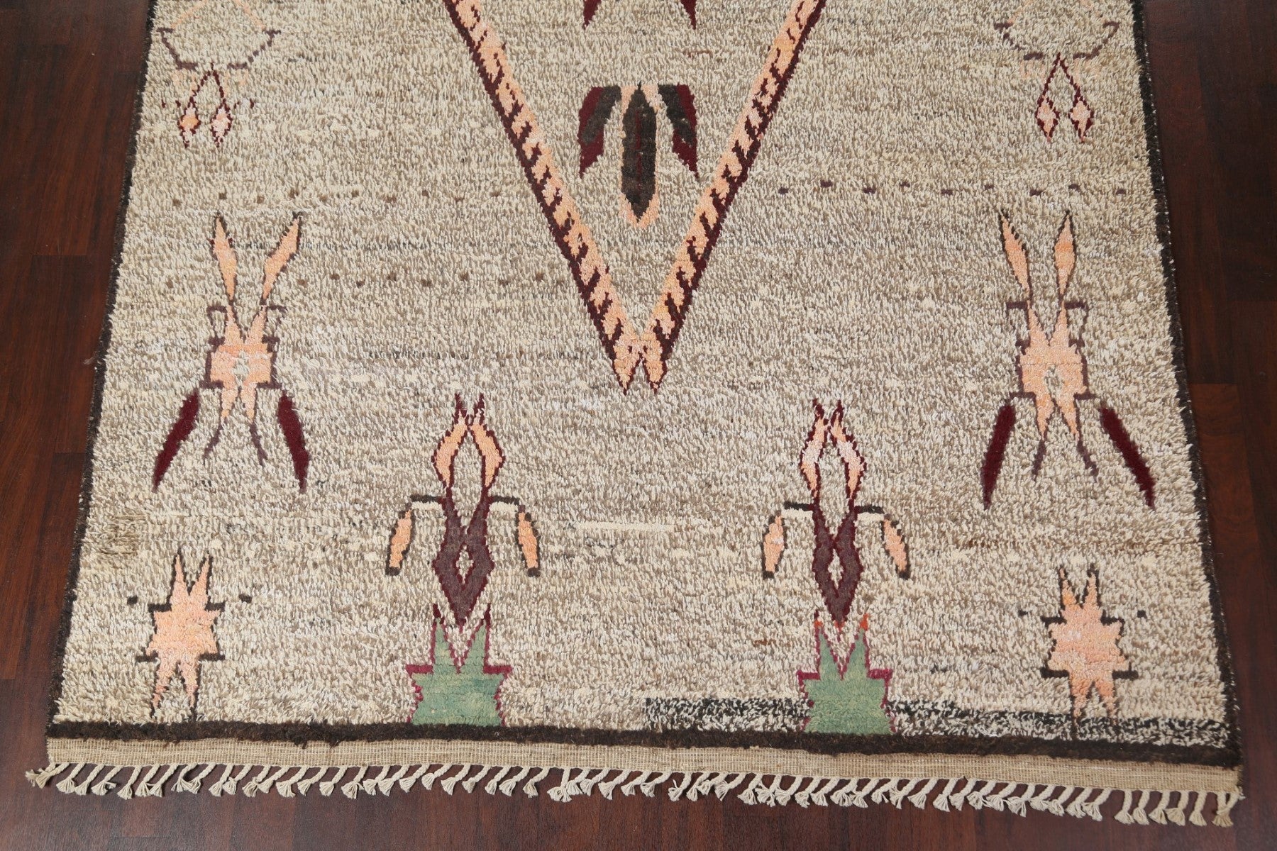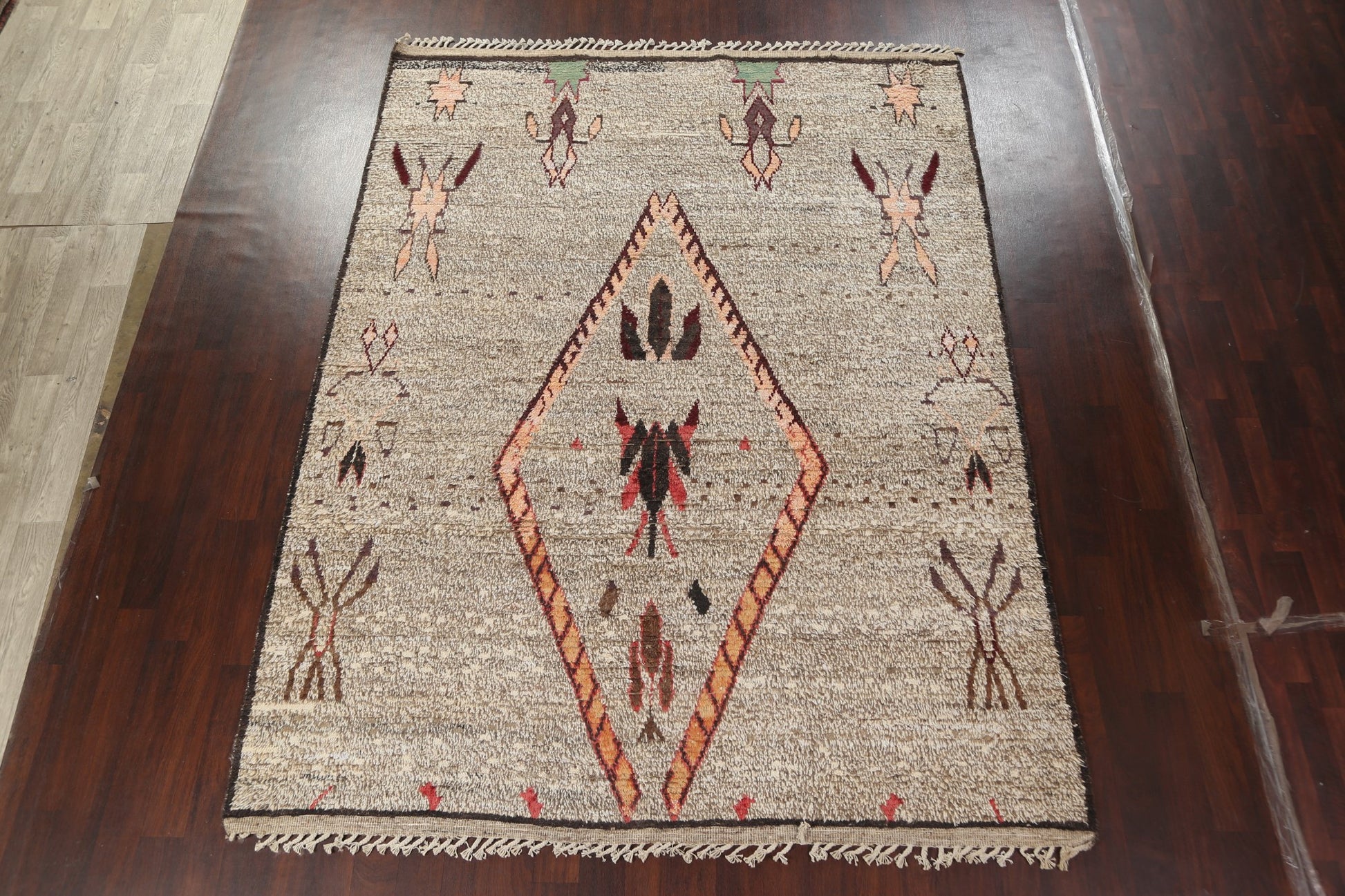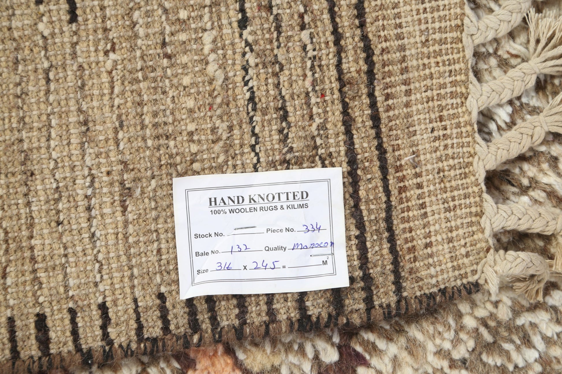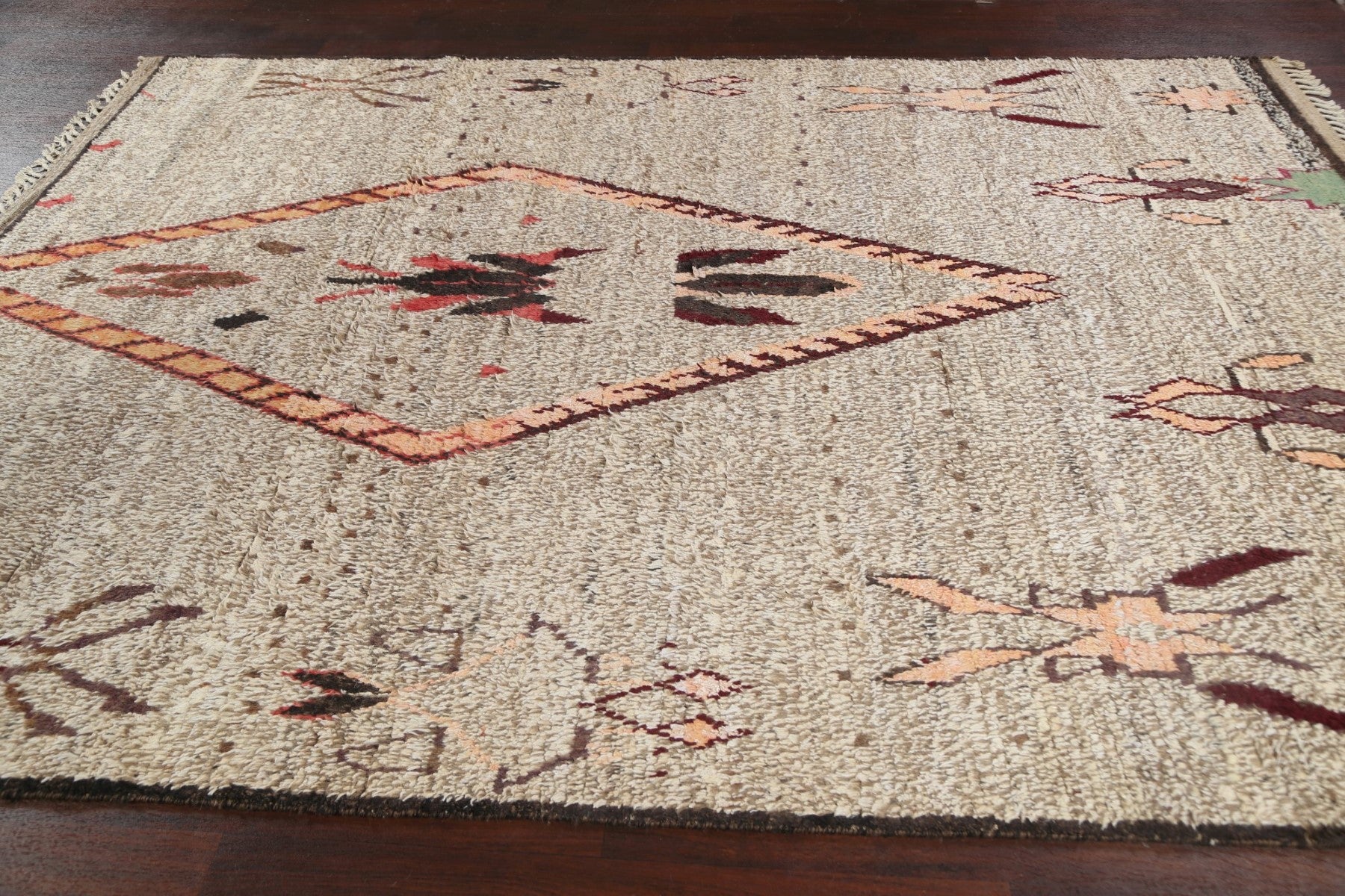 A Beautiful Genuine Morocco Moroccan rug is Hand Knotted by skillful weavers in Morocco with 100% Wool Material. This rug is in New, First Quality condition. dimensions are 10' 8'' X 8' 0'' in foot and 325 X 244 in centimeter. the primary color is Brown.