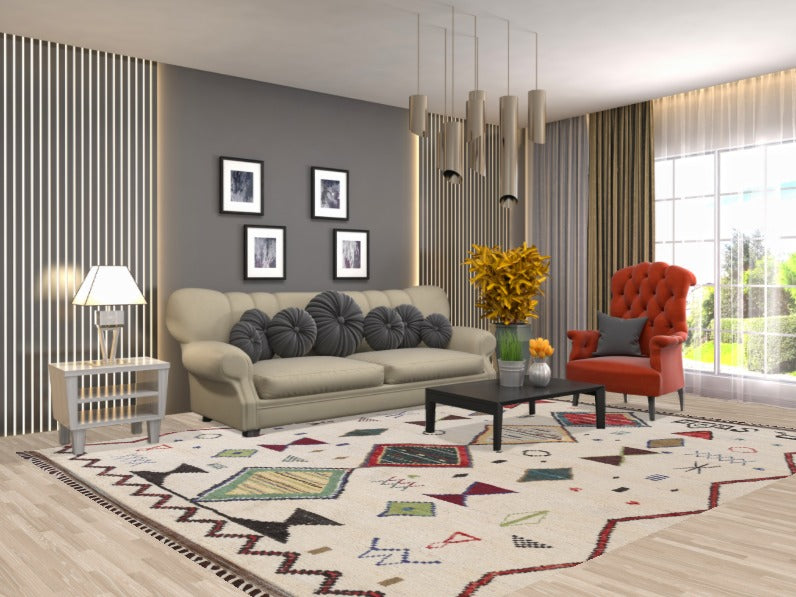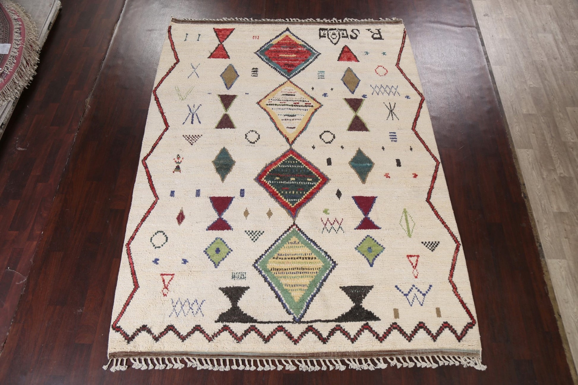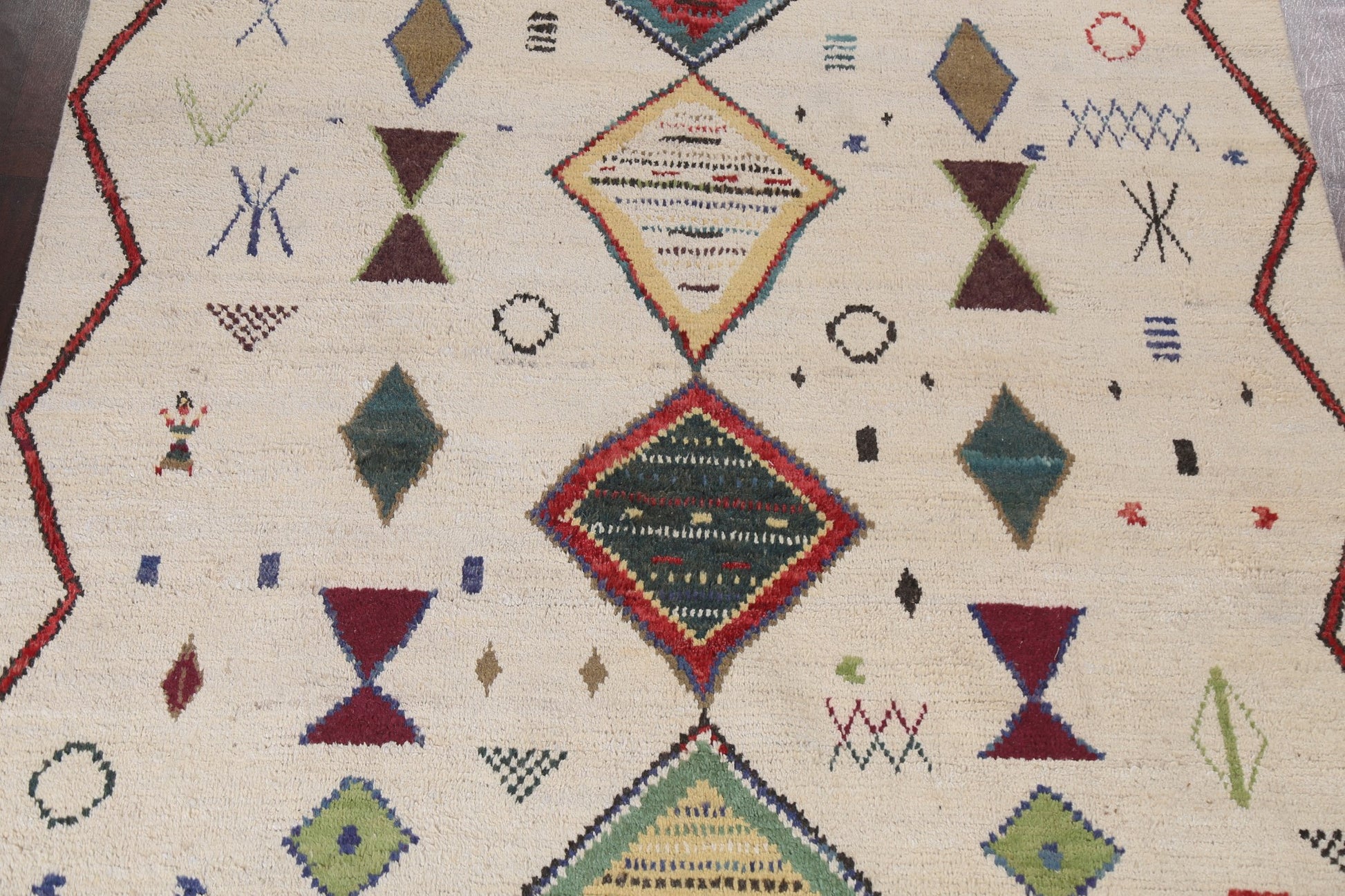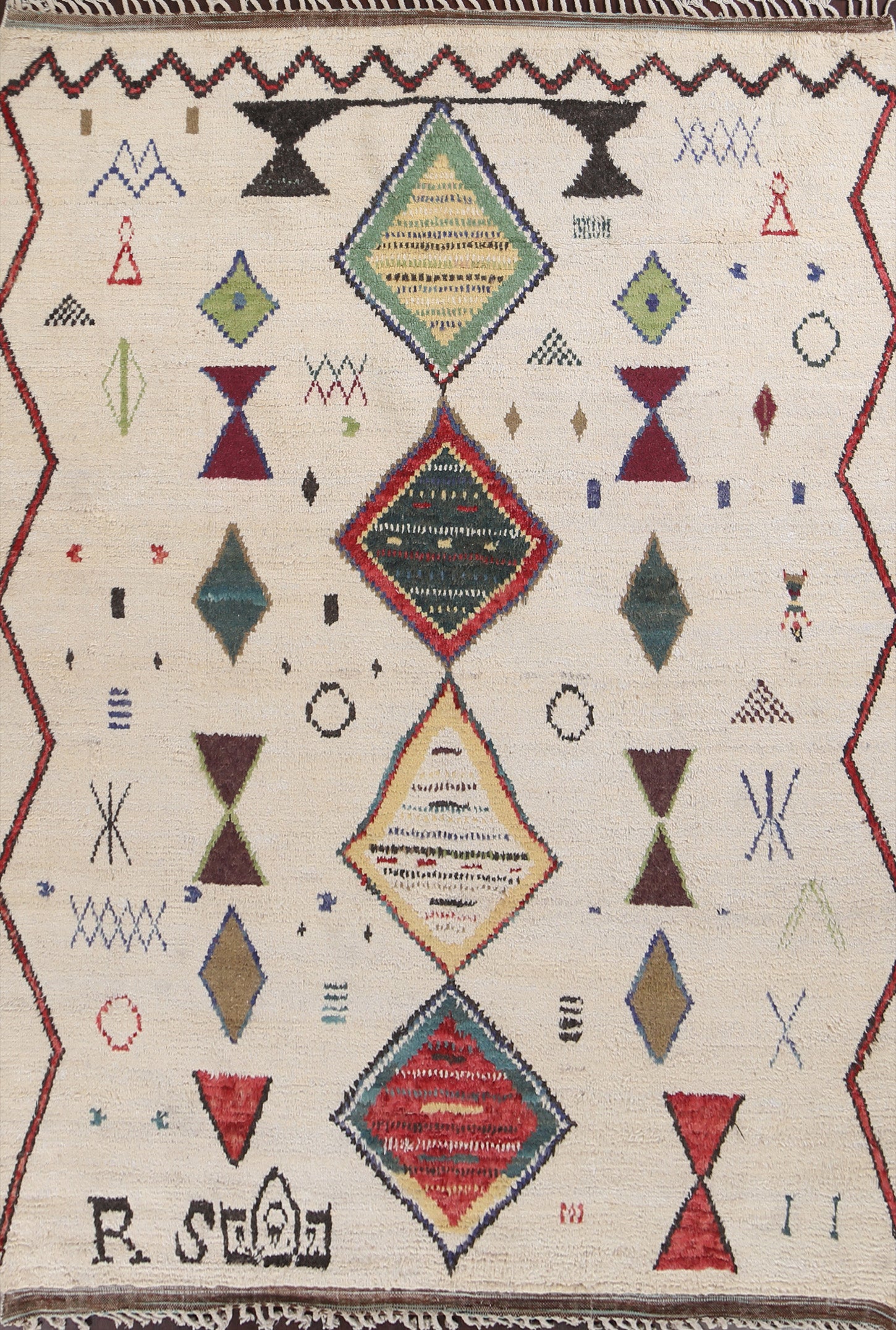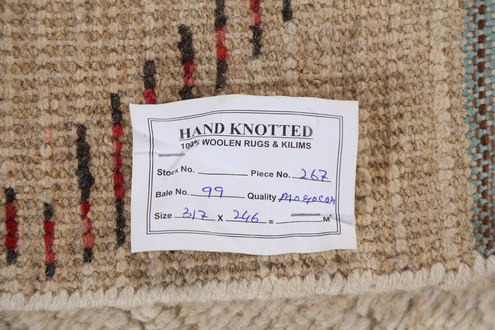 A Beautiful Genuine Morocco Moroccan rug is Hand Knotted by skillful weavers in Morocco with 100% Wool Material. This rug is in New, First Quality condition. dimensions are 10' 8'' X 8' 1'' in foot and 325 X 246 in centimeter. the primary color is Beige & Ivories.