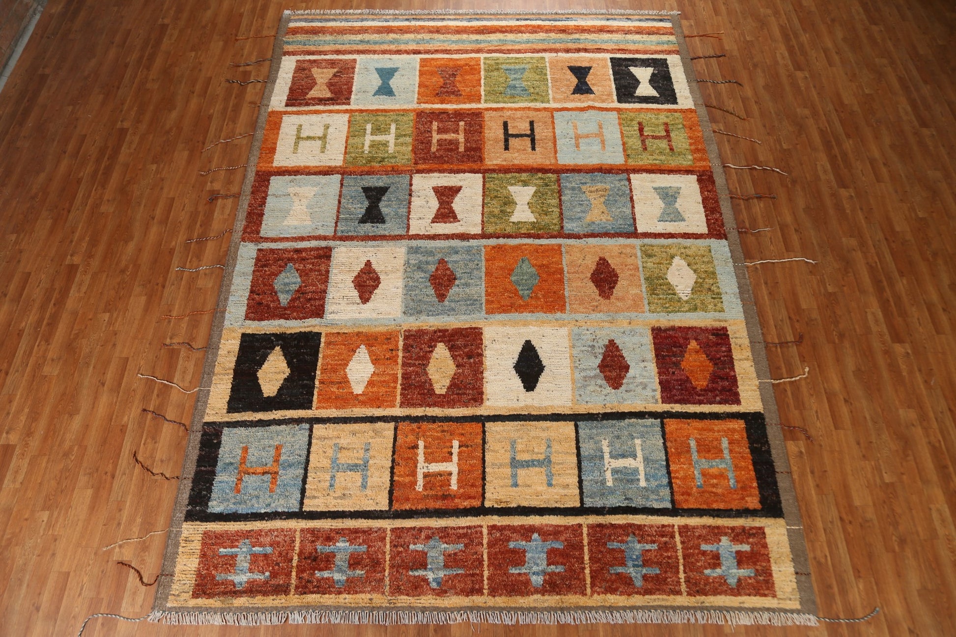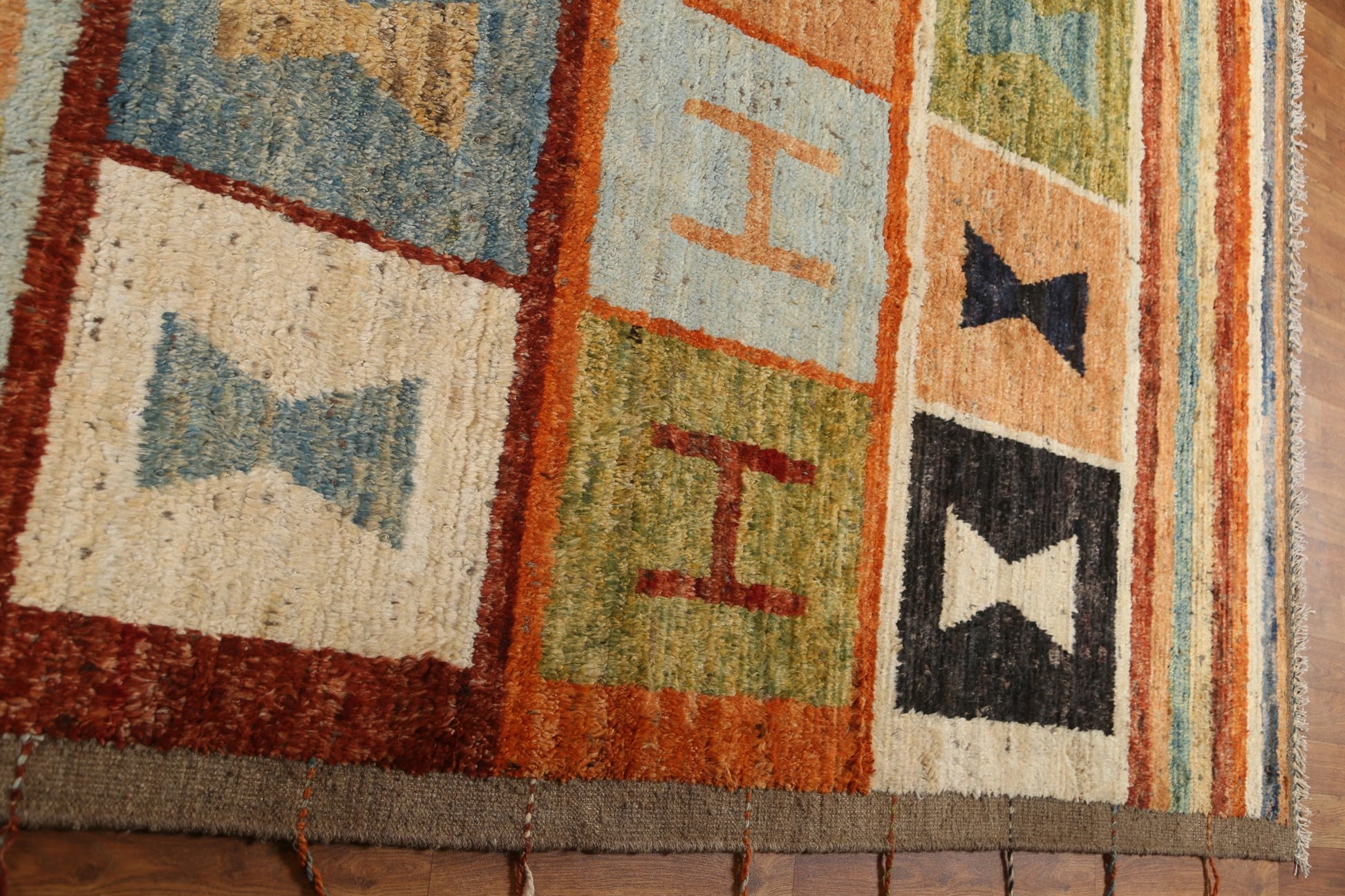 A Beautiful Genuine Pakistan Moroccan rug is Hand Knotted by skillful weavers in Pakistan with 100% Wool Material. This rug is in condition. dimensions are 12' 4'' X 8' 10'' in foot and 376 X 269 in centimeter. the primary color is Multi-Colored.