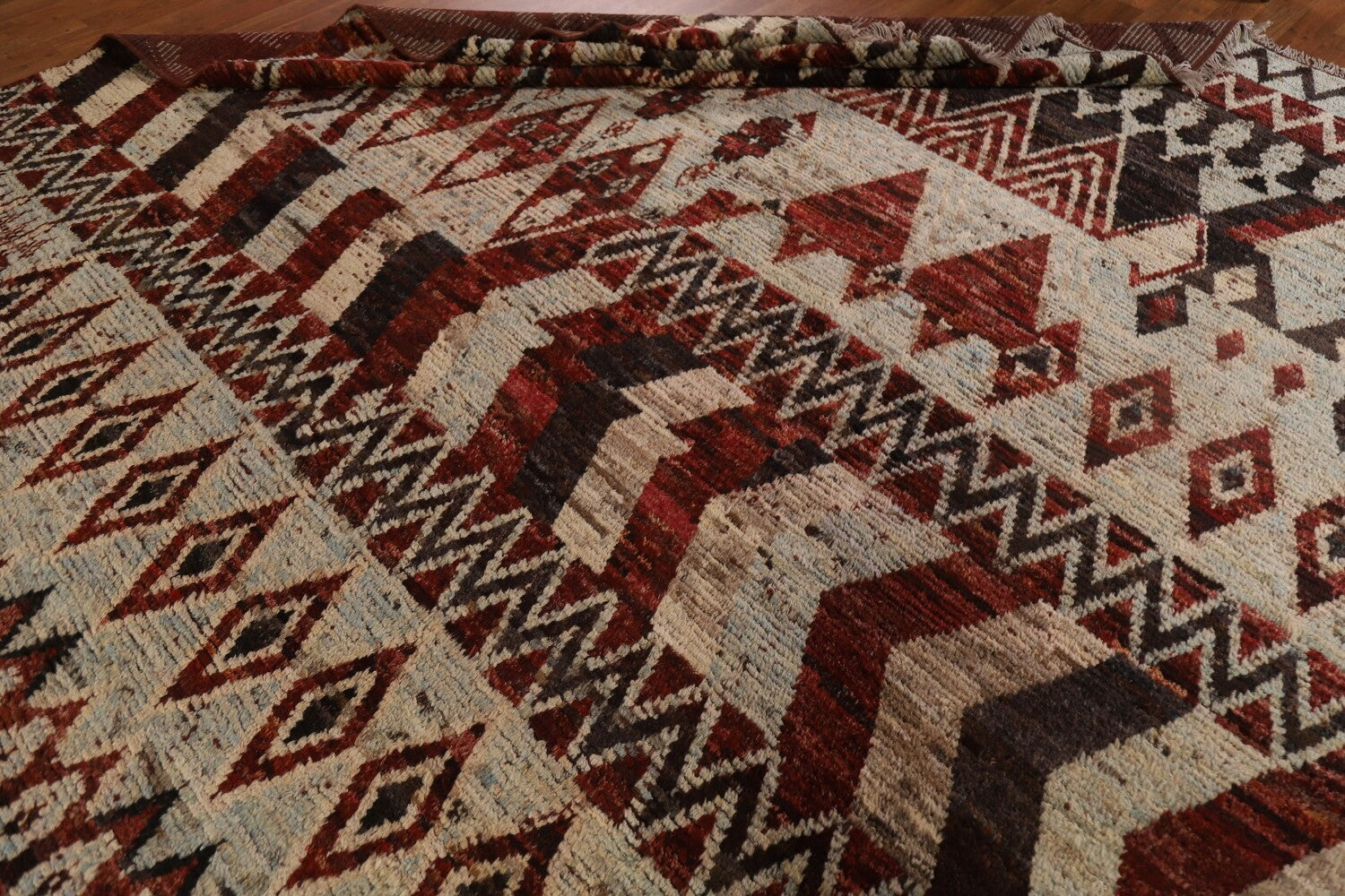 A Beautiful Genuine Pakistan Moroccan rug is Hand Knotted by skillful weavers in Pakistan with 100% Wool Material. This rug is in New, First Quality condition. dimensions are 12' 0'' X 9' 0'' in foot and 366 X 274 in centimeter. the primary color is Beige & Ivories.