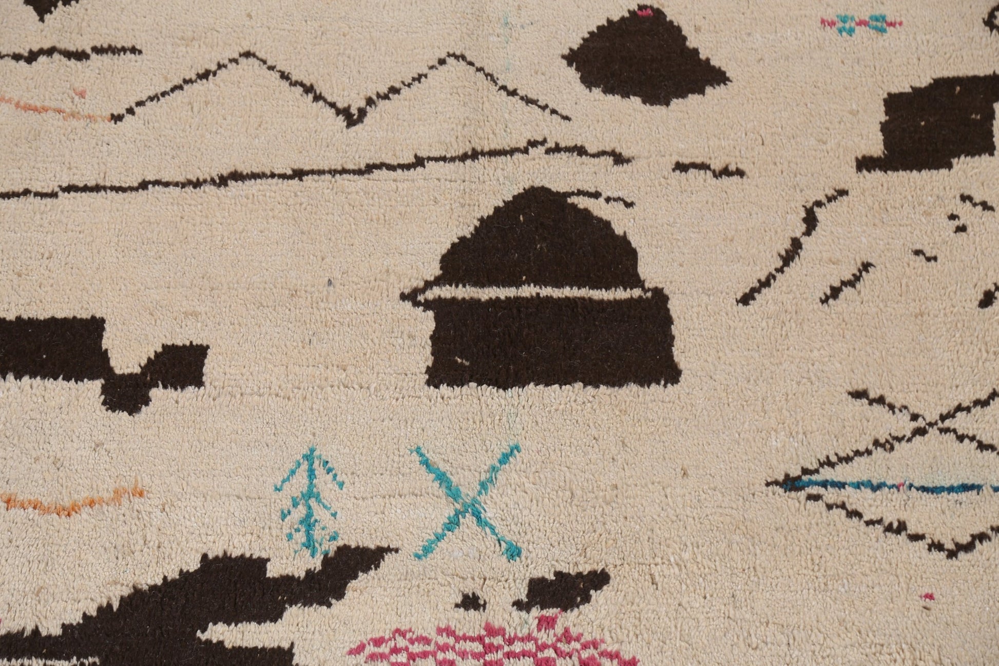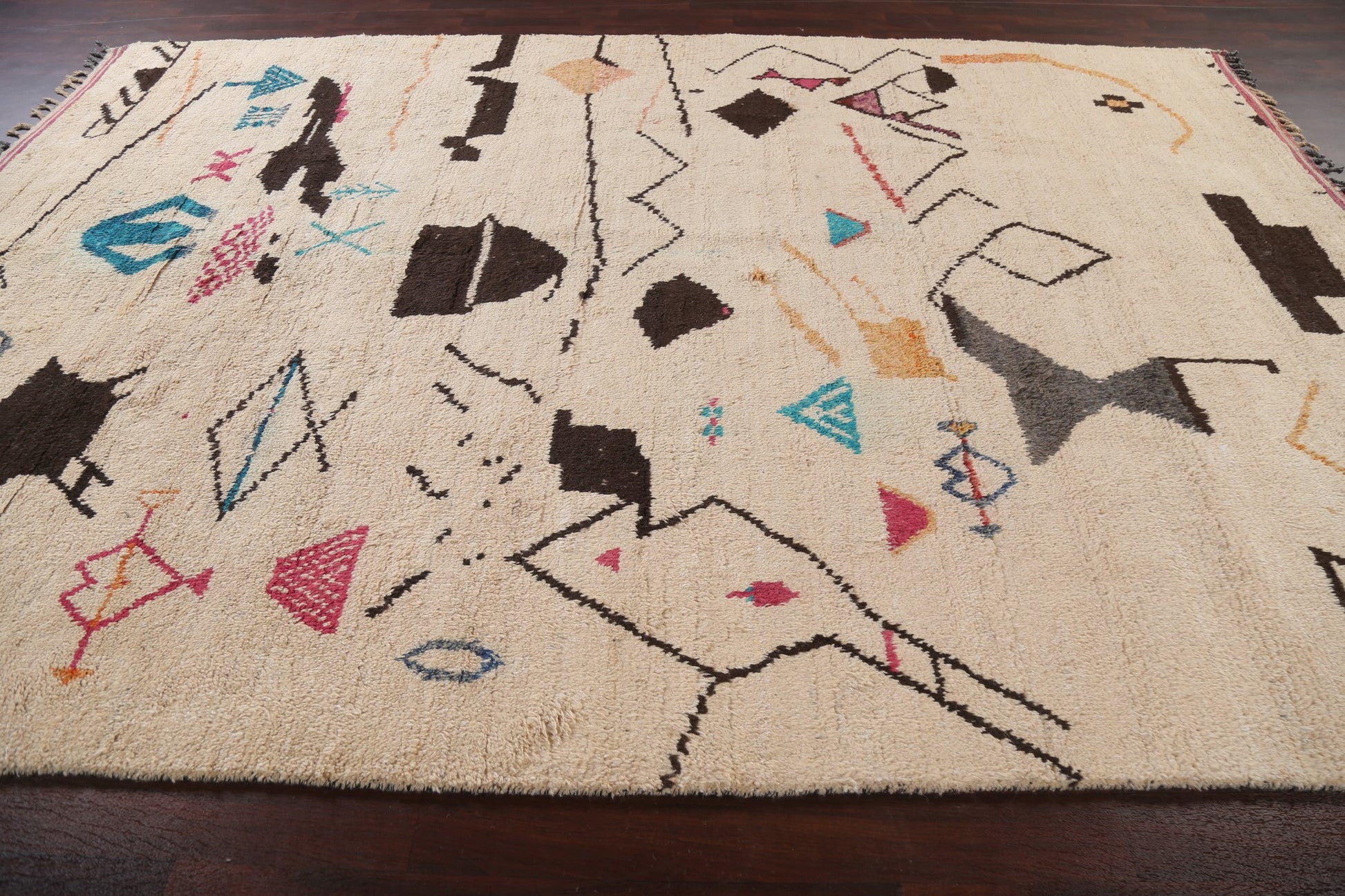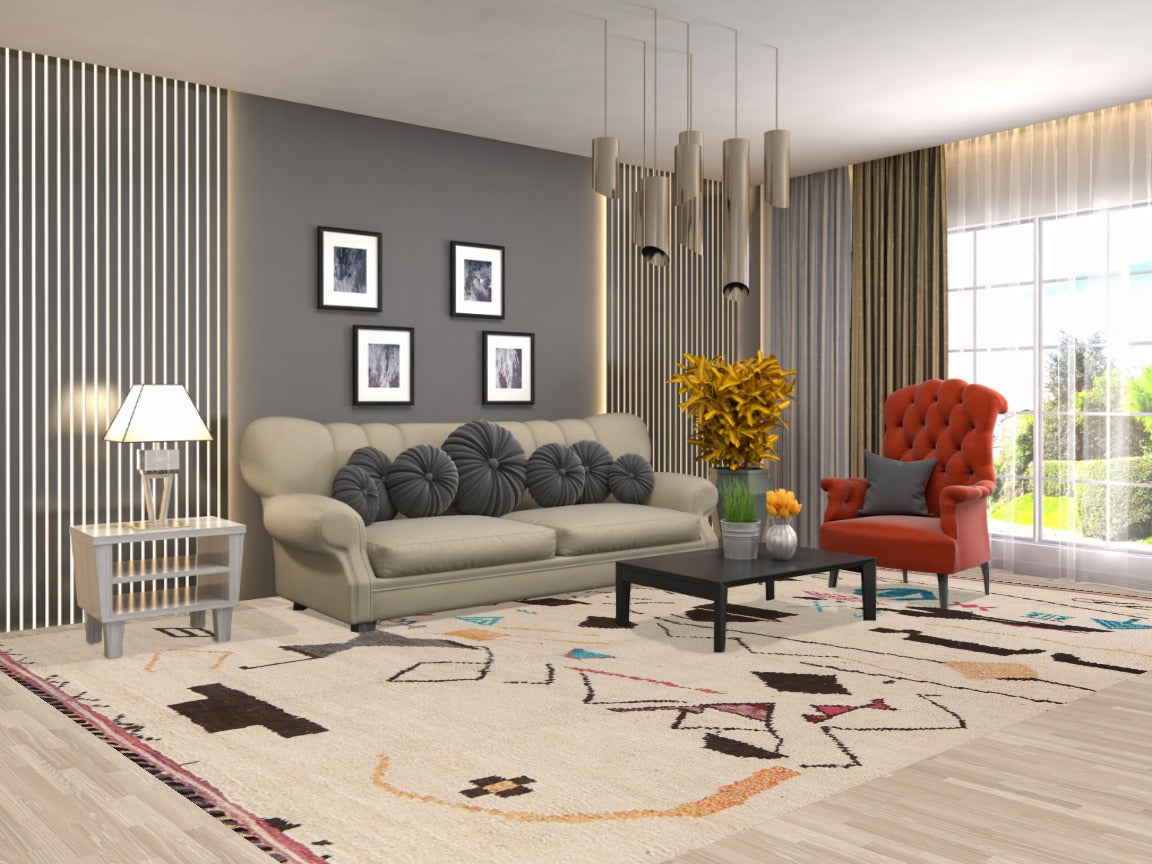 A Beautiful Genuine Morocco Moroccan rug is Hand Knotted by skillful weavers in Morocco with 100% Wool Material. This rug is in New, First Quality condition. dimensions are 12' 10'' X 8' 11'' in foot and 391 X 272 in centimeter. the primary color is Beige & Ivories.