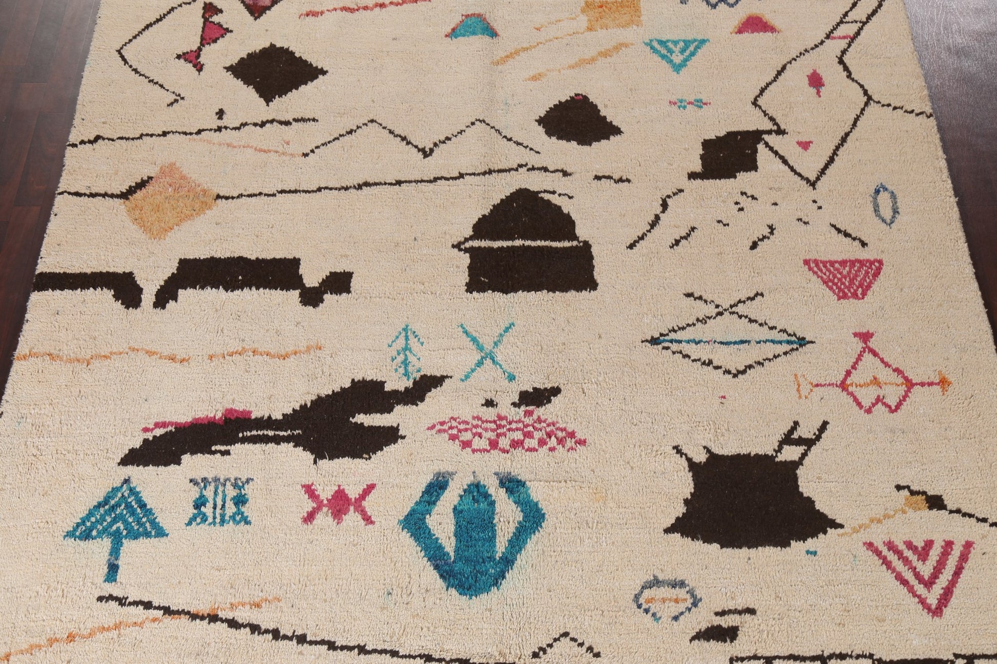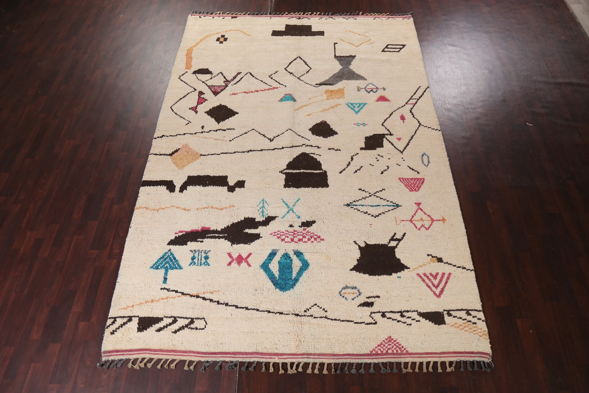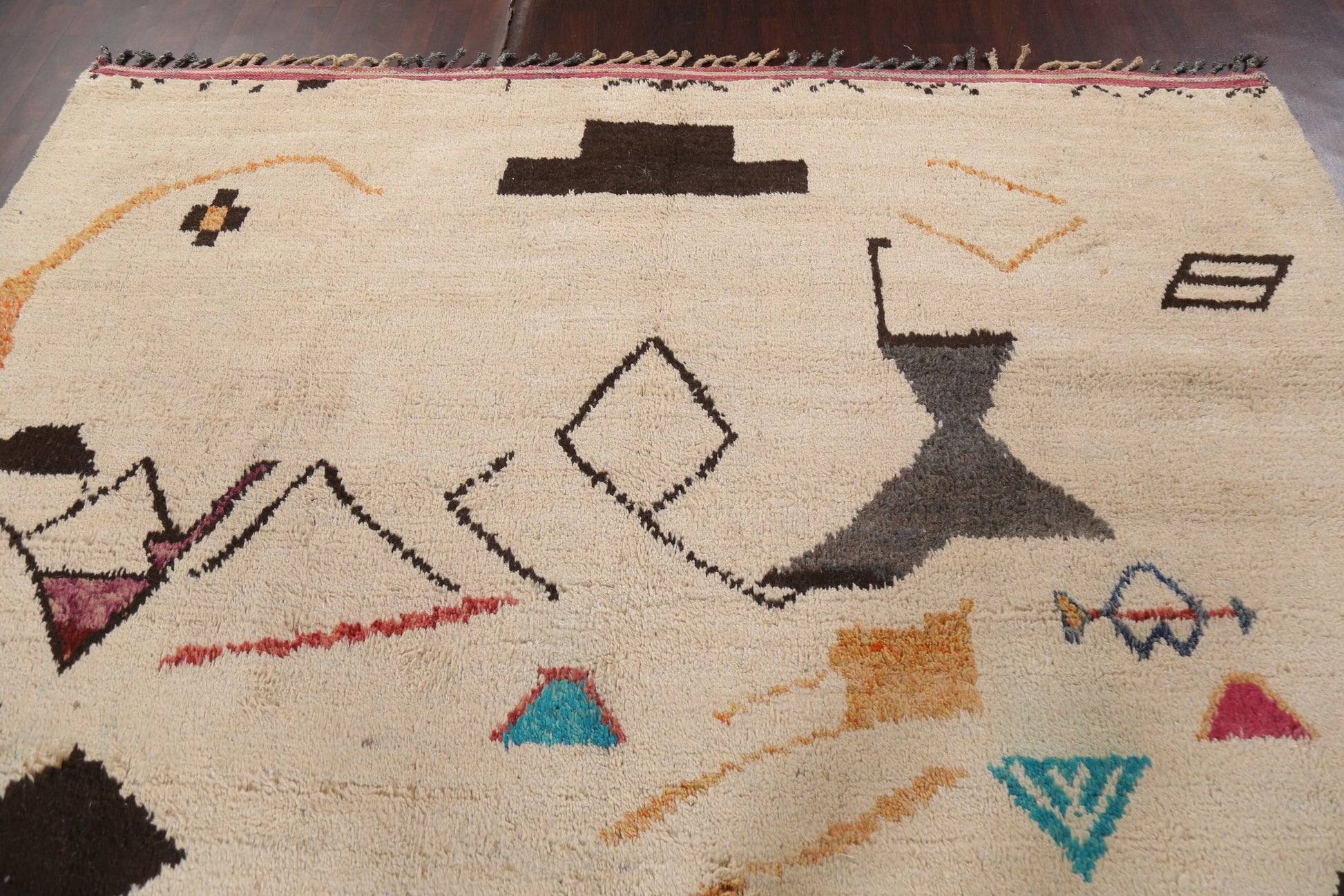 A Beautiful Genuine Morocco Moroccan rug is Hand Knotted by skillful weavers in Morocco with 100% Wool Material. This rug is in New, First Quality condition. dimensions are 12' 10'' X 8' 11'' in foot and 391 X 272 in centimeter. the primary color is Beige & Ivories.