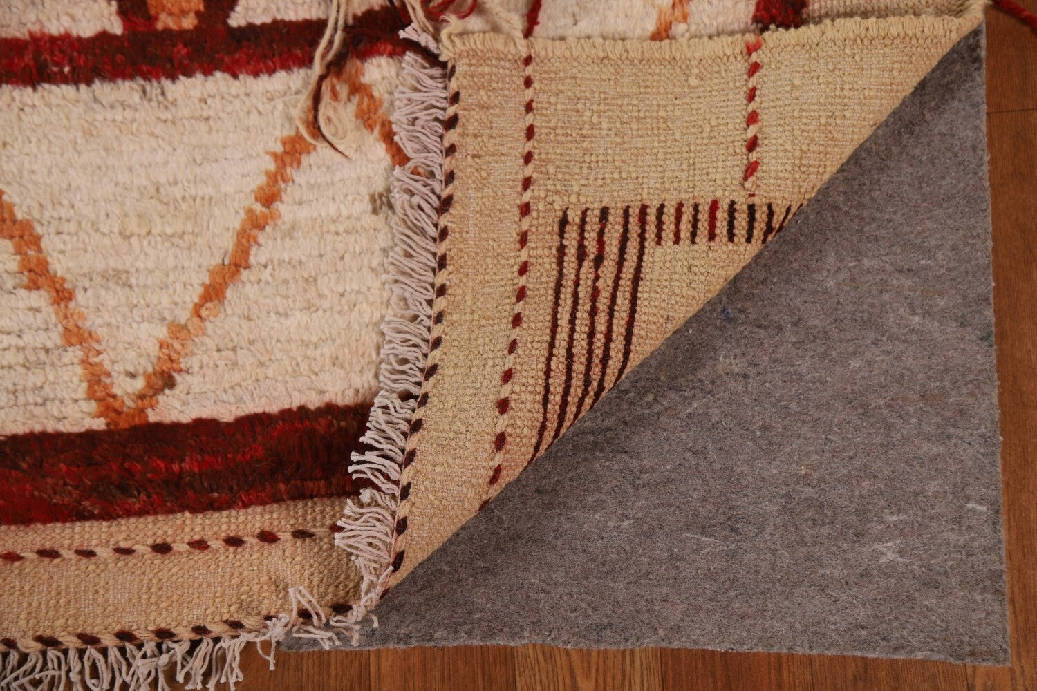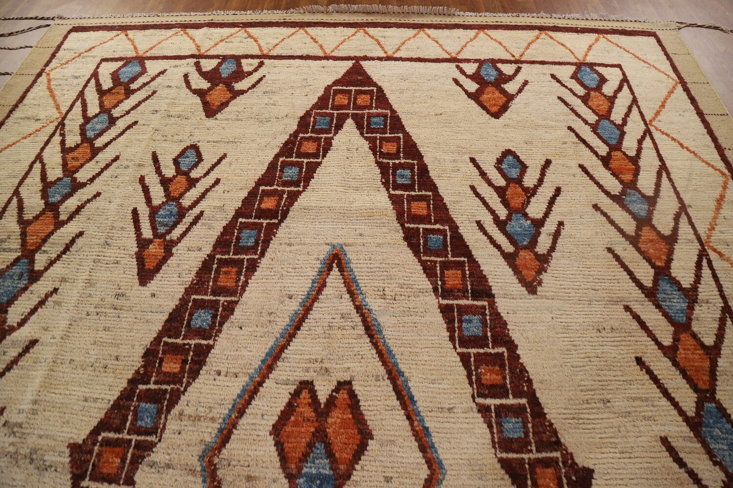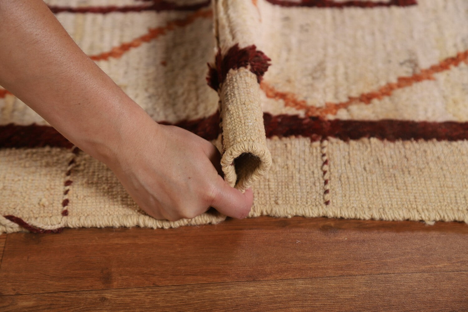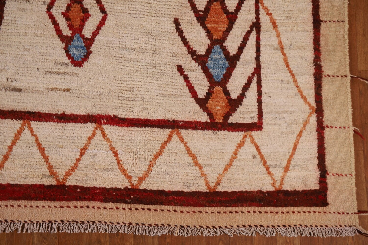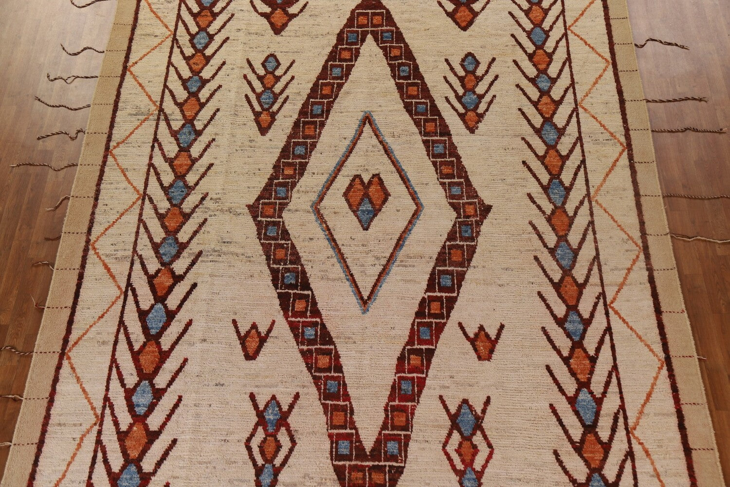 A Beautiful Genuine Pakistan Moroccan rug is Hand Knotted by skillful weavers in Pakistan with 100% Wool Material. This rug is in New, First Quality condition. dimensions are 12' 9'' X 9' 5'' in foot and 389 X 287 in centimeter. the primary color is Beige & Ivories.