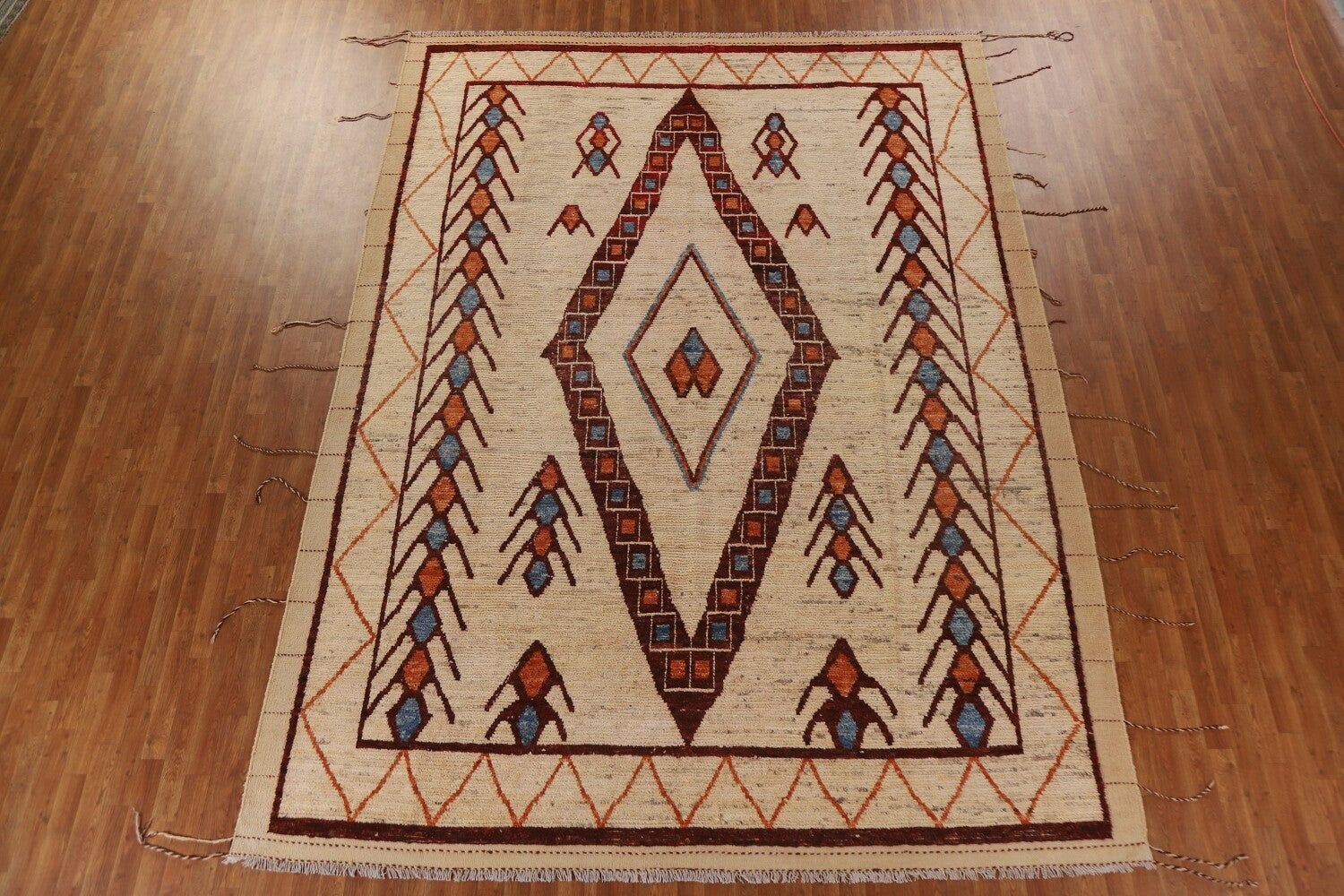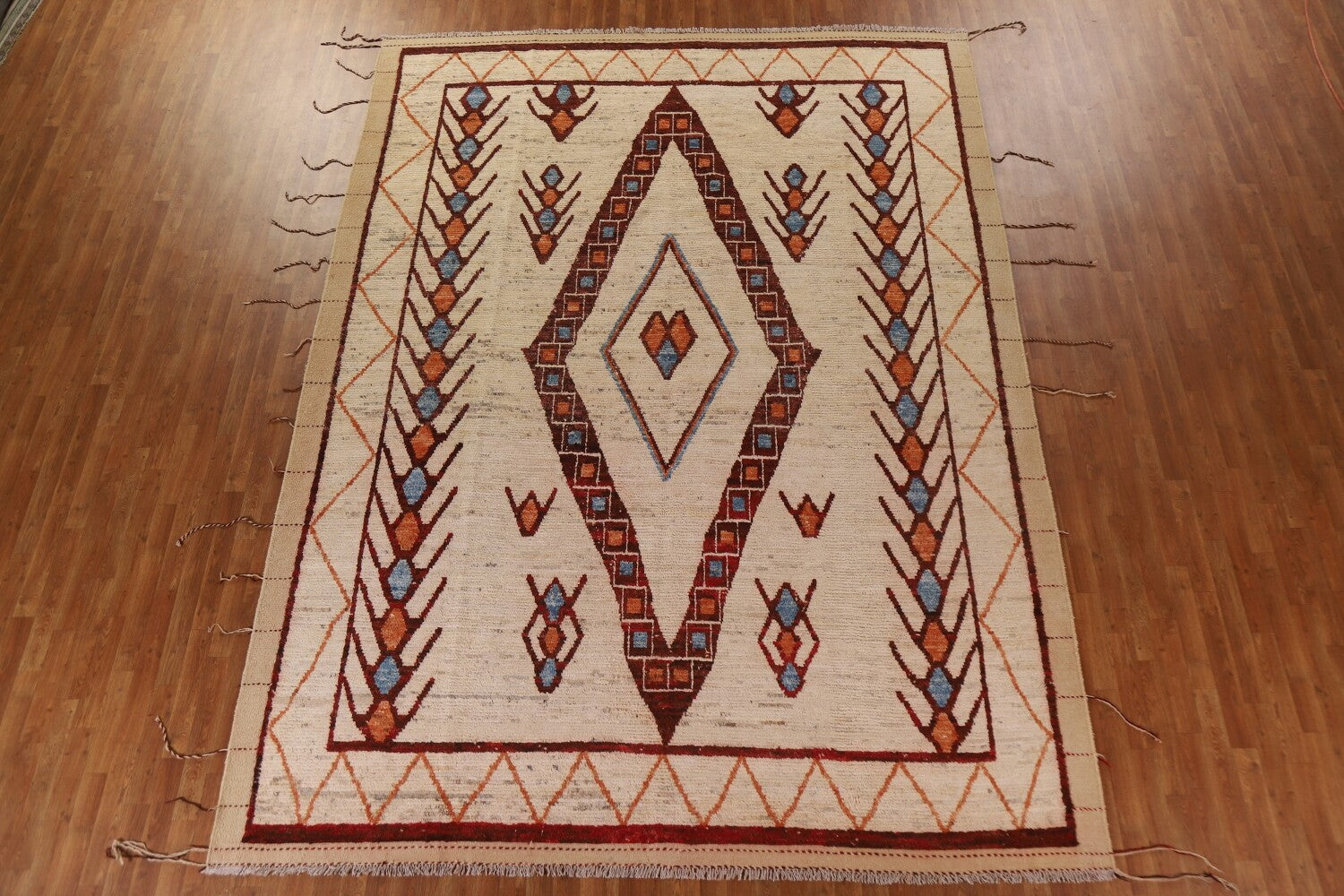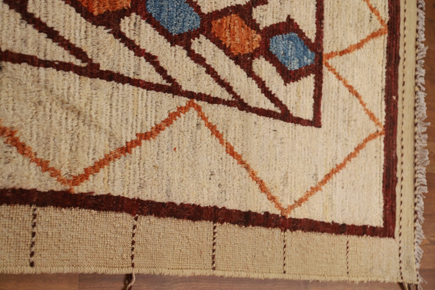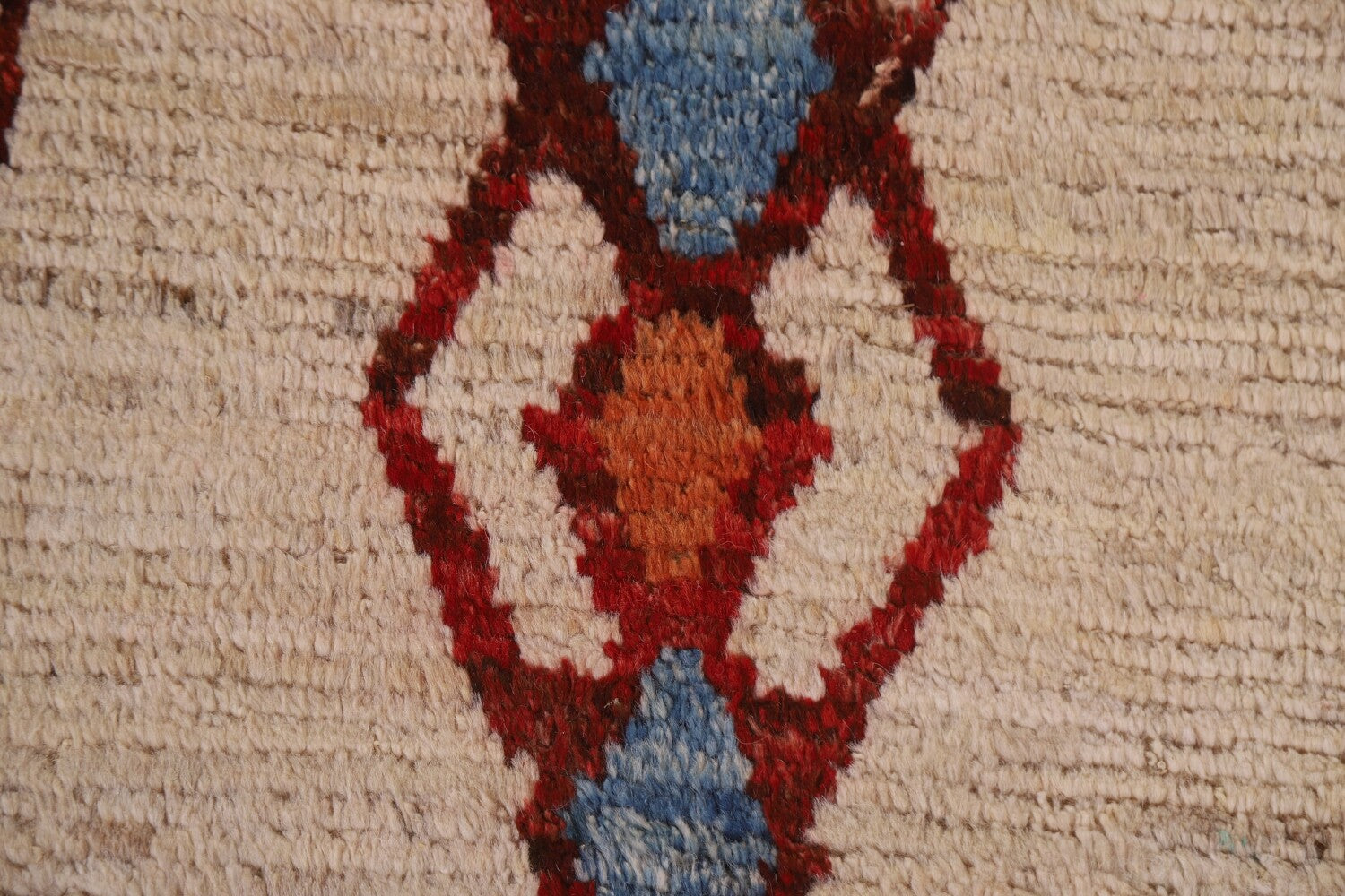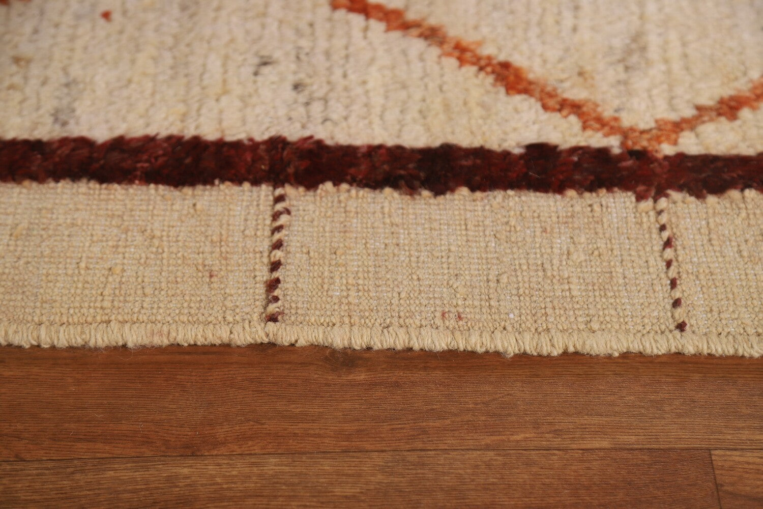 A Beautiful Genuine Pakistan Moroccan rug is Hand Knotted by skillful weavers in Pakistan with 100% Wool Material. This rug is in New, First Quality condition. dimensions are 12' 9'' X 9' 5'' in foot and 389 X 287 in centimeter. the primary color is Beige & Ivories.