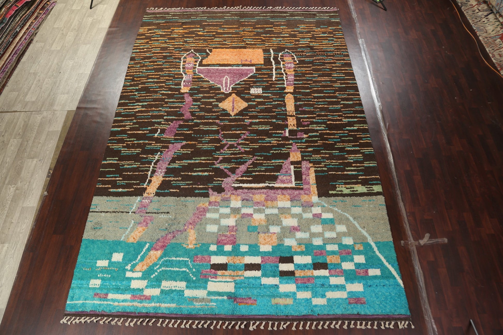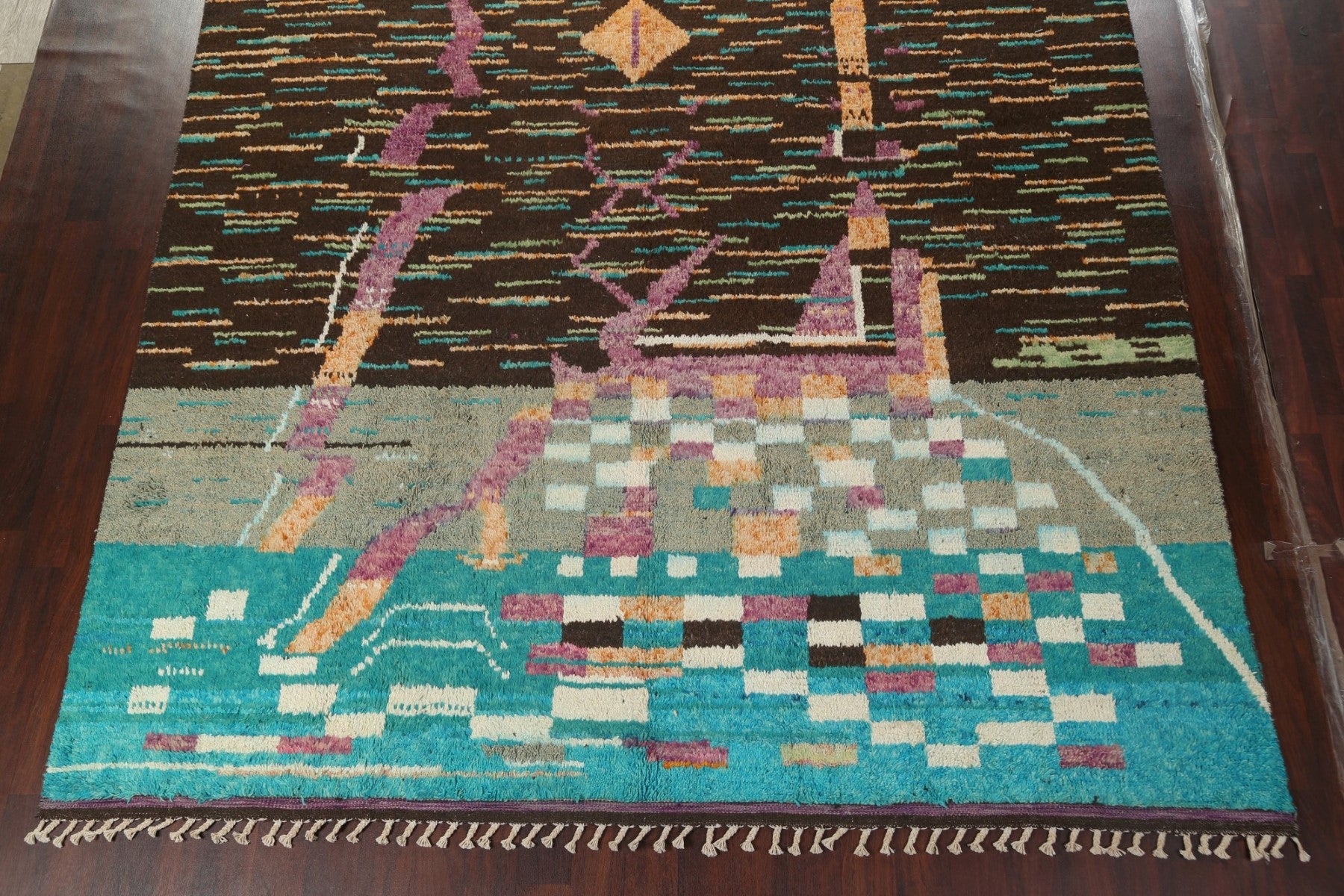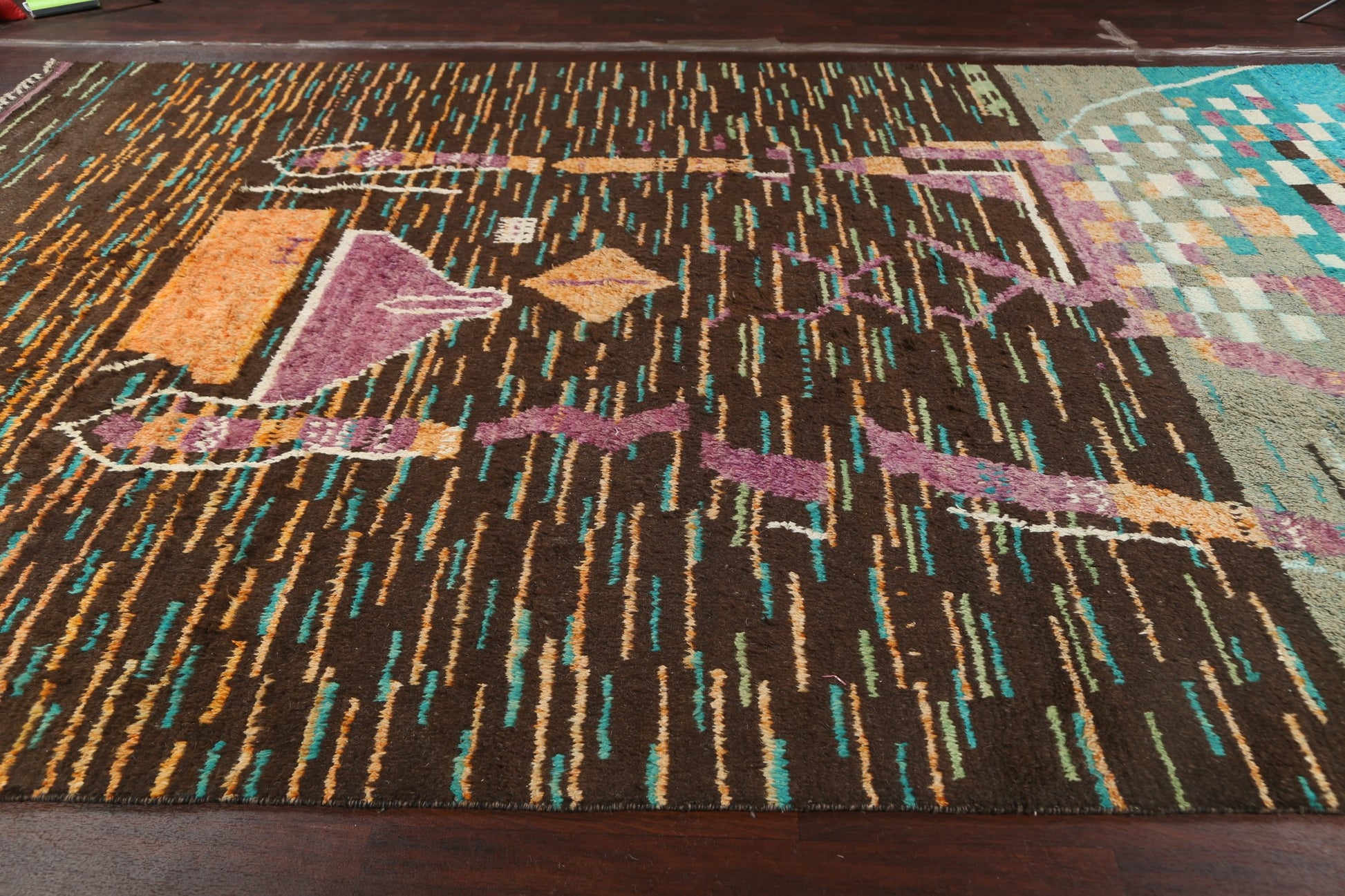 A Beautiful Genuine Morocco Moroccan rug is Hand Knotted by skillful weavers in Morocco with 100% Wool Material. This rug is in New, First Quality condition. dimensions are 14' 7'' X 9' 9'' in foot and 445 X 297 in centimeter. the primary color is Brown.